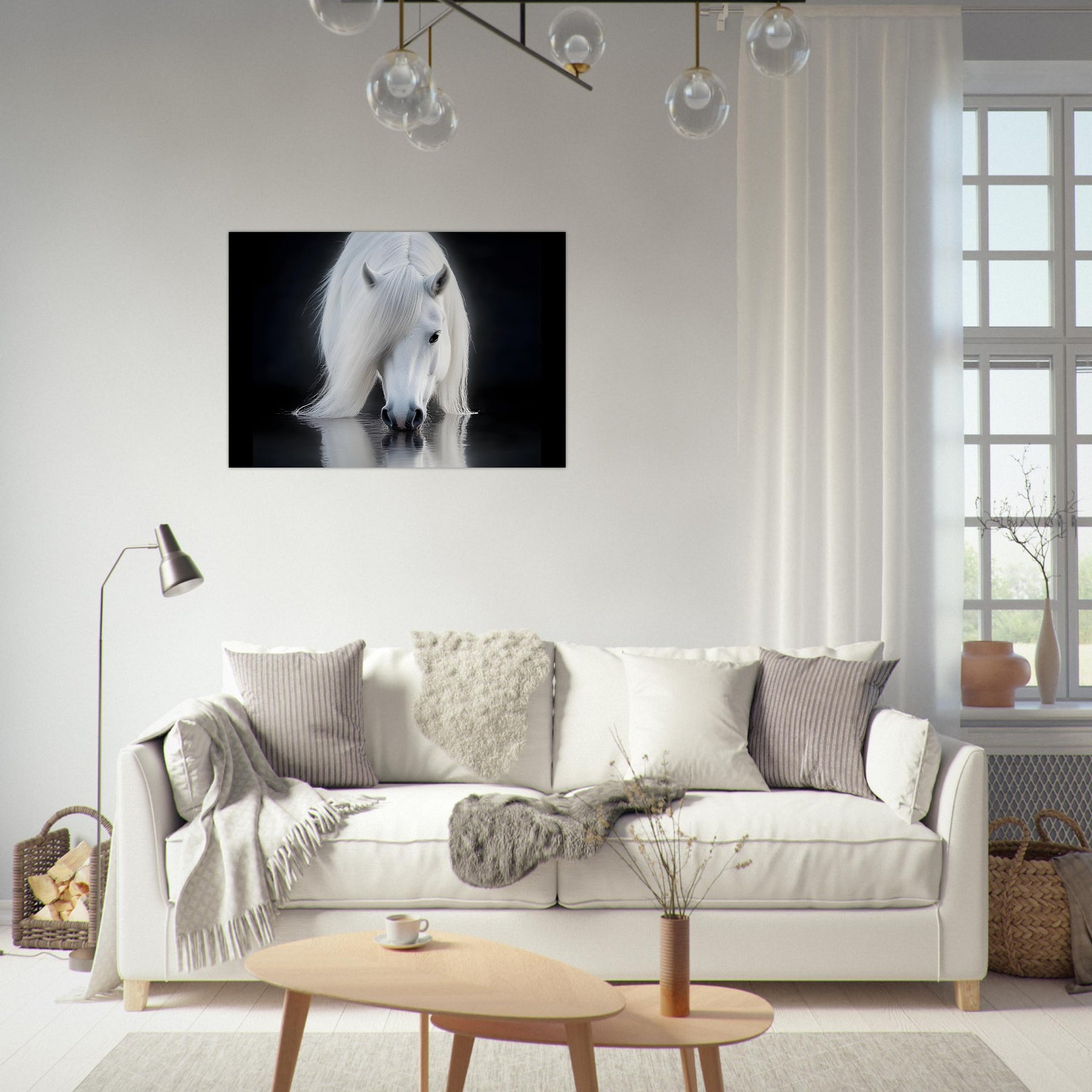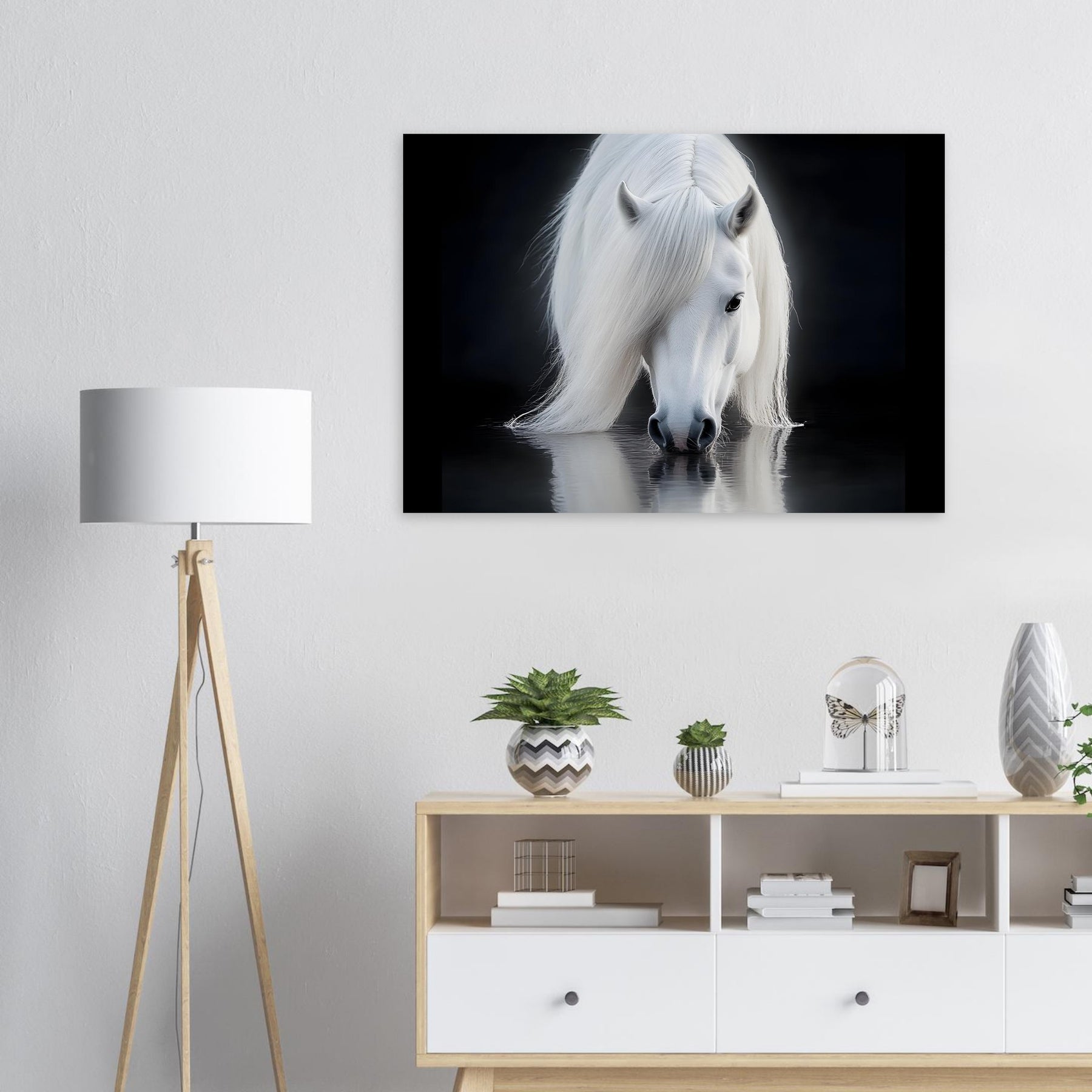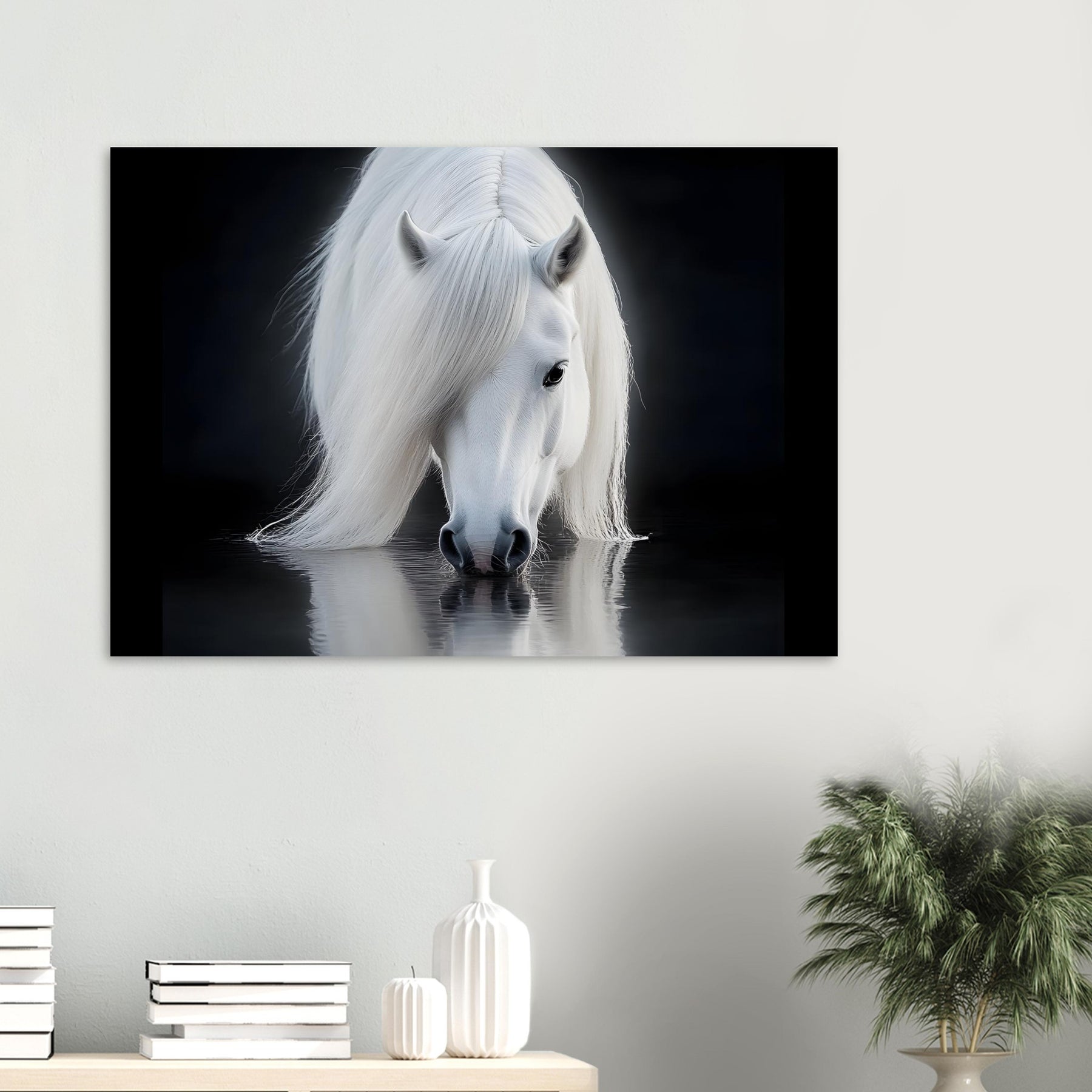 Silent Reflection – White Horse Foam Wall Art