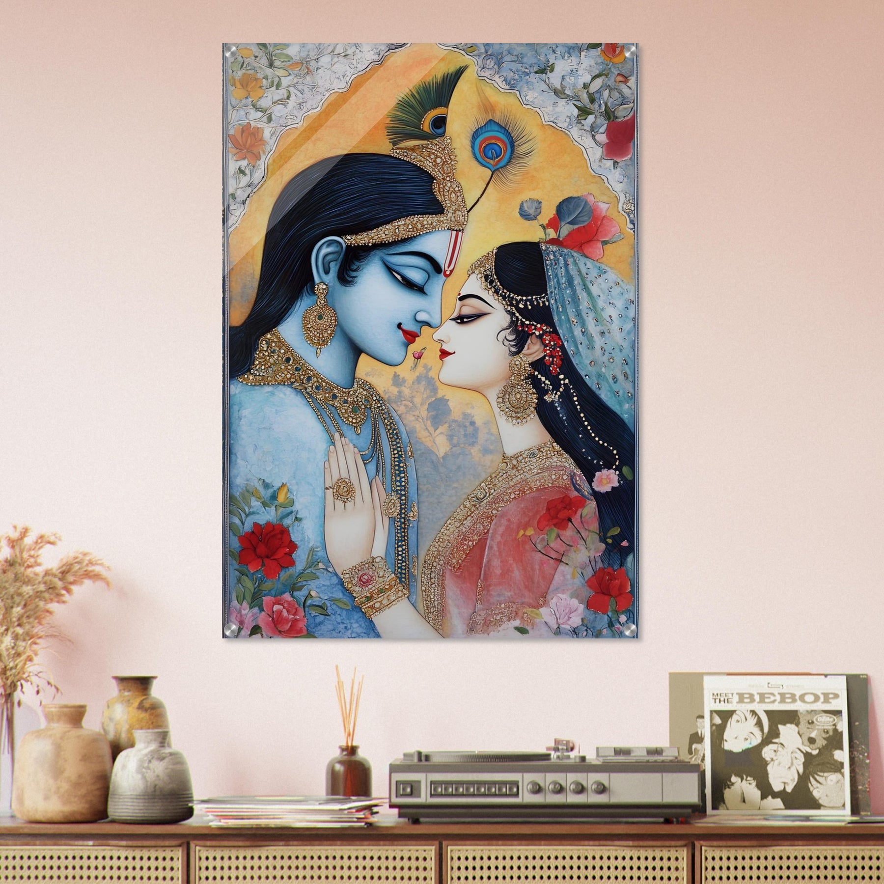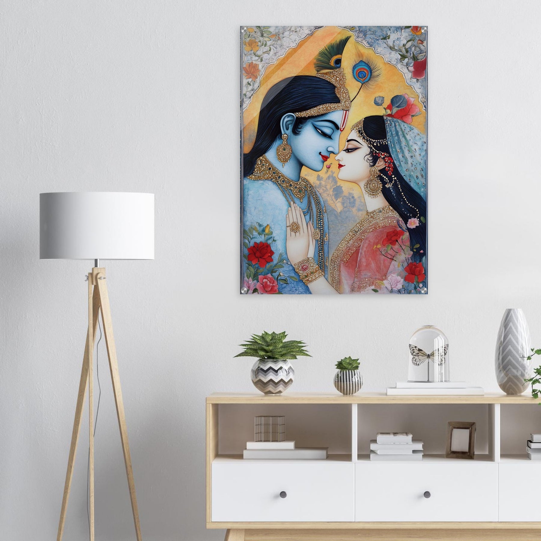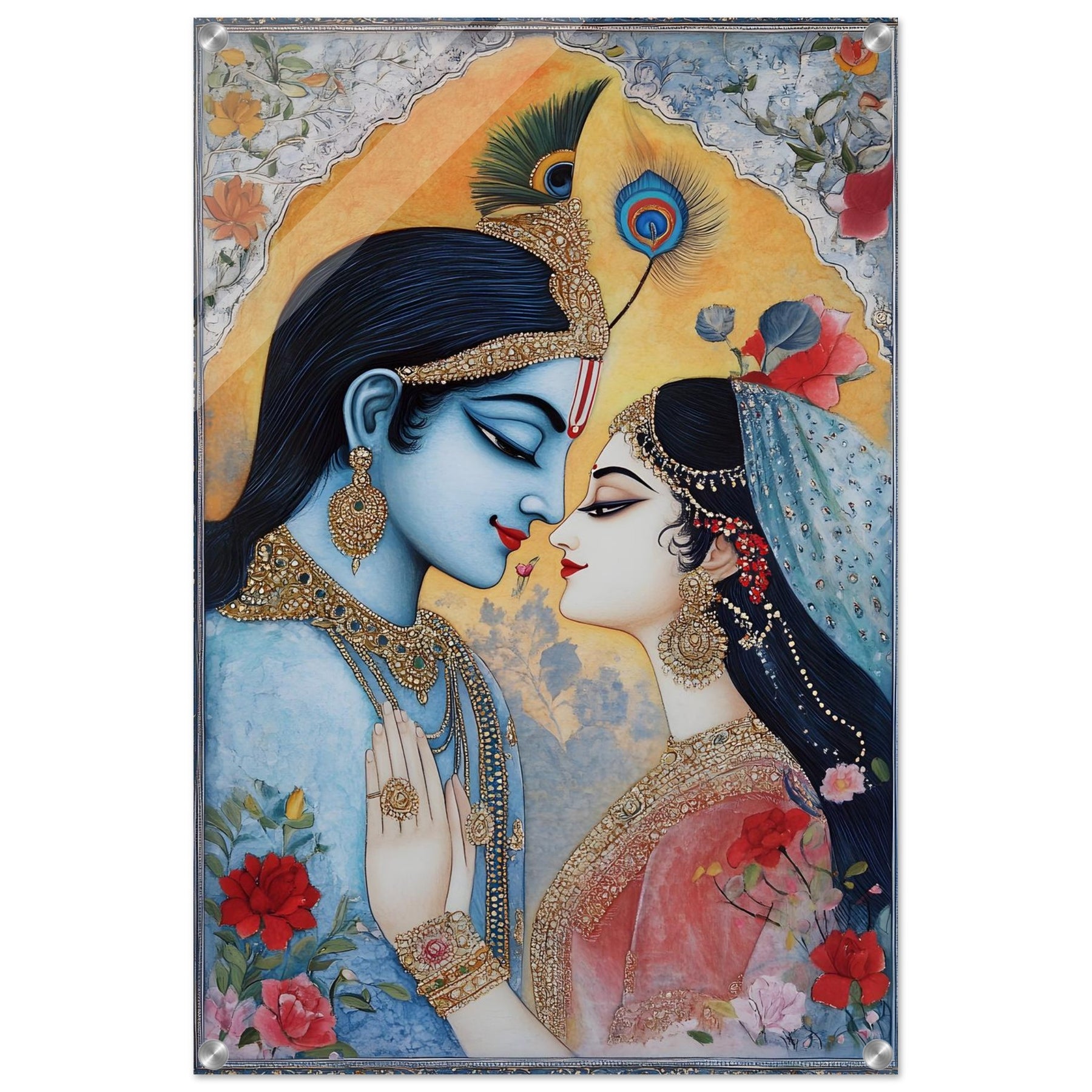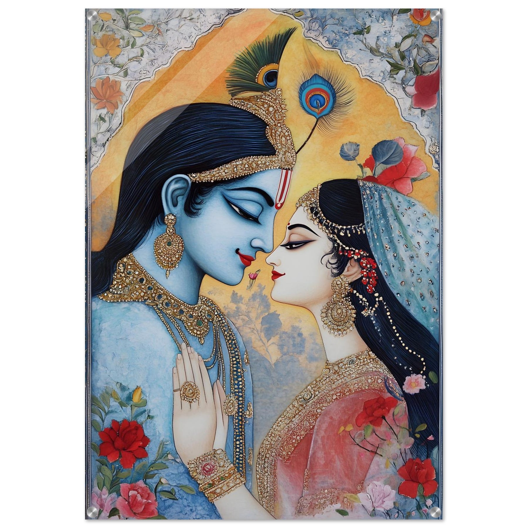 Elevate your décor with Sacred Union, a striking acrylic wall art piece that brings Indian wedding artistry to life. The vibrant colors, ornate details, and expressive composition are enhanced by a glossy, glass-like finish that adds depth, brilliance, and modern elegance.