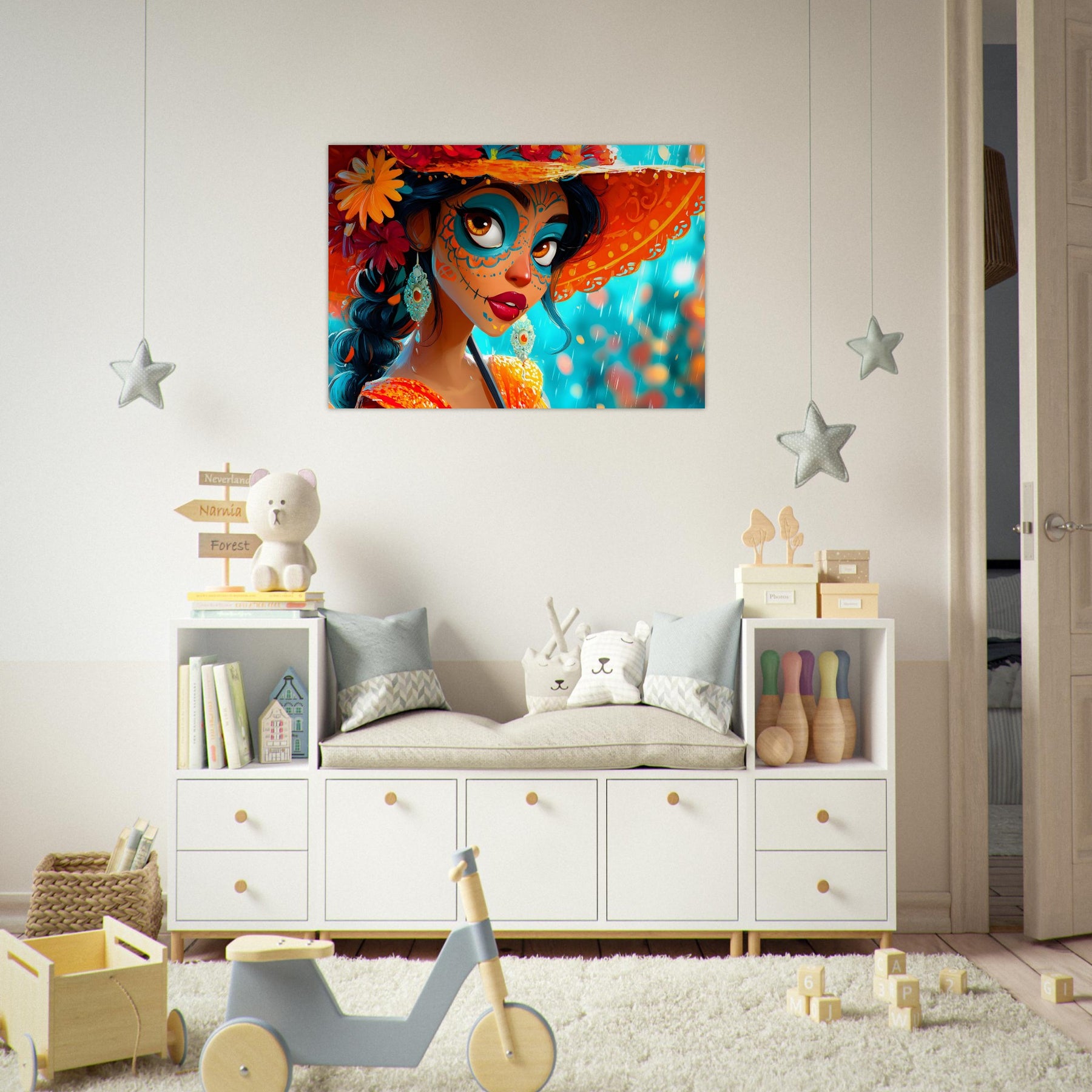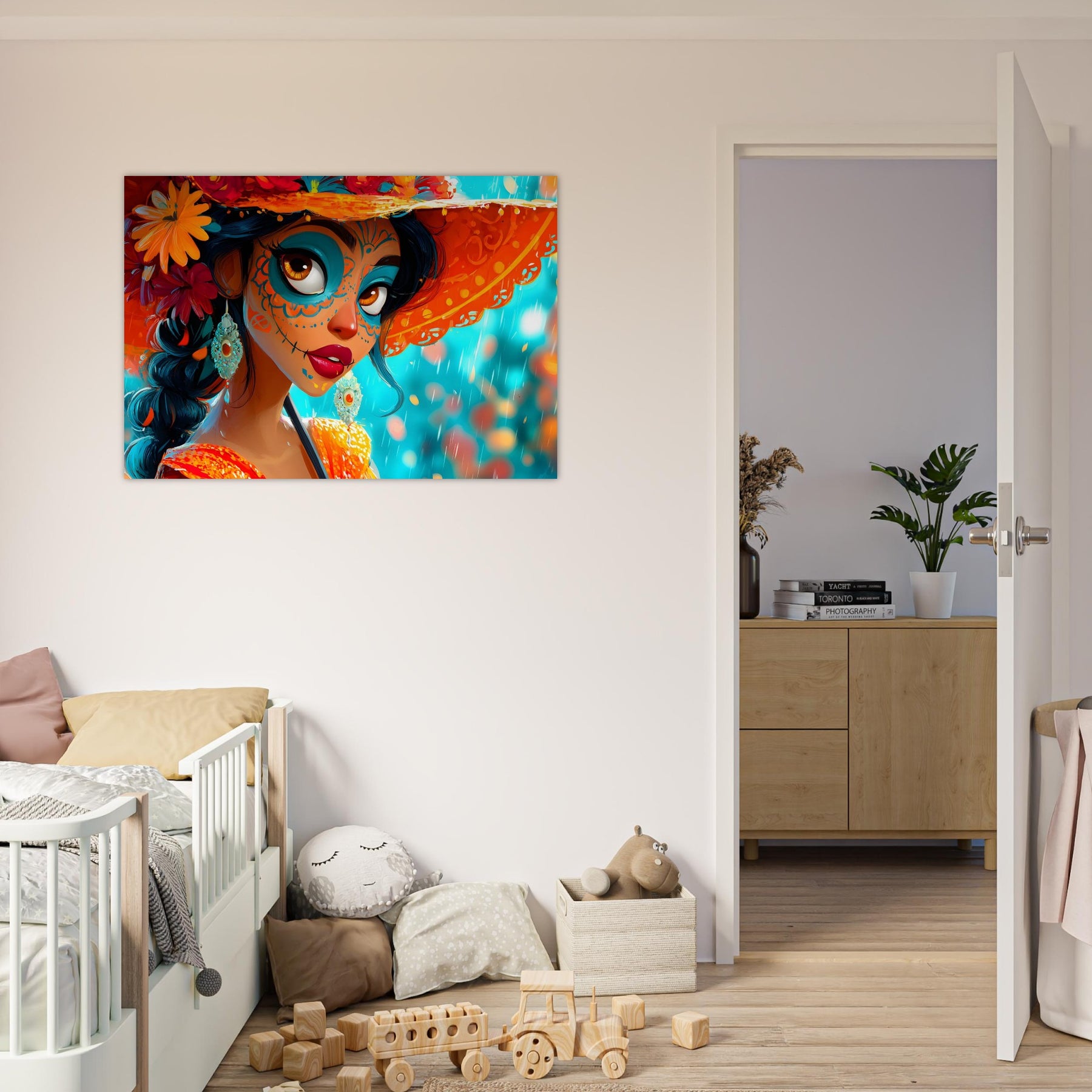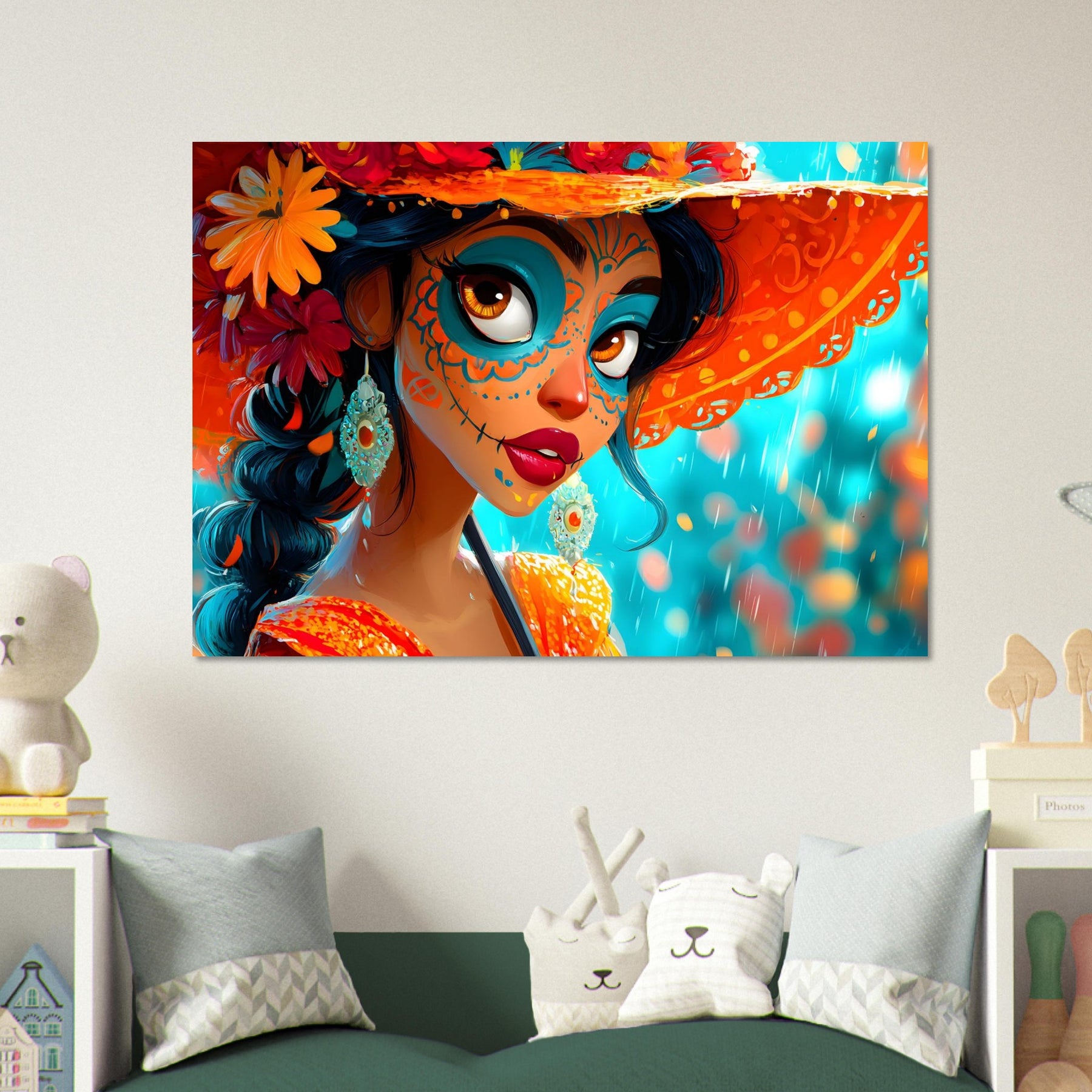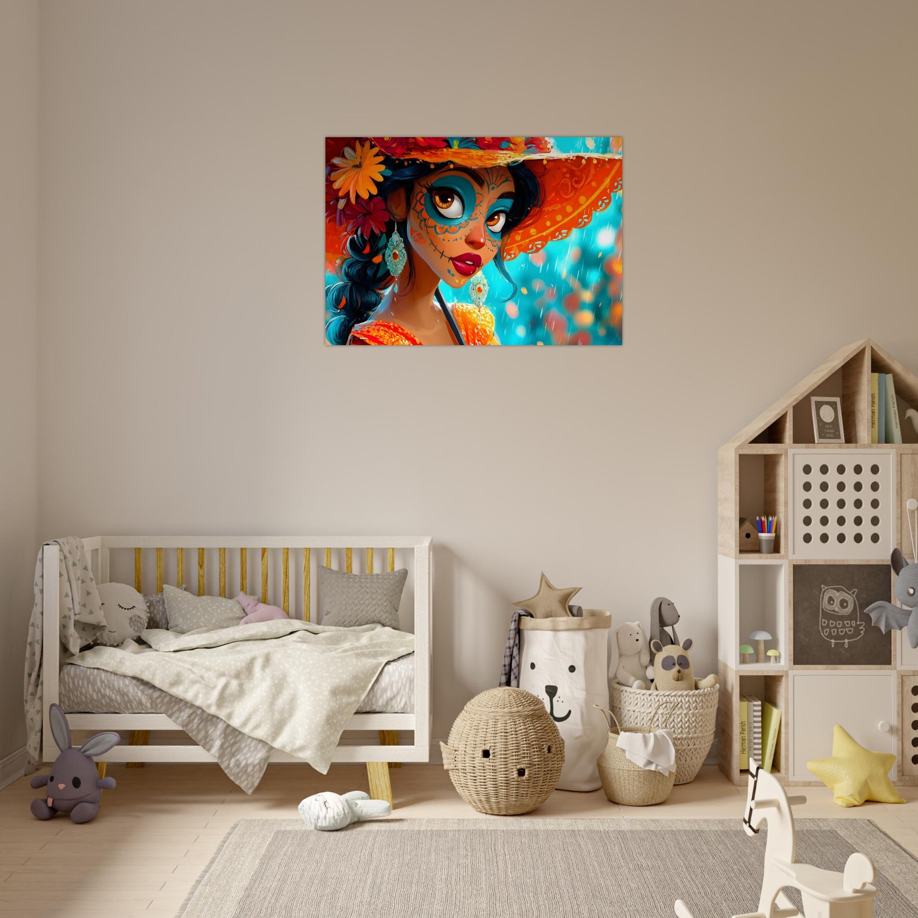 Bring playful color and cultural magic into your child’s space with Rainy Day Fiesta, a vibrant foam board wall art piece designed for easy decorating. Featuring a cheerful girl with beautifully painted facial designs and a bright floral hat, this artwork captures the joy of celebration in a dreamy rain-kissed scene.