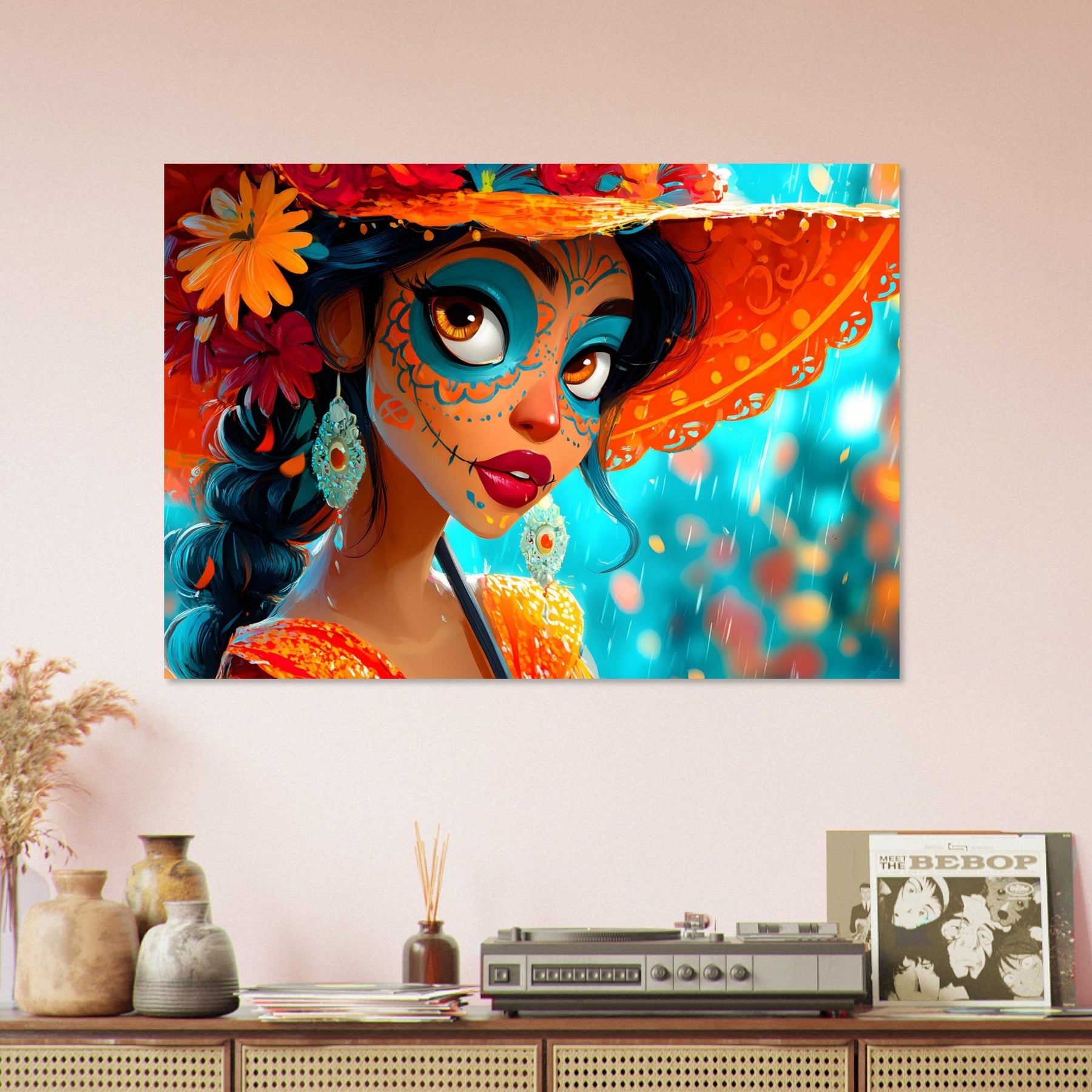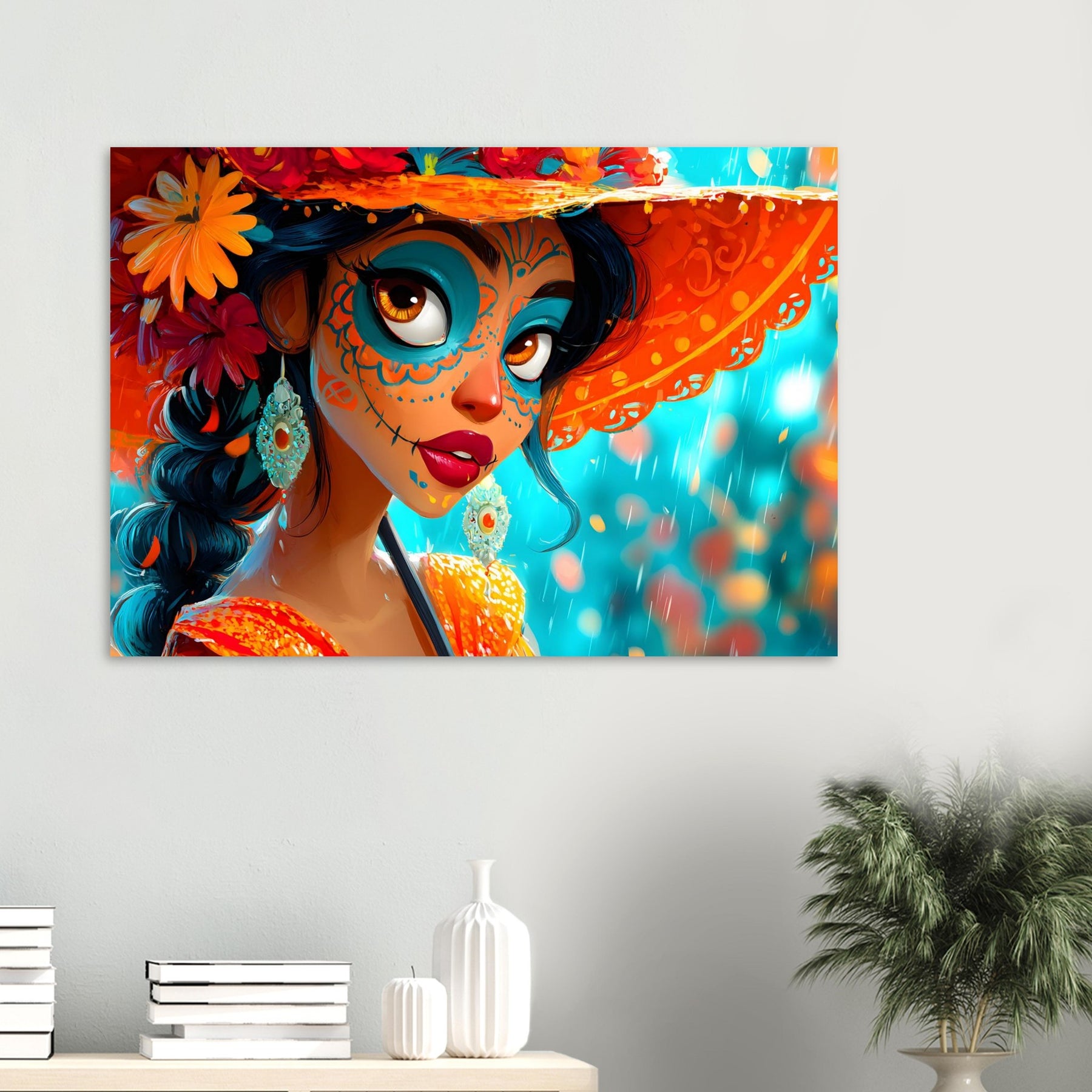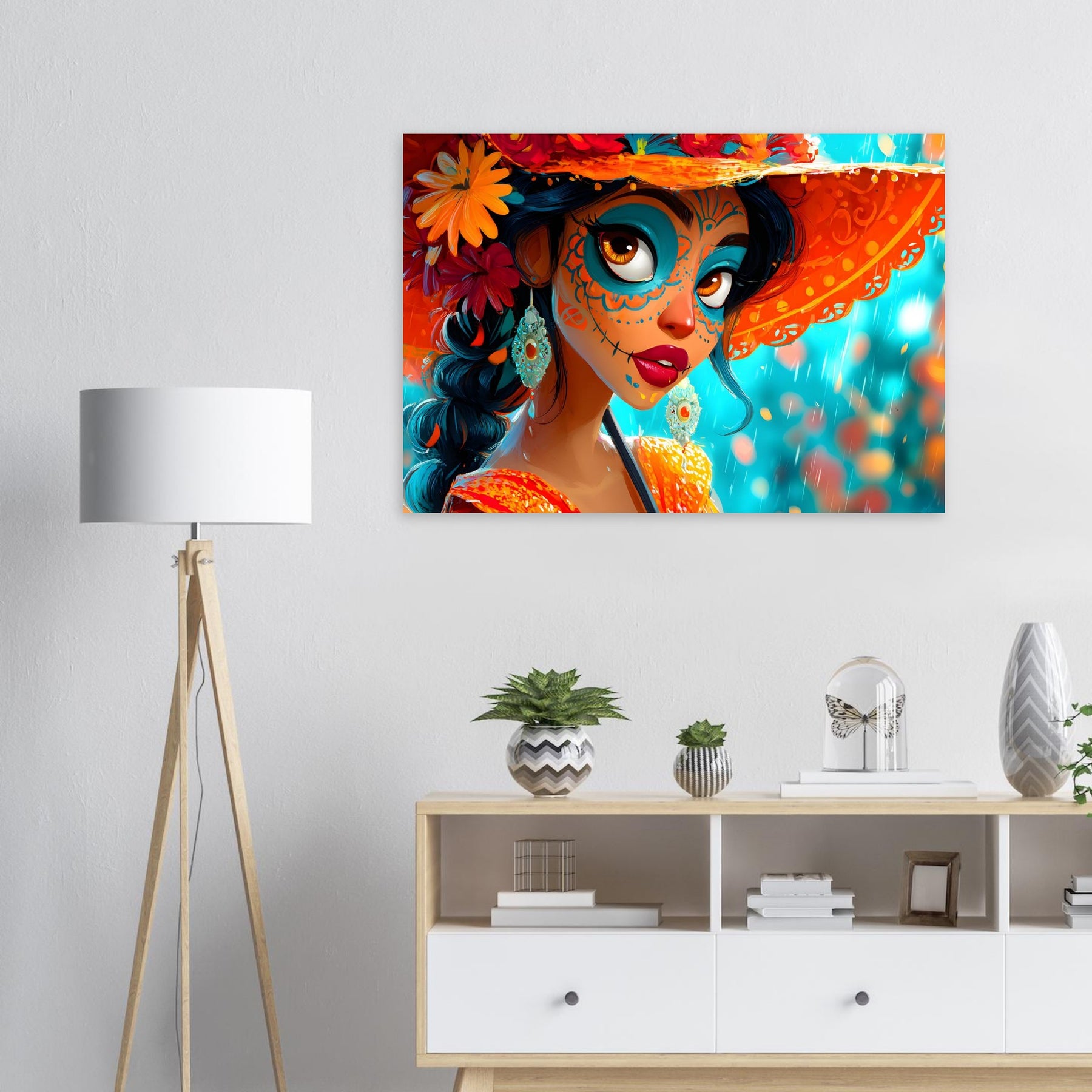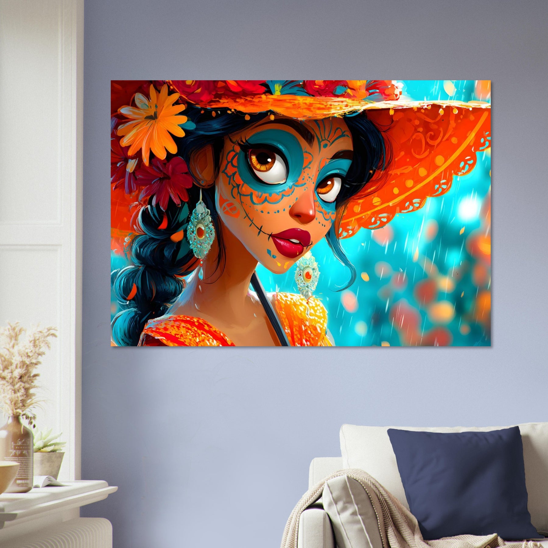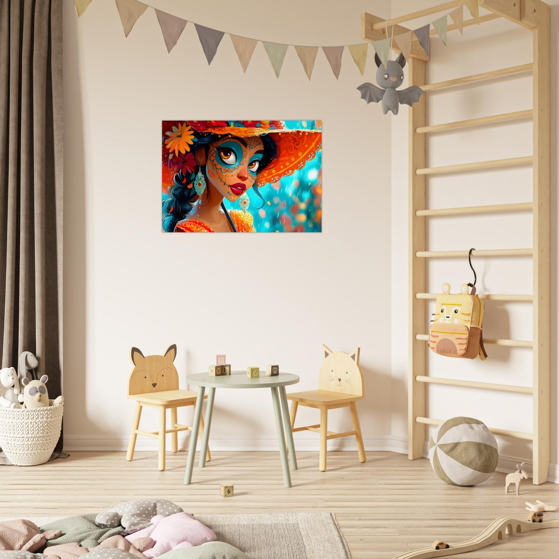 Bring playful color and cultural magic into your child’s space with Rainy Day Fiesta, a vibrant foam board wall art piece designed for easy decorating. Featuring a cheerful girl with beautifully painted facial designs and a bright floral hat, this artwork captures the joy of celebration in a dreamy rain-kissed scene.