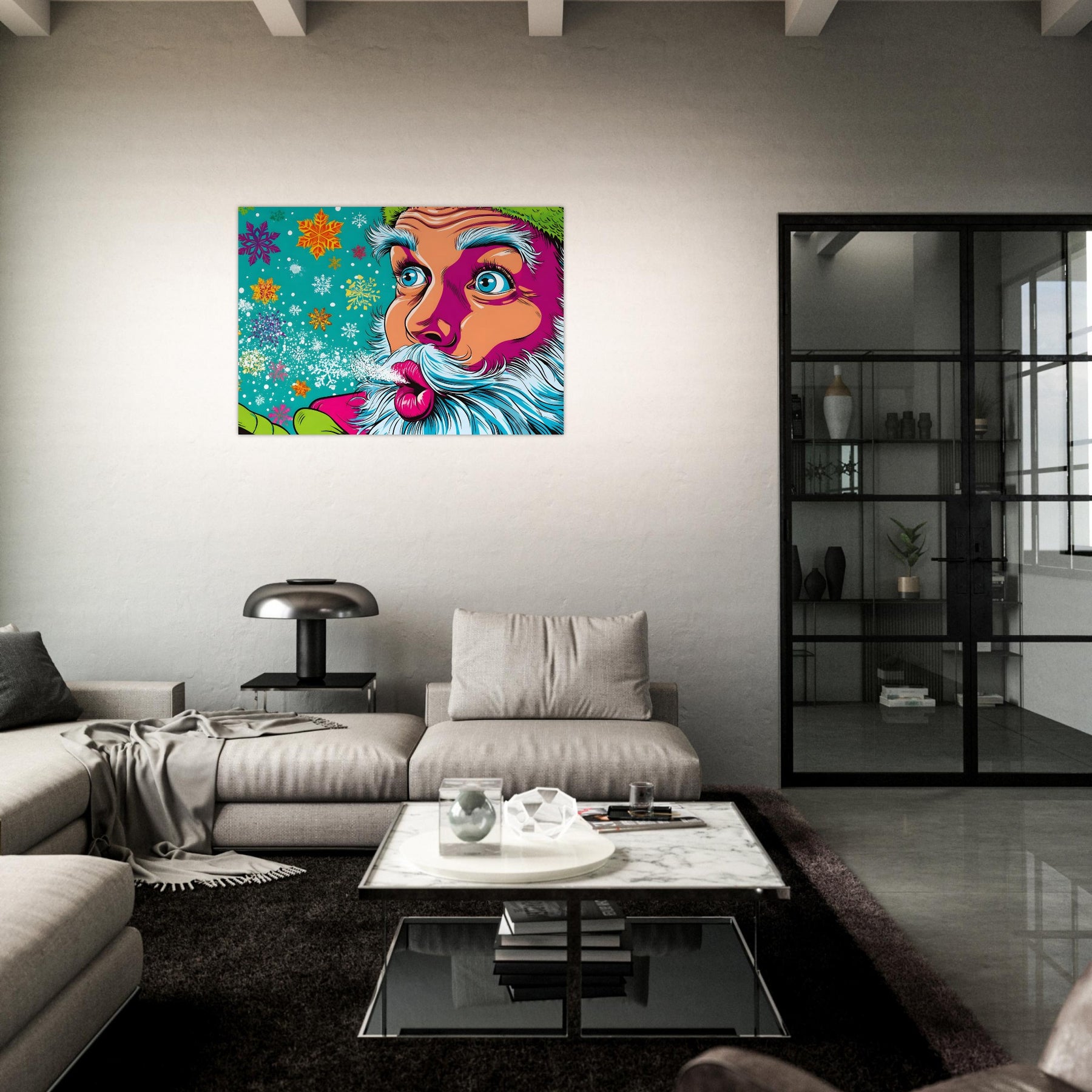 Snowflake Santa Pop – Pop Art Aluminum Holiday Wall Art