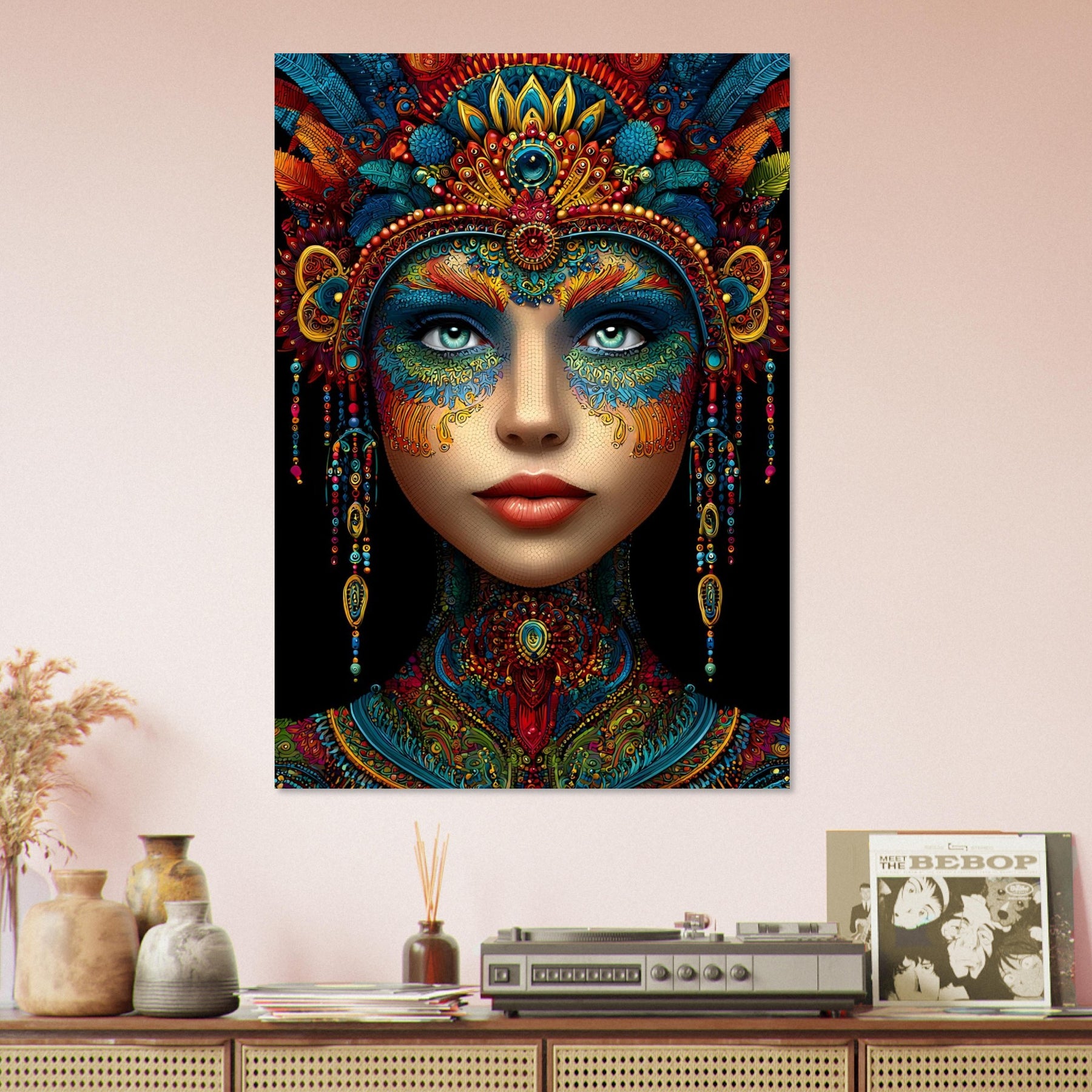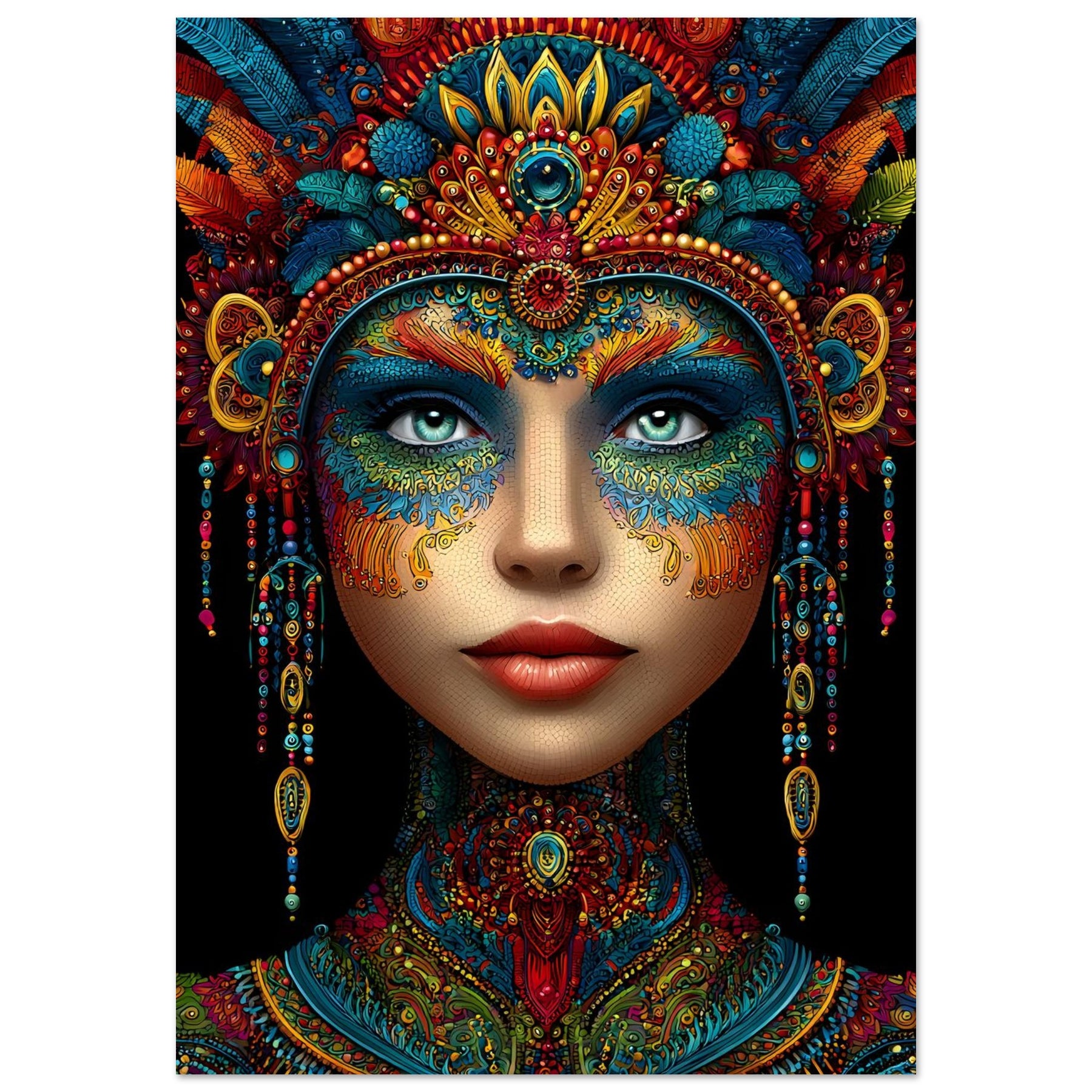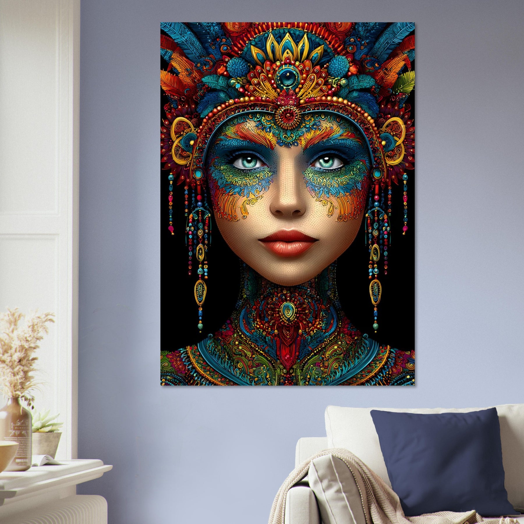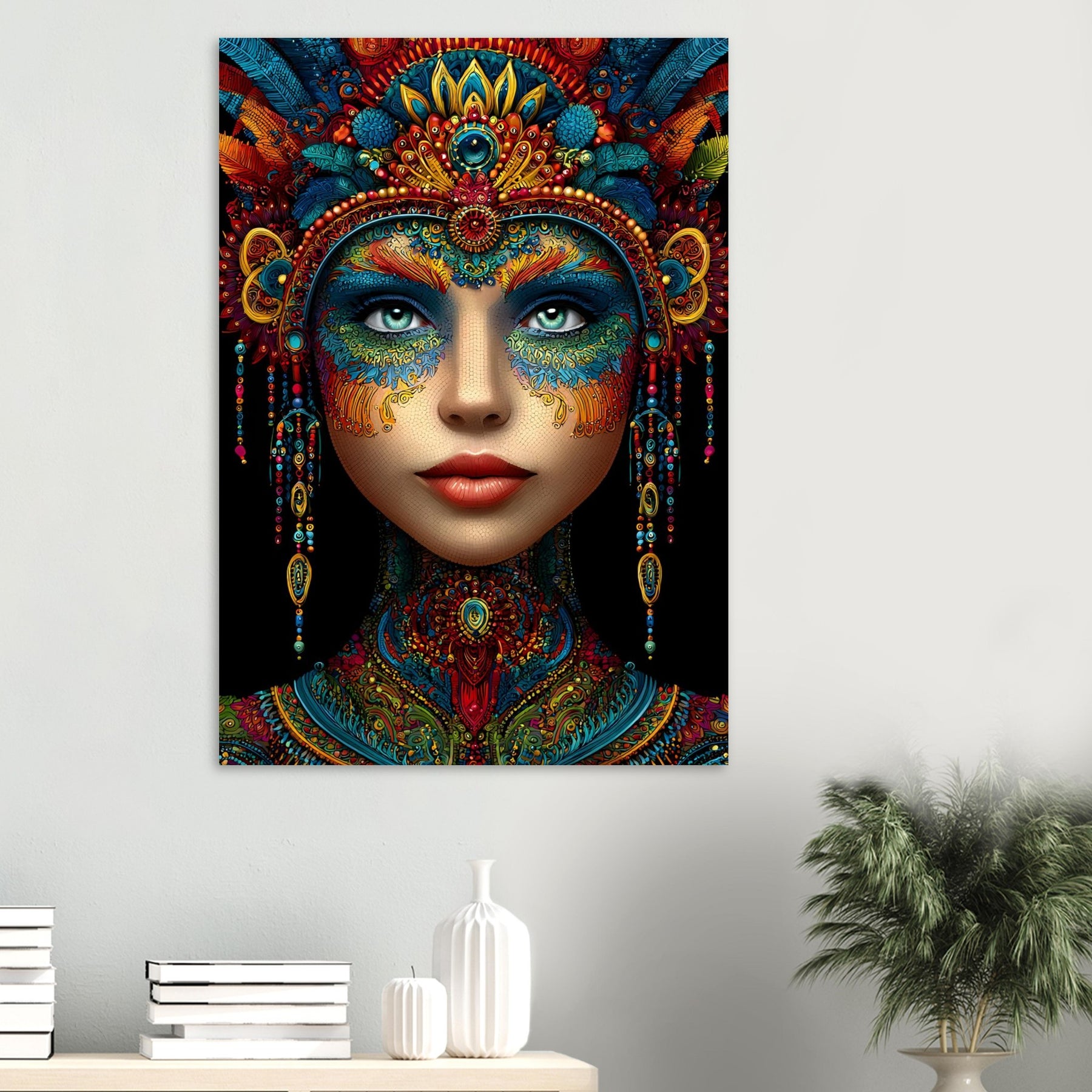Celebrate beauty, heritage, and artistic expression with Cultural Muse, a striking aluminum wall art featuring a vibrant portrait of a woman adorned with intricate patterns and rich ornamental details. Every element reflects cultural depth, craftsmanship, and visual storytelling, creating a powerful and elegant focal point.