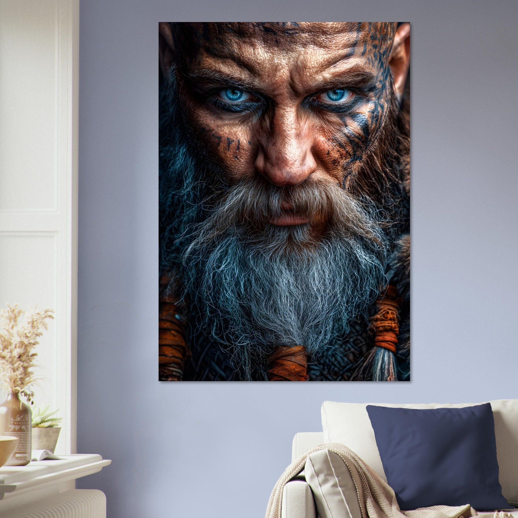 Add striking style to your space with Warrior of the Blue Flame, a dynamic foam board wall art piece that delivers bold visuals with a modern, lightweight finish. This intense portrait features a fierce warrior with mesmerizing blue eyes and intricate facial tattoos—perfect for contemporary, minimalist, or creative décor.