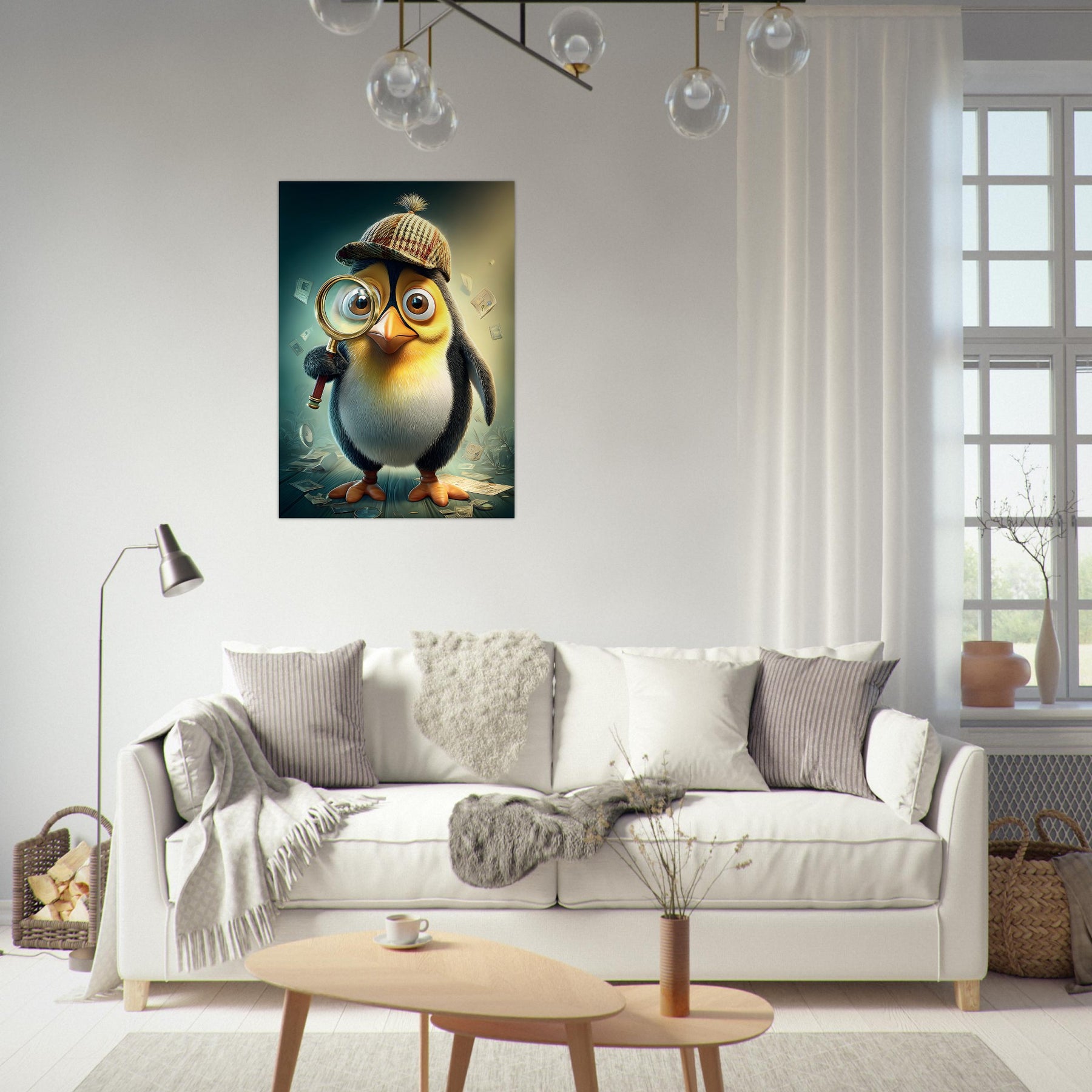 Add a touch of curiosity and charm to your child’s room with the Detective Penguin Aluminum Wall Art — a delightful piece that captures the magic of imagination and storytelling. This whimsical illustration features an adorable penguin detective, complete with a classic hat and magnifying glass, surrounded by scattered papers and a warm, golden glowthat sets the perfect mysterious mood.