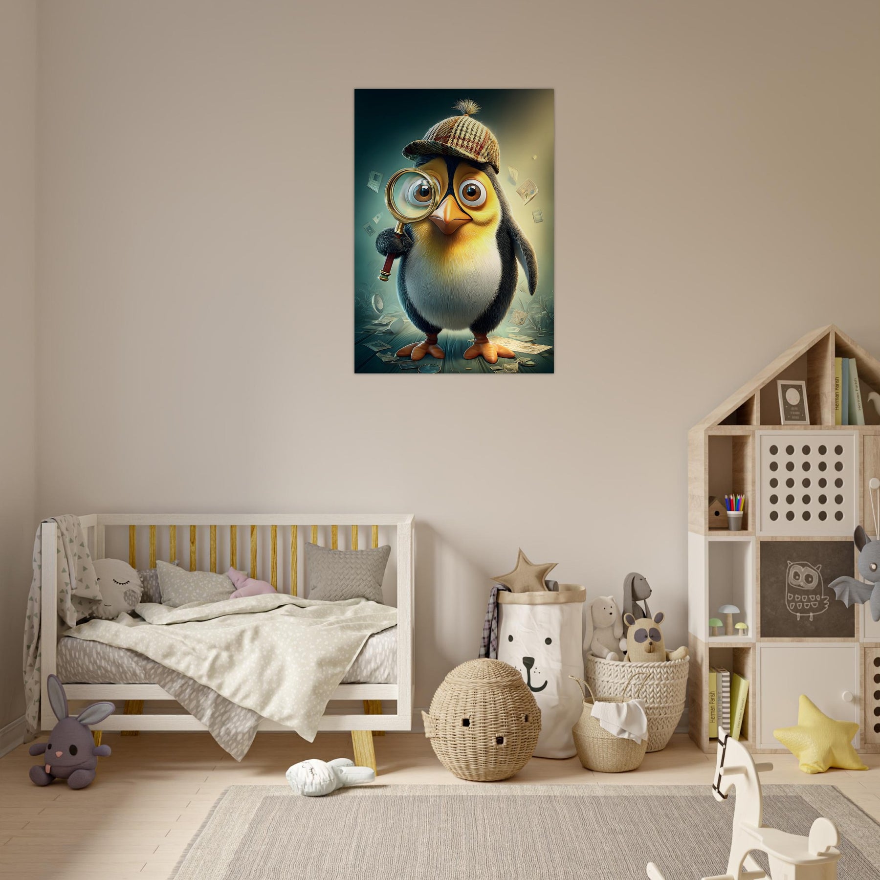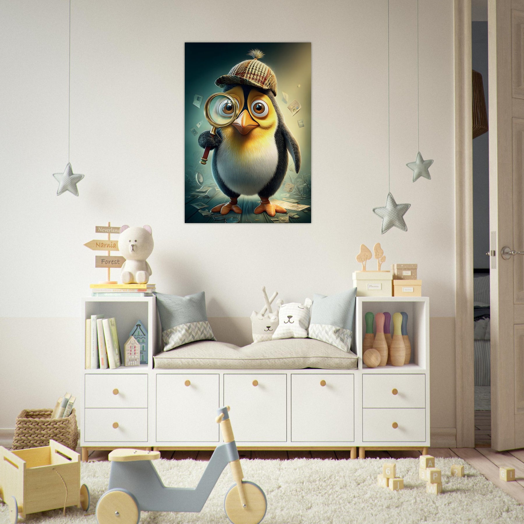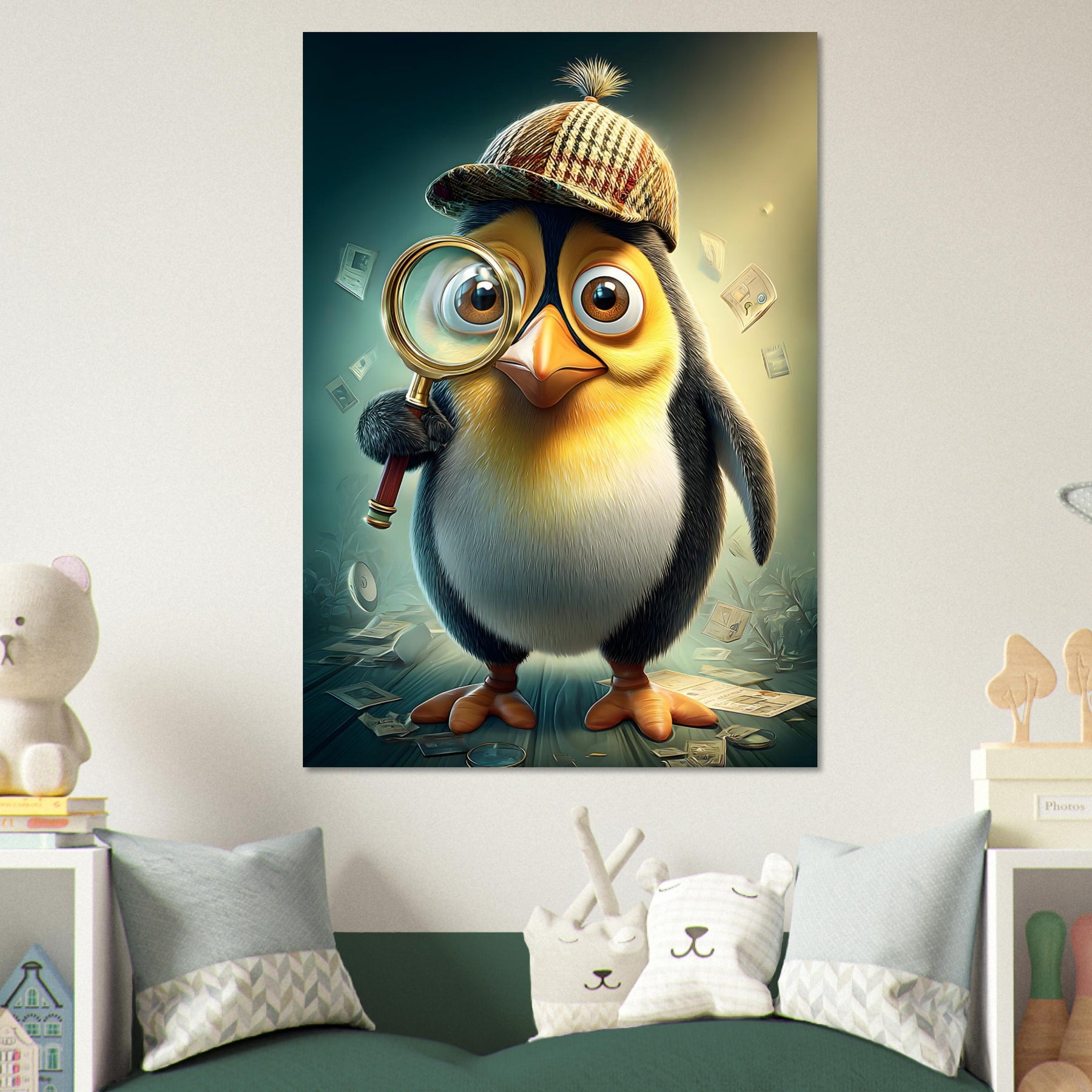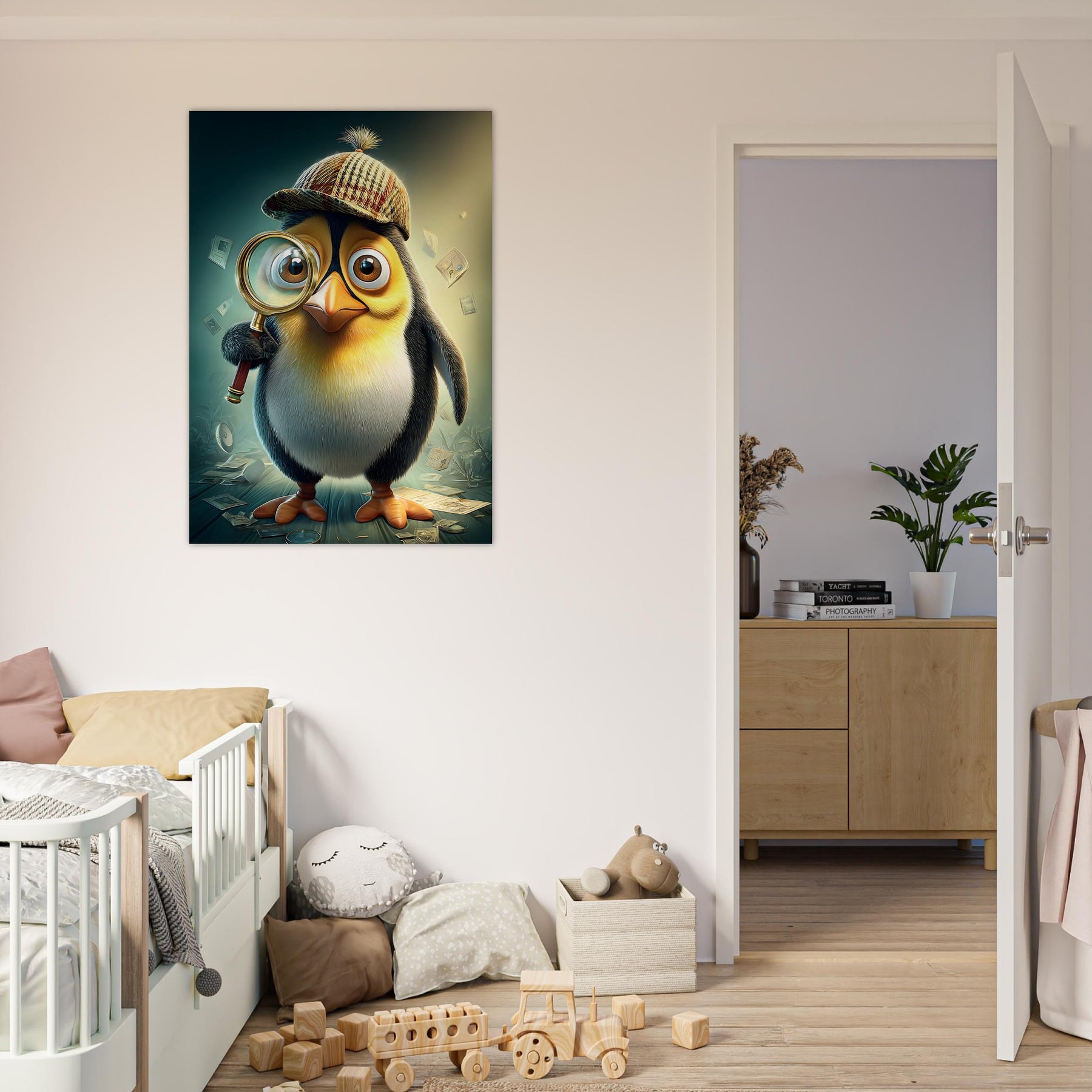 Uncover the charm of Detective Penguin — a captivating aluminum wall art that brings imagination, mystery, and heartwarming style to your child’s room.