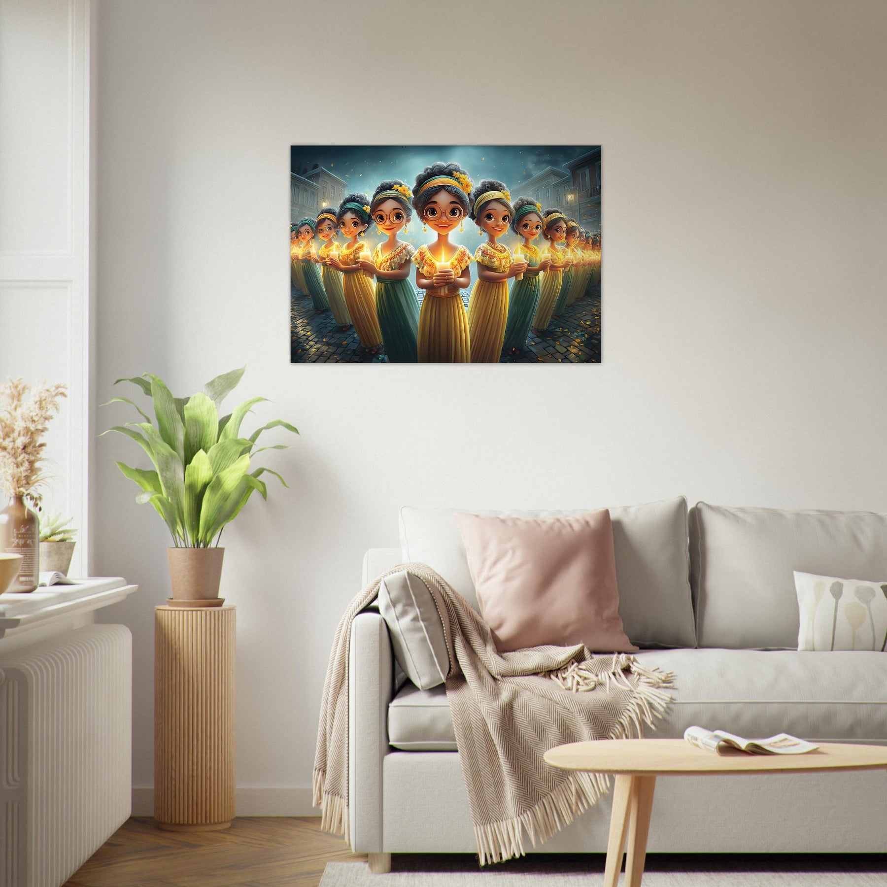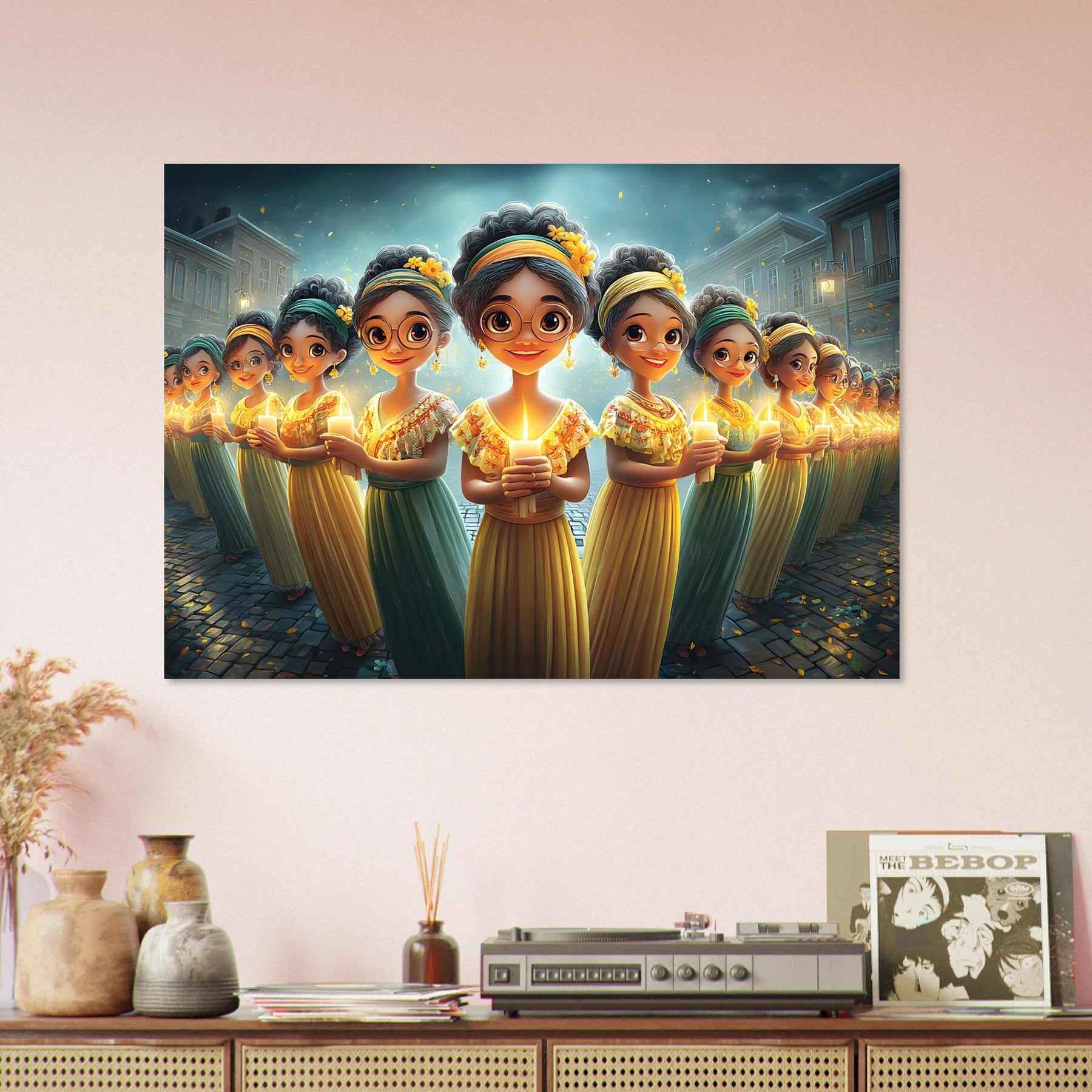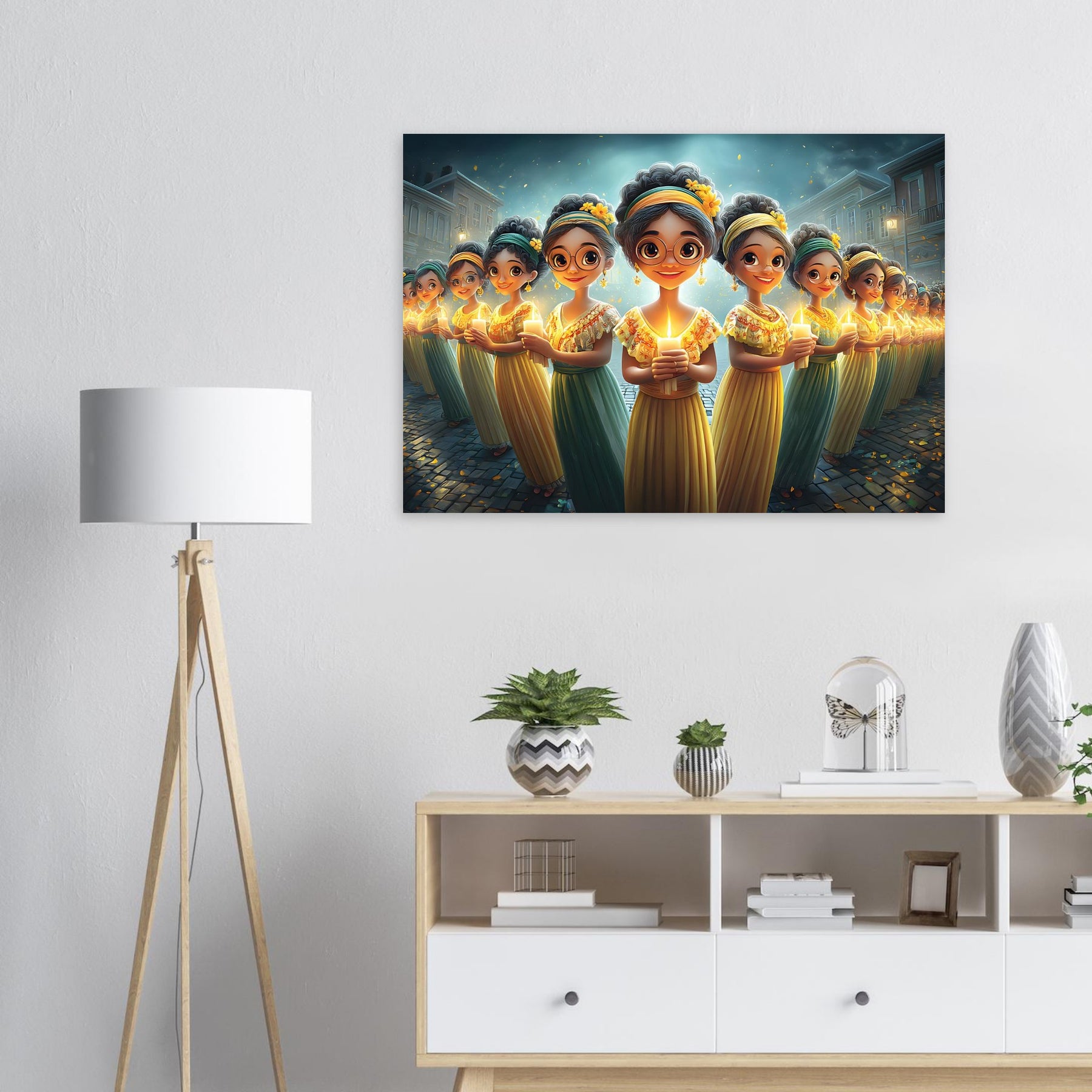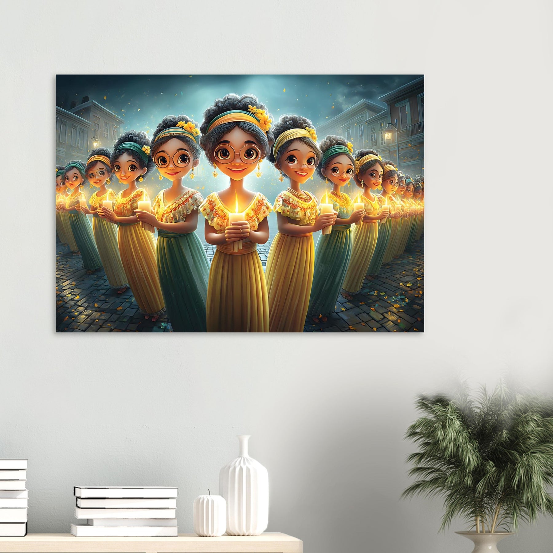 Brighten your child’s room with Festival of Lights, a heartwarming aluminum wall art illustration that captures the magic of celebration and togetherness. This enchanting artwork features charming characters holding glowing candles, surrounded by a dreamy, festive atmosphere that radiates warmth, joy, and community spirit.
