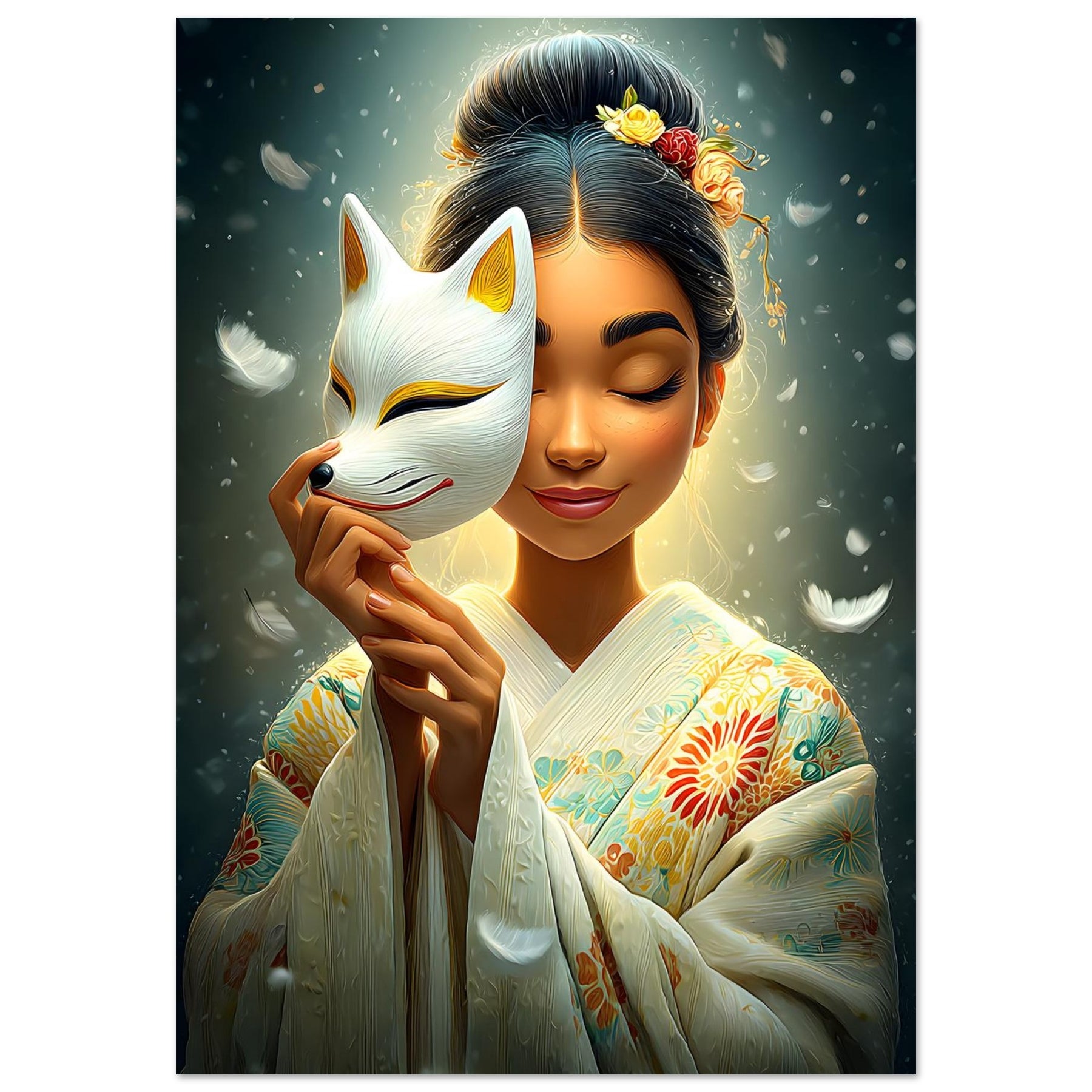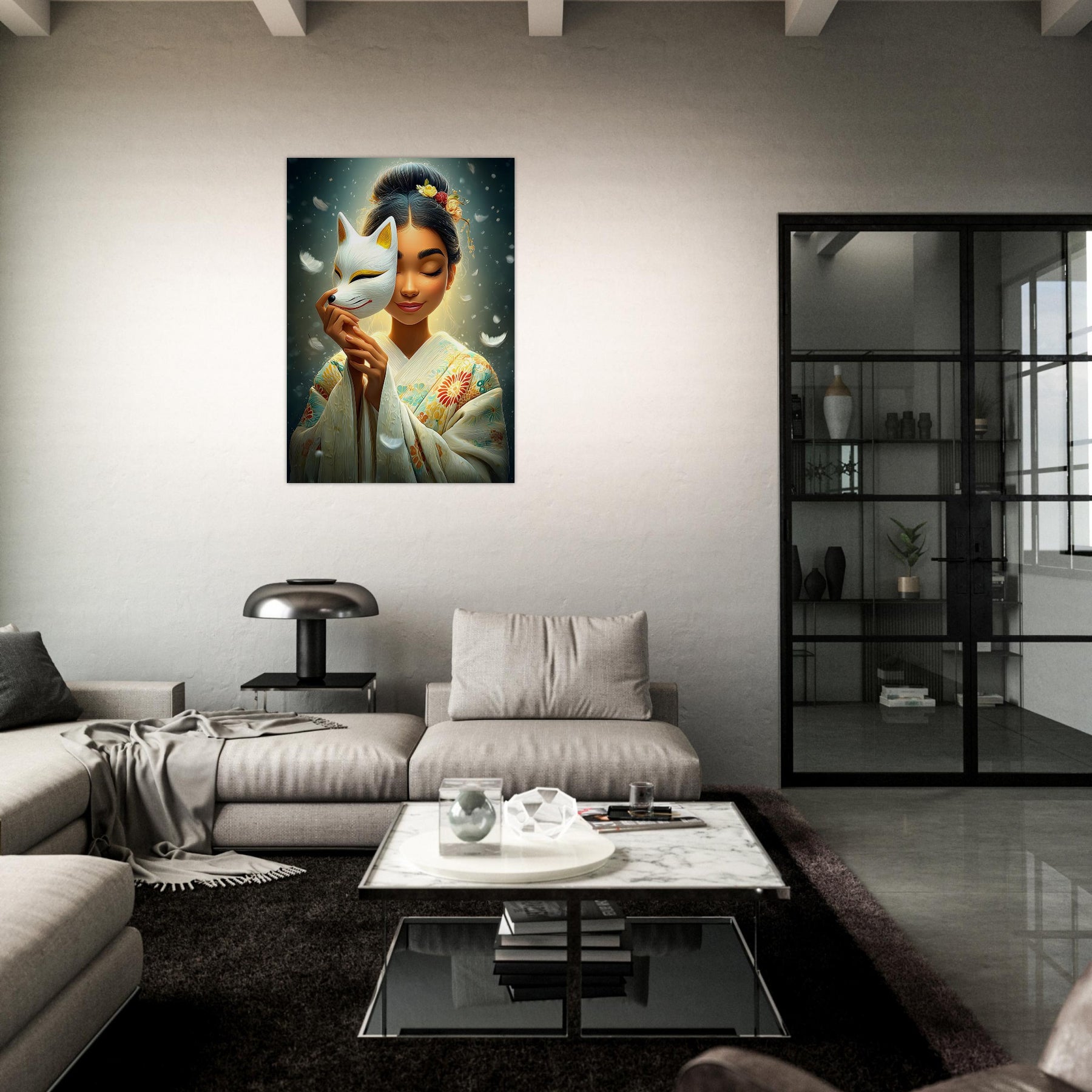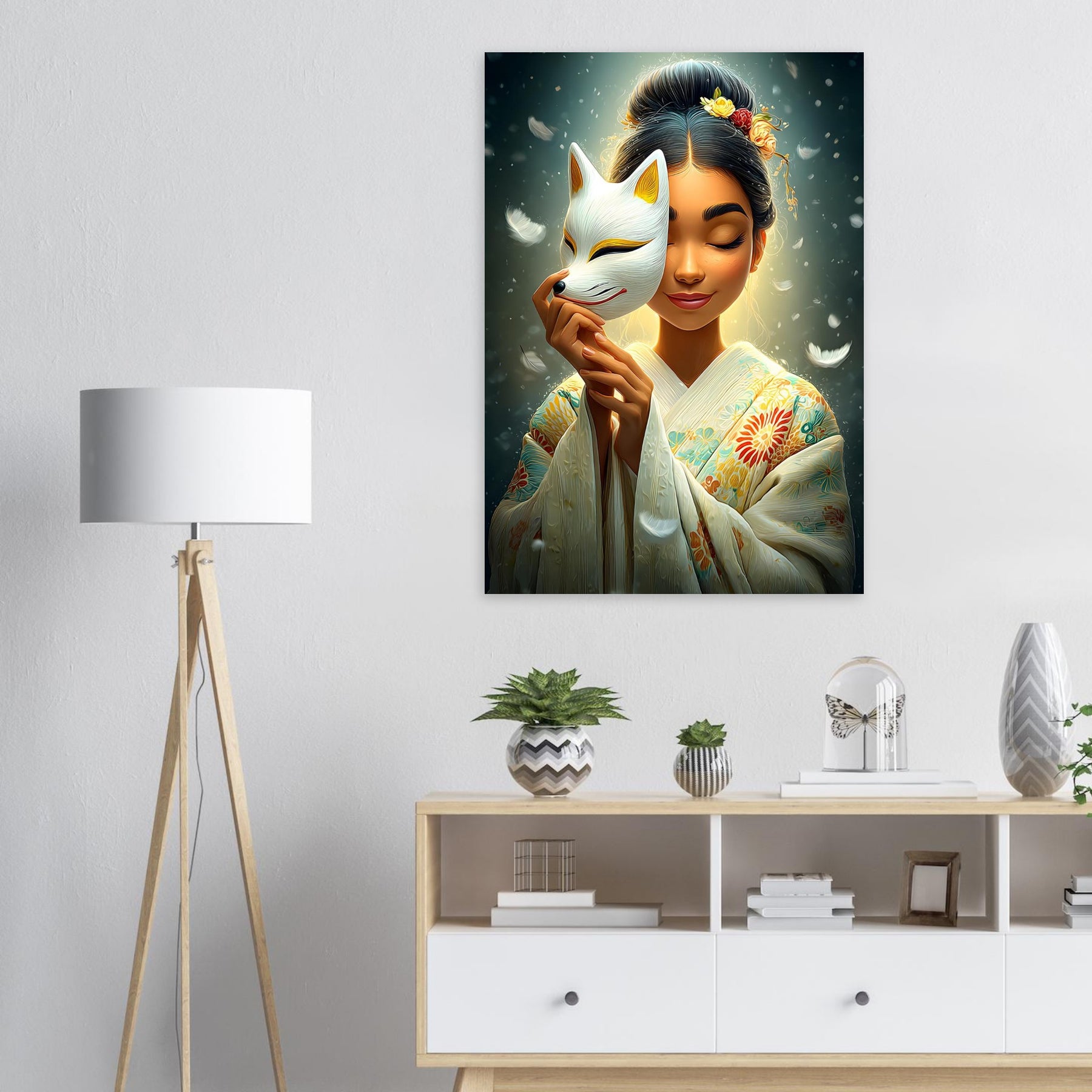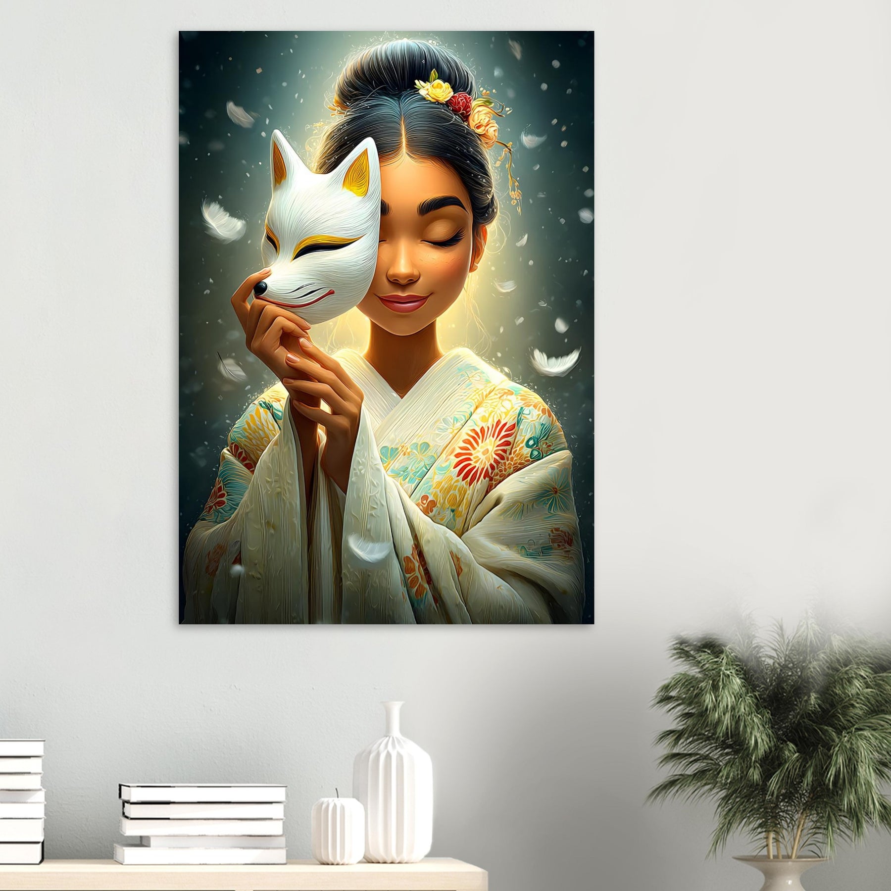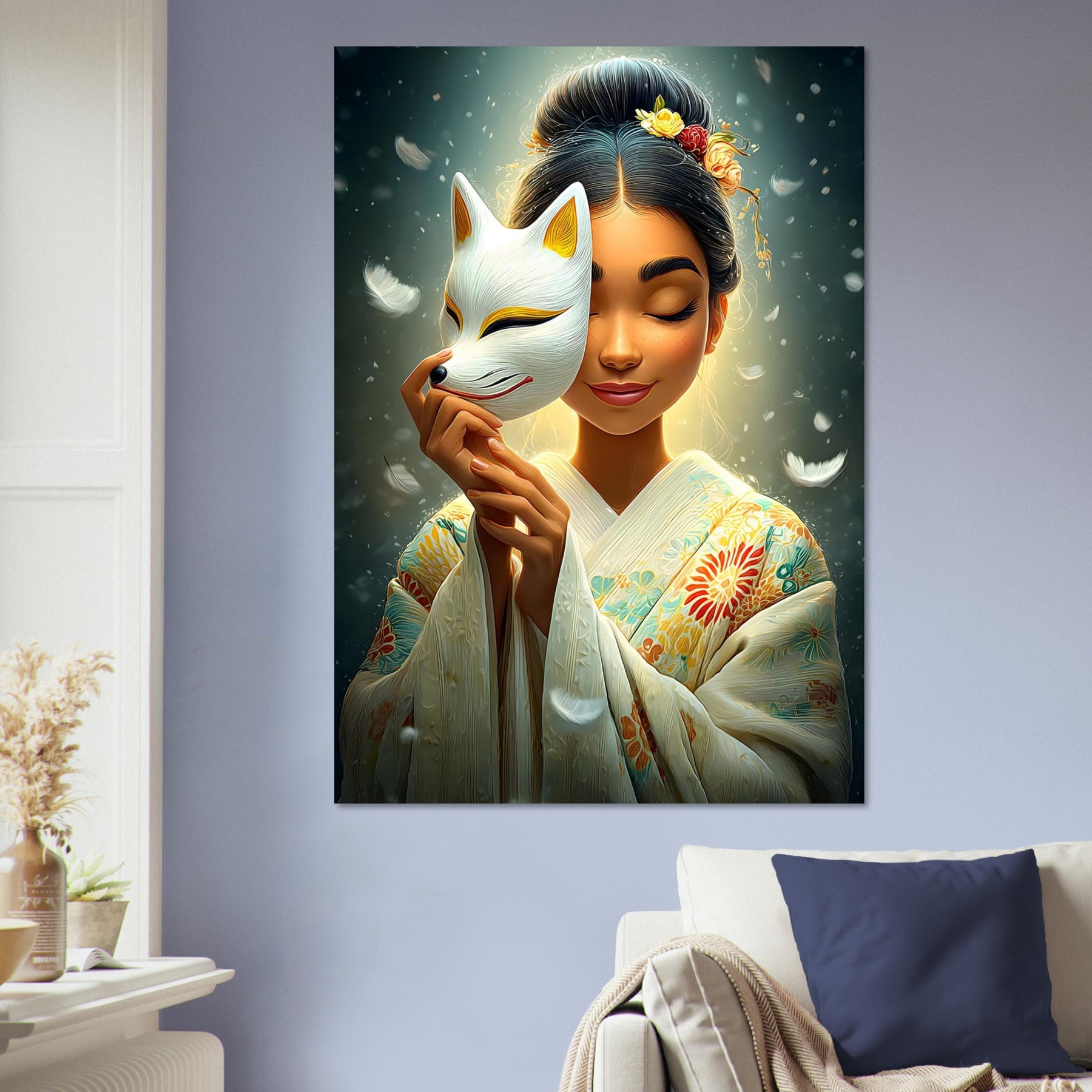 Transform your child’s room into a world of beauty and imagination with Mystic Fox Maiden, a captivating whimsical aluminum illustration that blends elegance, tradition, and storytelling. This enchanting artwork features a young woman wearing a graceful fox mask, symbolizing mystery, culture, and timeless folklore. Surrounded by delicate petals and soft, glowing light, the scene radiates serenity, depth, and artistic charm.
