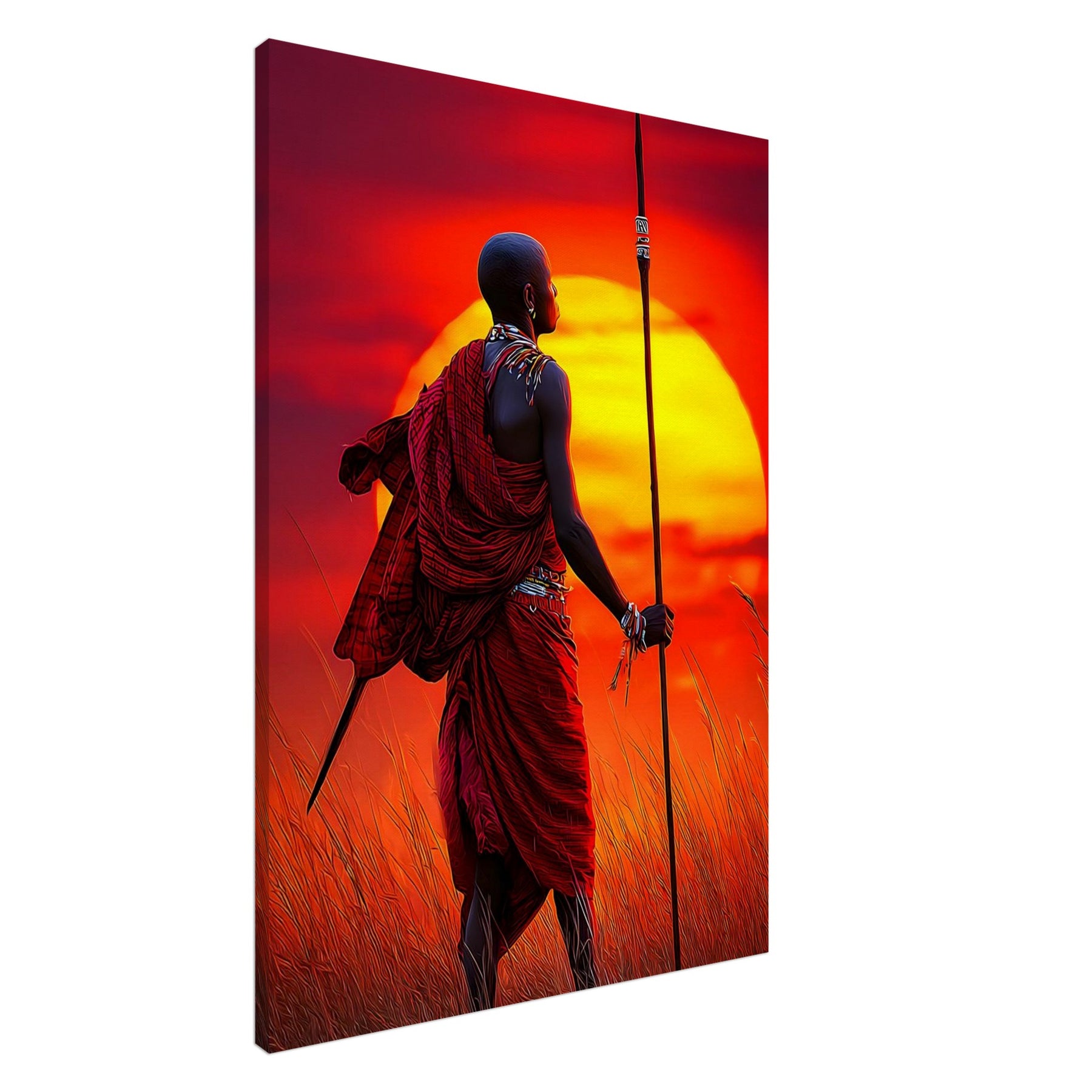 Maasai Sunset Warrior – Canvas Cultural Portrait Wall Art