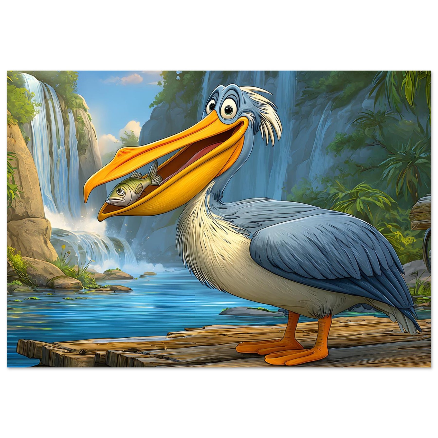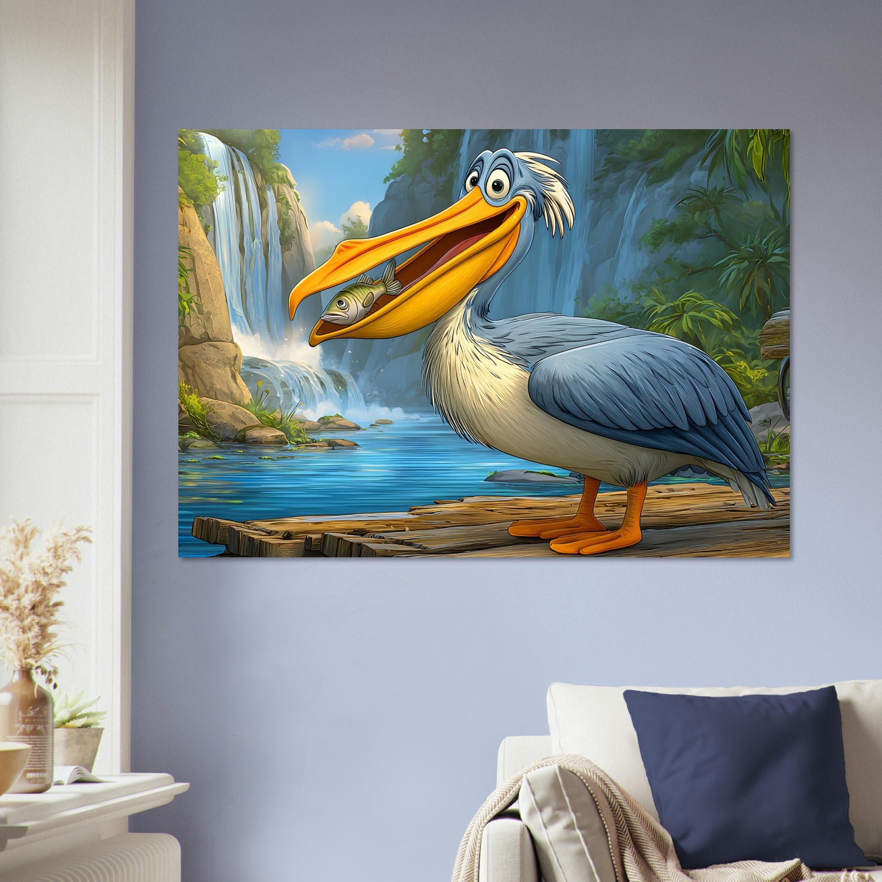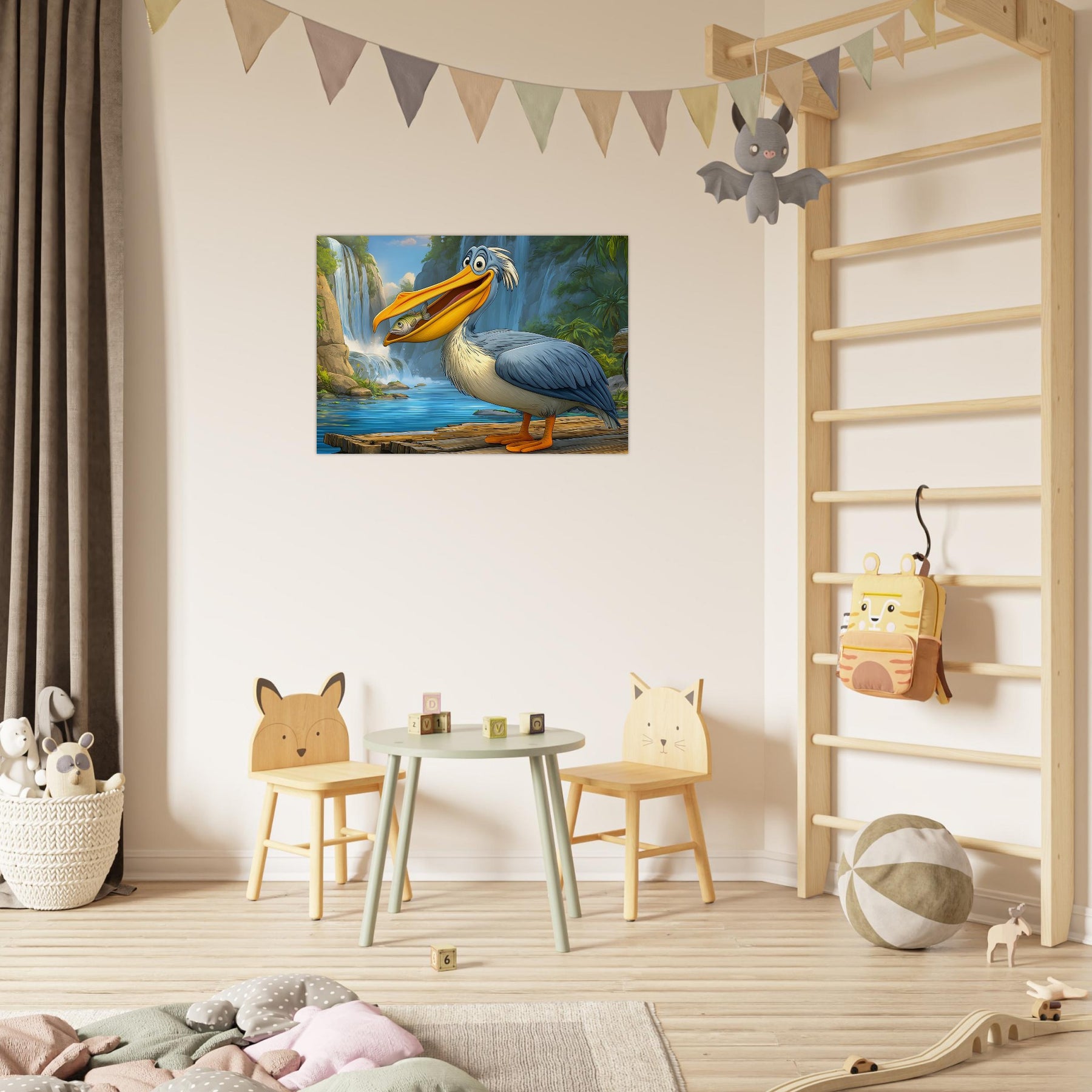 Add joy and color to your child’s space with Happy Pelican Adventure, a playful foam wall art piece made for kids’ rooms. The smiling pelican, lush green background, and flowing waterfalls create a lighthearted scene that feels friendly, fun, and comforting.
