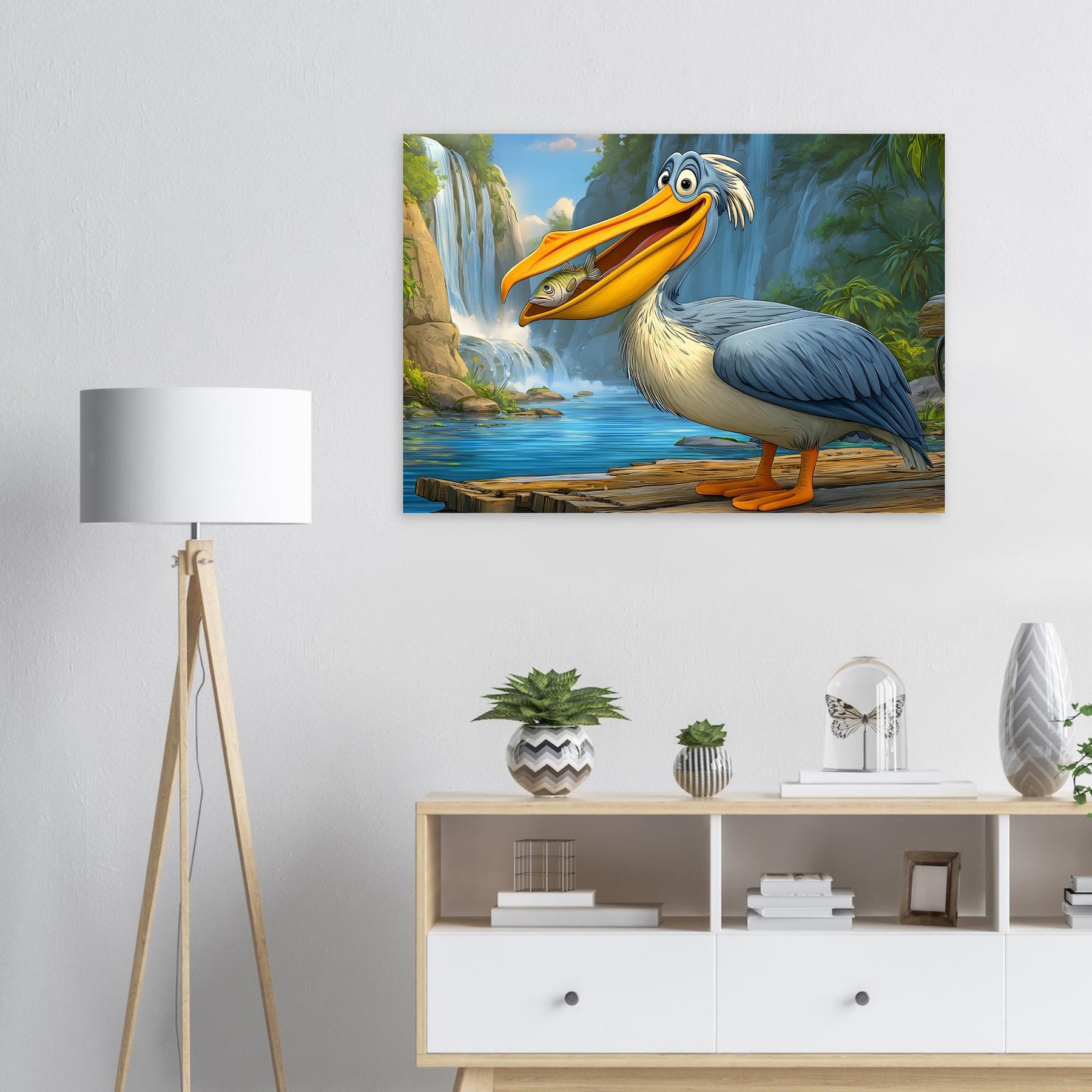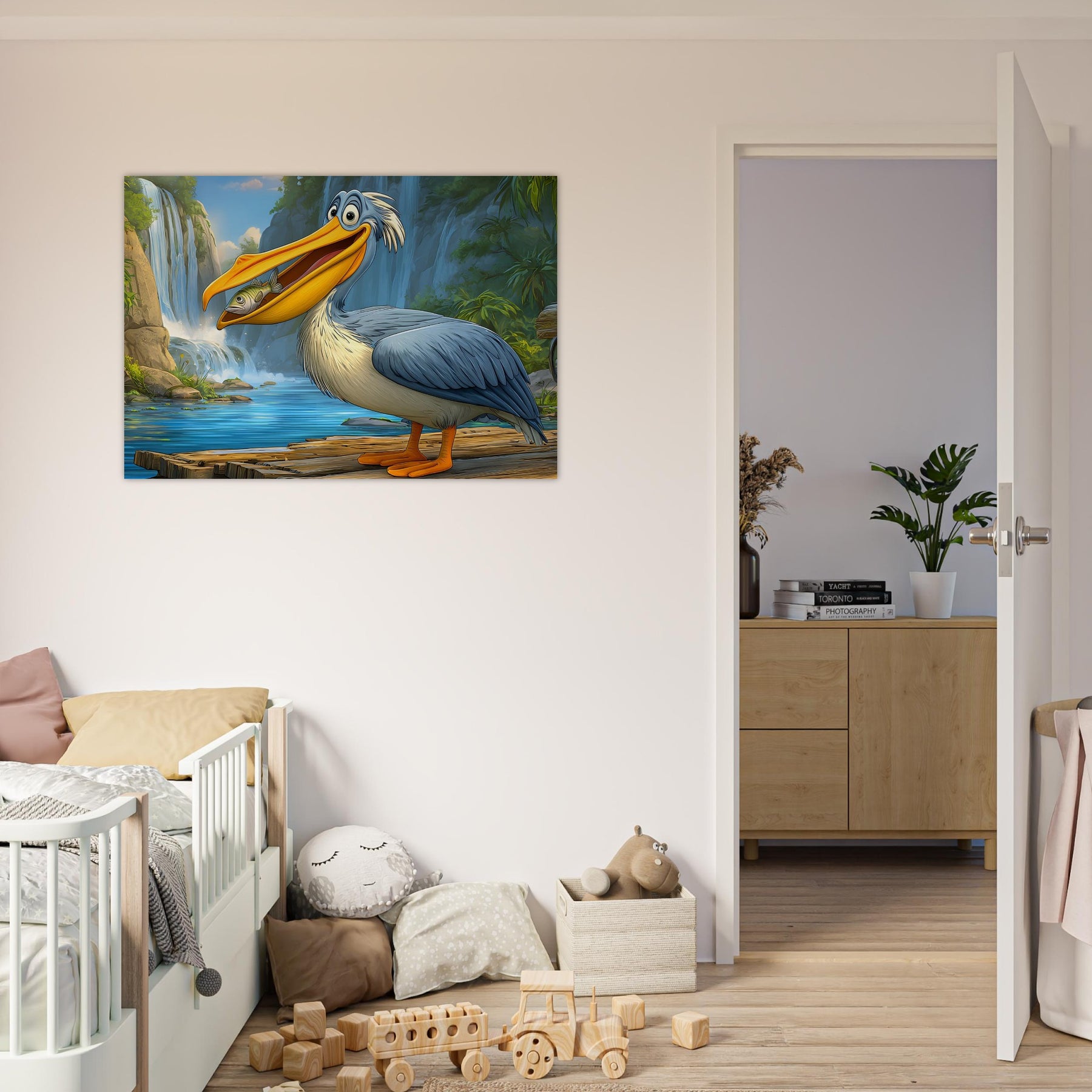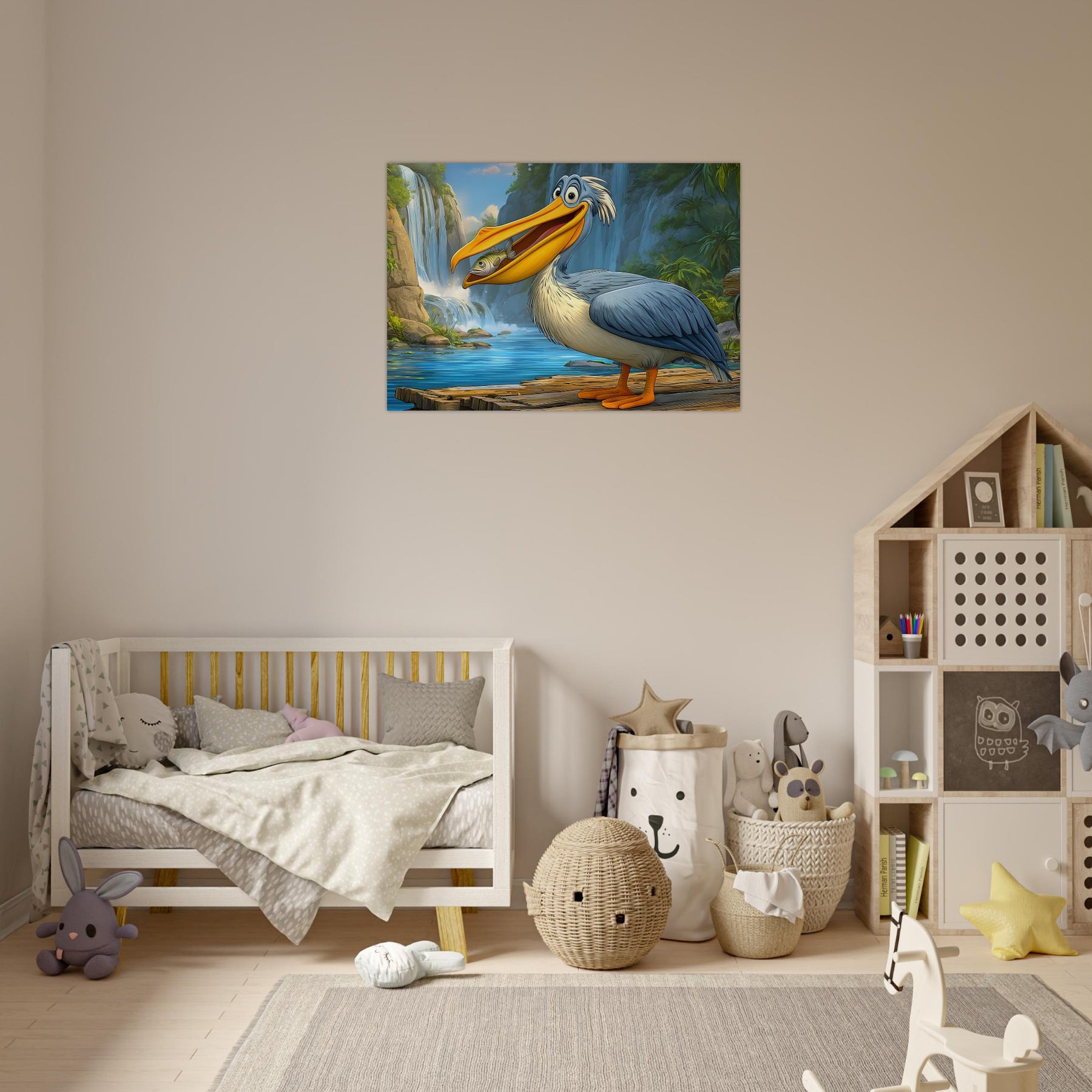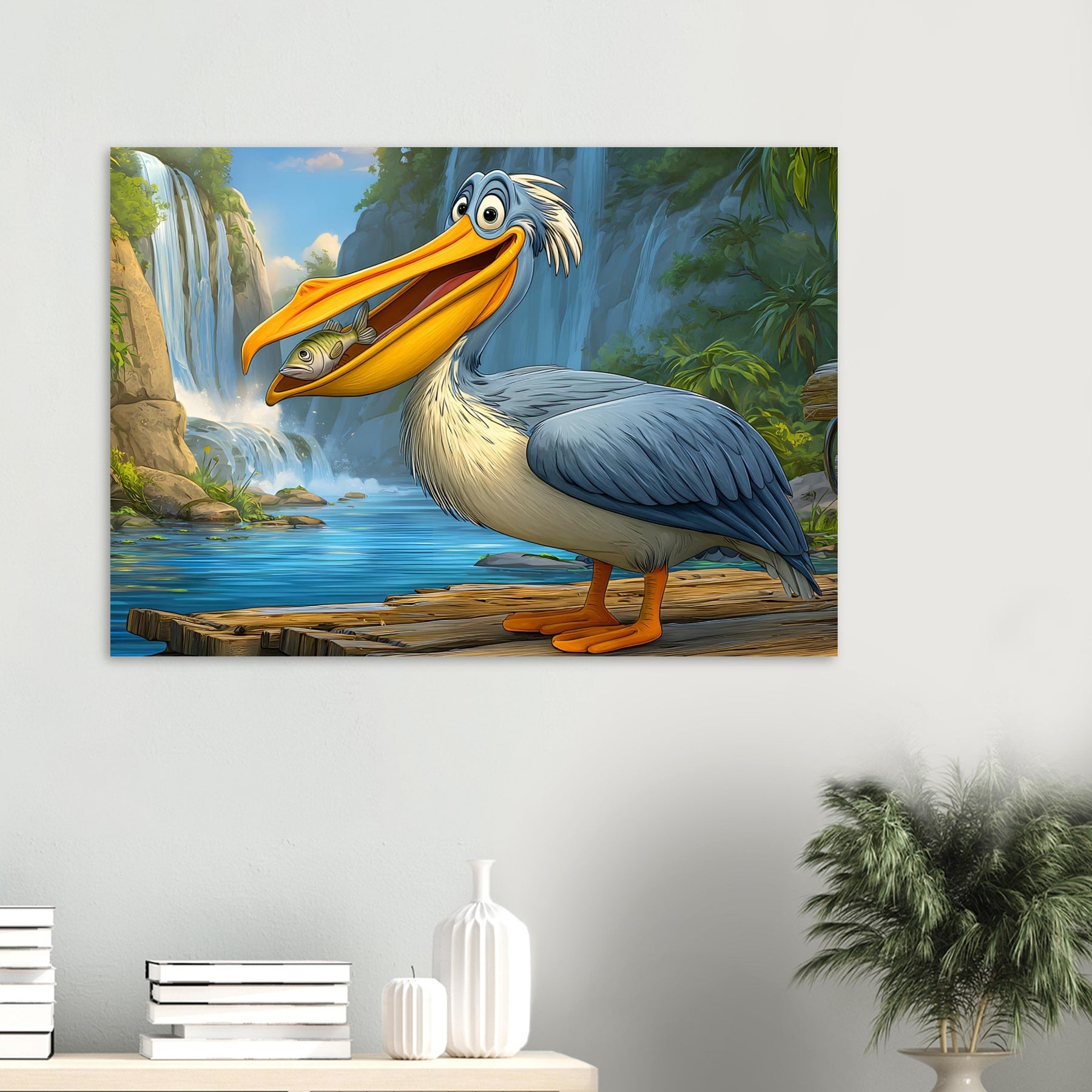 Add joy and color to your child’s space with Happy Pelican Adventure, a playful foam wall art piece made for kids’ rooms. The smiling pelican, lush green background, and flowing waterfalls create a lighthearted scene that feels friendly, fun, and comforting.