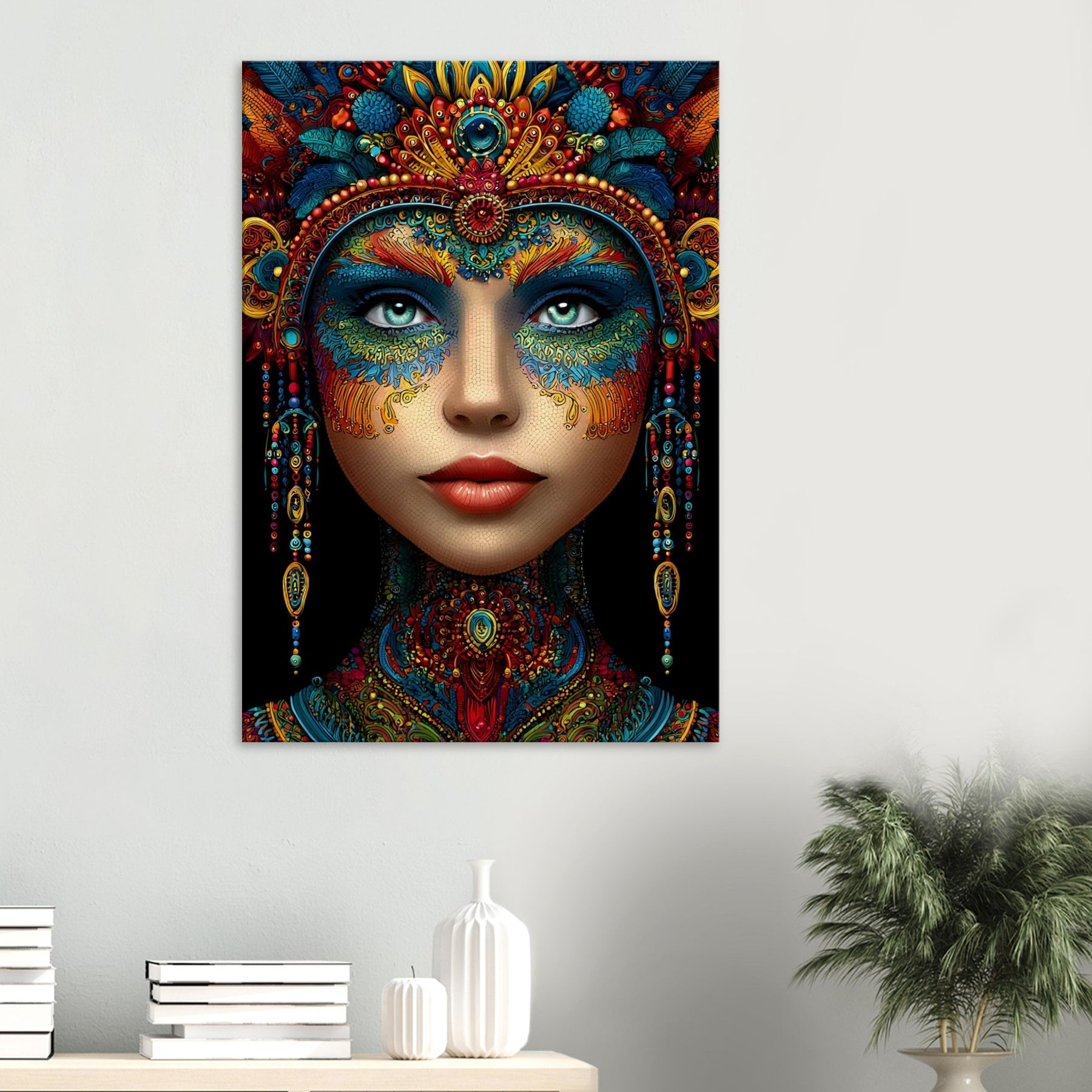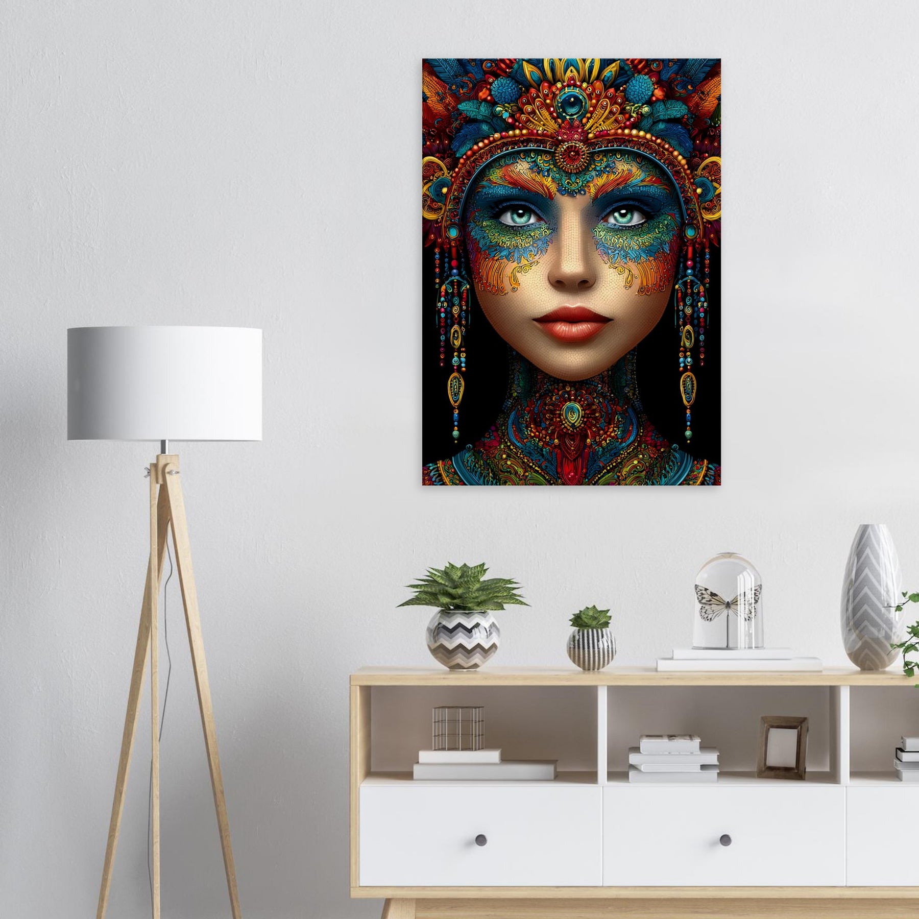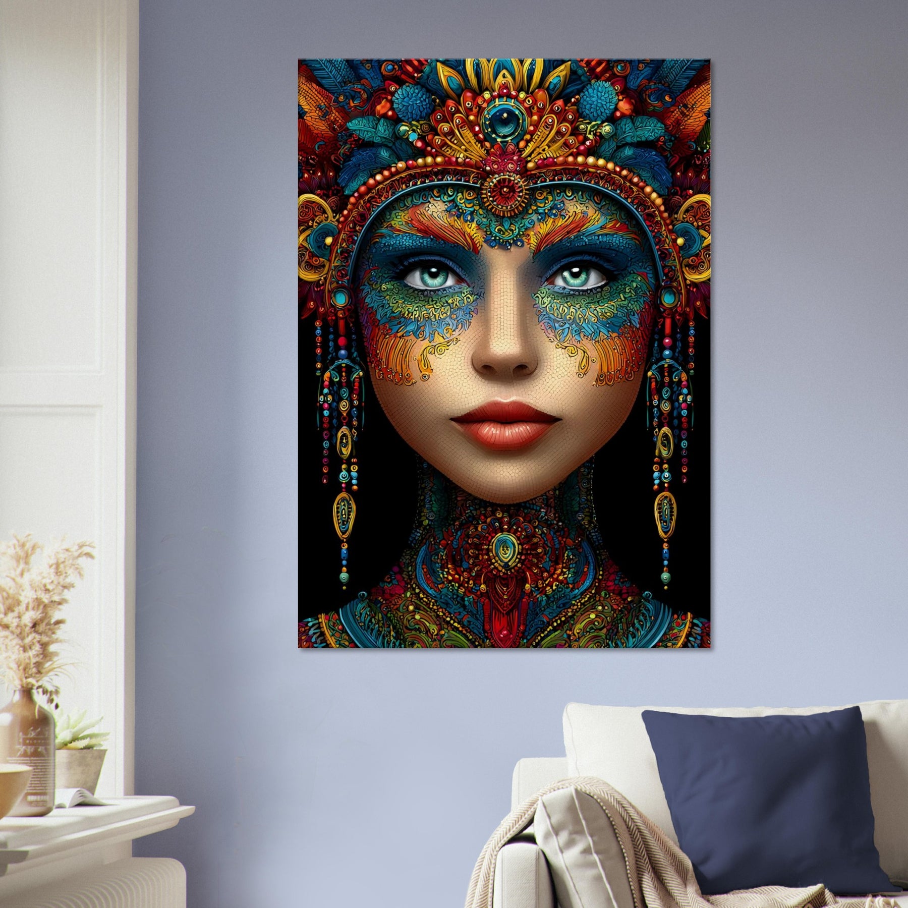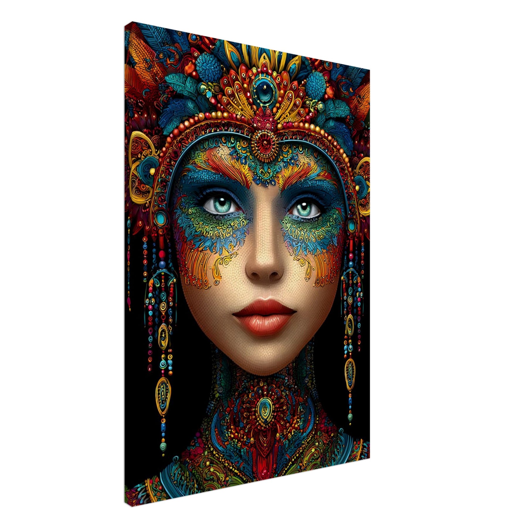 Bring warmth and artistic soul into your space with Cultural Muse, a beautiful canvas wall art showcasing a vibrant portrait of a woman enriched with intricate patterns and cultural artistry. The detailed design and expressive colors create a sense of heritage, creativity, and timeless beauty.