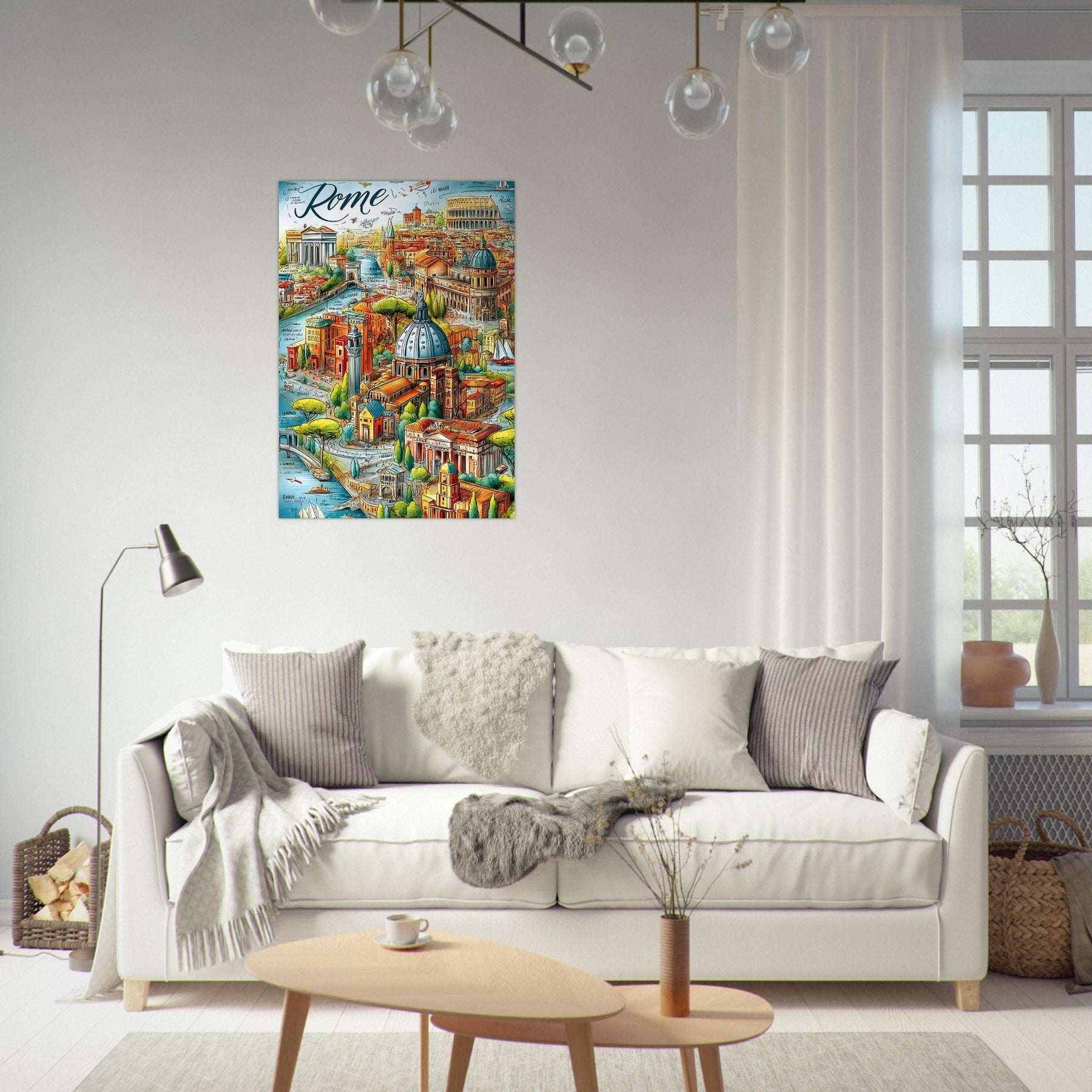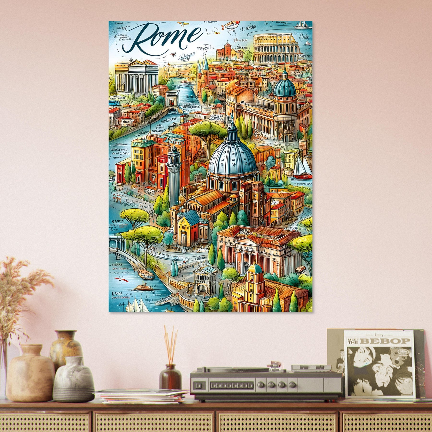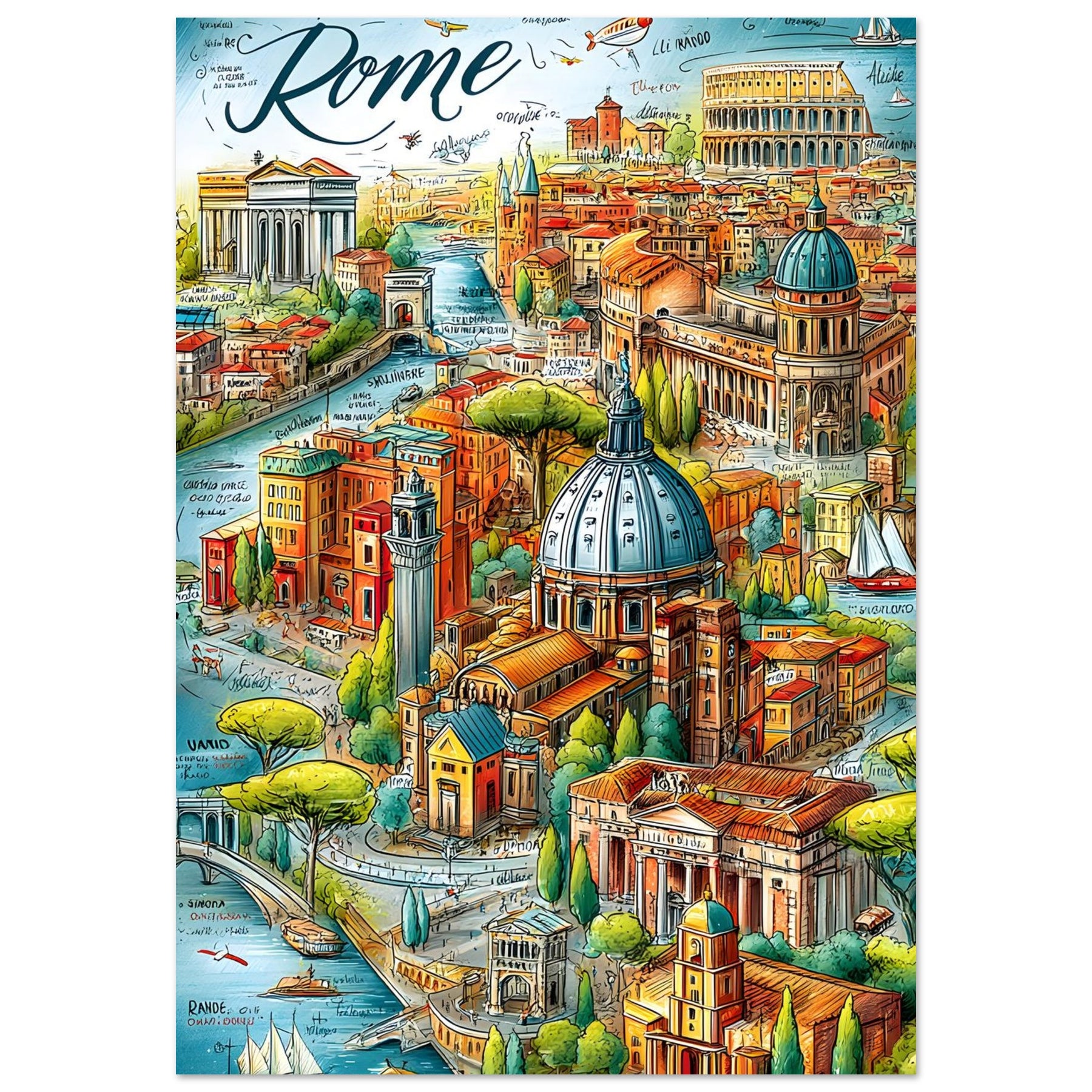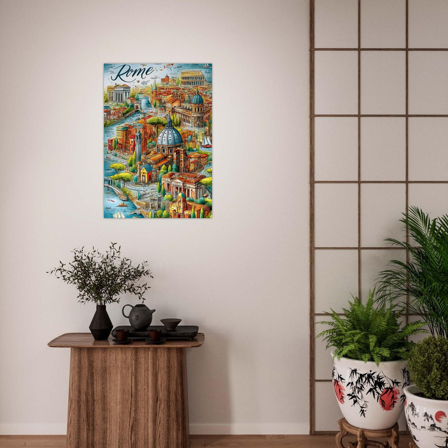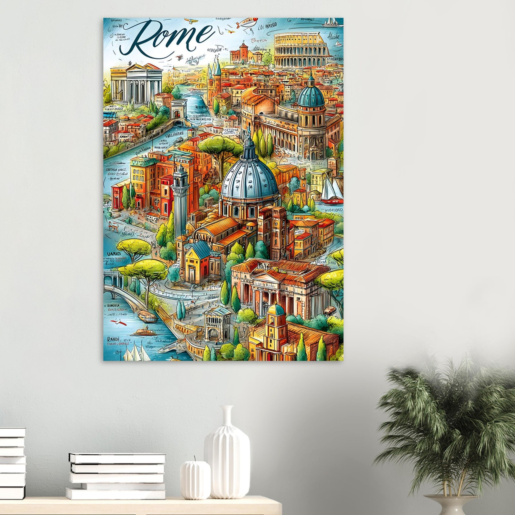 Transform your space with Rome Illustrated Wonders, a vibrant aluminum travel wall art piece that brings the Eternal City to life. This colorful illustrated map highlights Rome’s iconic landmarks, including the Colosseum and majestic flowing rivers, symbolizing the city’s rich history, culture, and timeless grandeur.