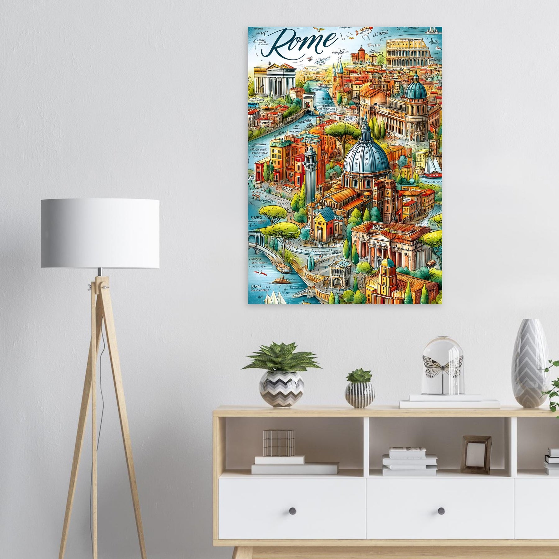 Celebrate the culture, history, and beauty of Rome with this eye-catching illustrated aluminum travel wall art.