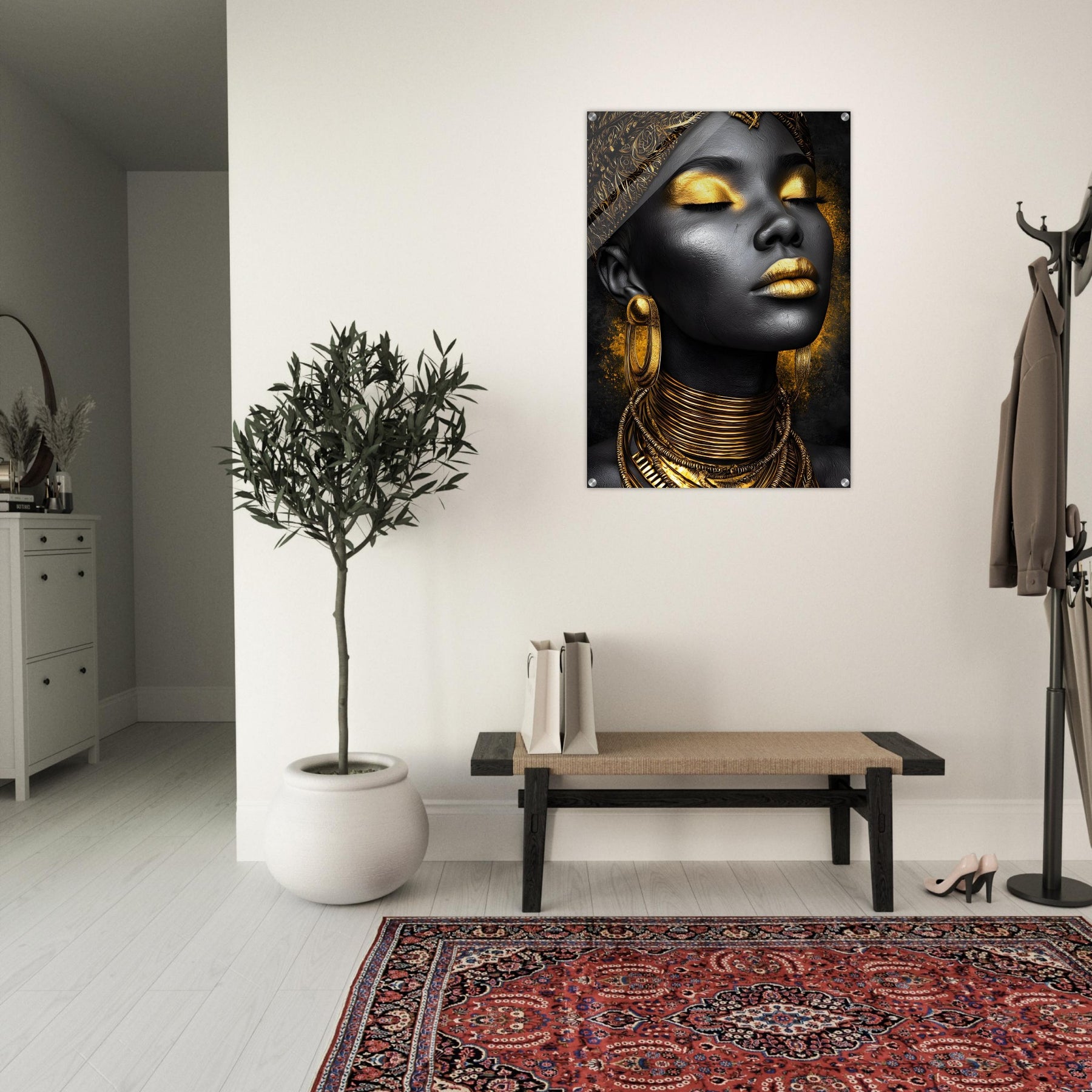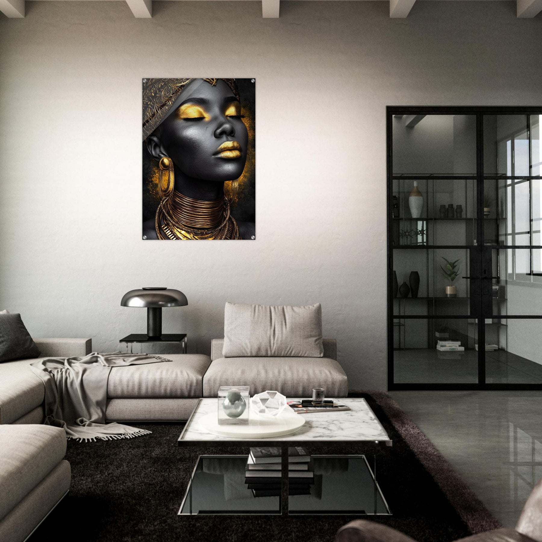 Golden Elegance – Acrylic Wall Art of Black and Gold Portrait
