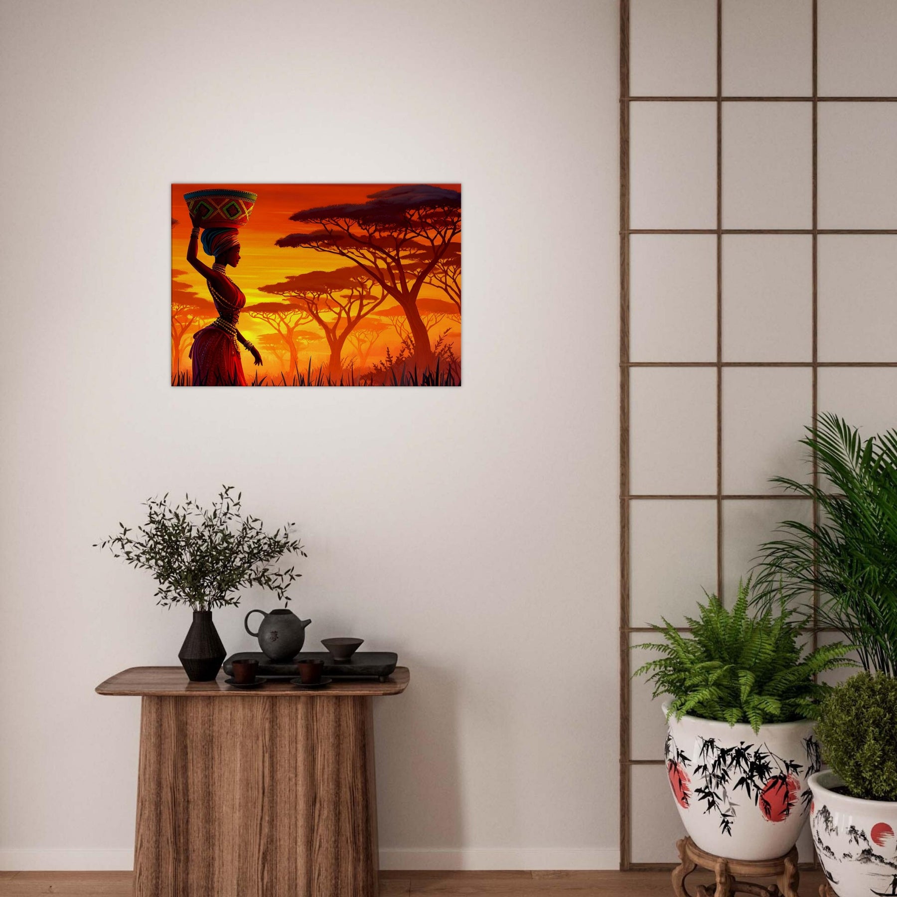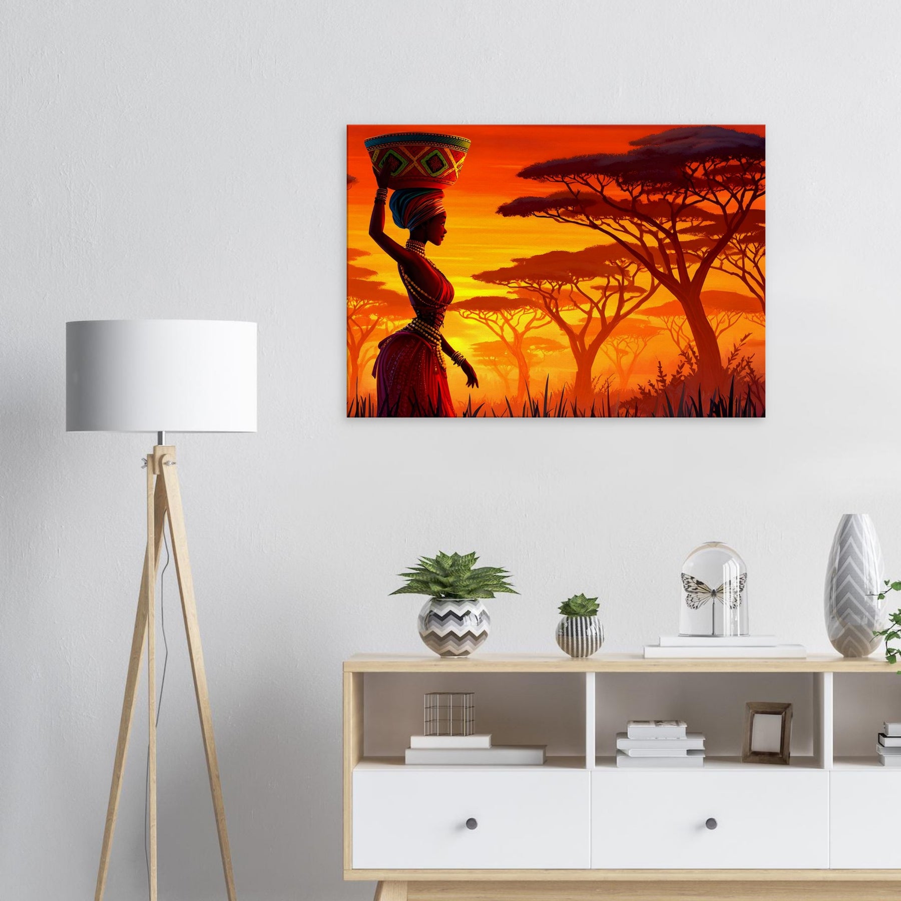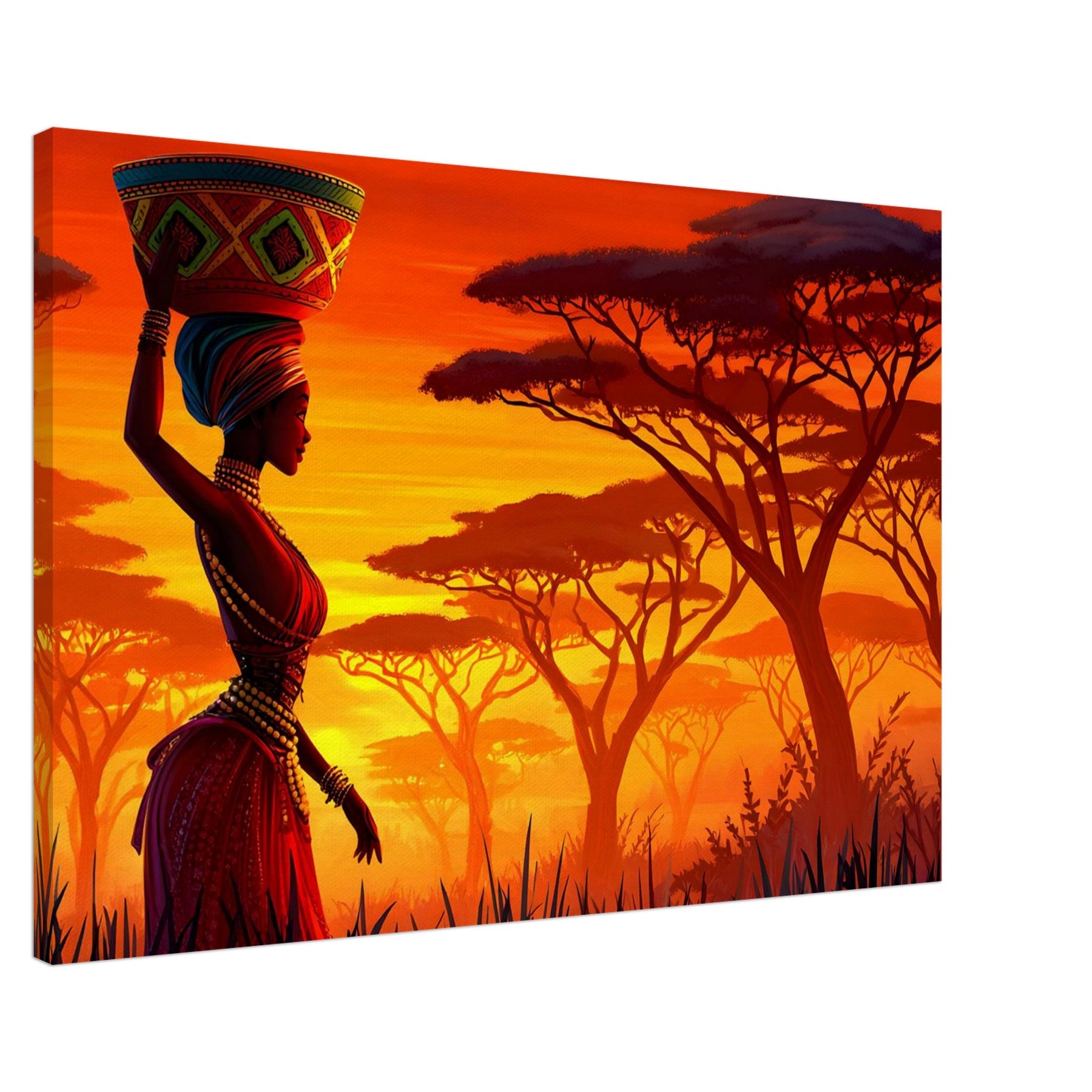 Strength in Sunset – Canvas Wall Art of African Woman Silhouette