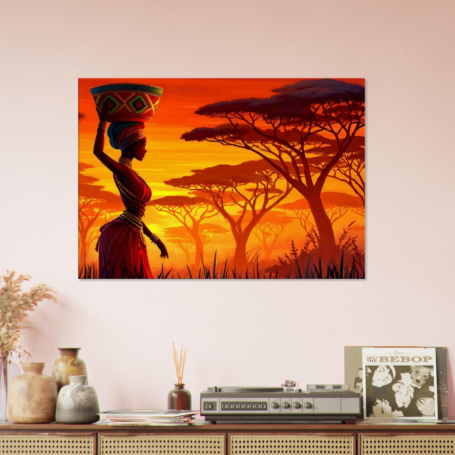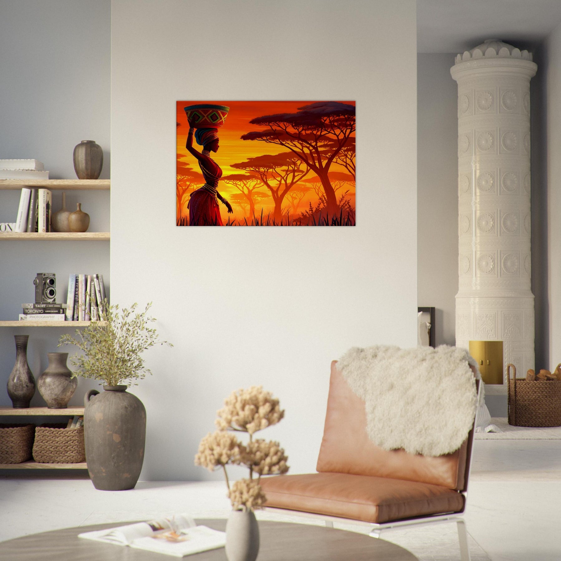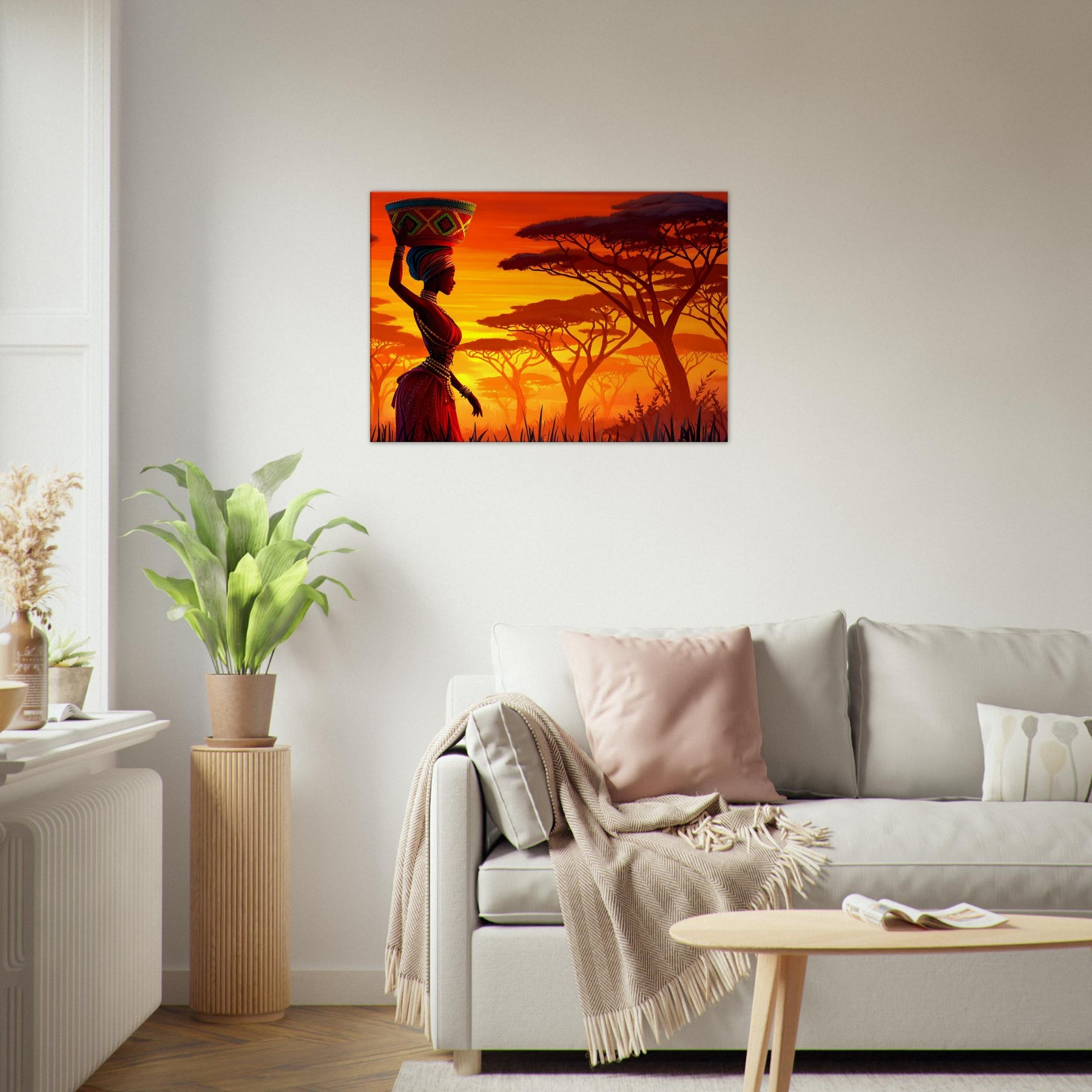 Strength in Sunset – Canvas Wall Art of African Woman Silhouette