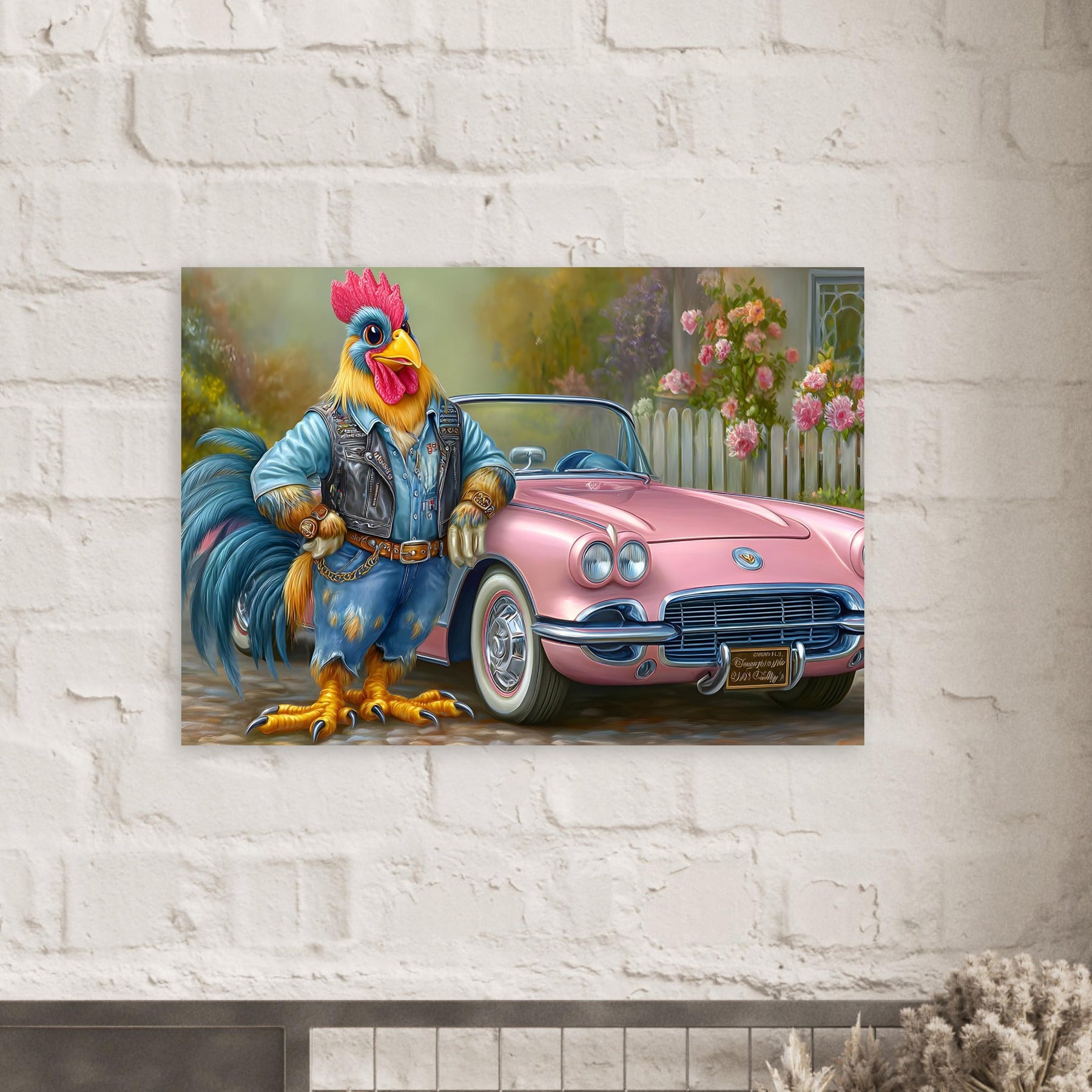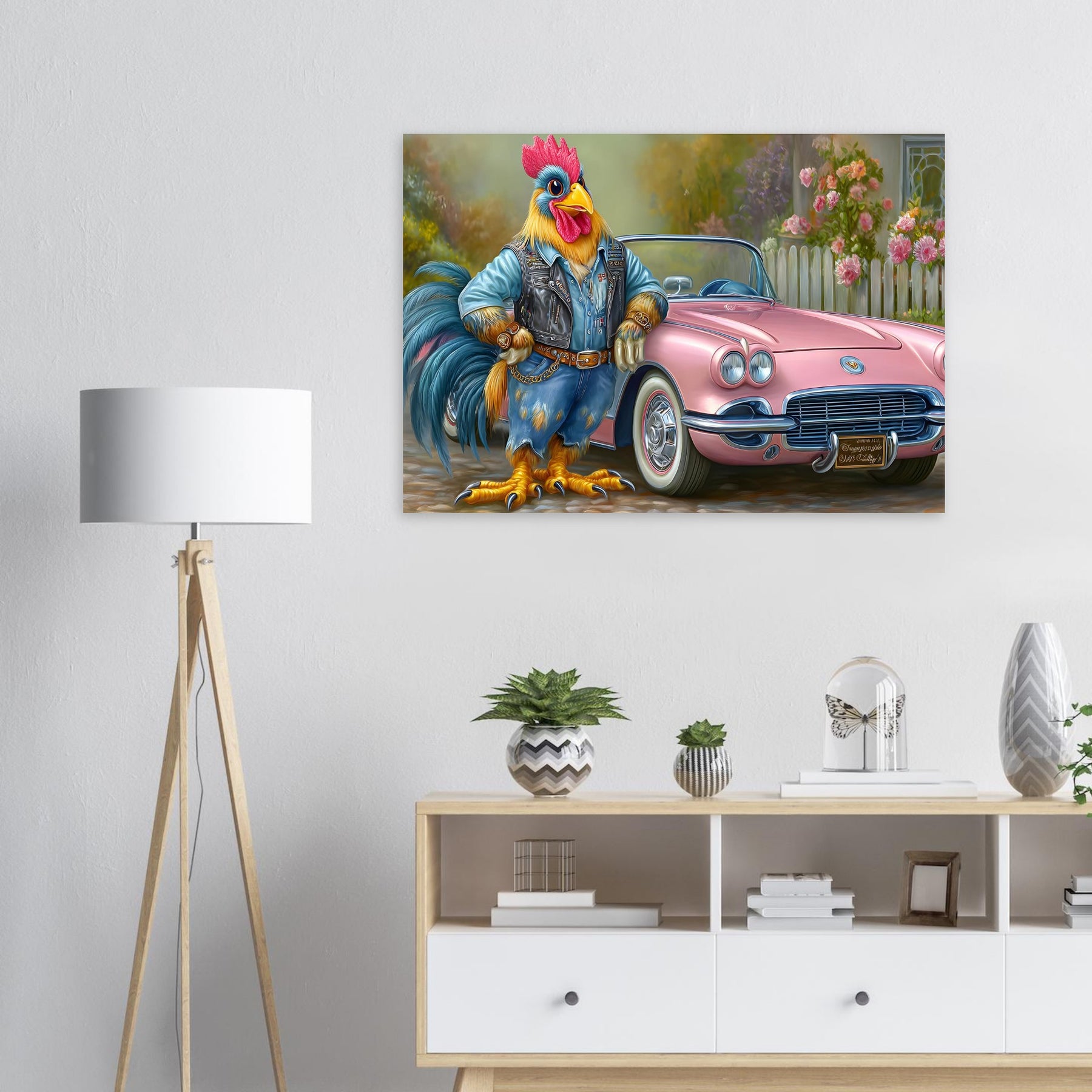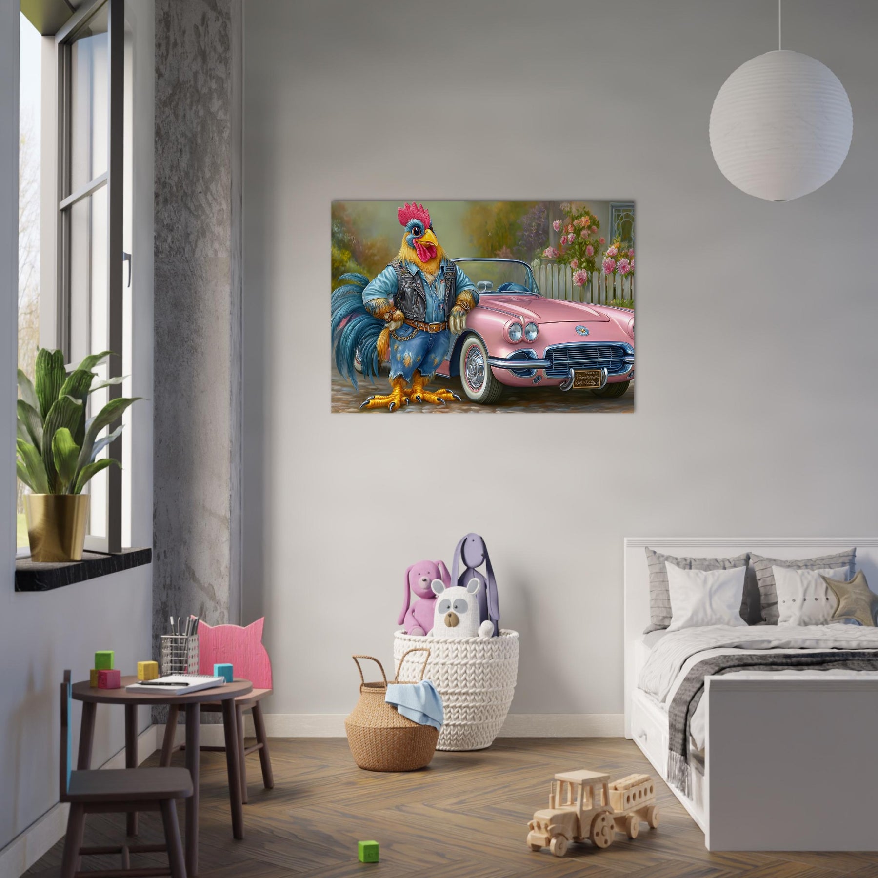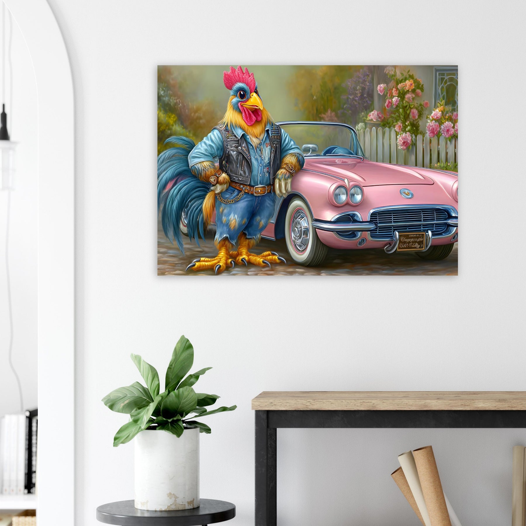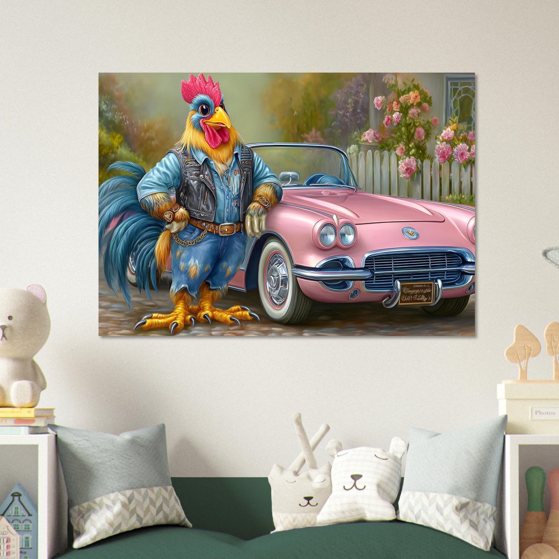 Add fun and imagination to your walls with our Cool Rooster Ride Foam Wall Art. Featuring a confident rooster in a leather jacket next to a pink convertible in a garden backdrop, this lightweight foam print is easy to hang while delivering bold colors and crisp details.