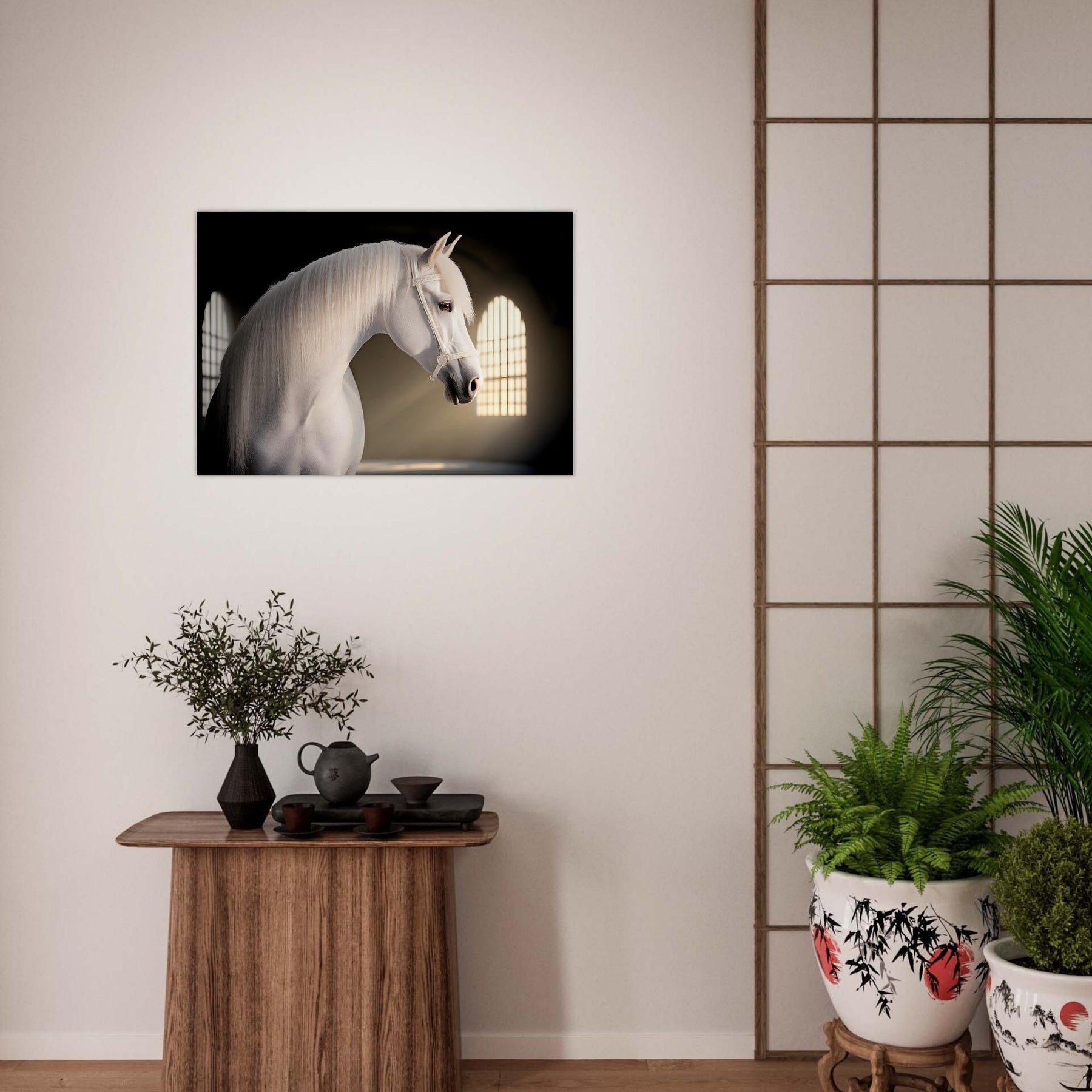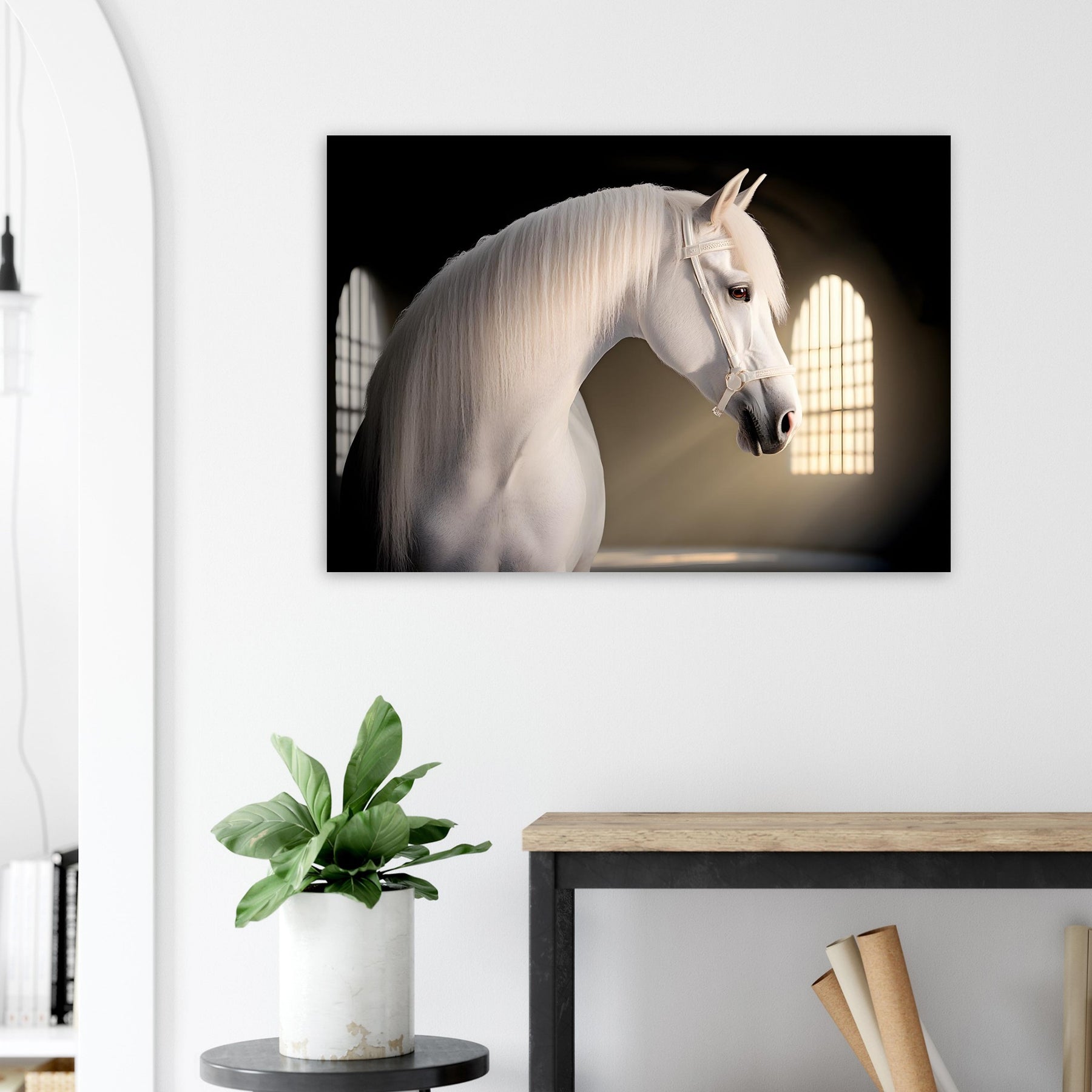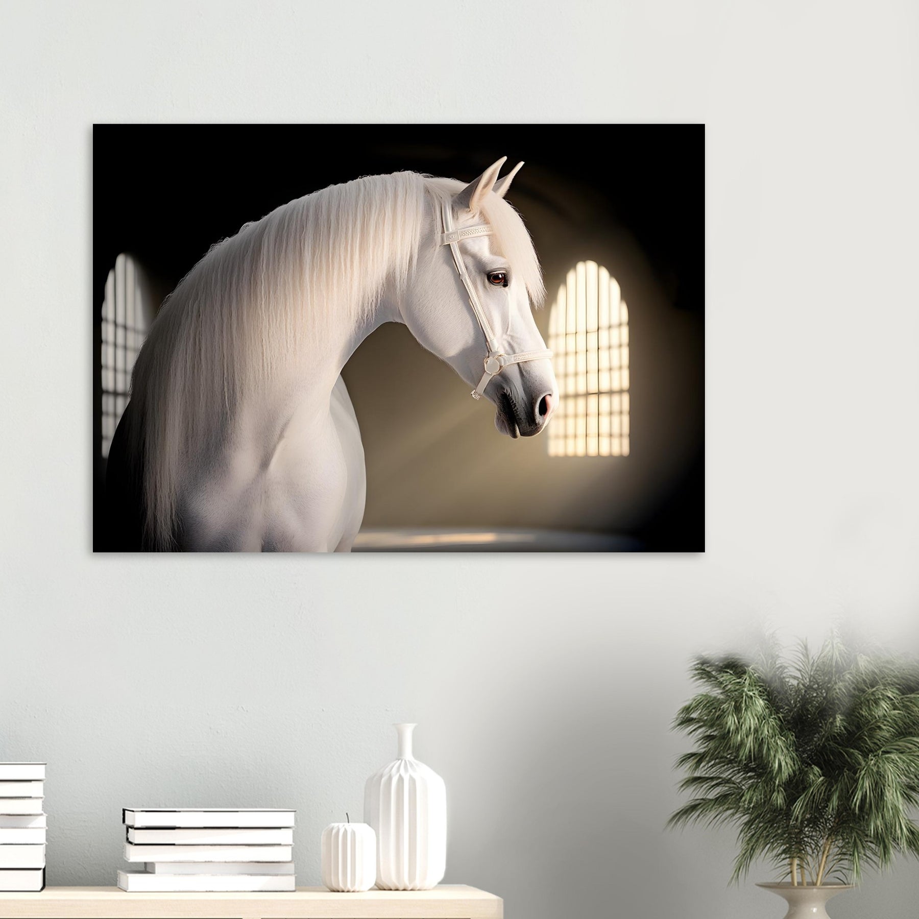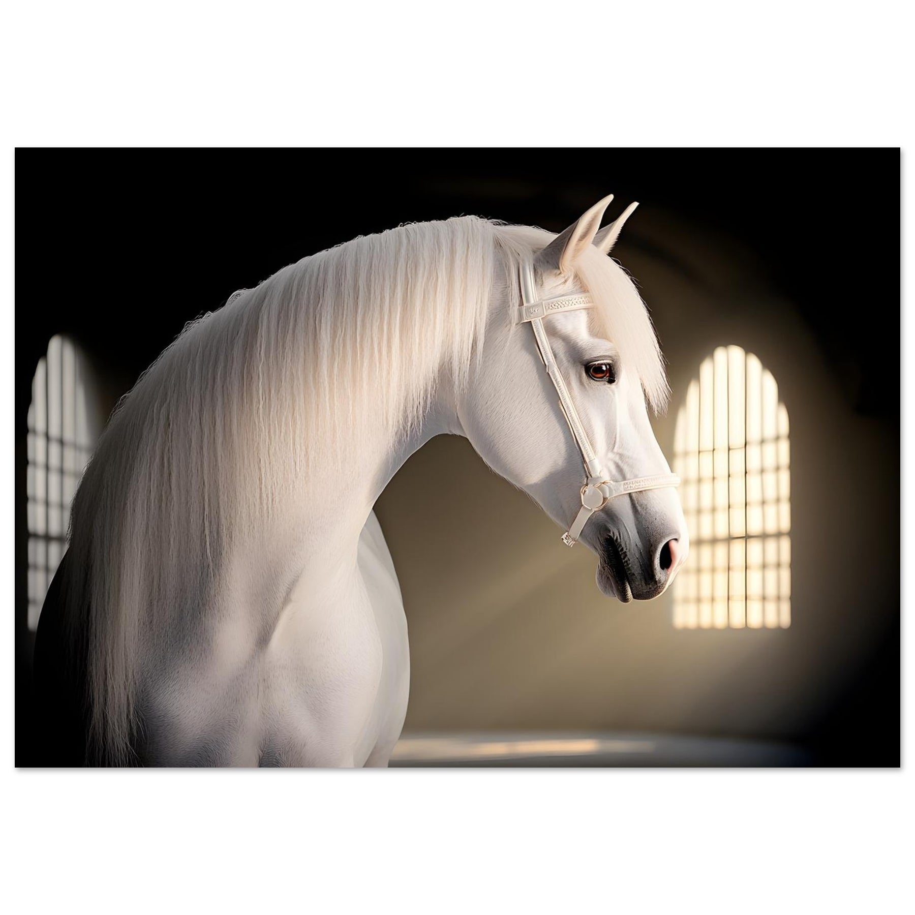 💡 Soft Artistic Lighting – Enhances the horse’s refined features and flowing mane.