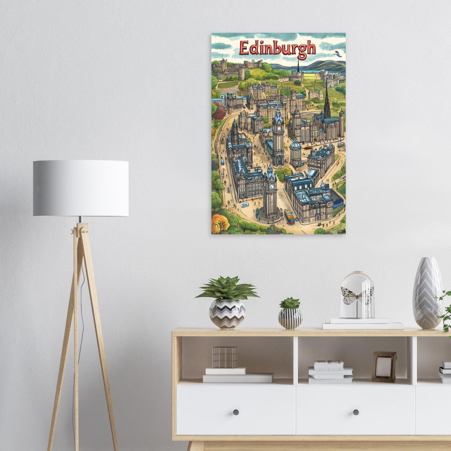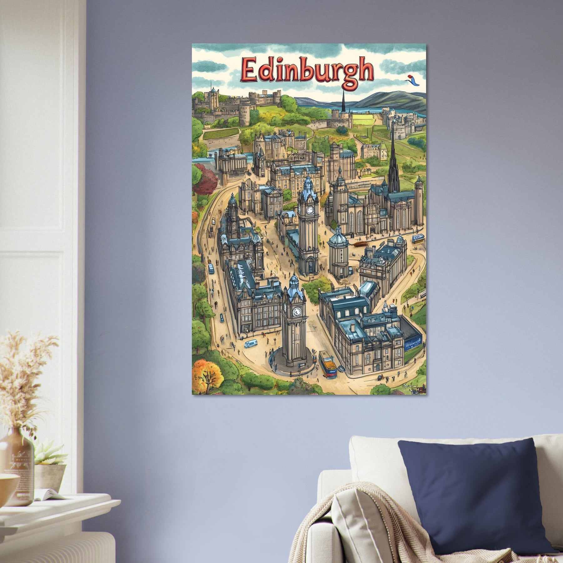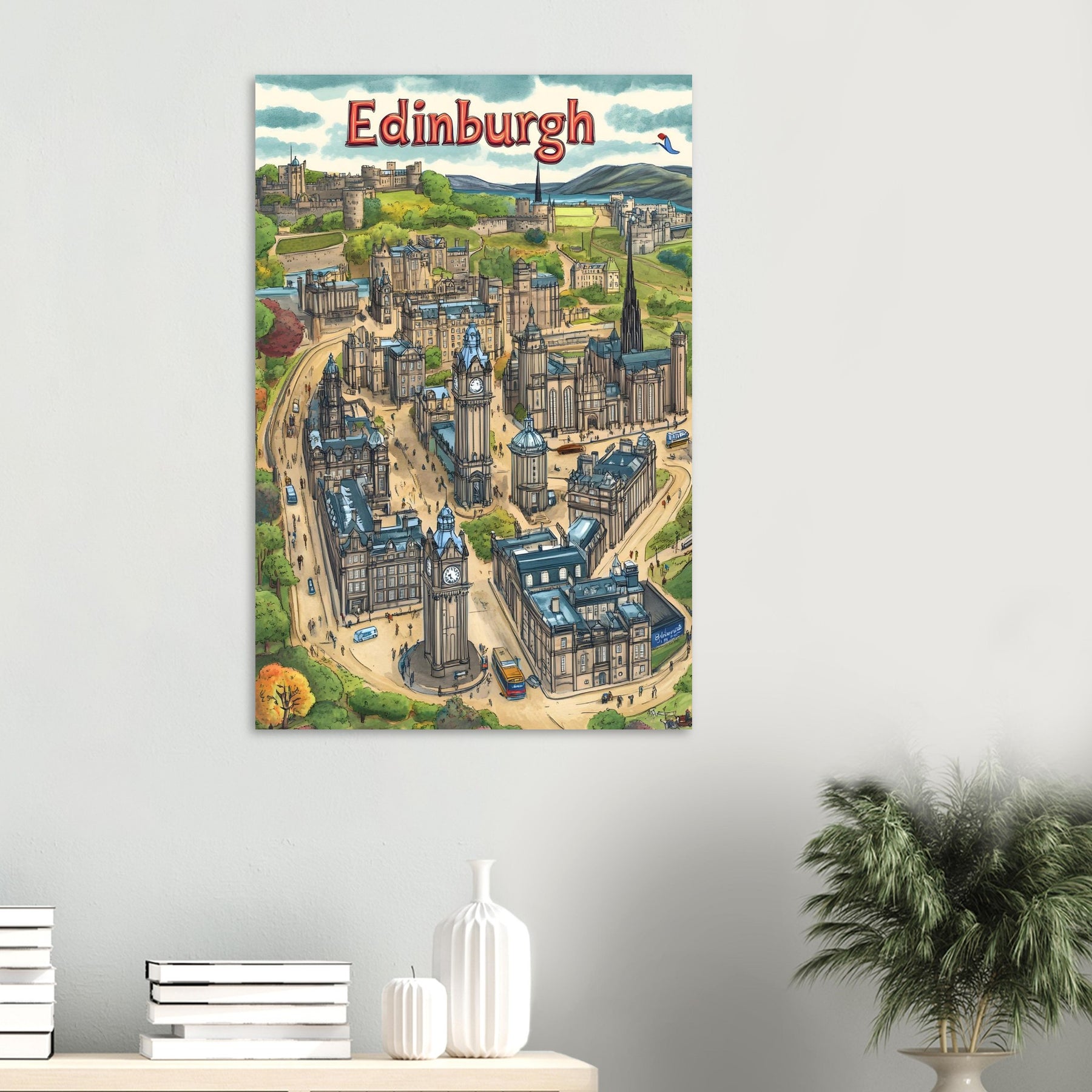 Edinburgh City Charm – Illustrated Map Aluminum Wall Art