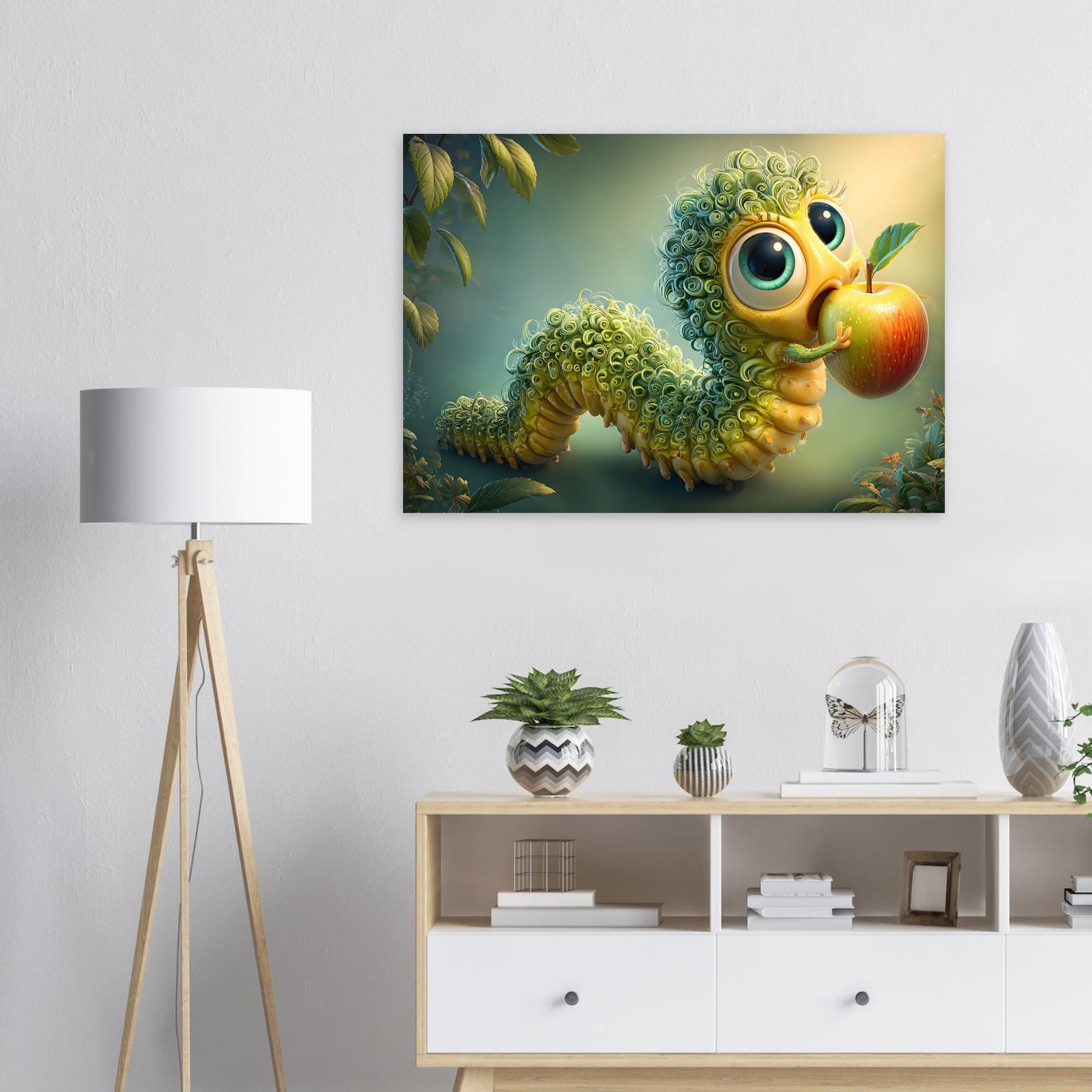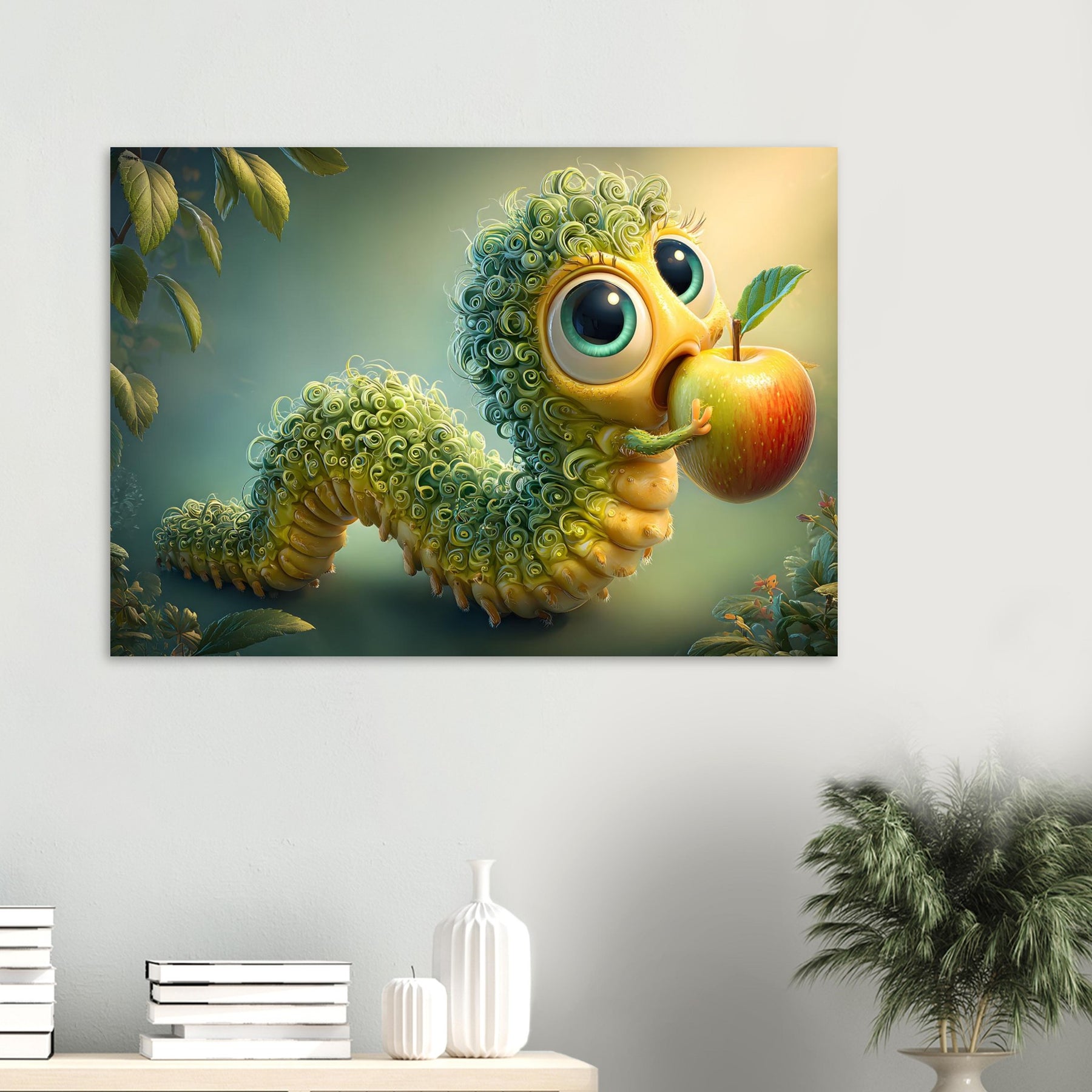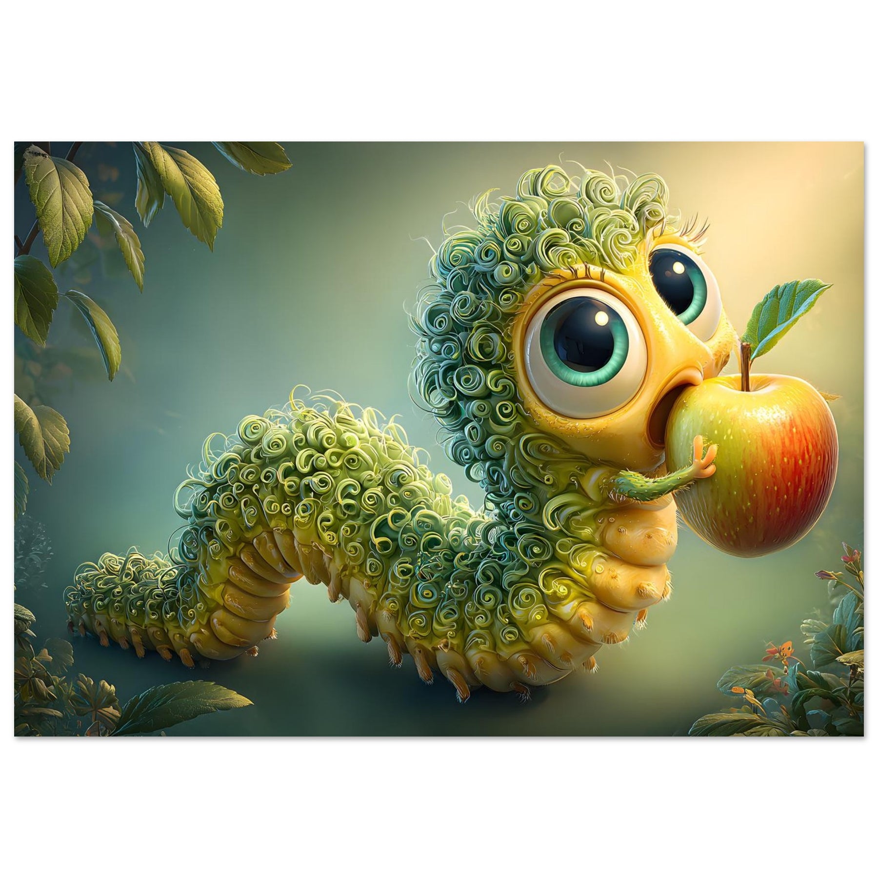 Apple Delight – Playful Green Caterpillar Aluminum Wall Art