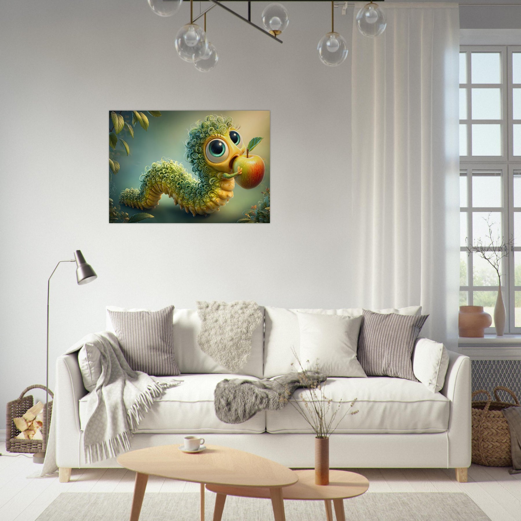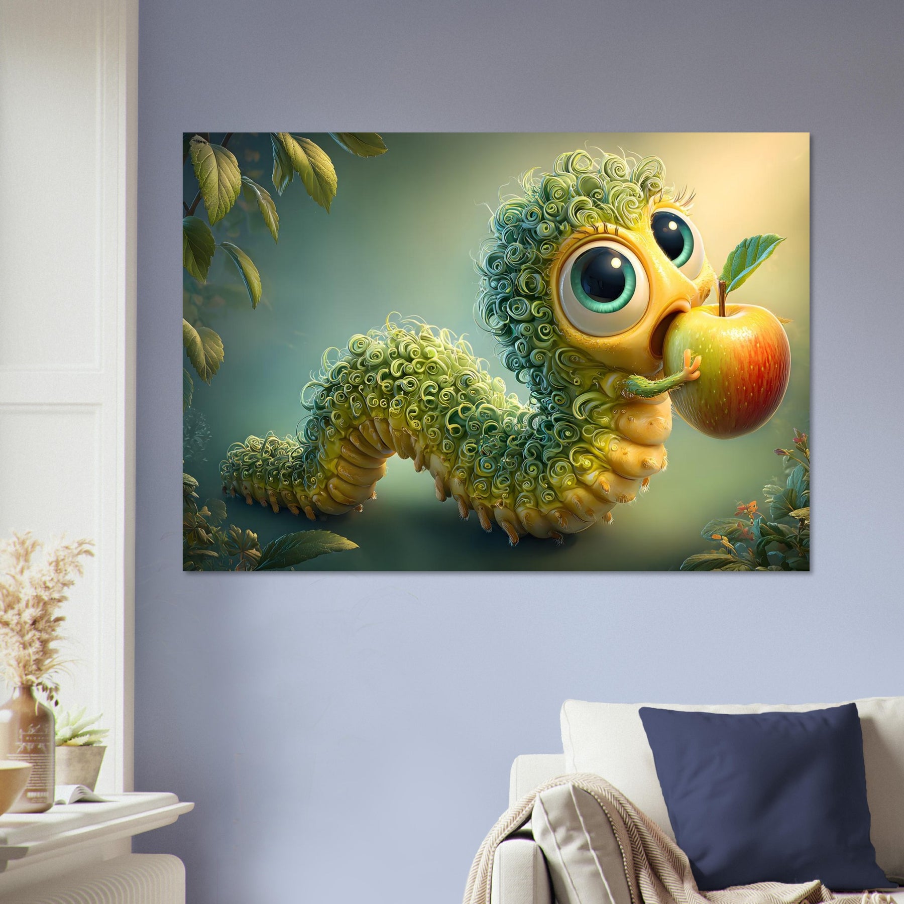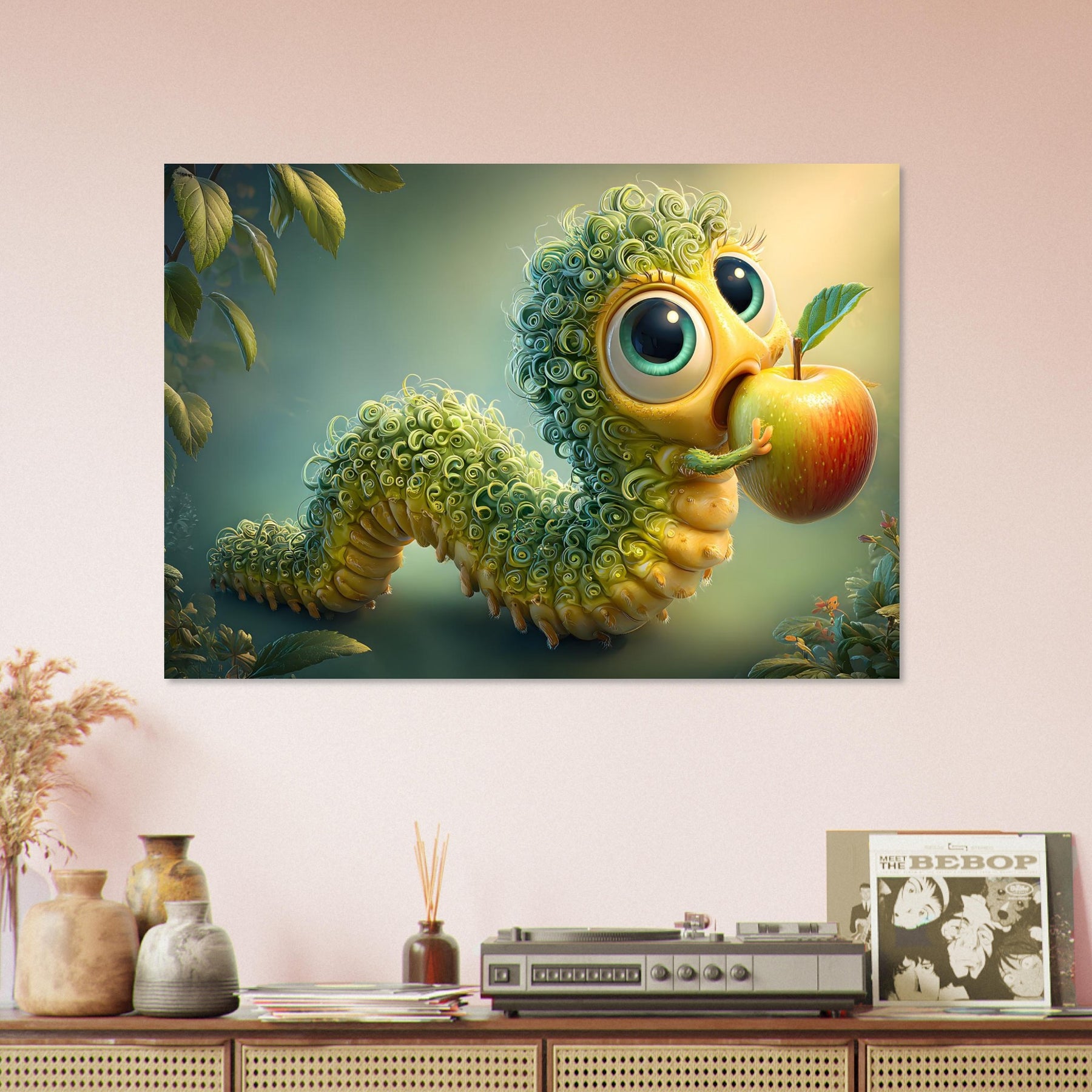 Apple Delight – Playful Green Caterpillar Aluminum Wall Art