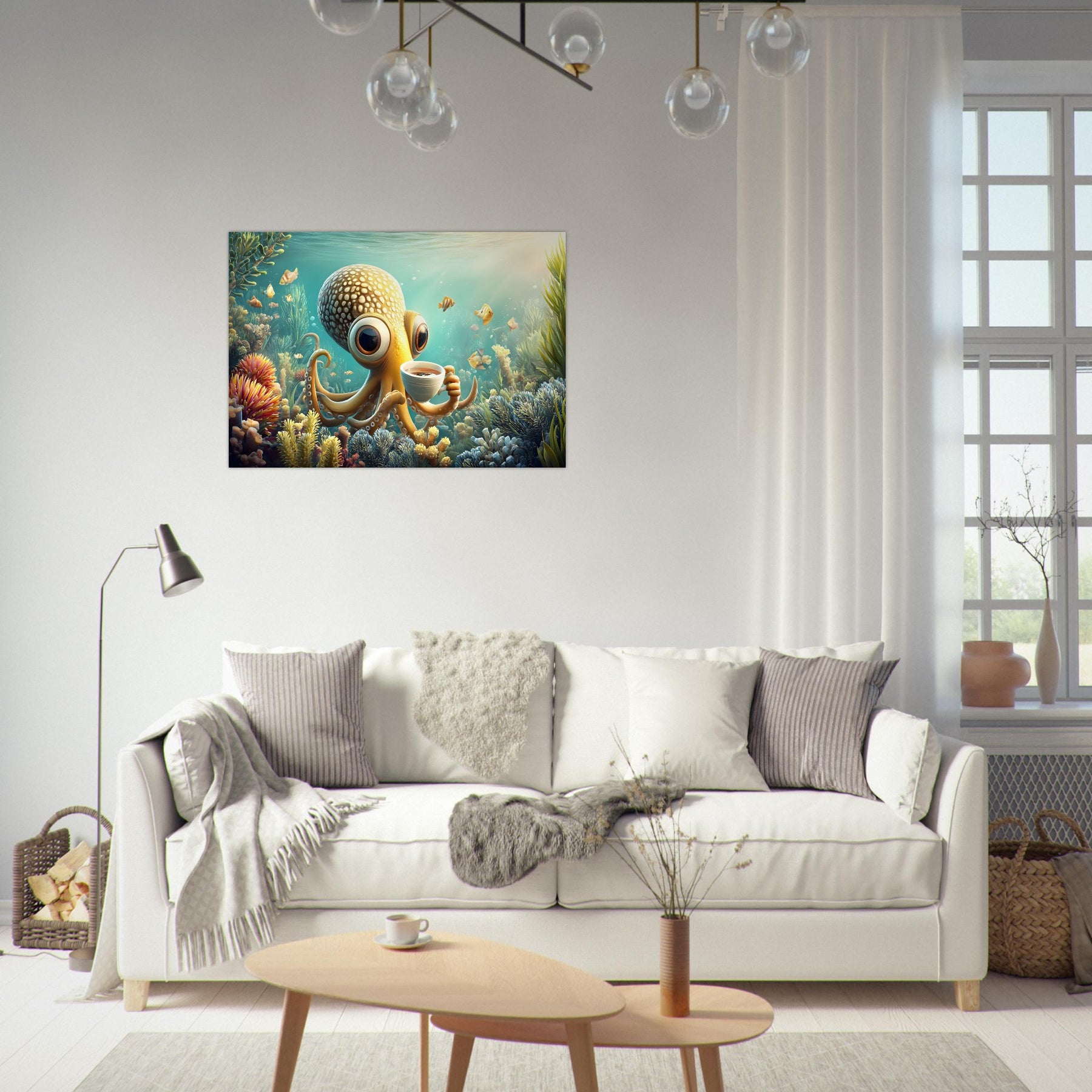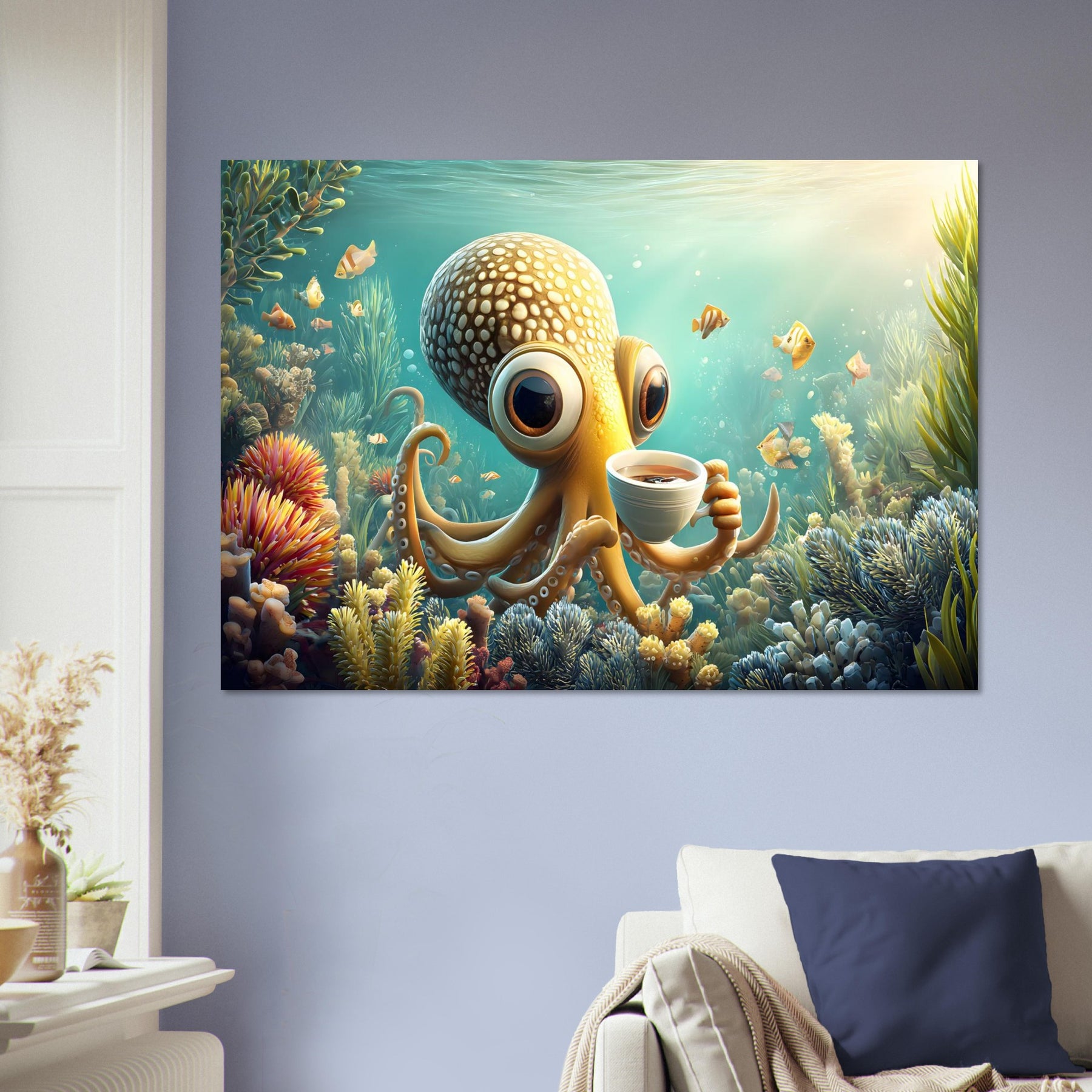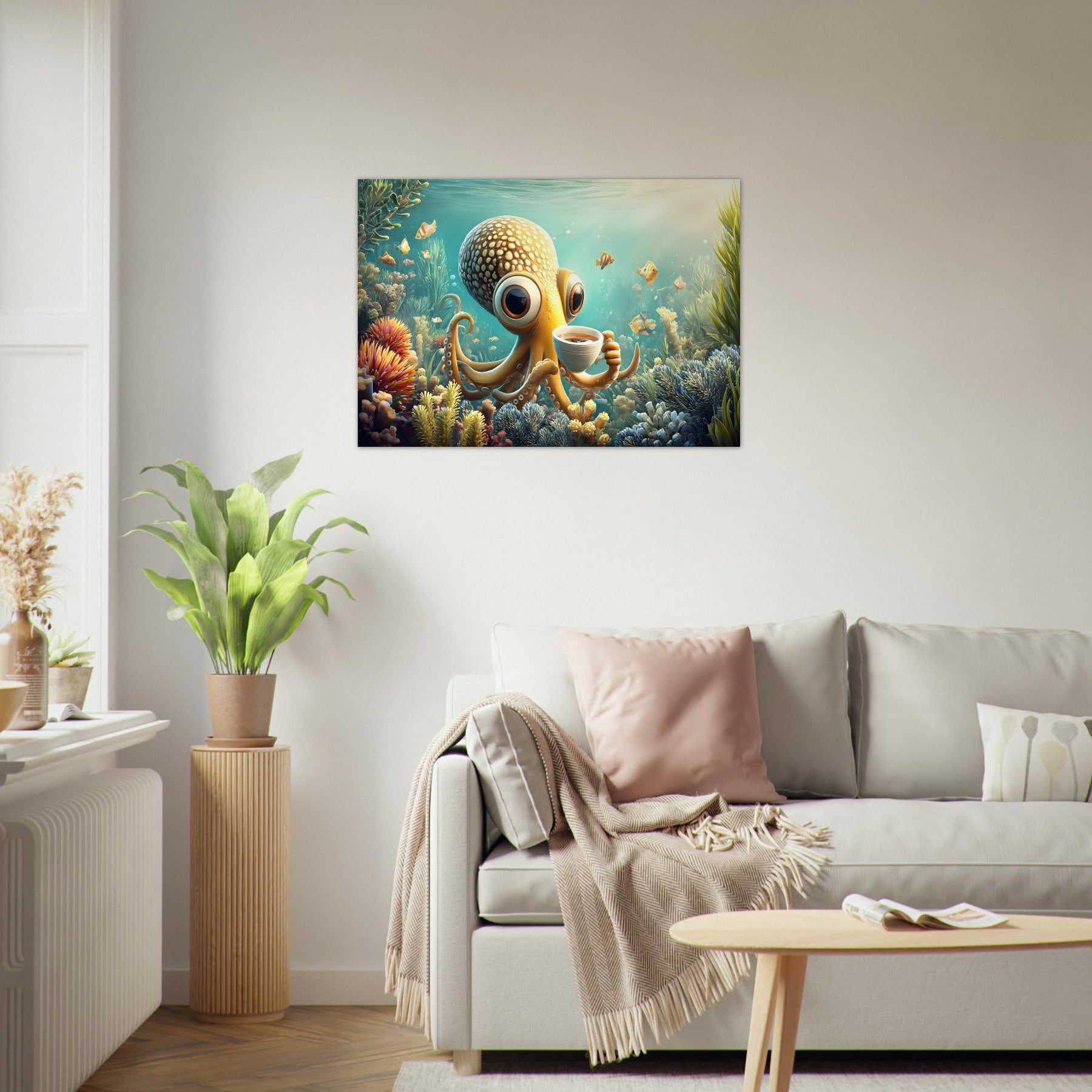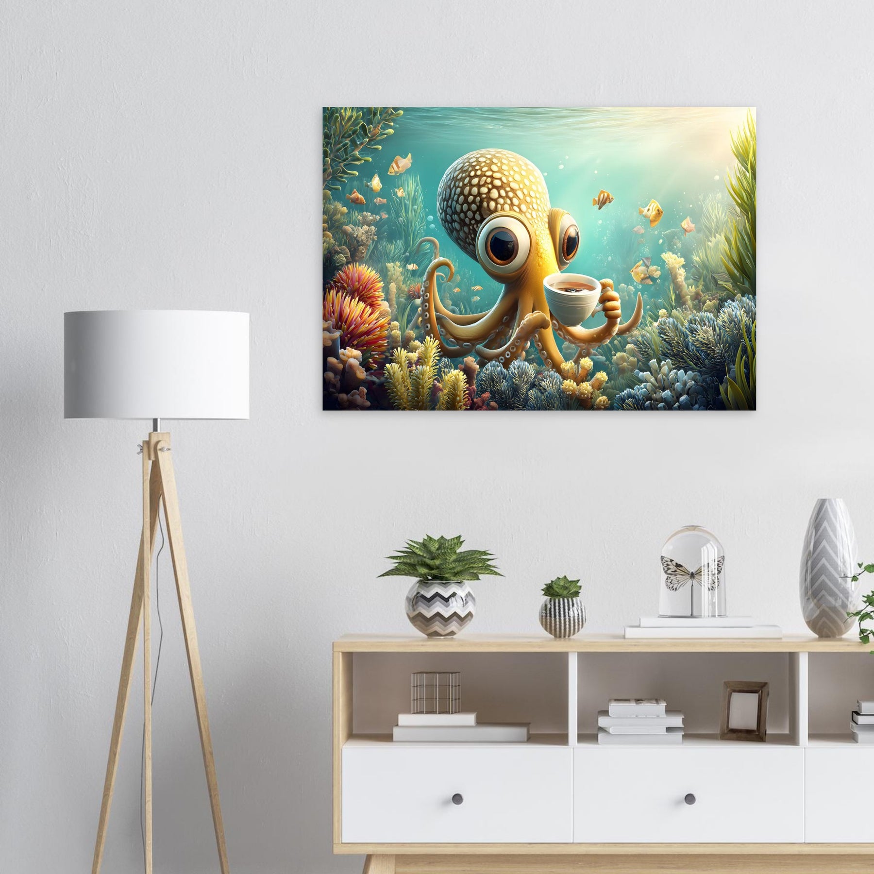 Ocean Brew – Whimsical Octopus with Coffee Aluminum Wall Art