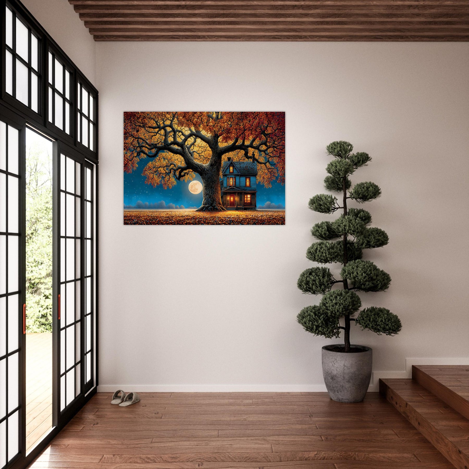 Bring the magic of autumn nights into your home with this serene aluminum wall art – a timeless addition that inspires comfort and beauty year-round.