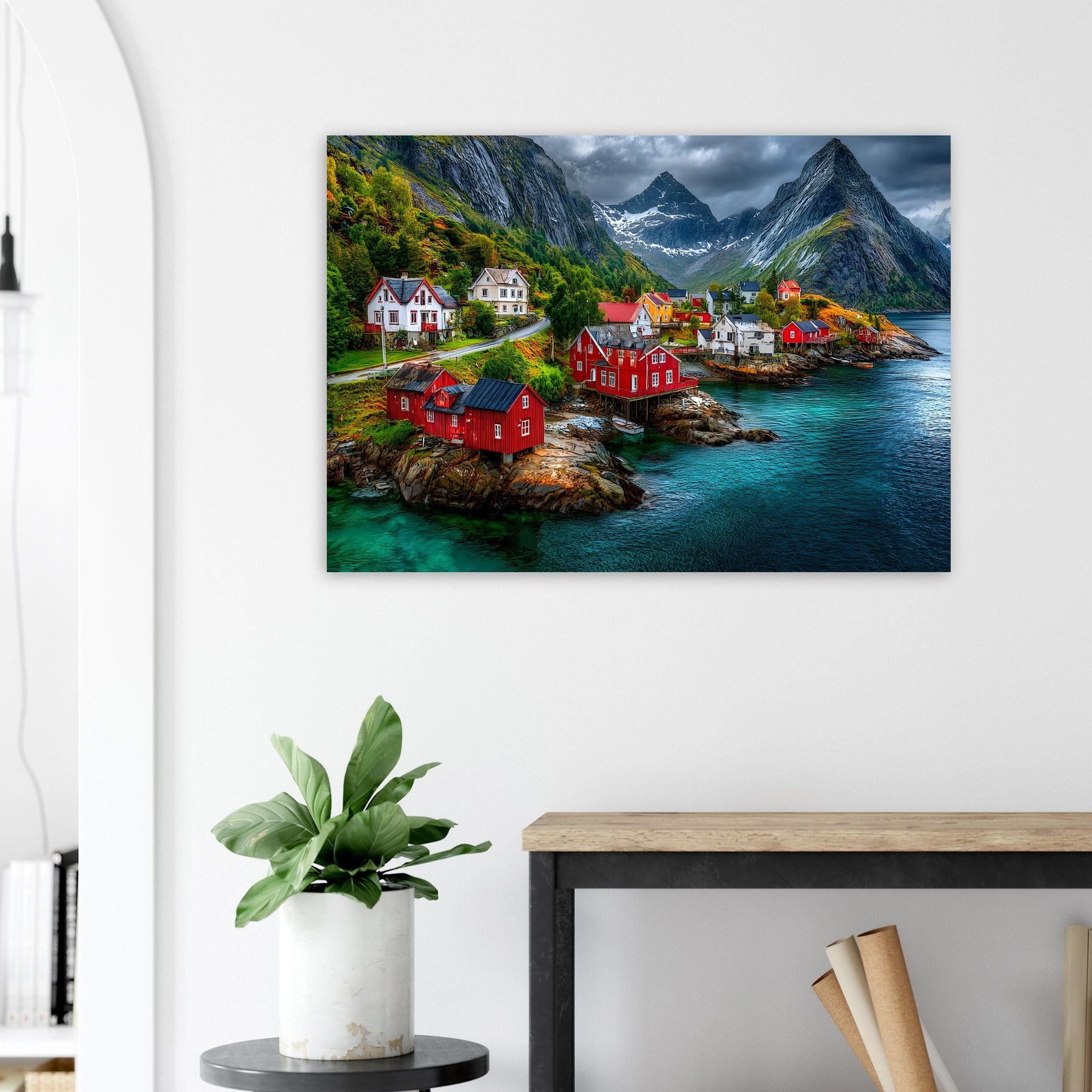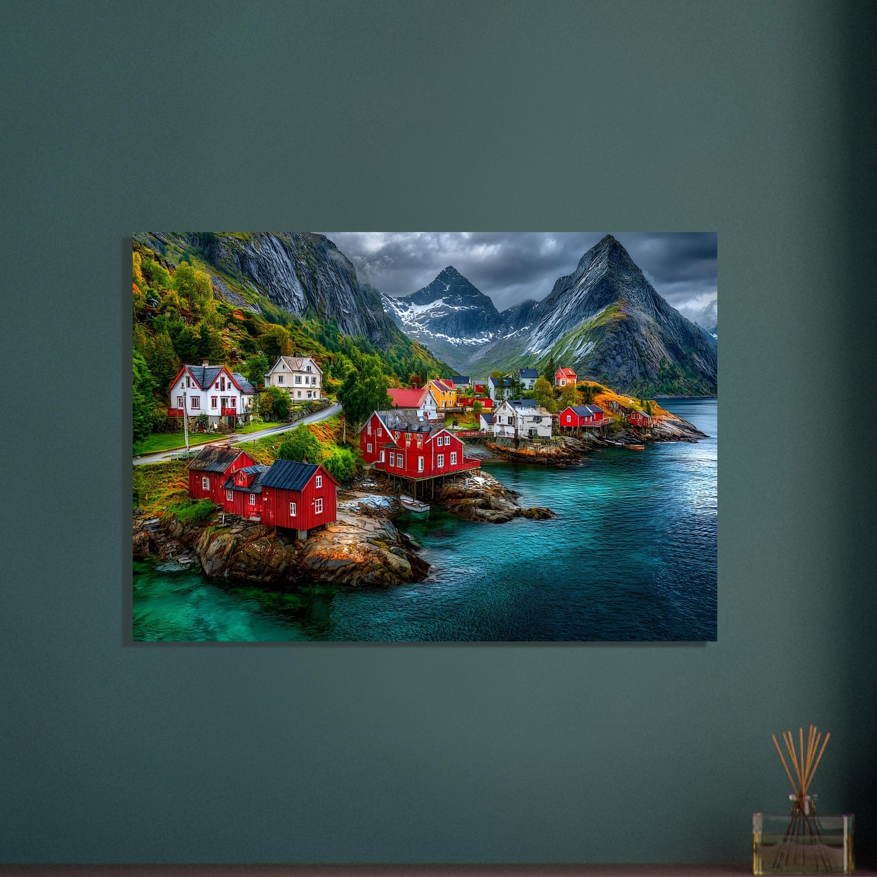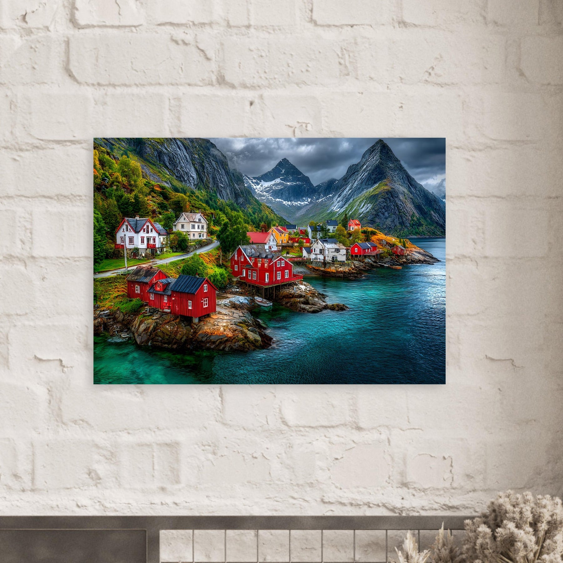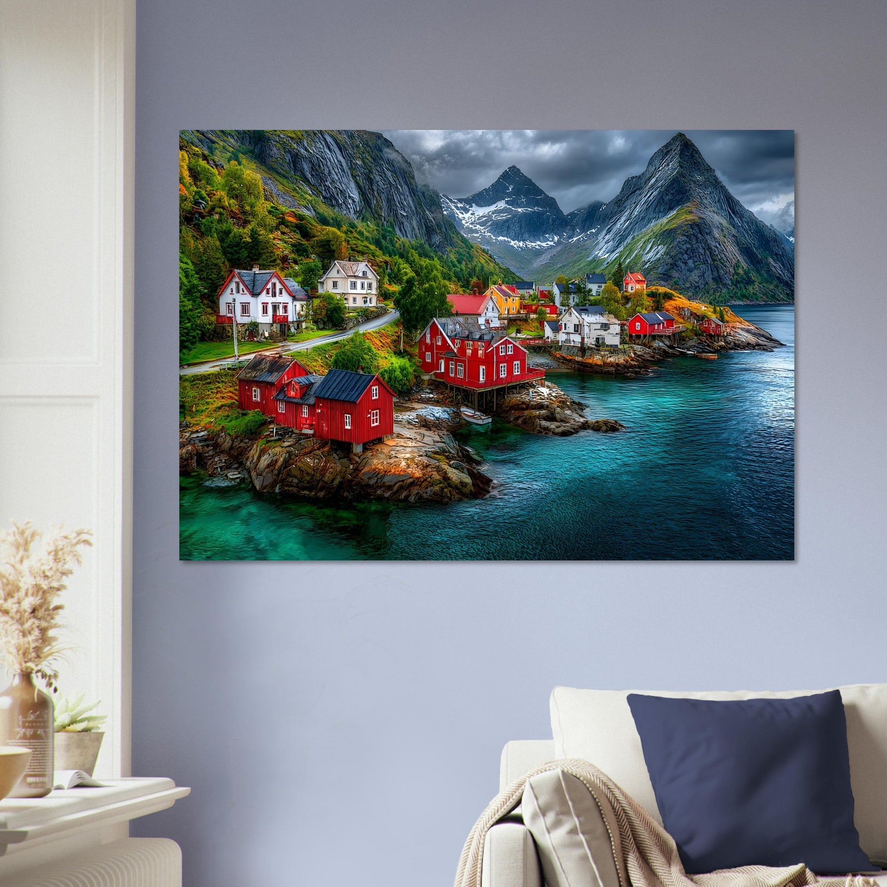 Brighten your décor with our Lakeside Serenity Foam Wall Art. Featuring a charming lakeside village with vibrant red and colorful houses beneath towering mountains, this lightweight foam print is easy to hang and full of vivid detail. Its balance of color and tranquility makes it a delightful addition to any modern home.