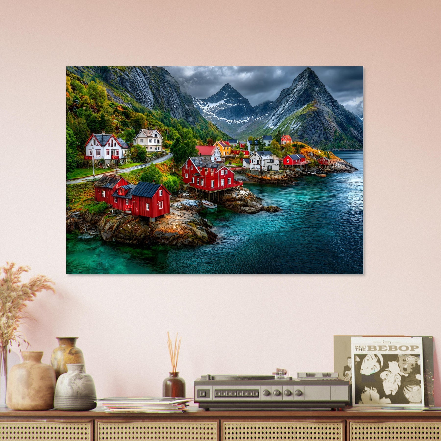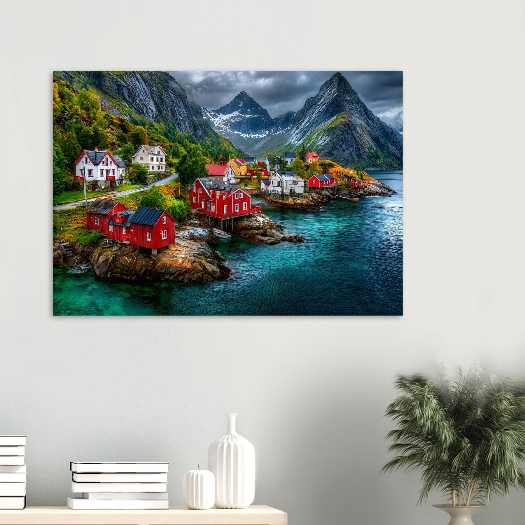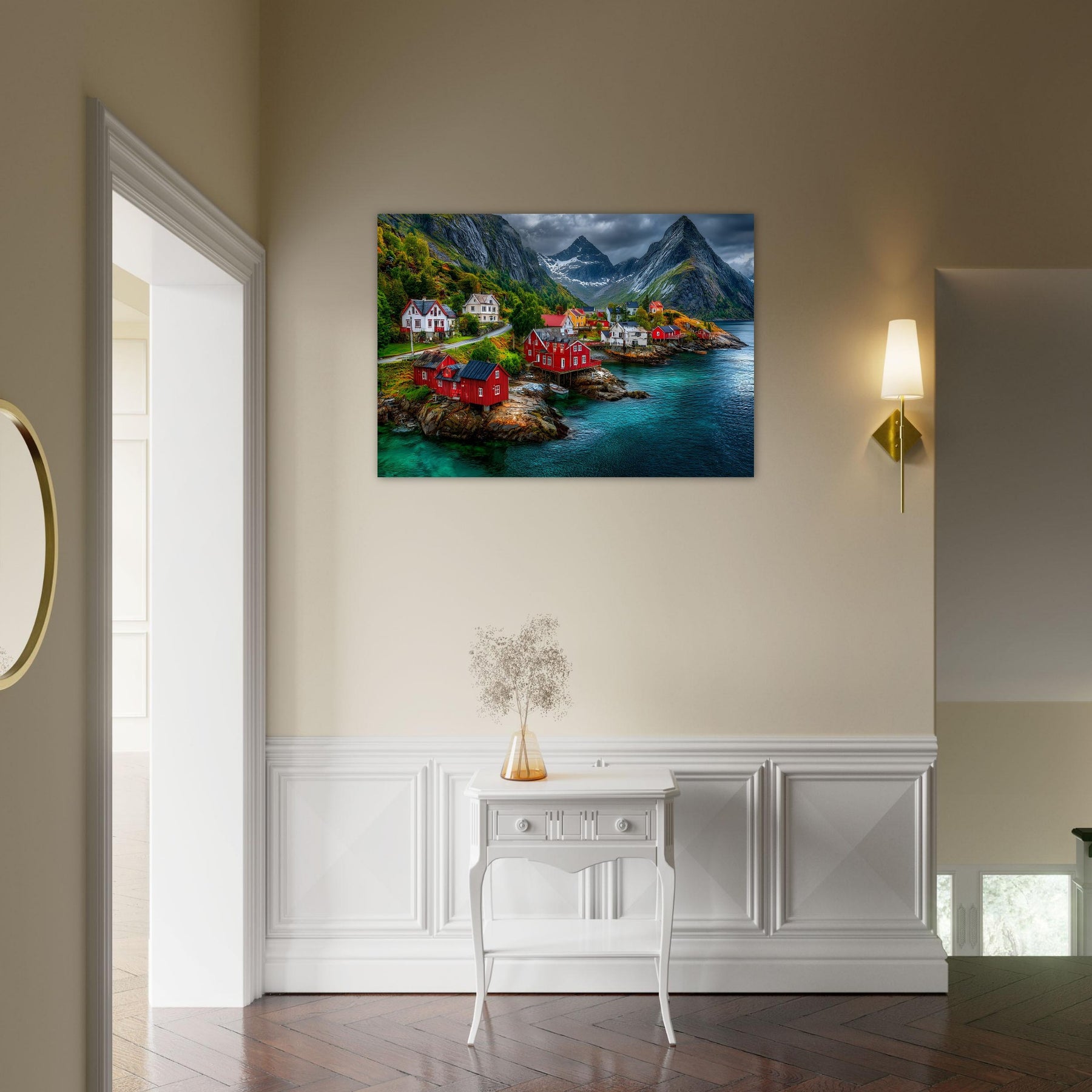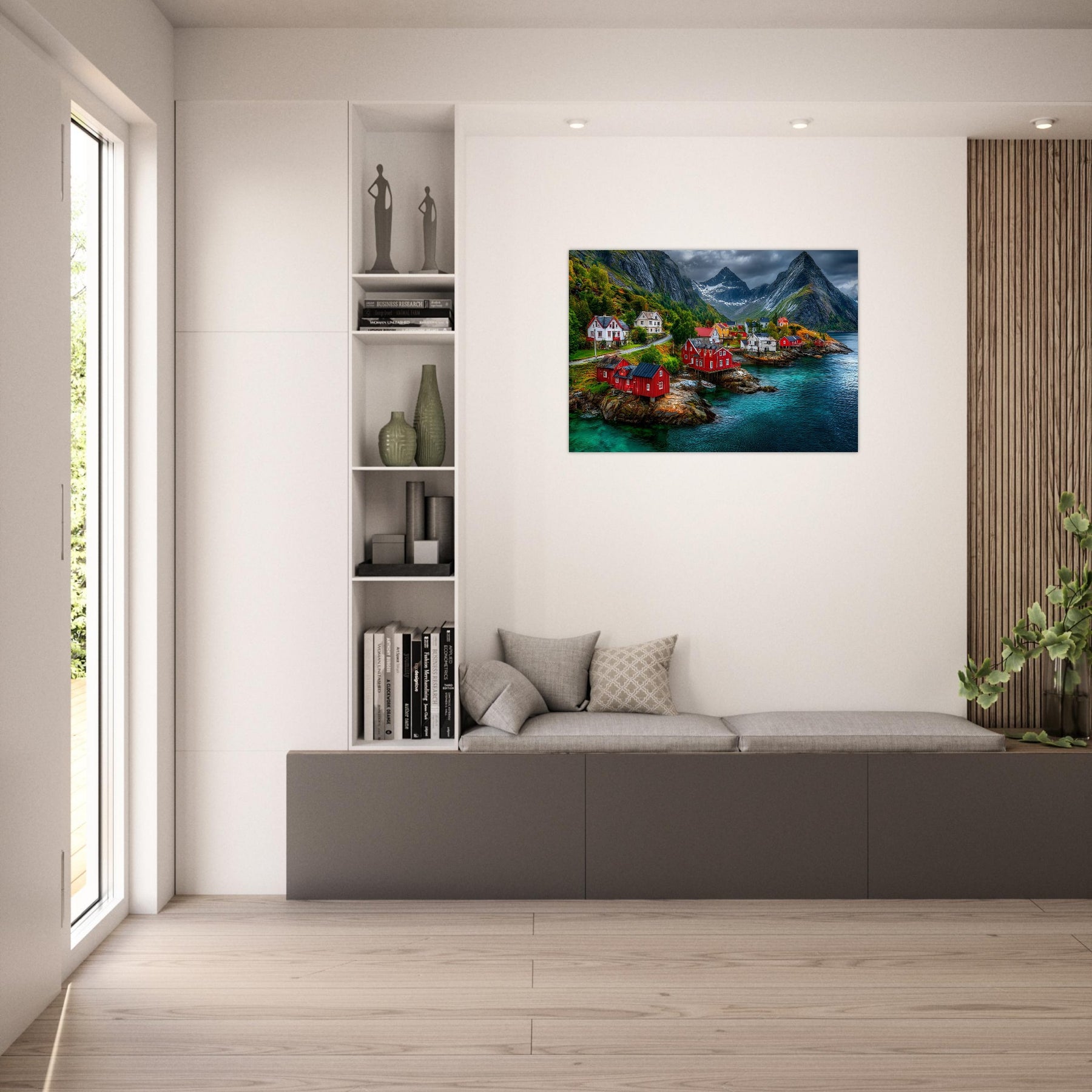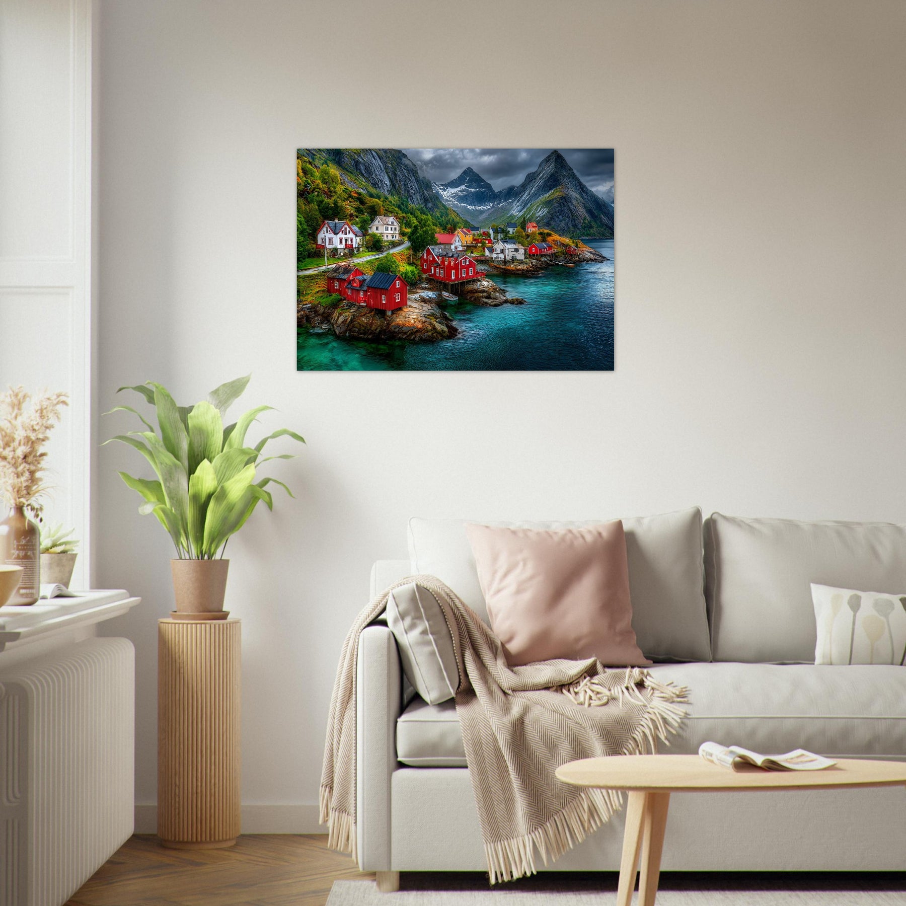 Brighten your décor with our Lakeside Serenity Foam Wall Art. Featuring a charming lakeside village with vibrant red and colorful houses beneath towering mountains, this lightweight foam print is easy to hang and full of vivid detail. Its balance of color and tranquility makes it a delightful addition to any modern home.