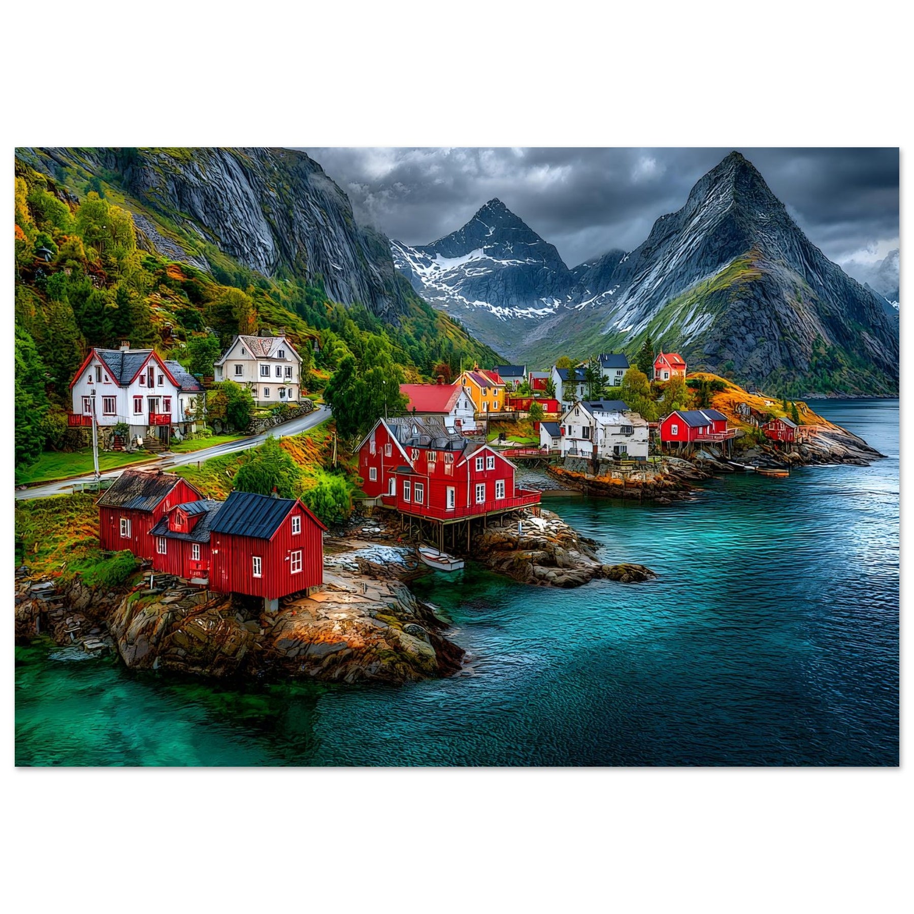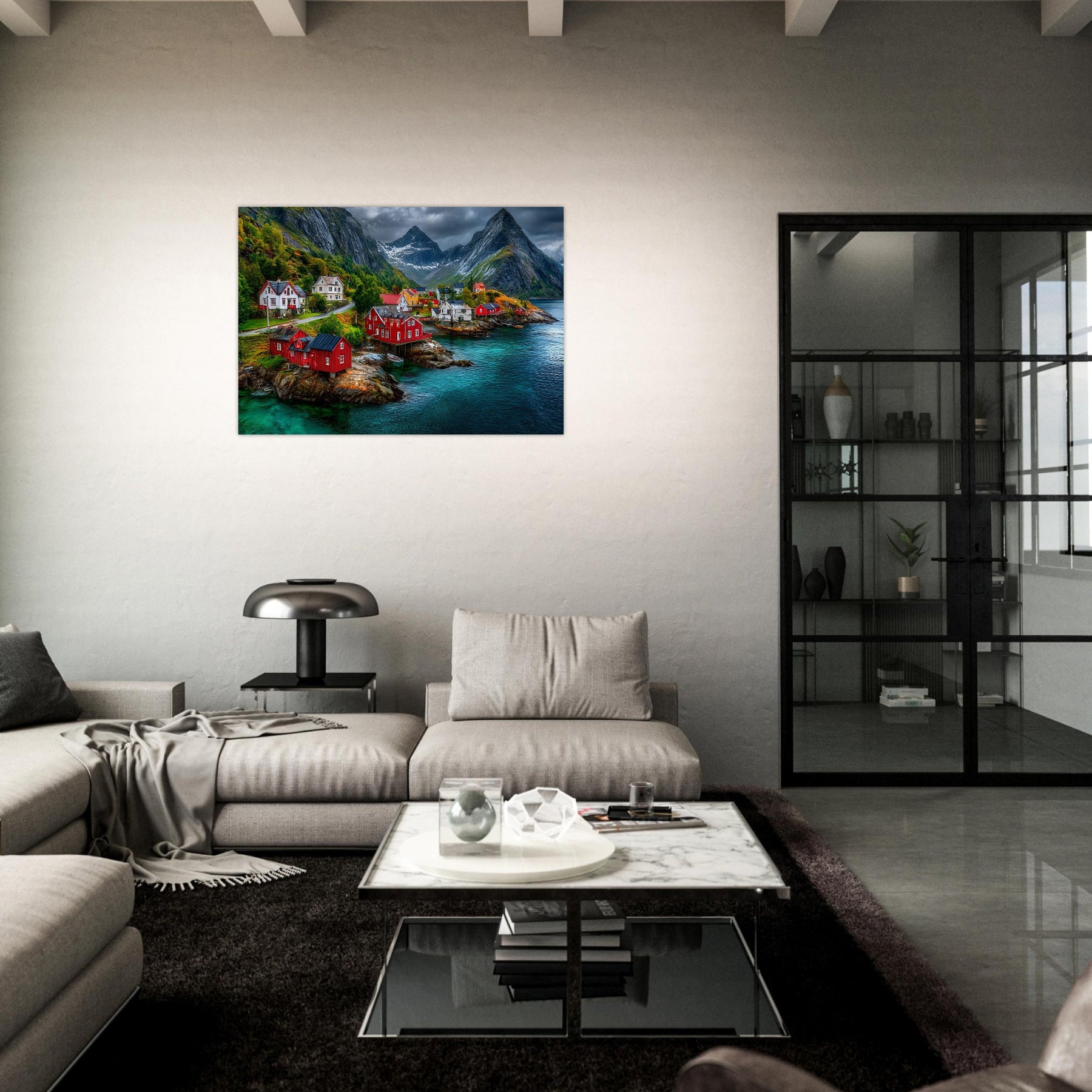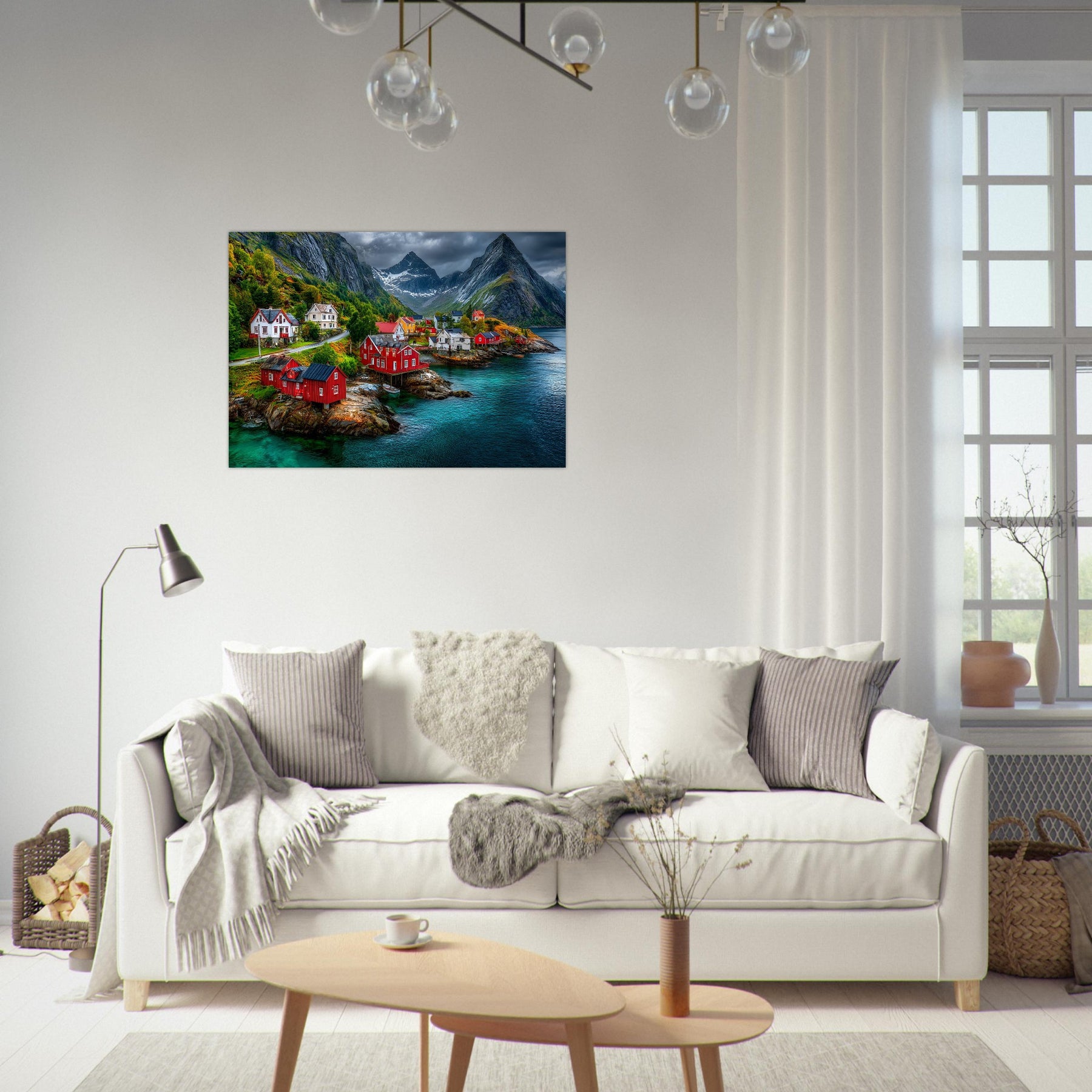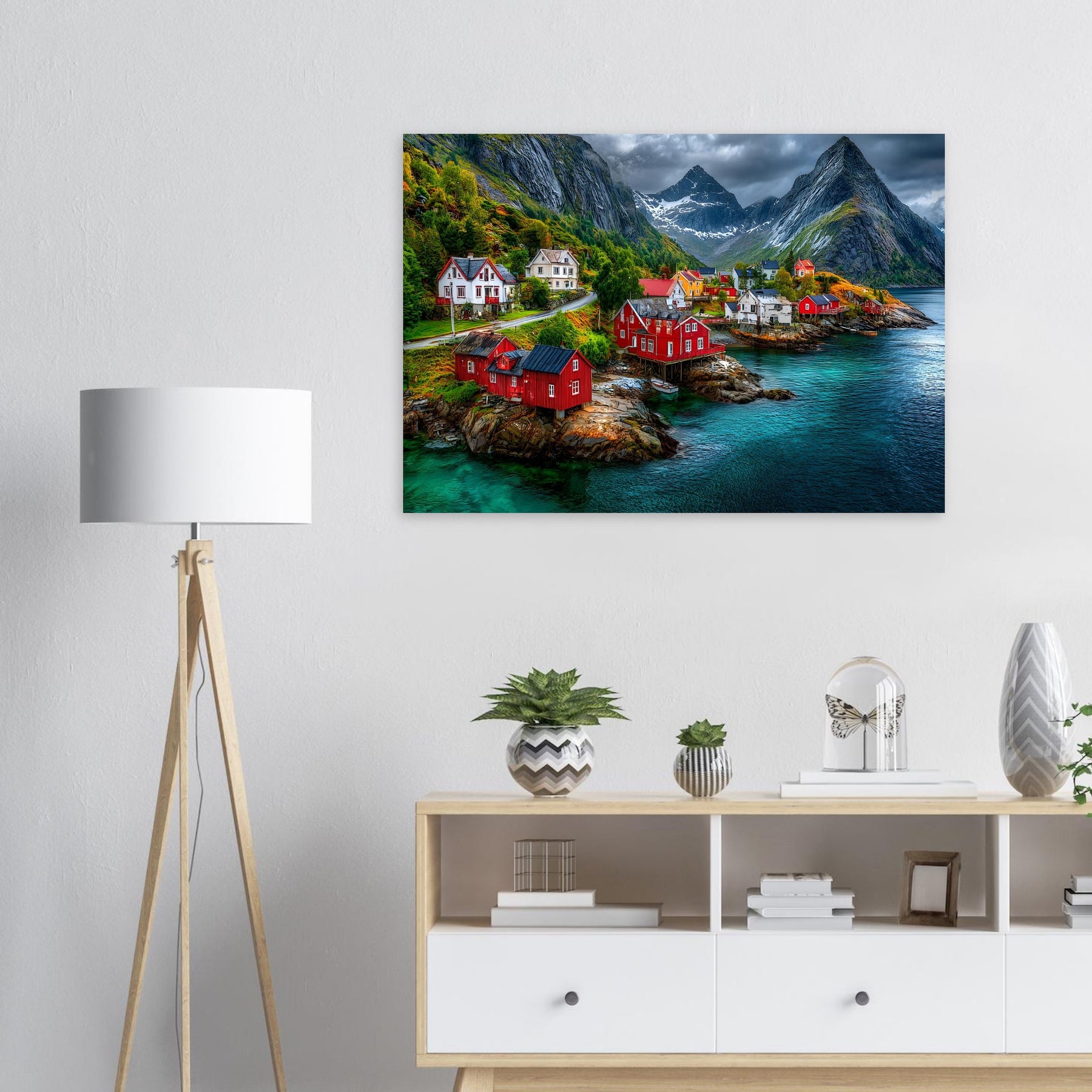 Brighten your décor with our Lakeside Serenity Foam Wall Art. Featuring a charming lakeside village with vibrant red and colorful houses beneath towering mountains, this lightweight foam print is easy to hang and full of vivid detail. Its balance of color and tranquility makes it a delightful addition to any modern home.