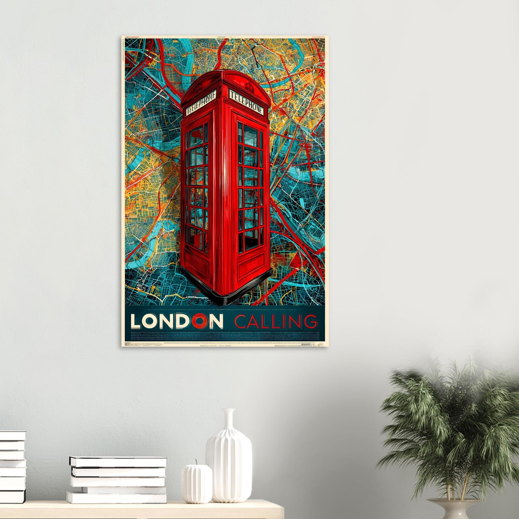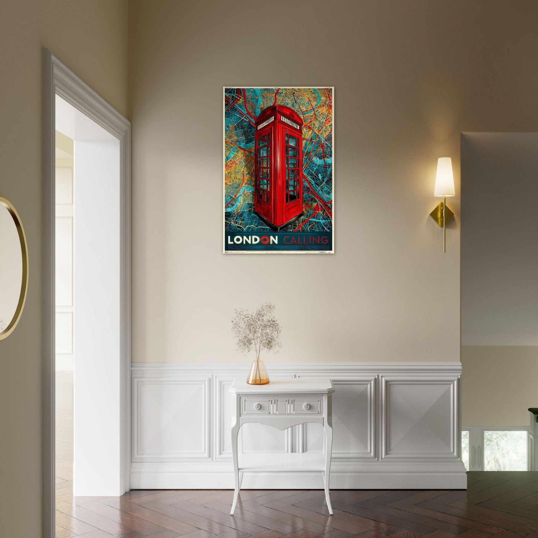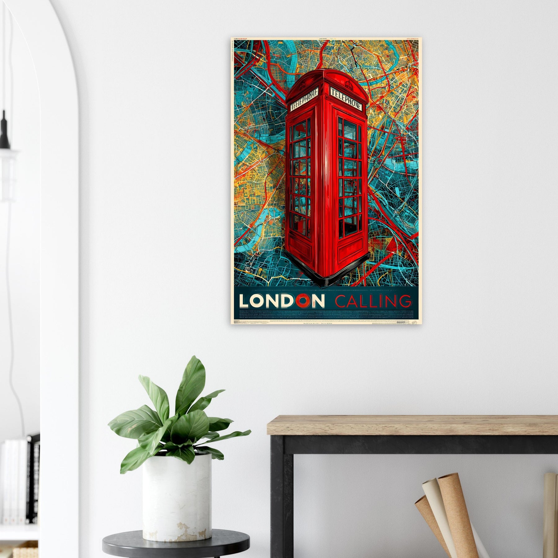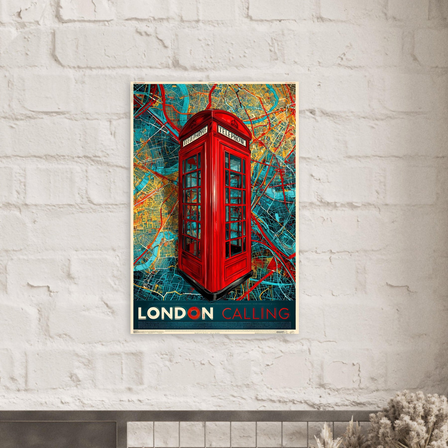 Transform your space with London Calling, a striking aluminum travel wall art piece that captures the timeless charm of the British capital. This classic travel poster features an iconic red telephone box set against a detailed map of London, symbolizing urban exploration, history, and modern city nostalgia.