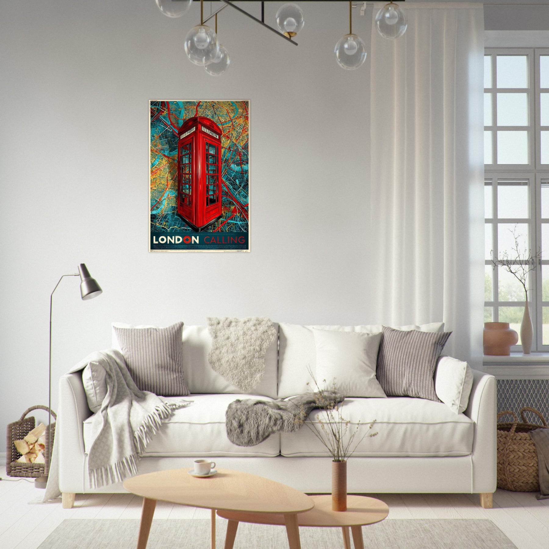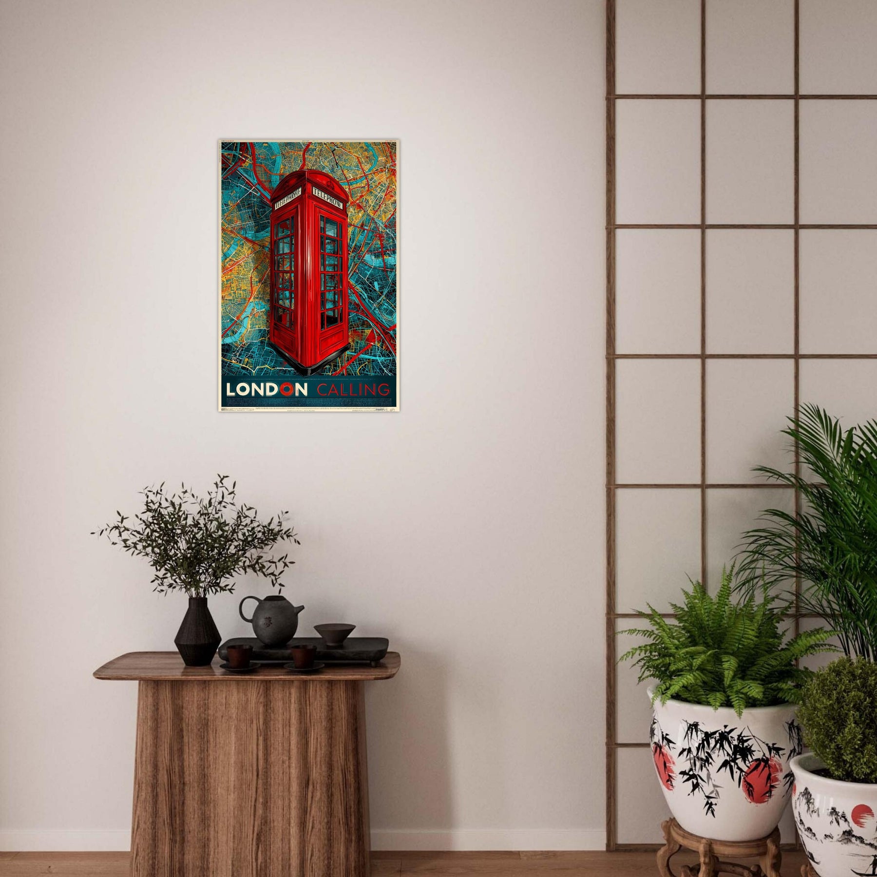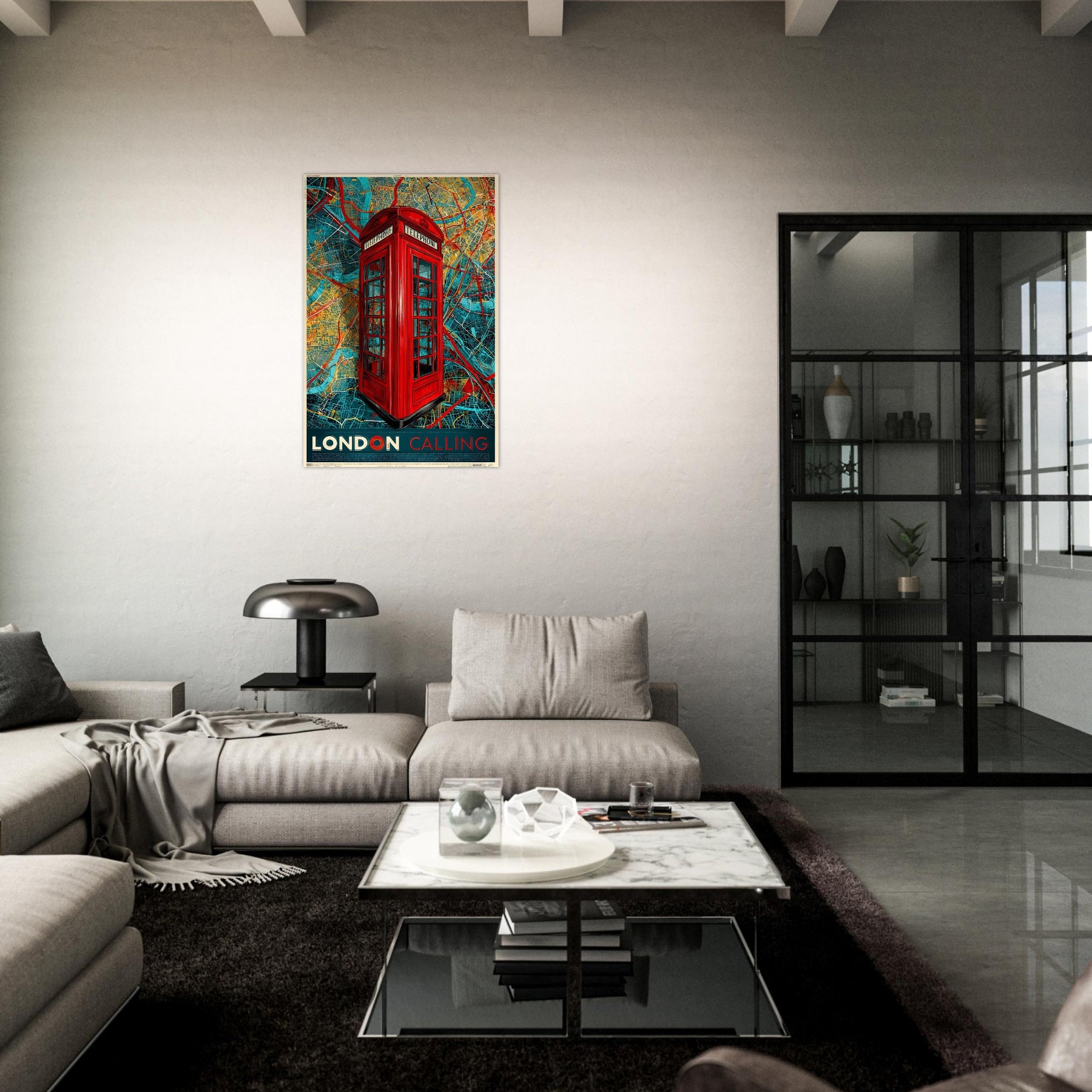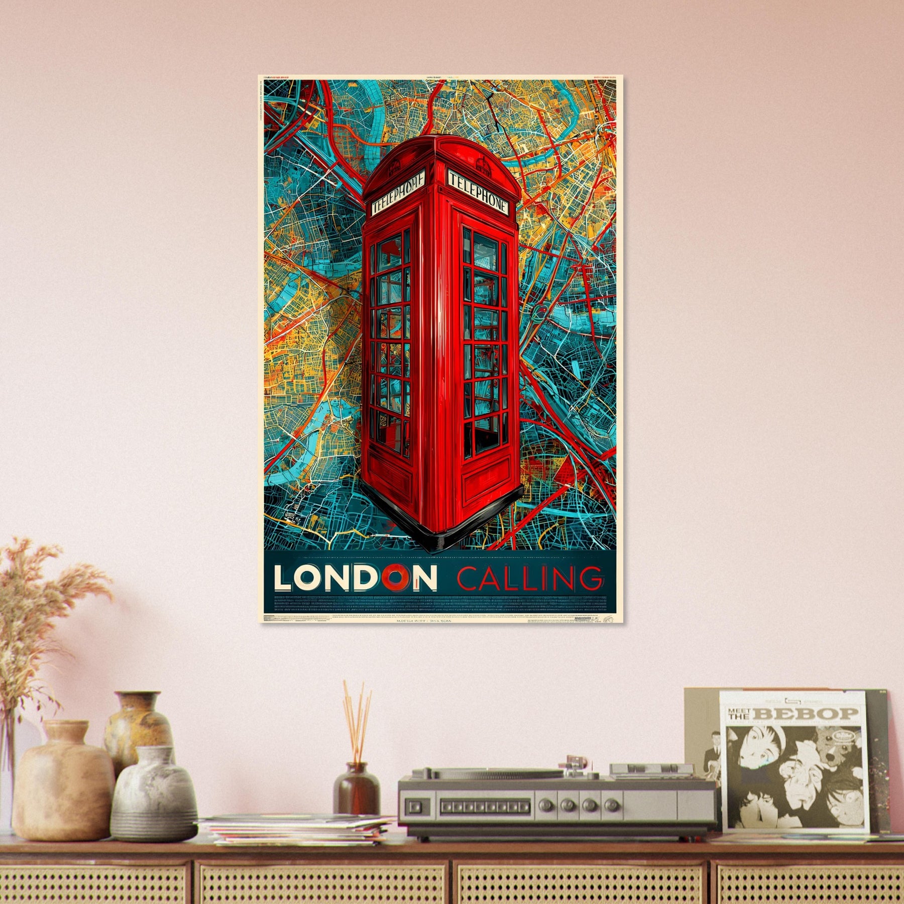 Transform your space with London Calling, a striking aluminum travel wall art piece that captures the timeless charm of the British capital. This classic travel poster features an iconic red telephone box set against a detailed map of London, symbolizing urban exploration, history, and modern city nostalgia.