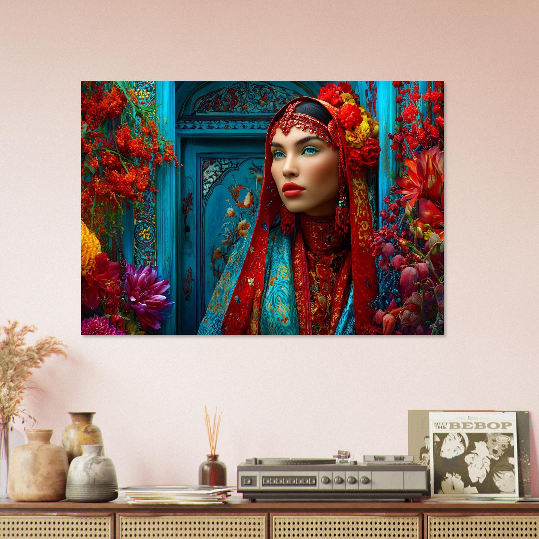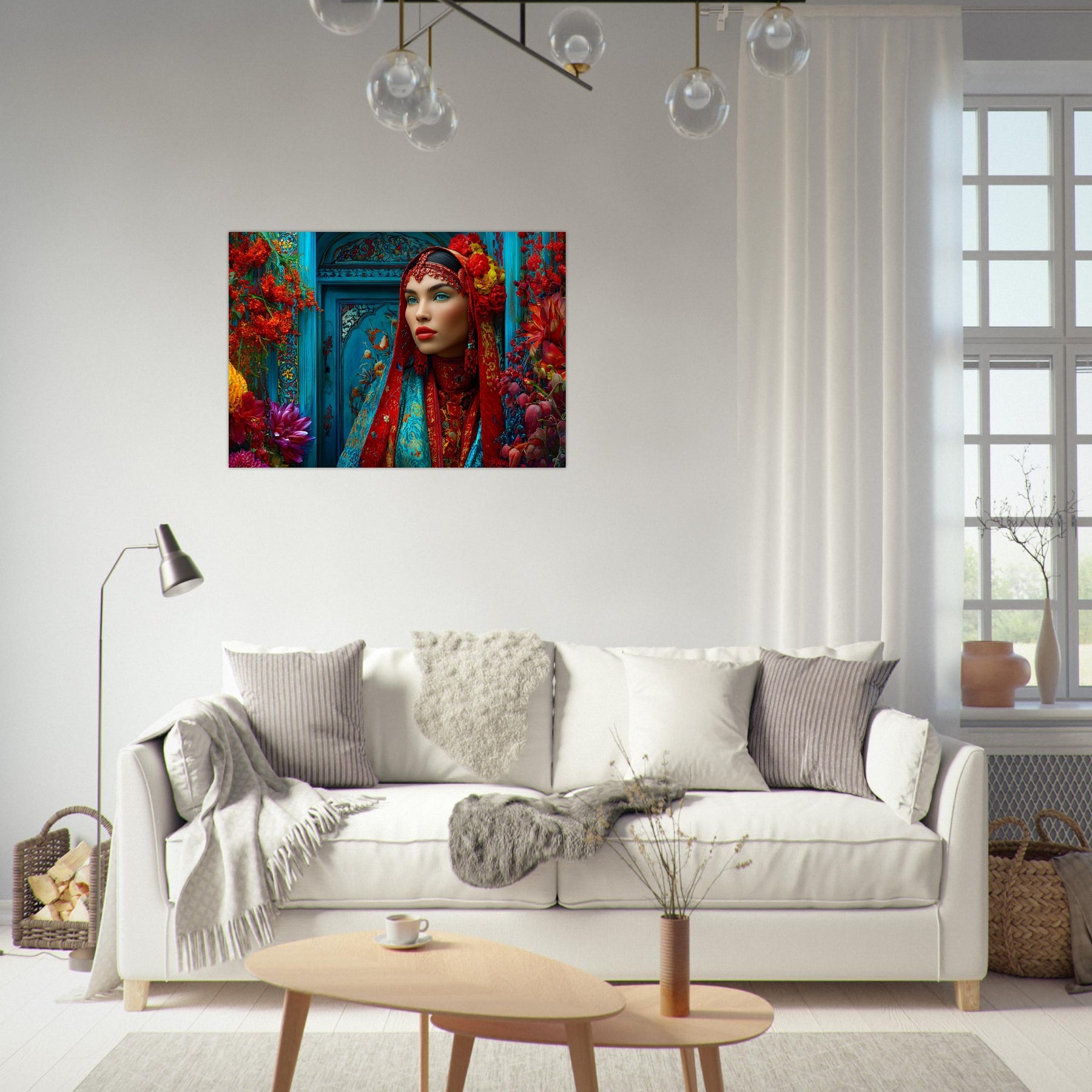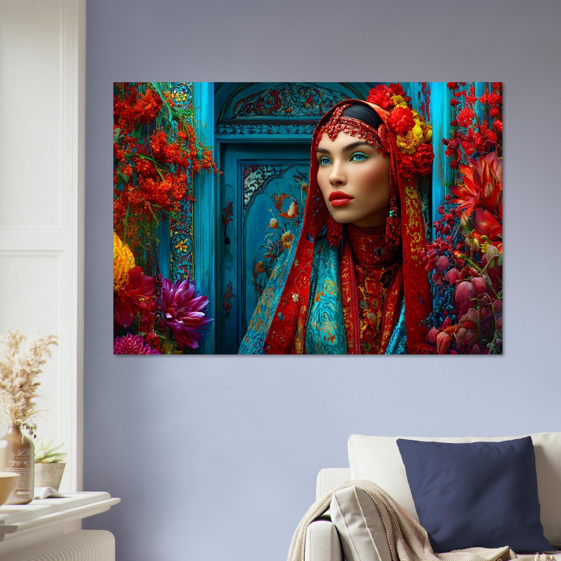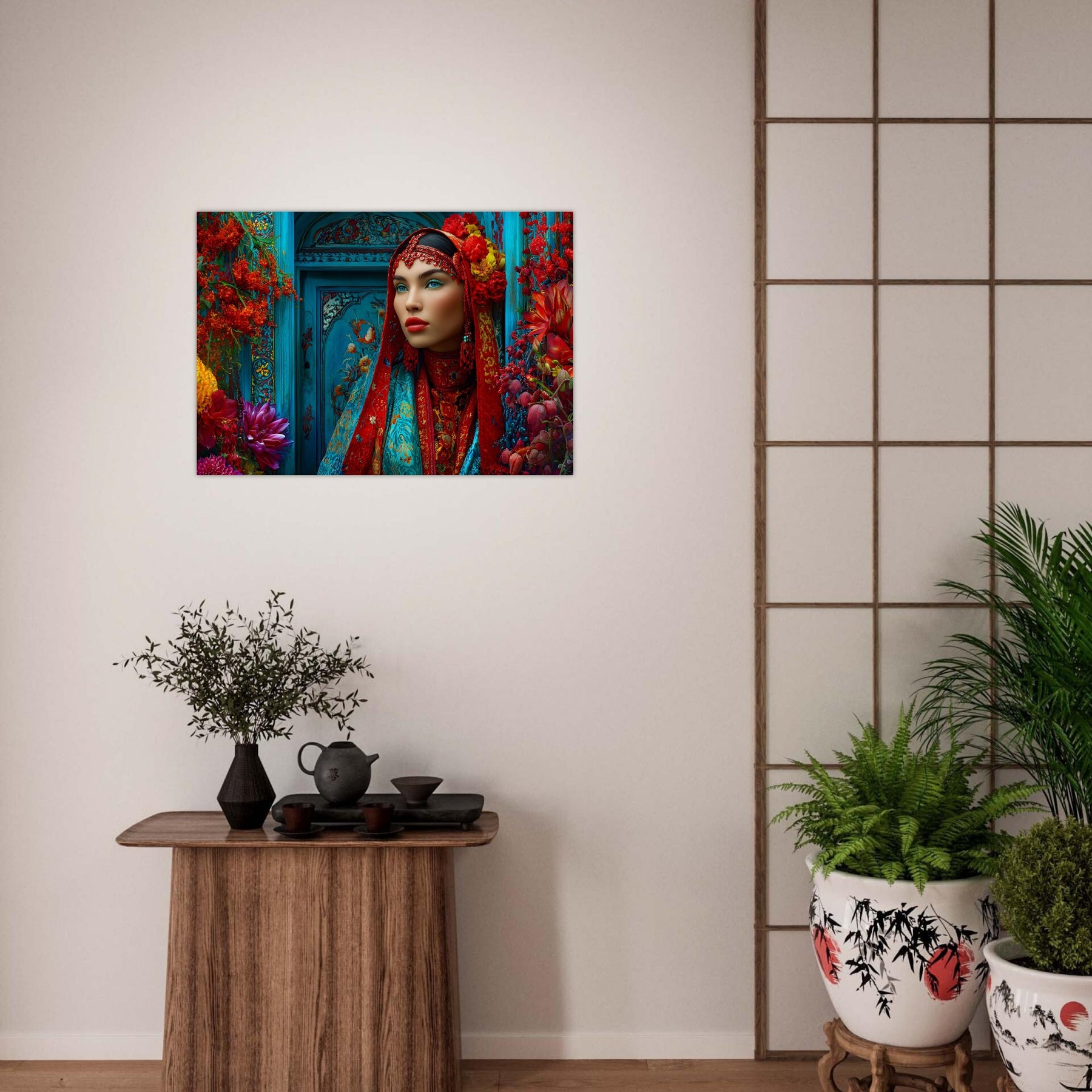 Bring modern flair and vivid style into your space with our Floral Elegance Foam Wall Art. Featuring a striking woman in colorful floral attire, this lightweight design highlights her elegance and cultural richness with bold colors and detailed textures. Sleek and frameless, the foam board print is easy to hang, making it a perfect fit for any contemporary space.