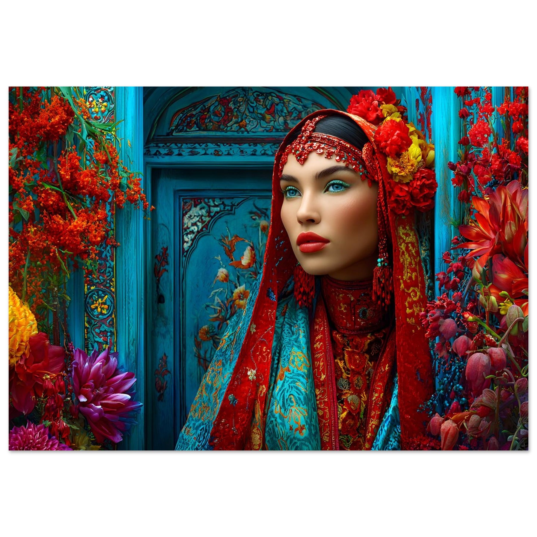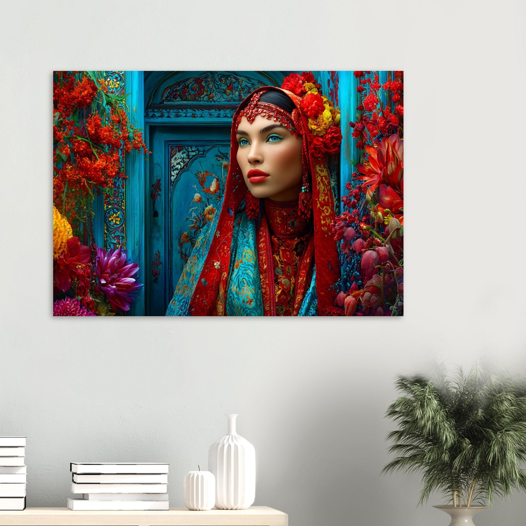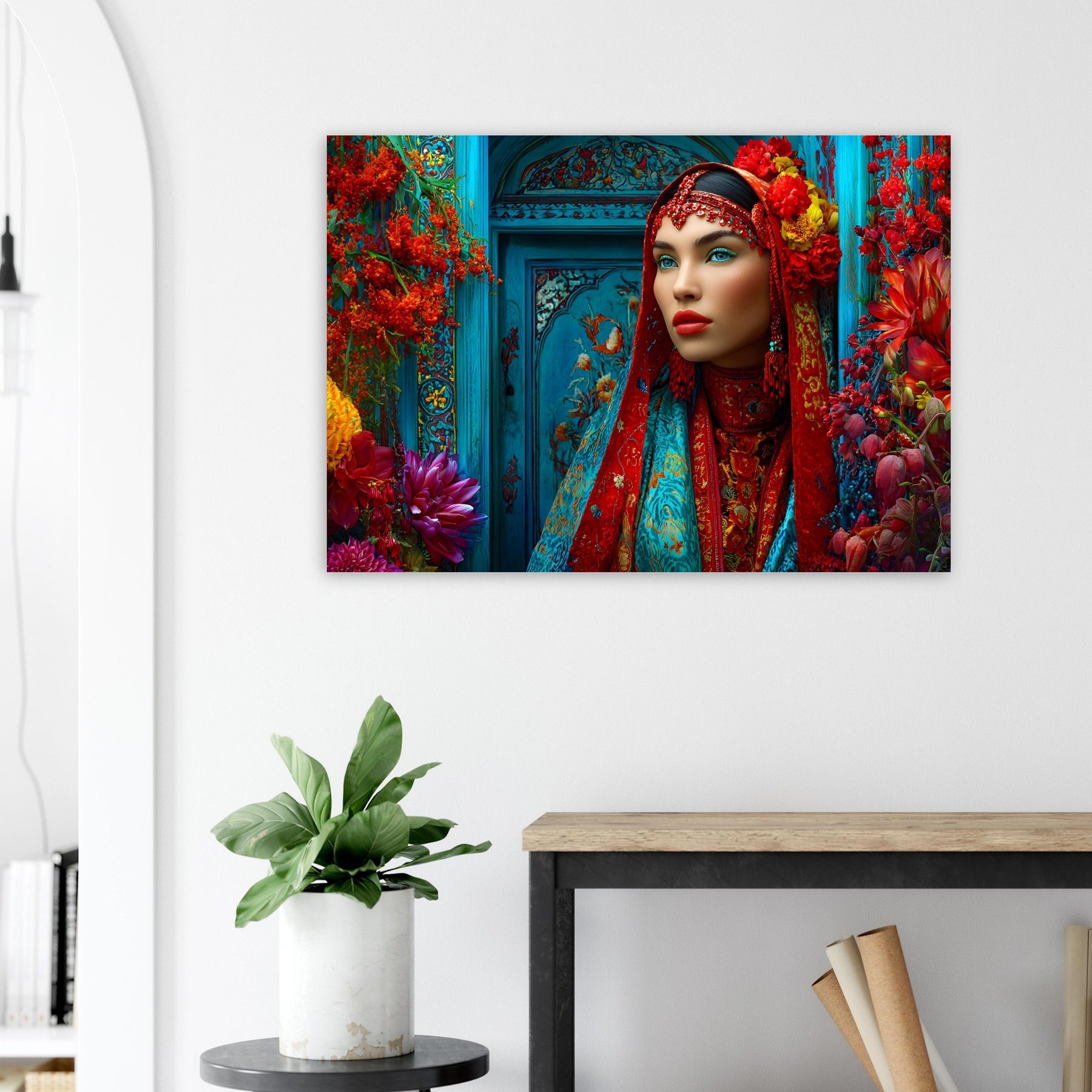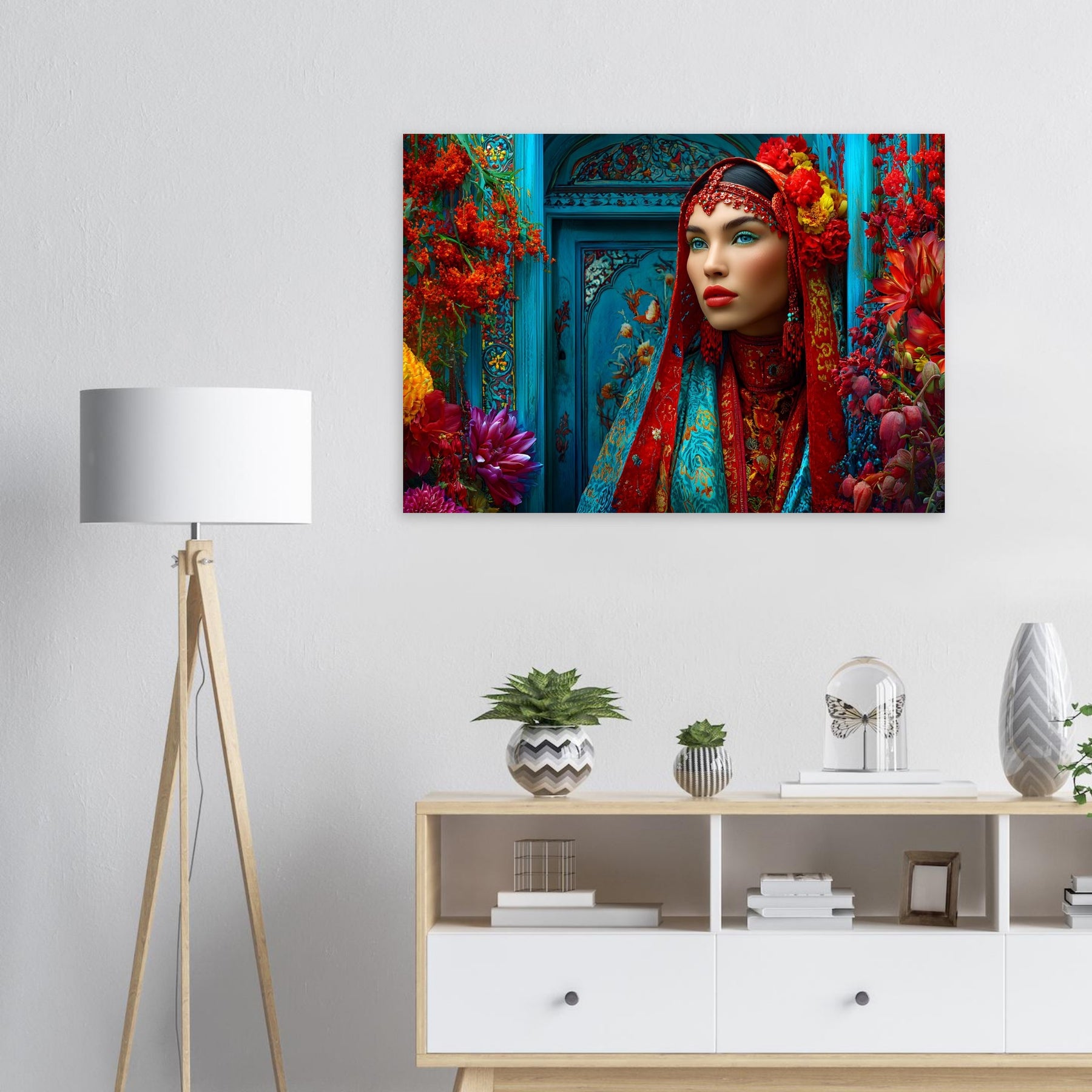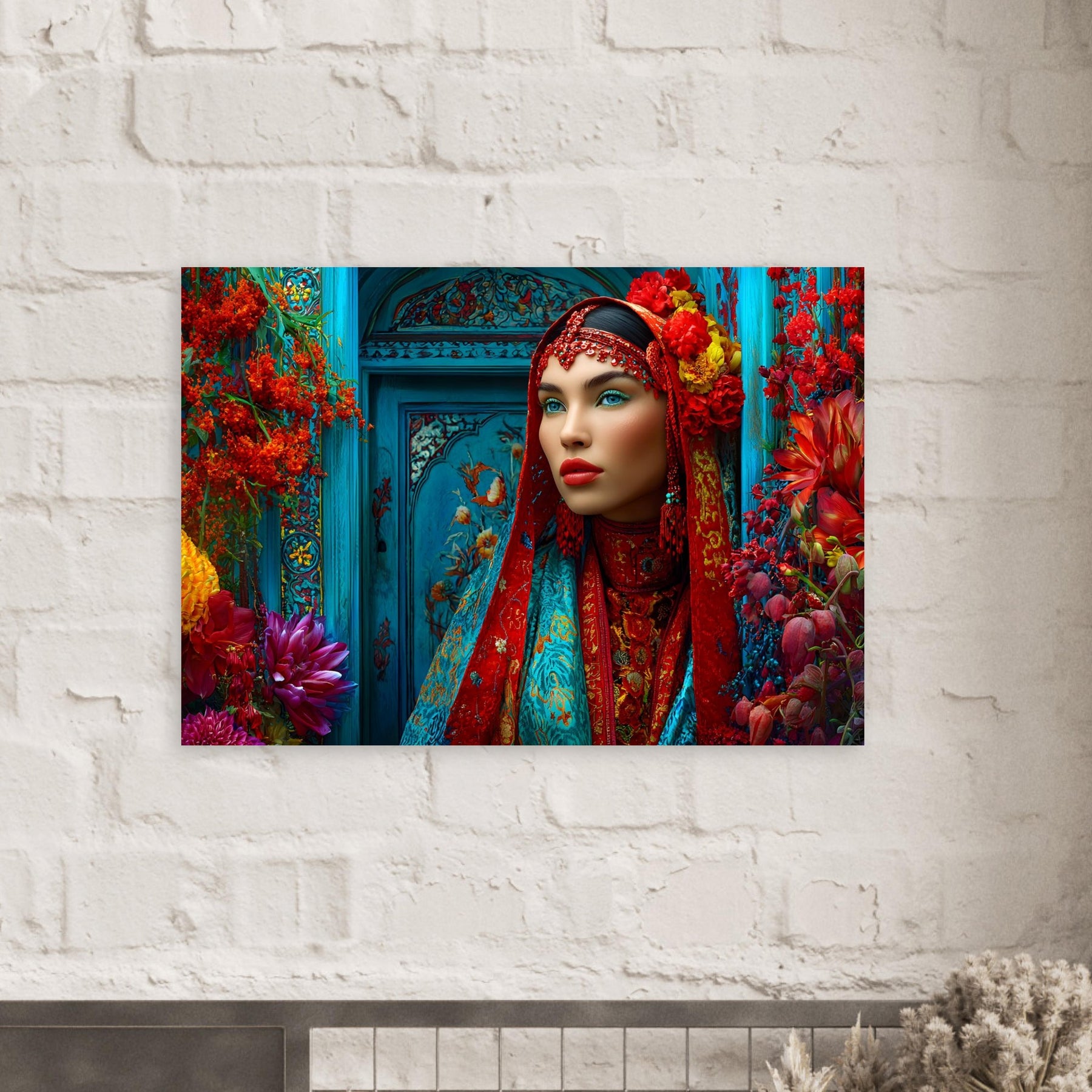 Bring modern flair and vivid style into your space with our Floral Elegance Foam Wall Art. Featuring a striking woman in colorful floral attire, this lightweight design highlights her elegance and cultural richness with bold colors and detailed textures. Sleek and frameless, the foam board print is easy to hang, making it a perfect fit for any contemporary space.