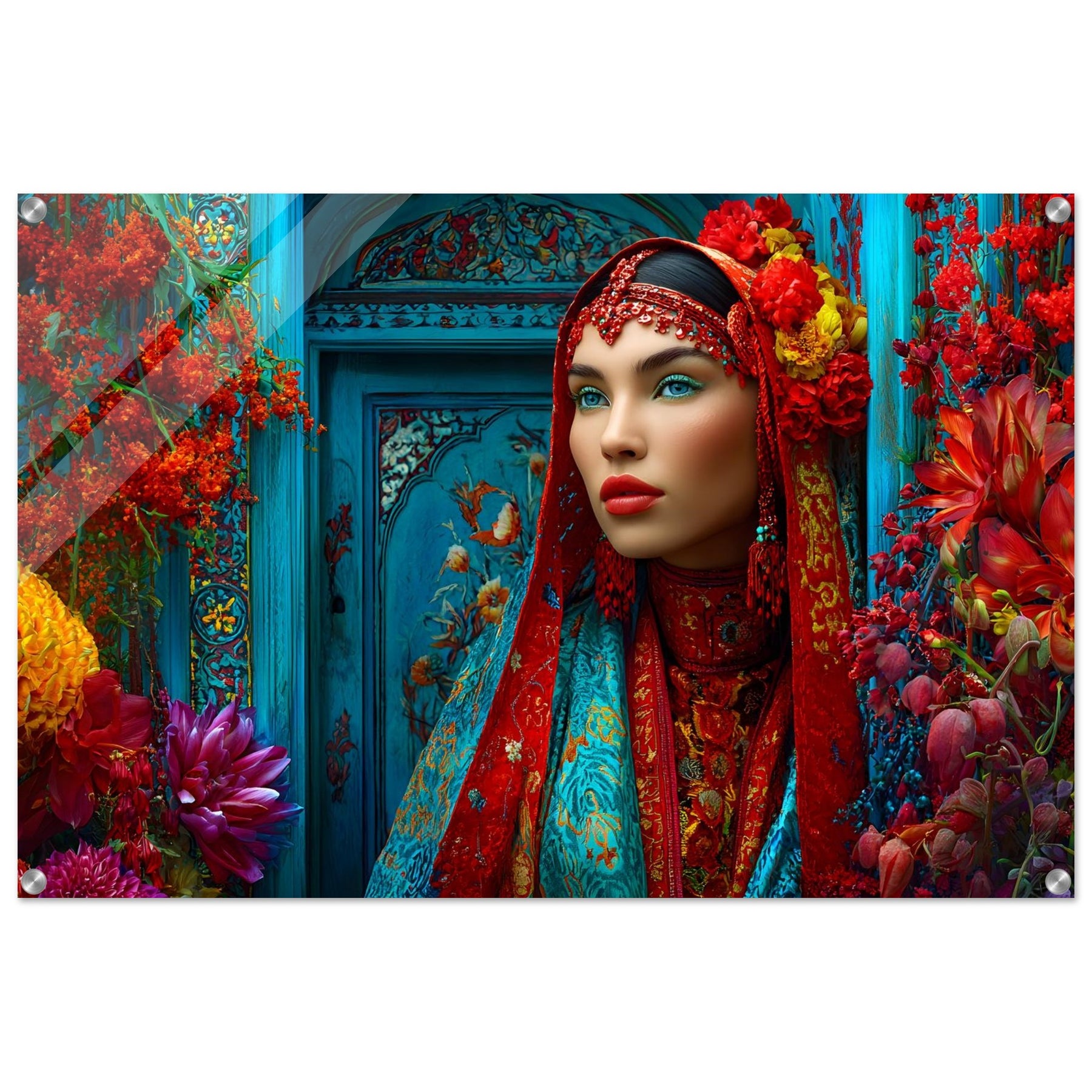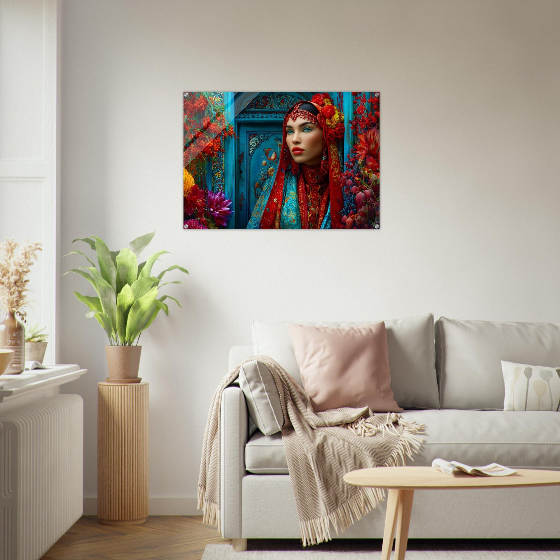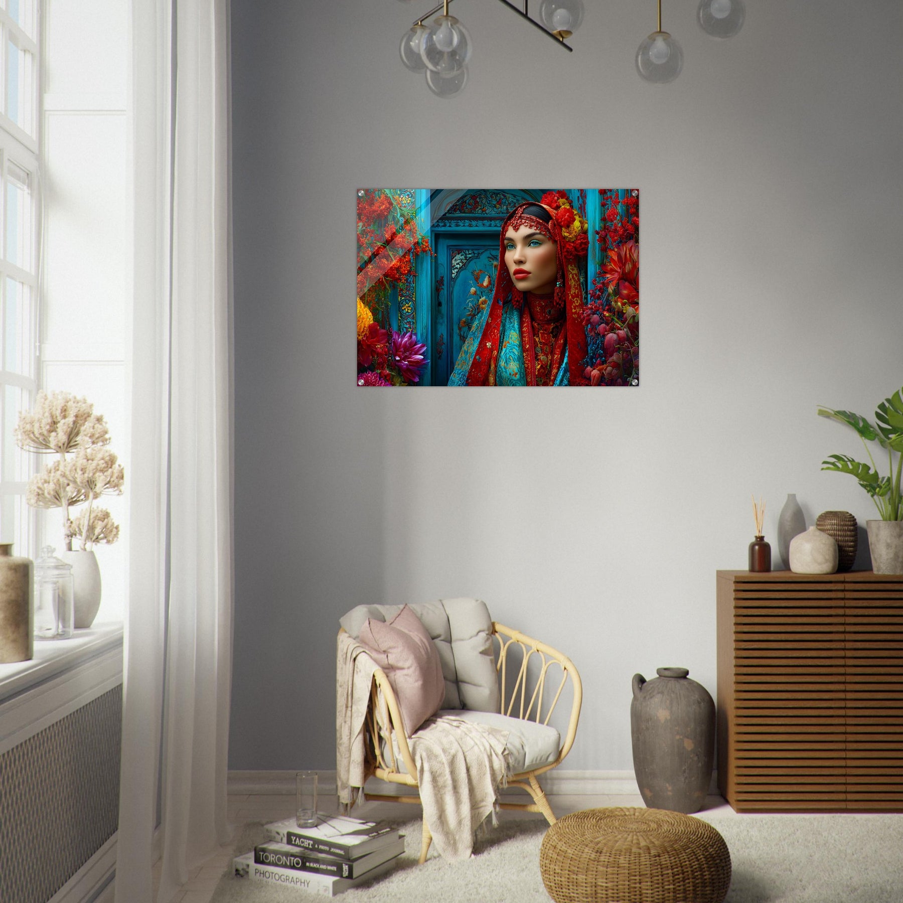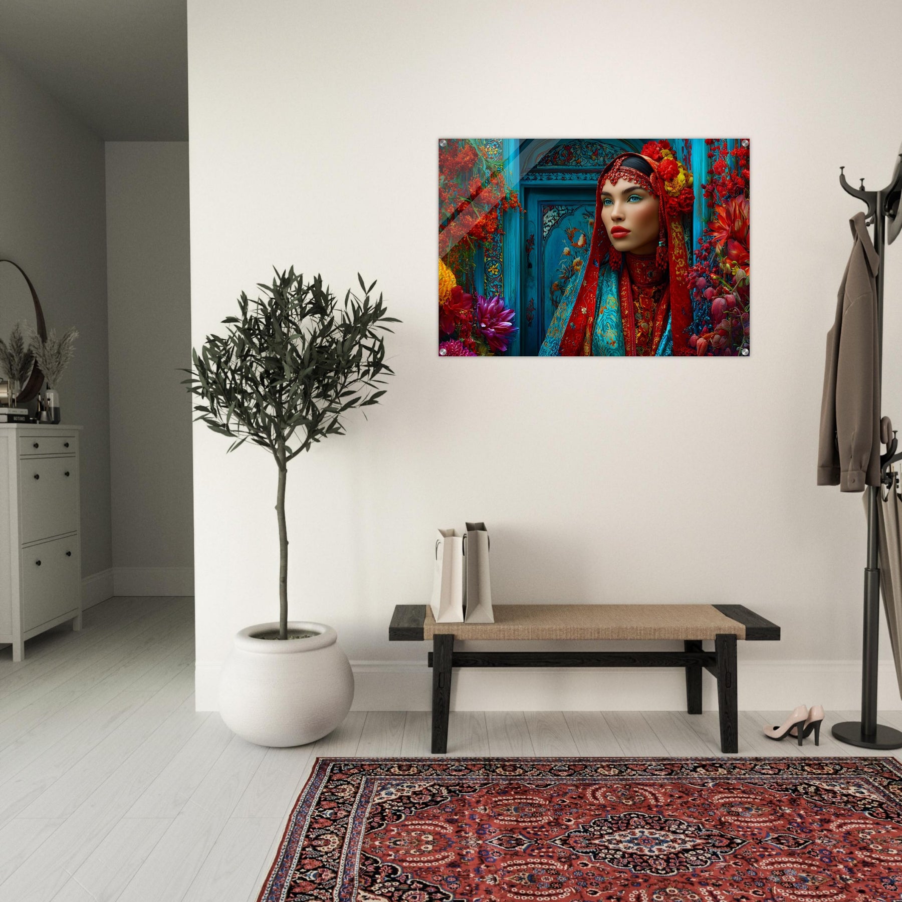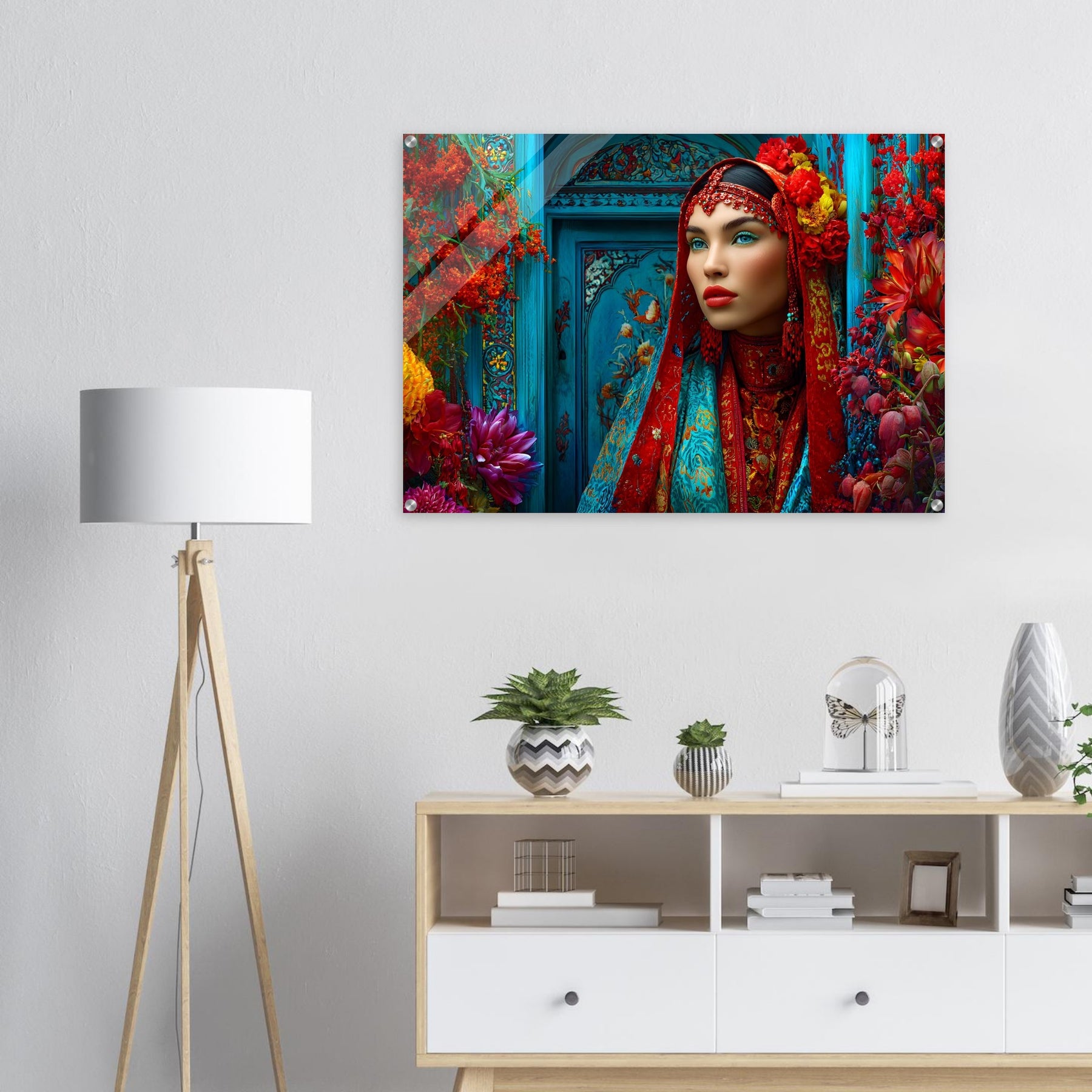Floral Elegance – Acrylic Wall Art of Woman in Vibrant Attire