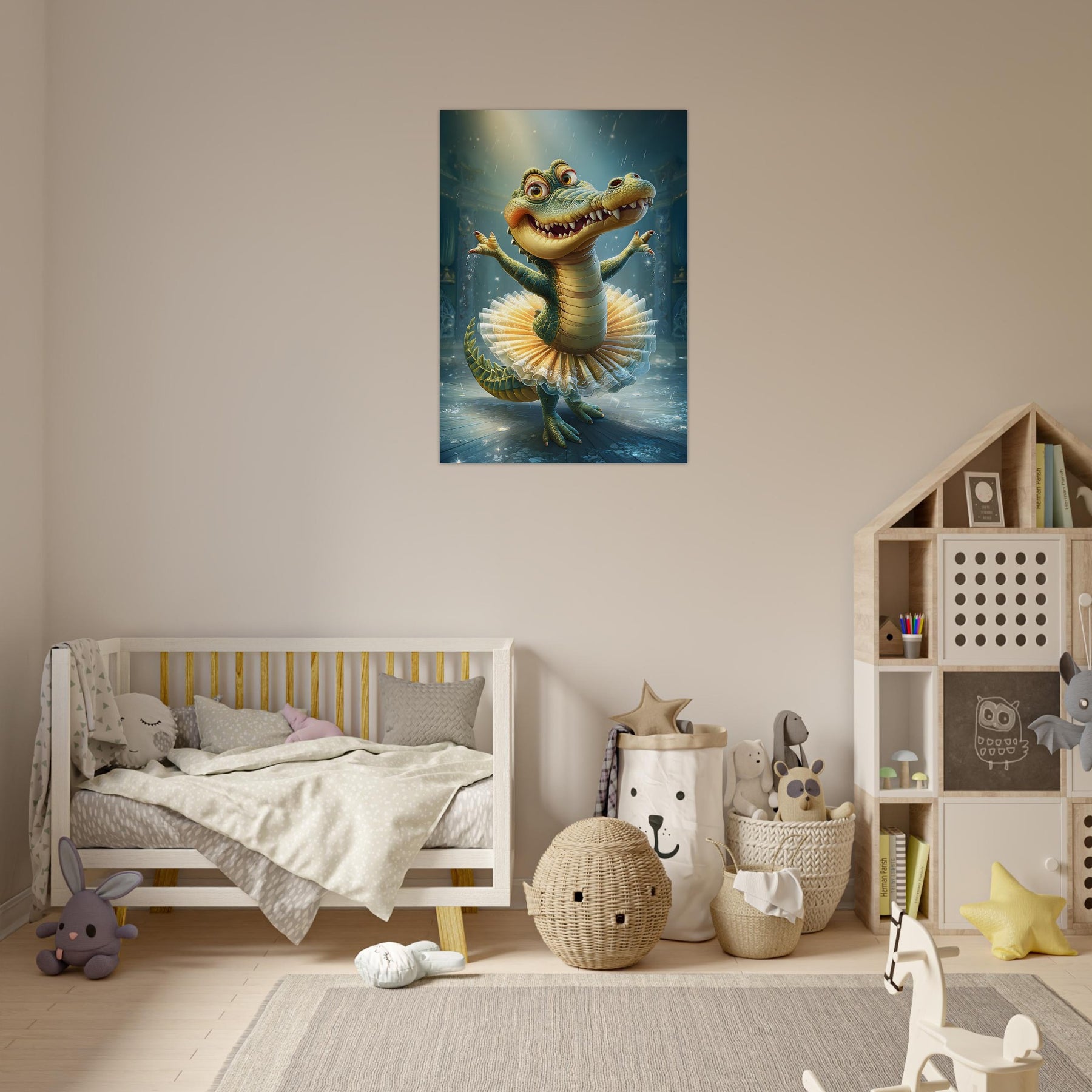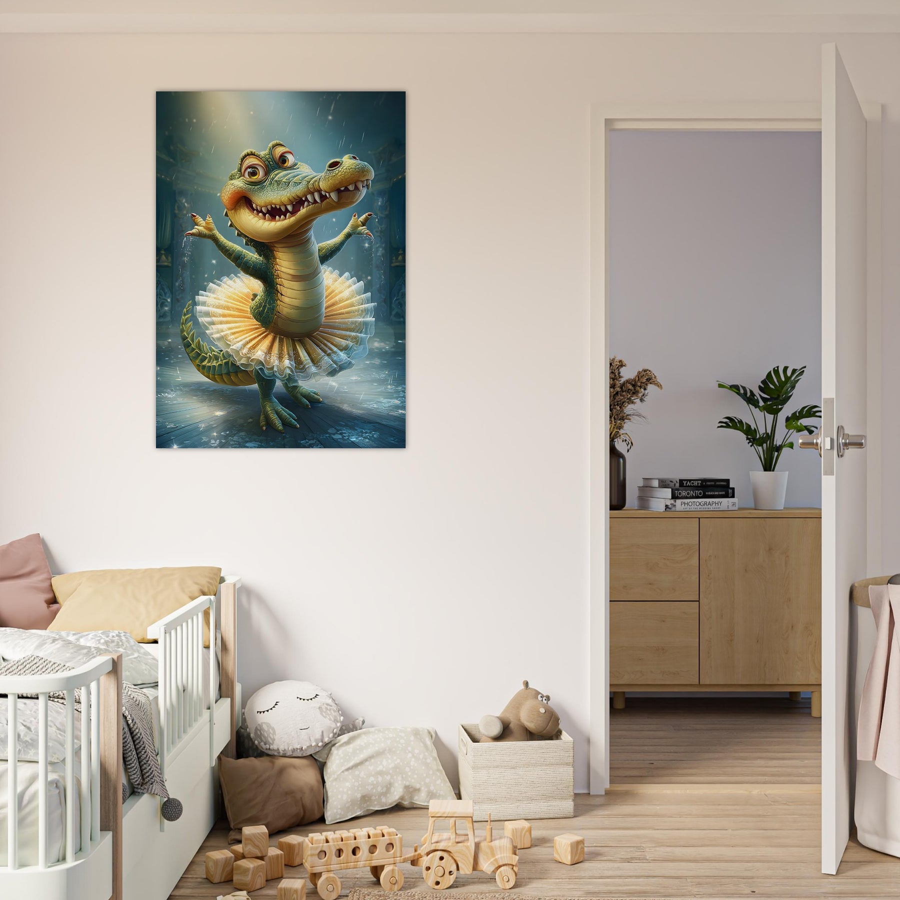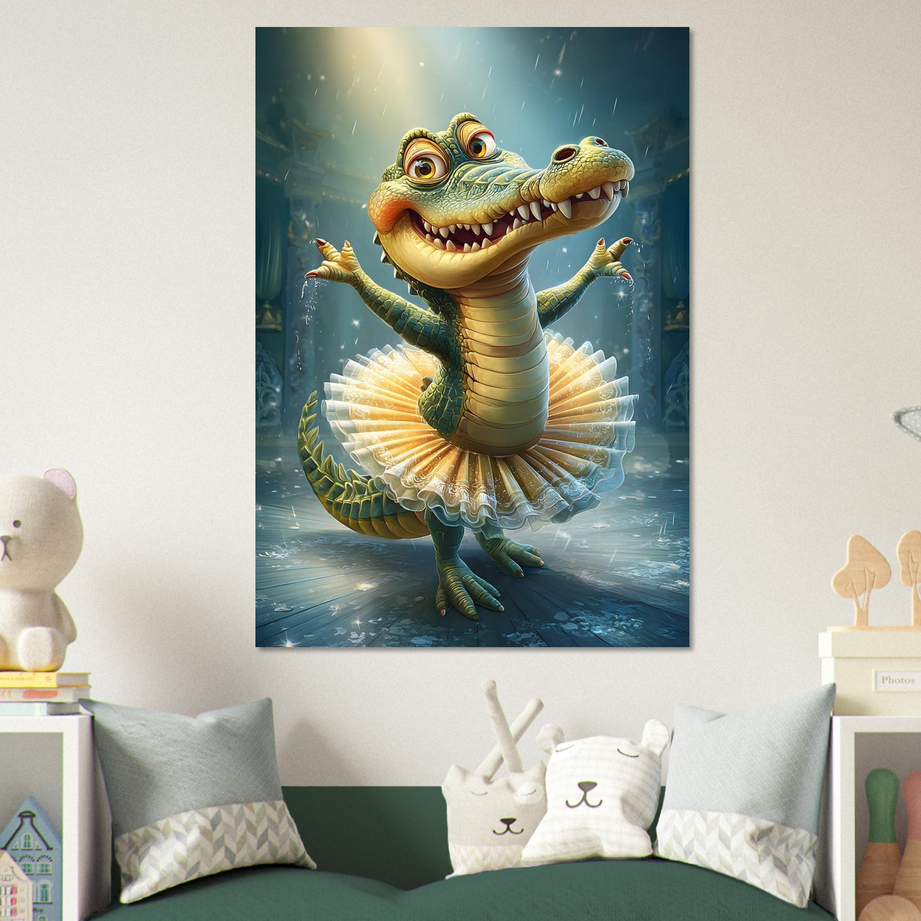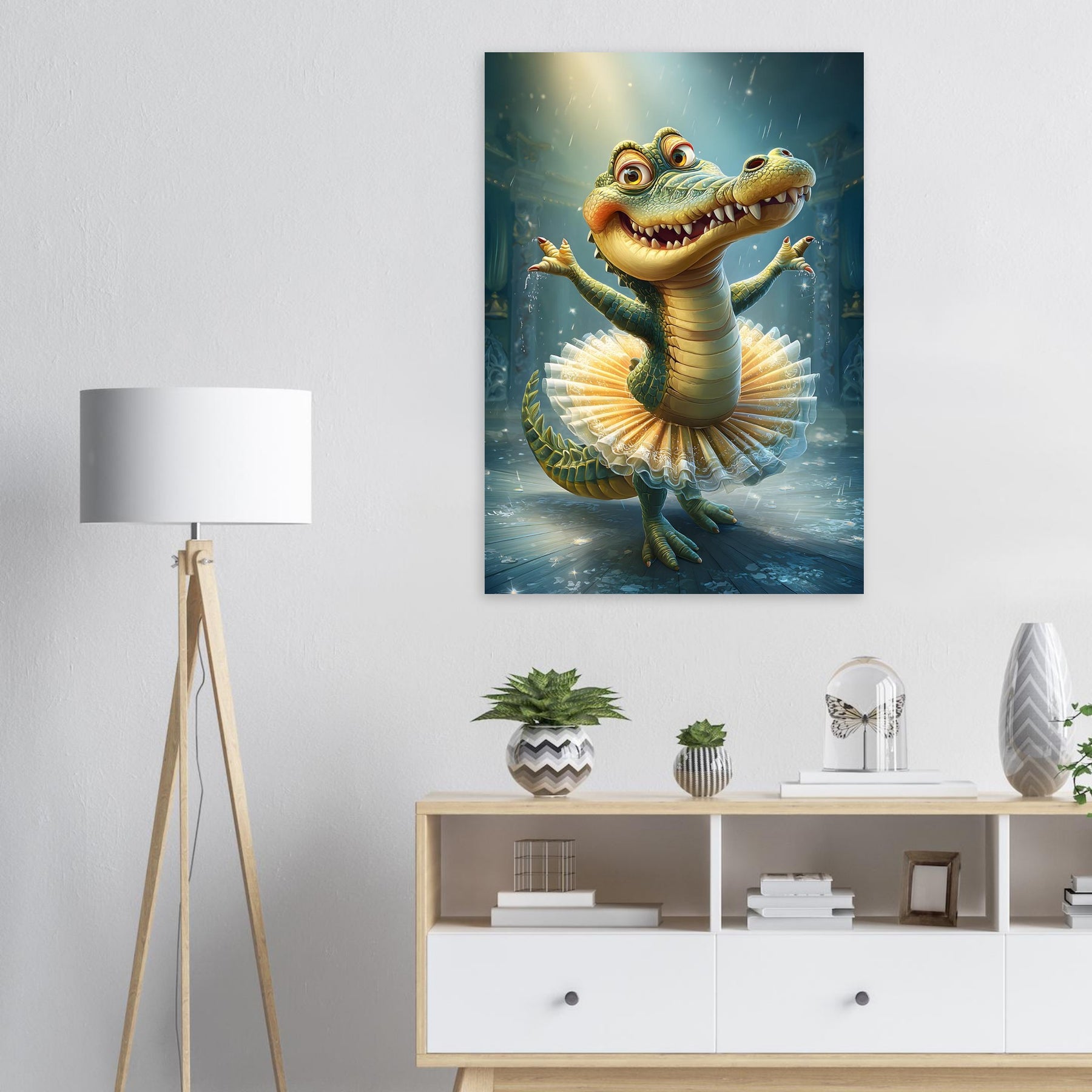 Bring laughter, grace, and imagination into your child’s room with the Ballet in Scales Aluminum Wall Art. This whimsical illustration features a charming crocodile dressed in a delicate tutu, performing a graceful ballet dance under the spotlight. Set against a vibrant stage filled with color and charm, this delightful artwork captures the perfect balance between humor, creativity, and artistic beauty — a true celebration of joyful self-expression.