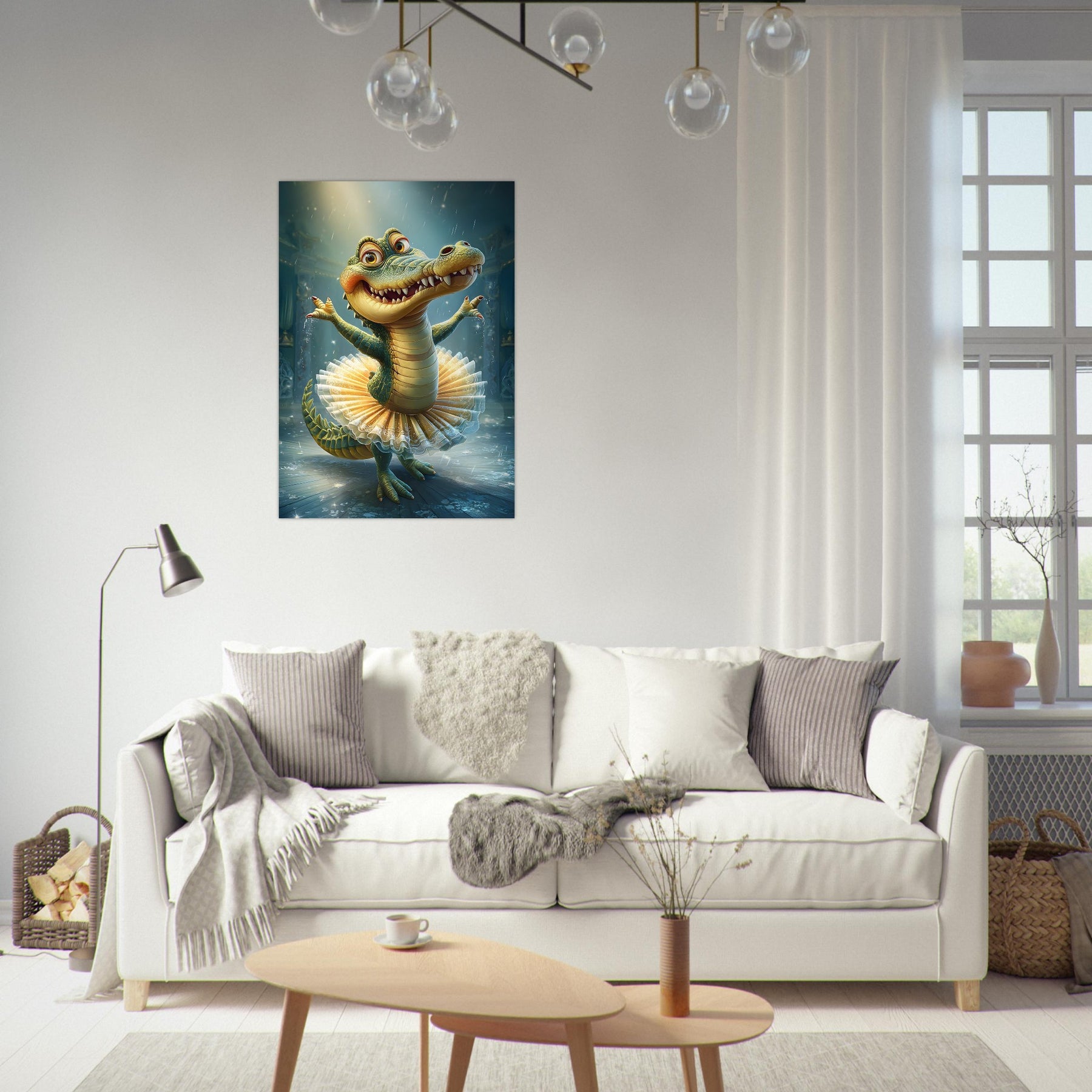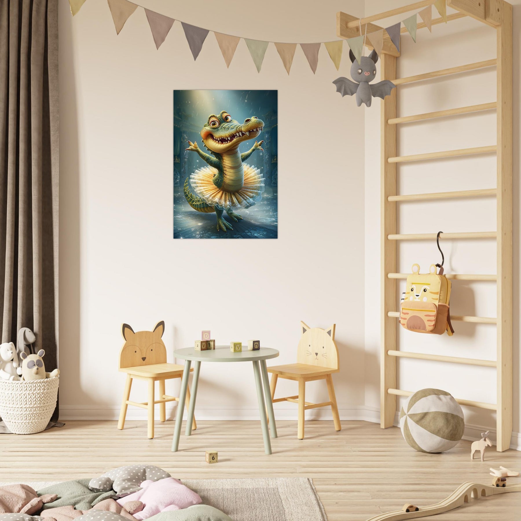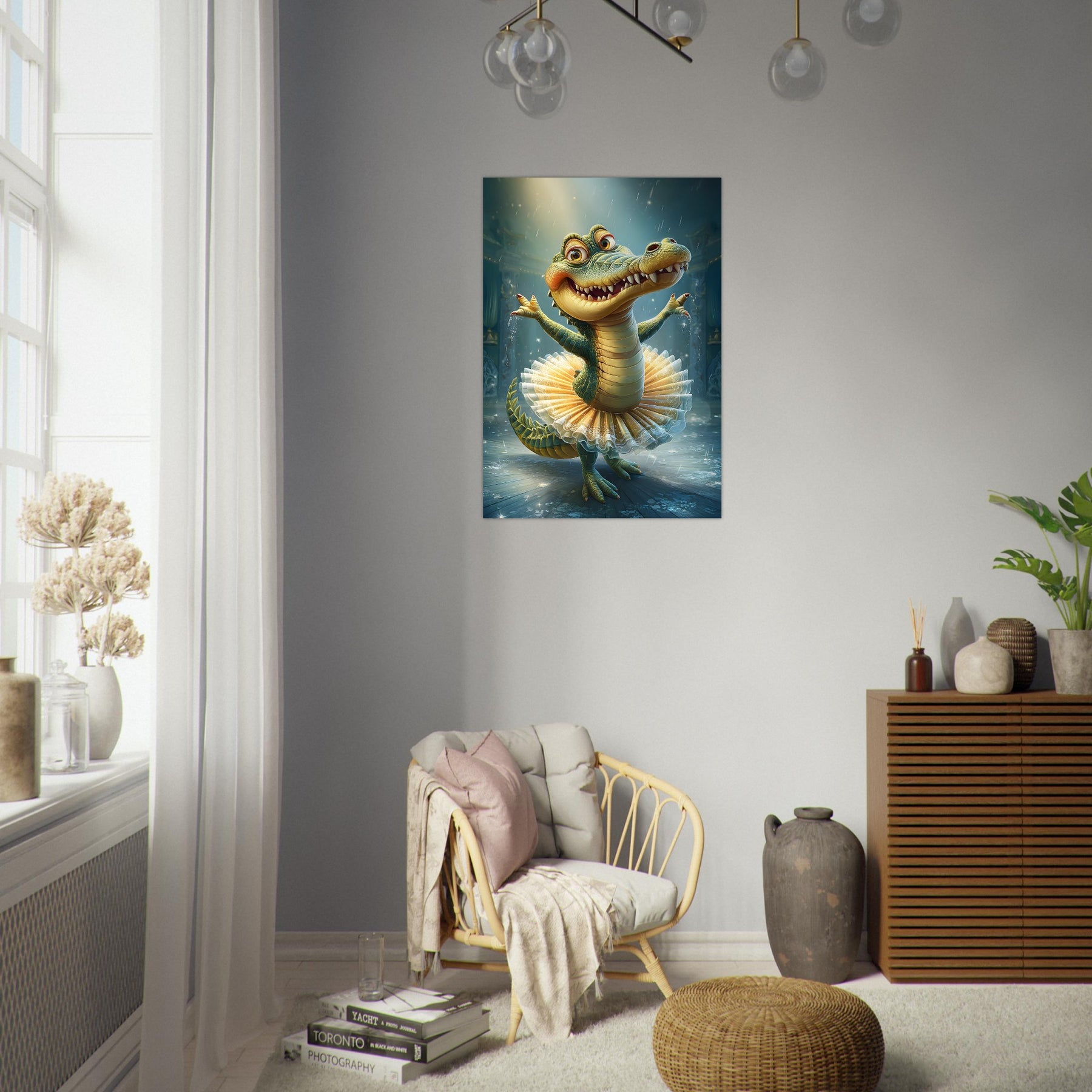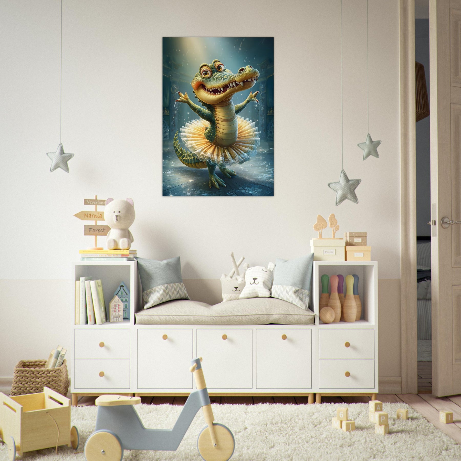 Bring laughter, grace, and imagination into your child’s room with the Ballet in Scales Aluminum Wall Art. This whimsical illustration features a charming crocodile dressed in a delicate tutu, performing a graceful ballet dance under the spotlight. Set against a vibrant stage filled with color and charm, this delightful artwork captures the perfect balance between humor, creativity, and artistic beauty — a true celebration of joyful self-expression.
