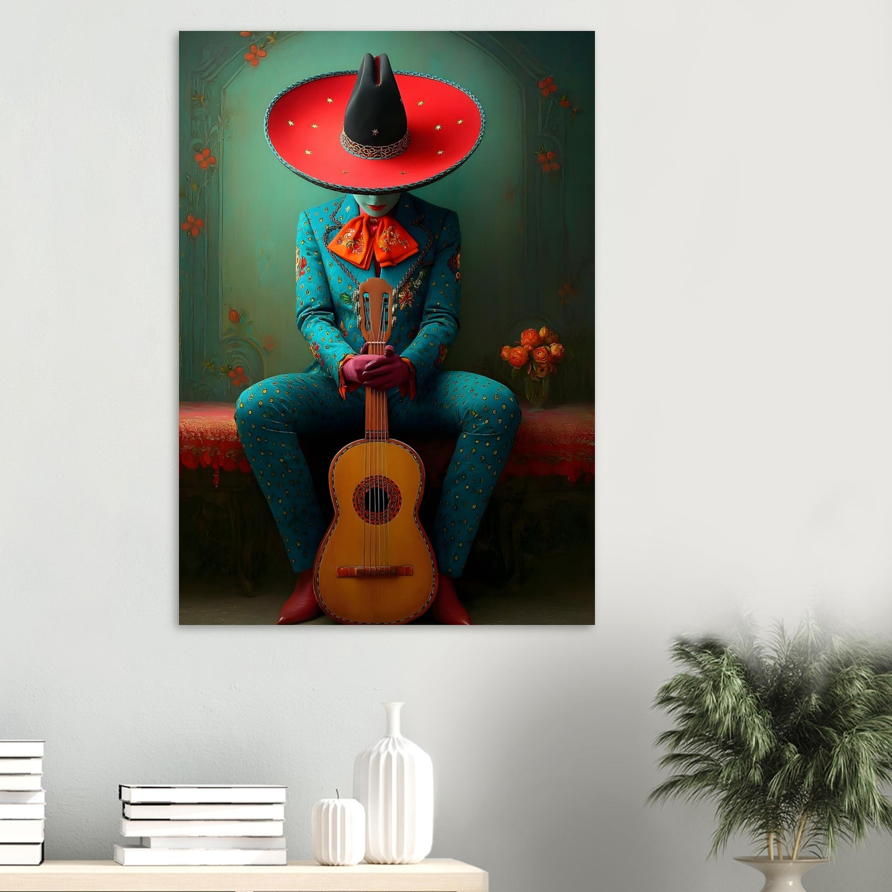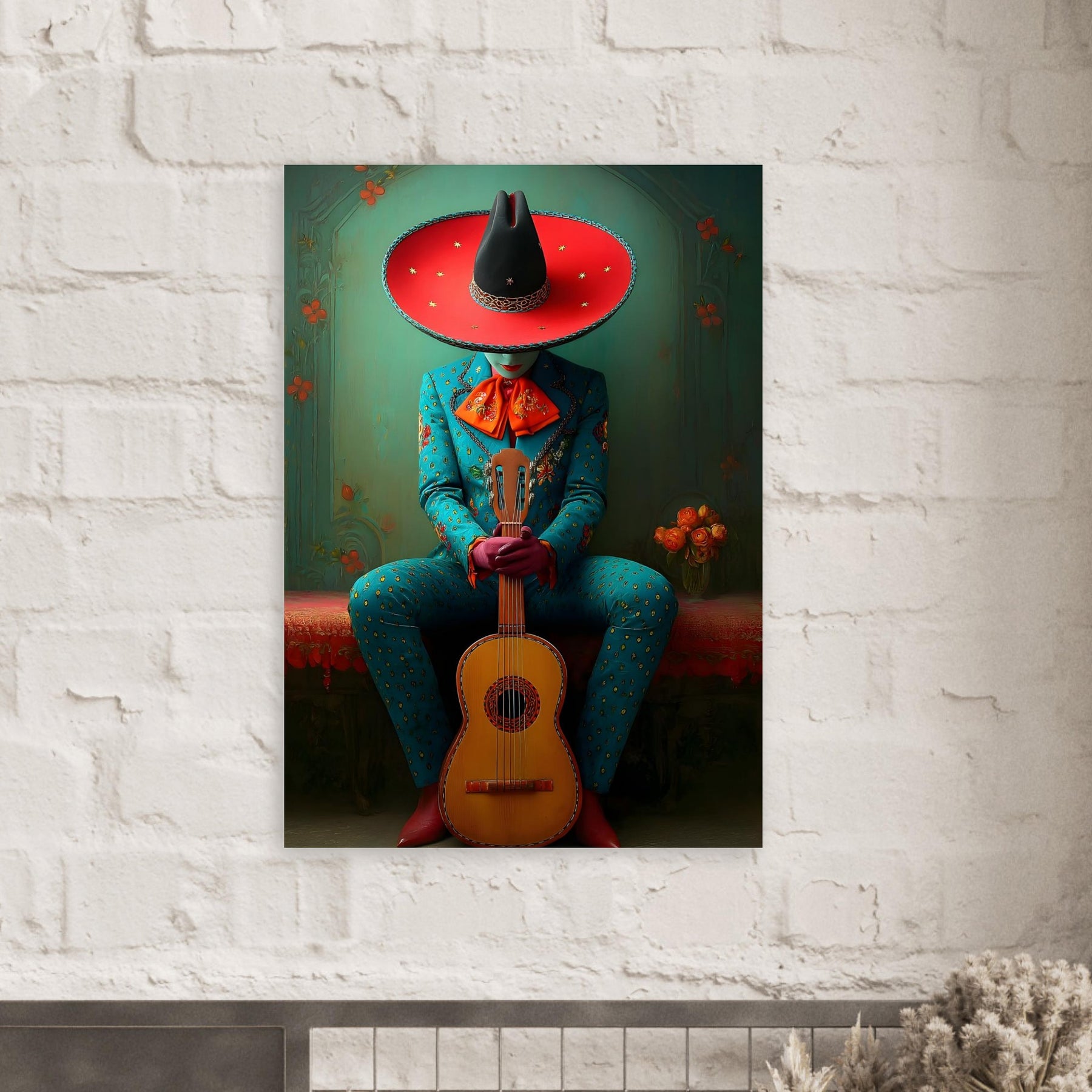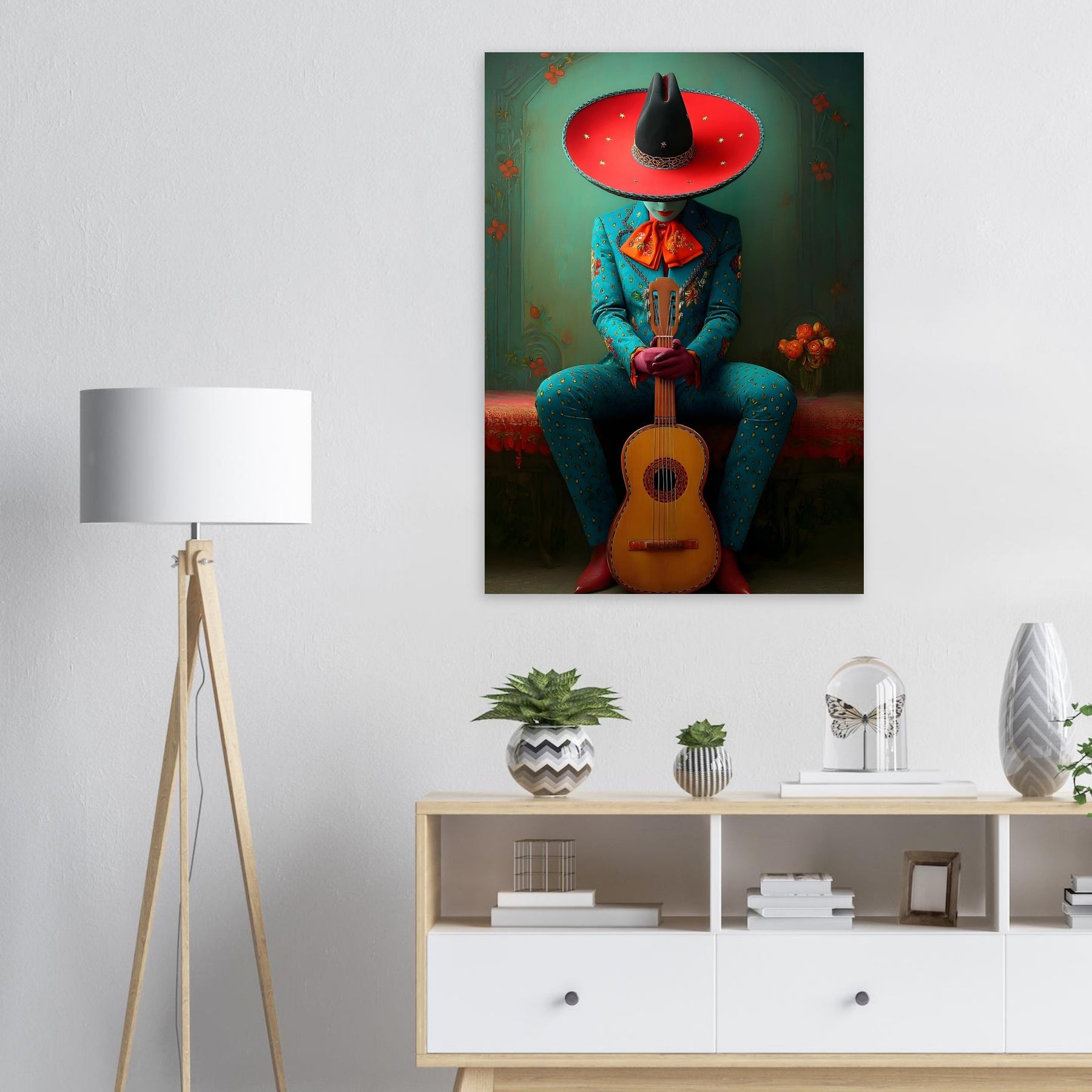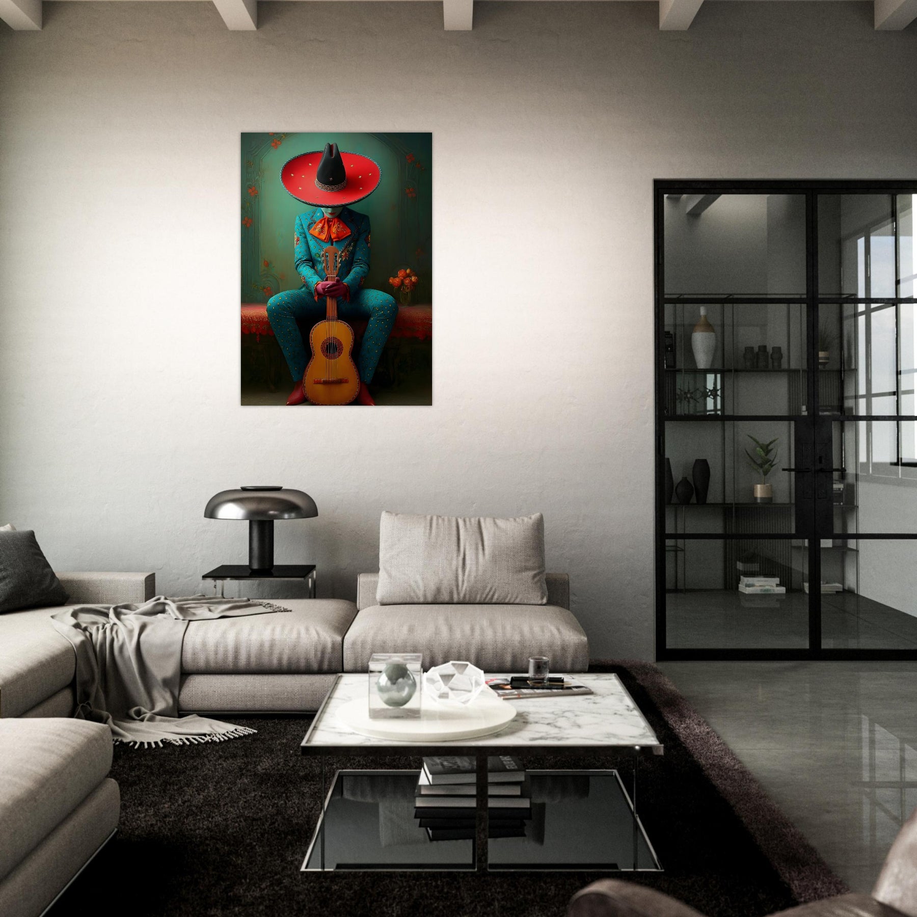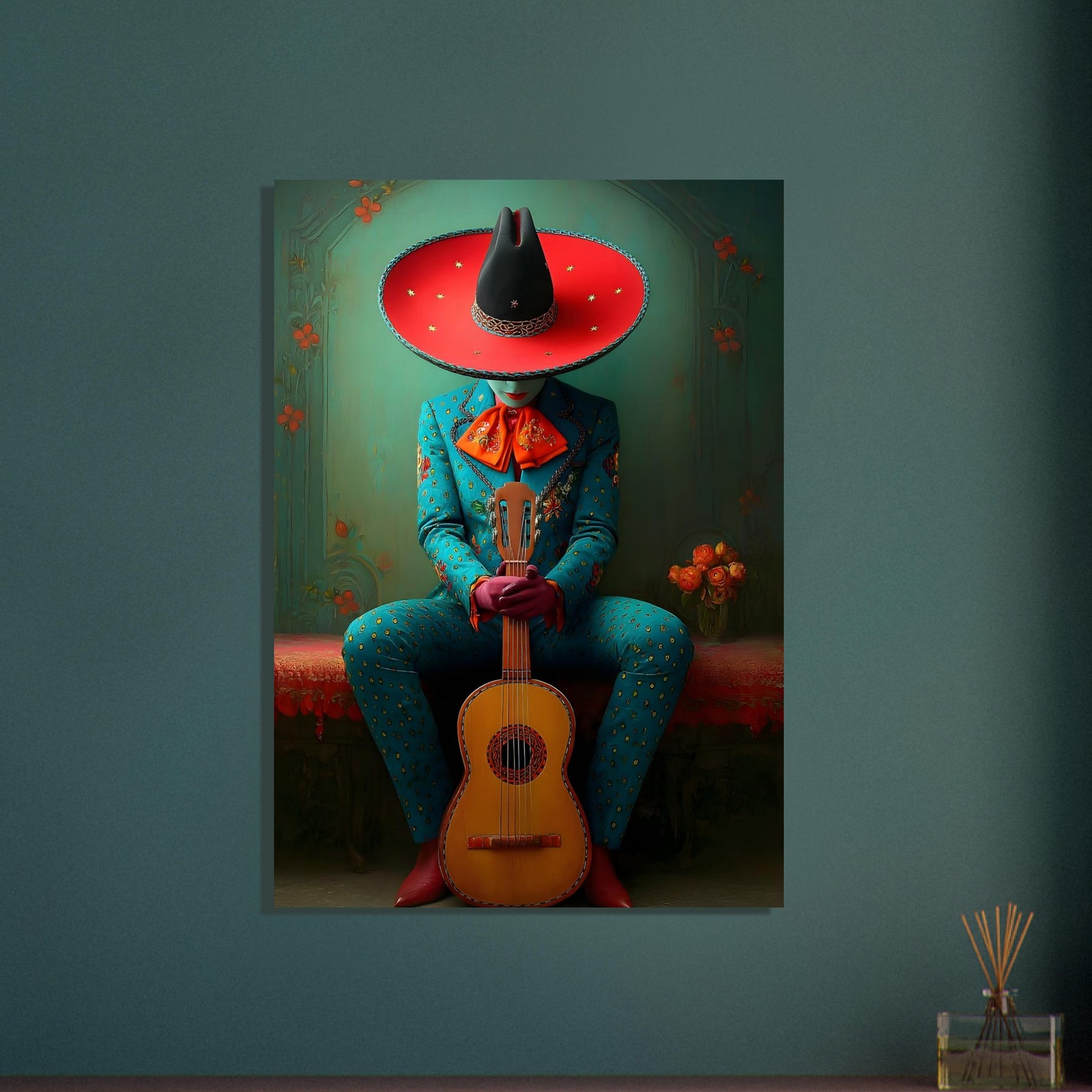 Bring the joy and spirit of Mexico into your home with the Colorful Mariachi Musician Aluminum Wall Art. This vibrant artwork features a mariachi musician in a striking traditional outfit, seated with a guitar, symbolizing the heart and soul of Mexican music and cultural celebration. With its rich details and bold colors, this piece perfectly captures the energy, rhythm, and heritage of mariachi traditions.