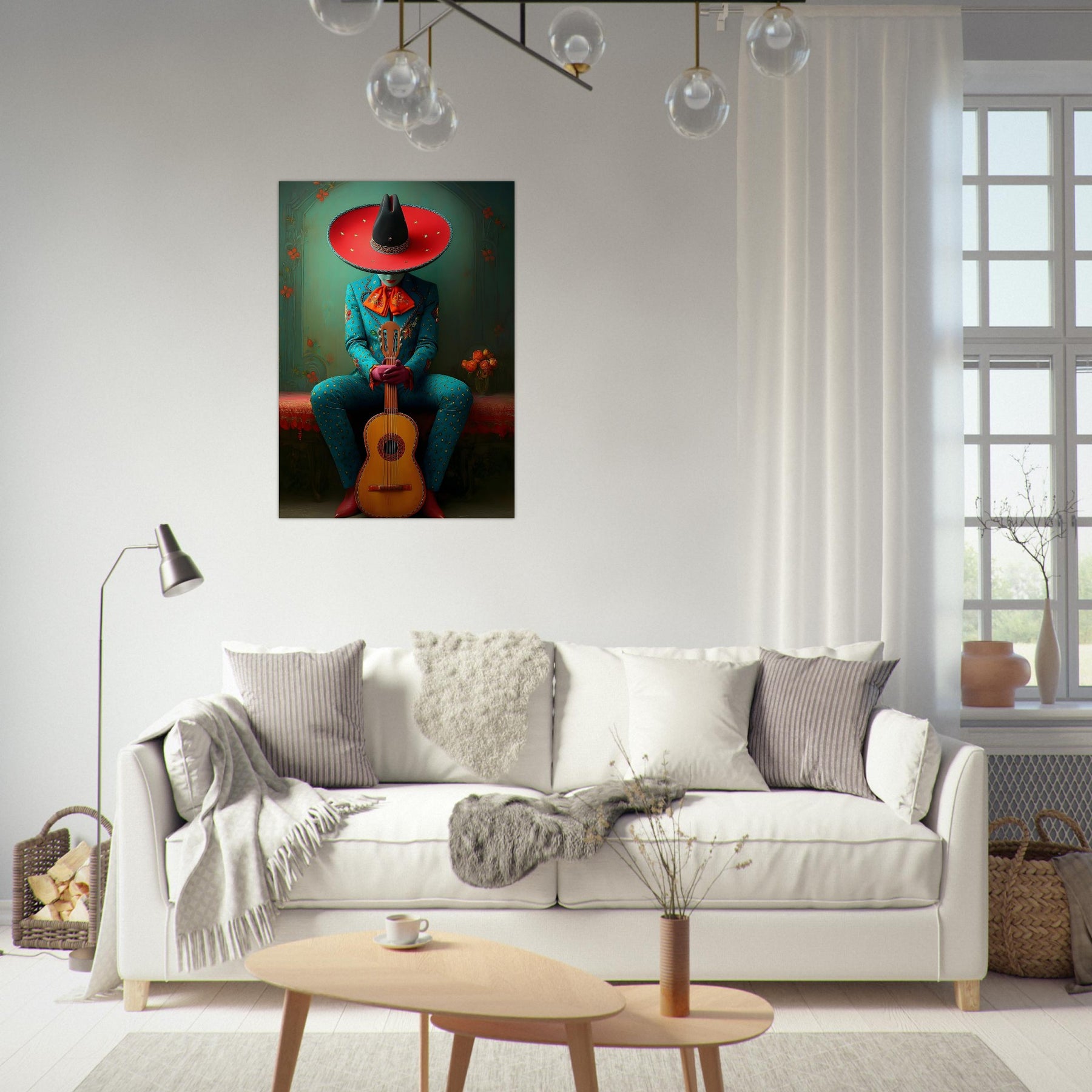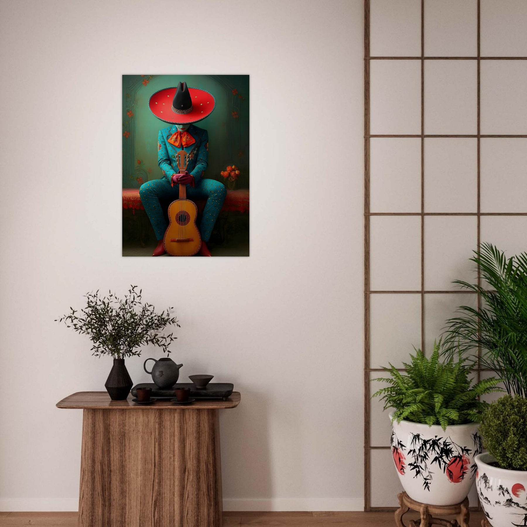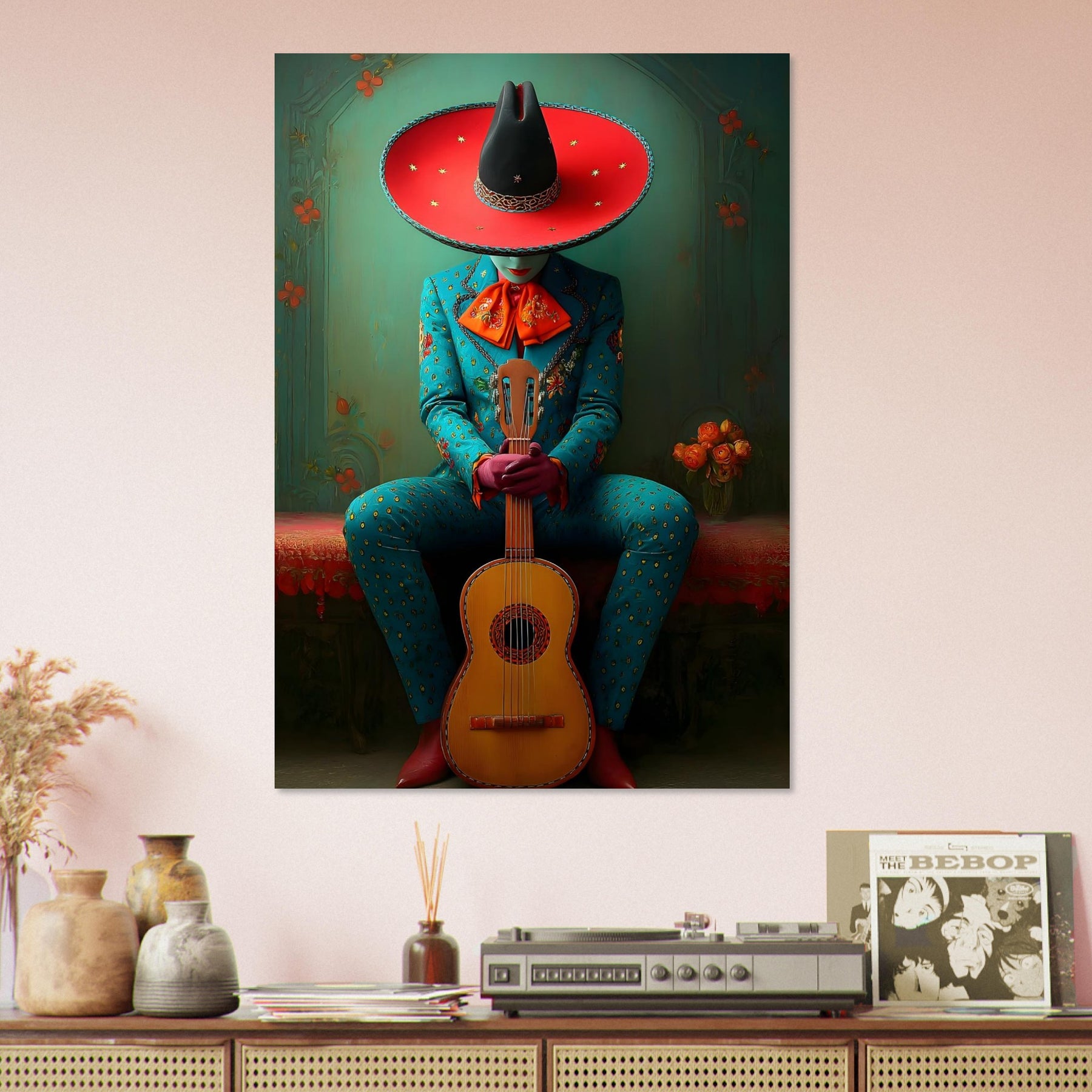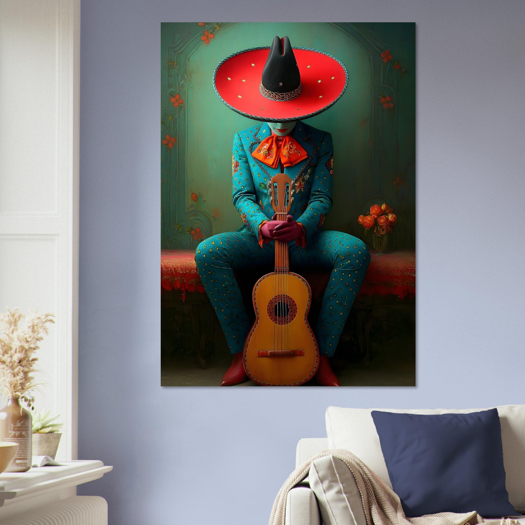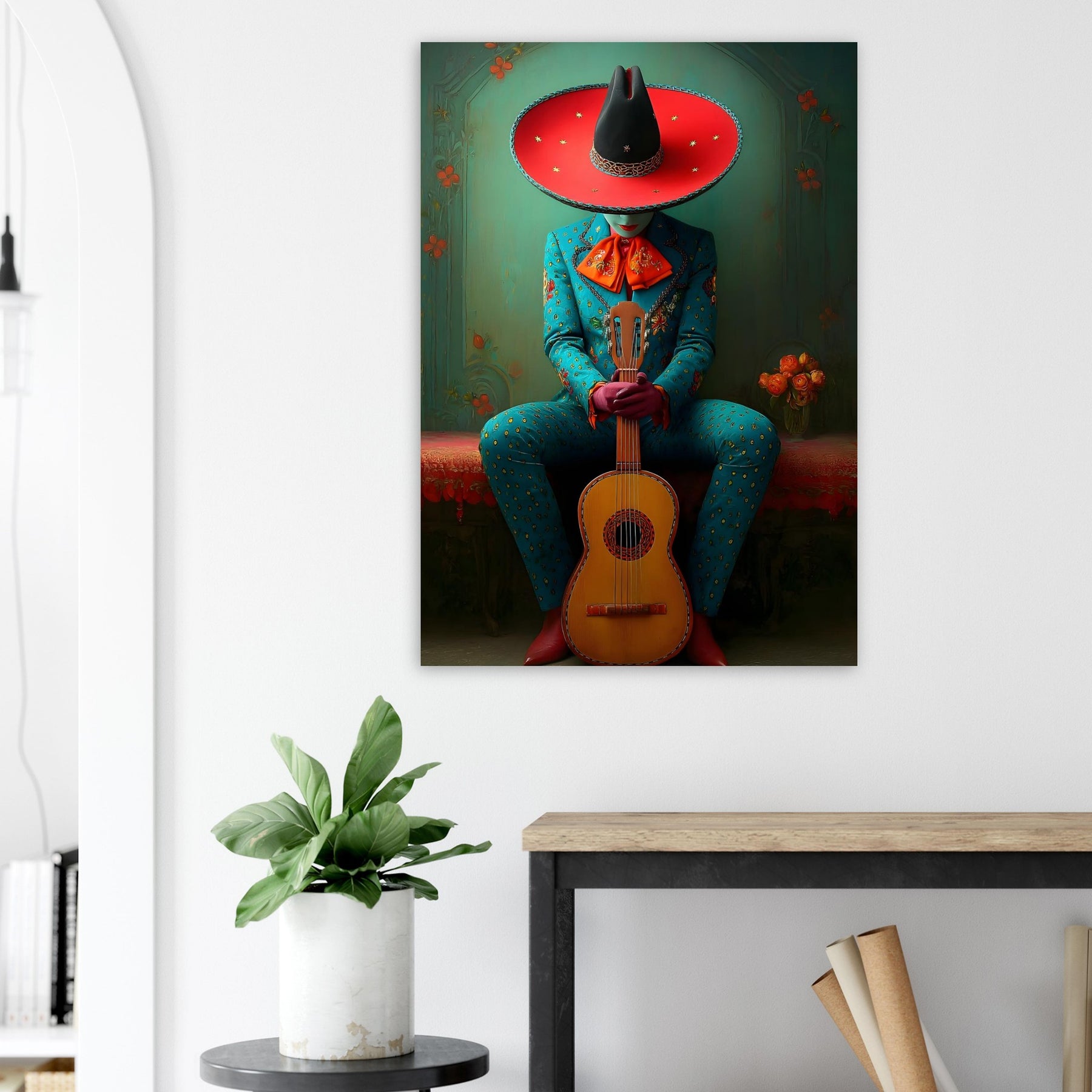 Bring the joy and spirit of Mexico into your home with the Colorful Mariachi Musician Aluminum Wall Art. This vibrant artwork features a mariachi musician in a striking traditional outfit, seated with a guitar, symbolizing the heart and soul of Mexican music and cultural celebration. With its rich details and bold colors, this piece perfectly captures the energy, rhythm, and heritage of mariachi traditions.