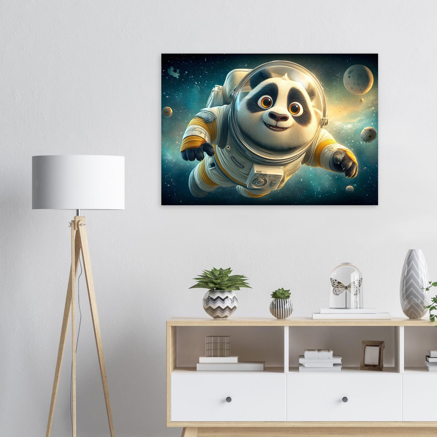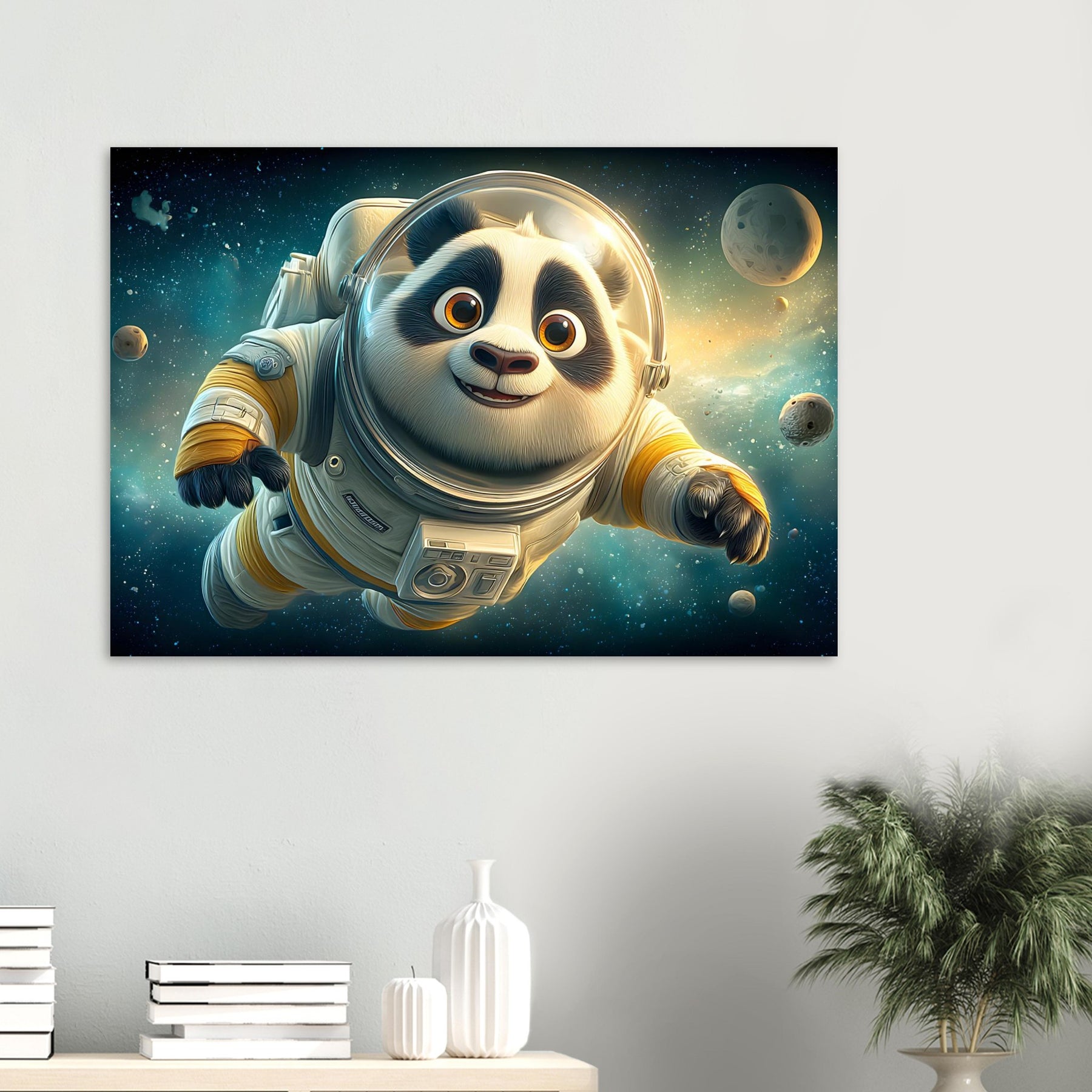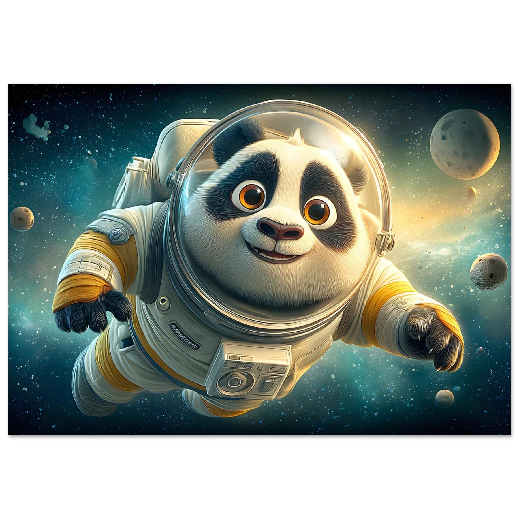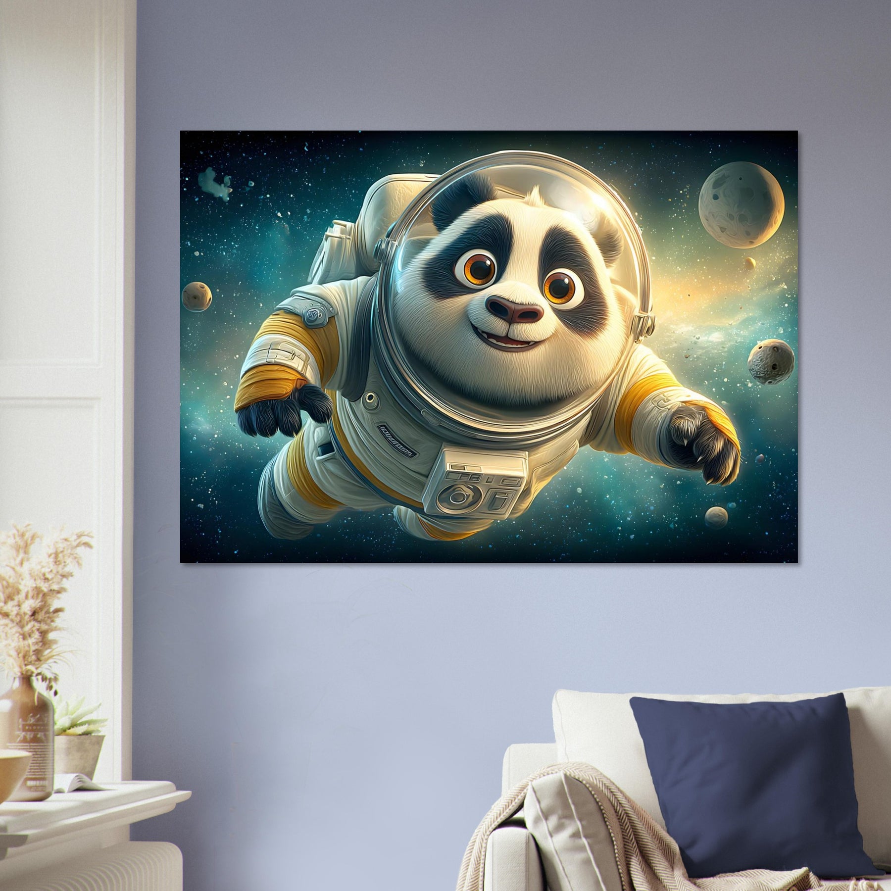 Cosmic Adventure – Whimsical Astronaut Panda Aluminum Wall Art