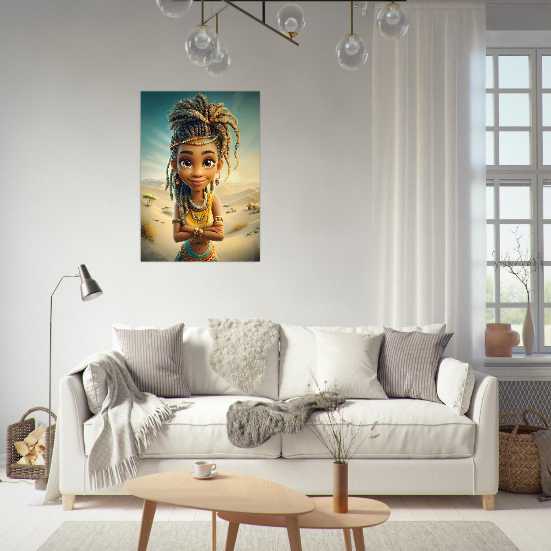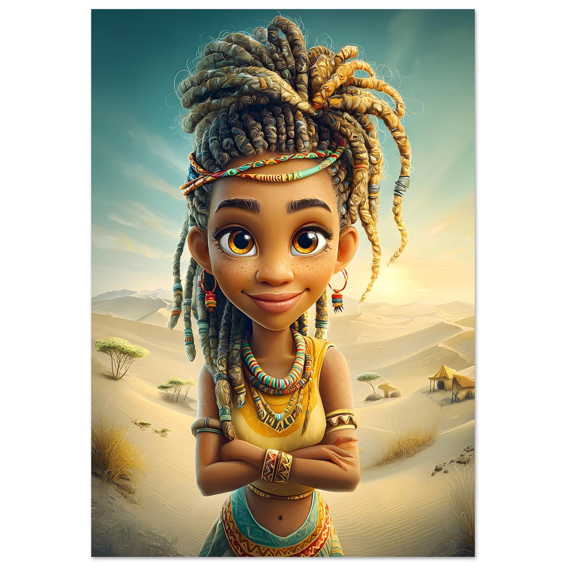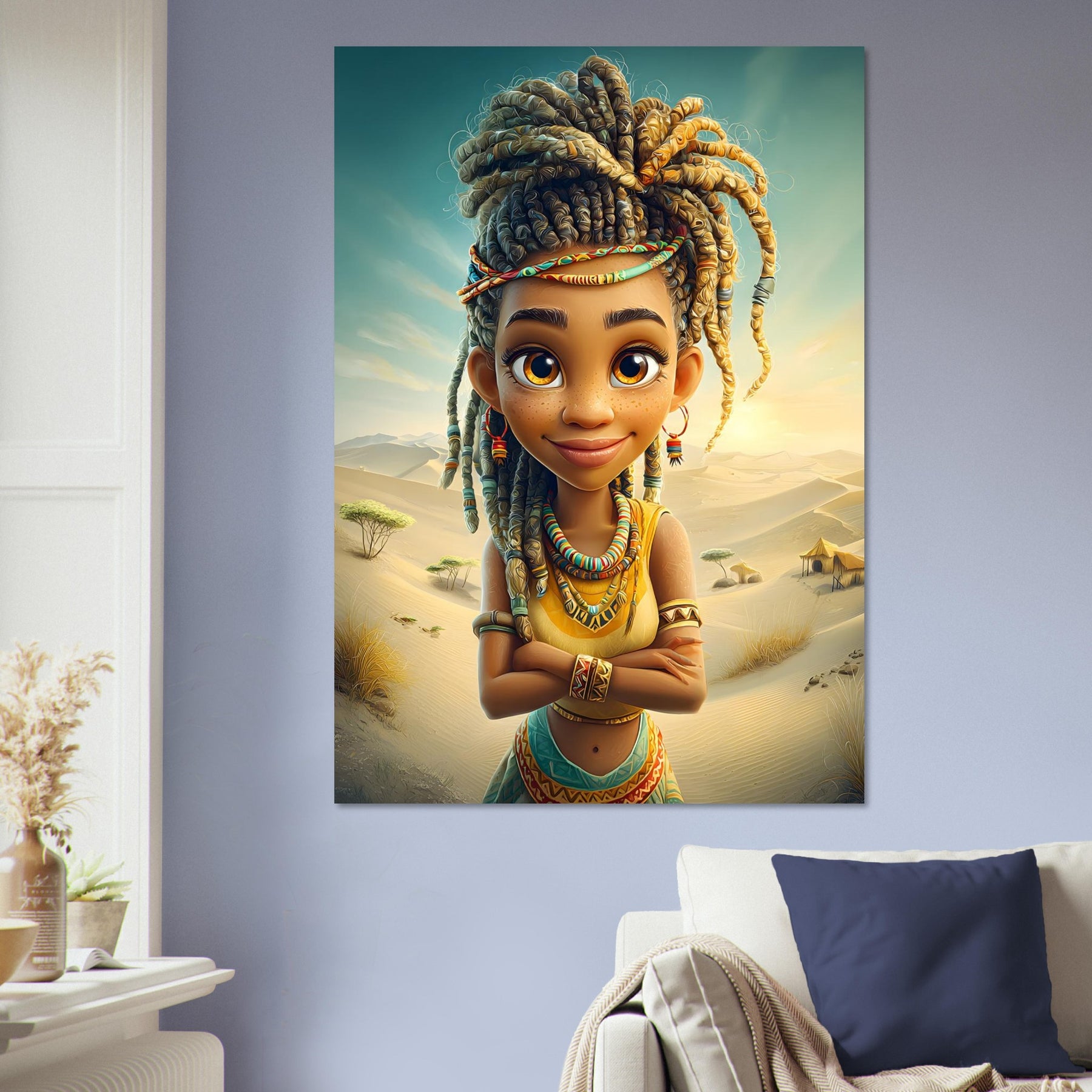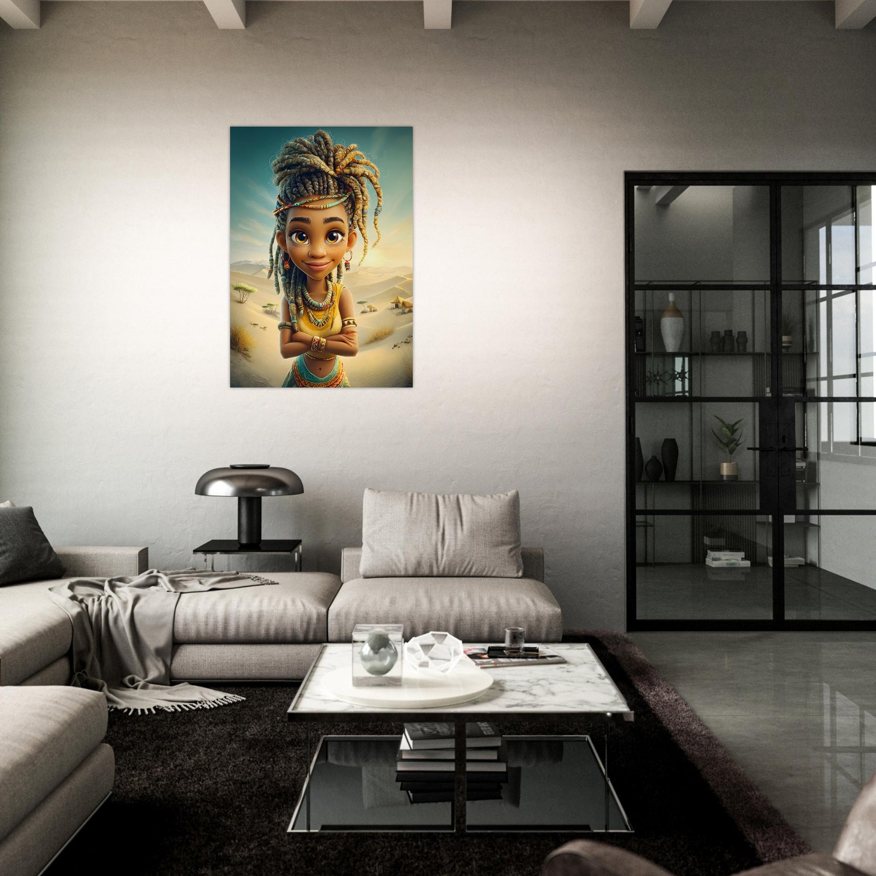 Infuse your child’s room with color, culture, and confidence through Desert Grace Aluminum Wall Art. This captivating illustration features a whimsical young woman standing proudly in a serene desert landscape, her intricate braided hairstyle and vibrant attire reflecting beauty, heritage, and strength. The warm tones and artistic detailing create a harmonious blend of elegance and inspiration, perfect for nurturing imagination and cultural appreciation.
