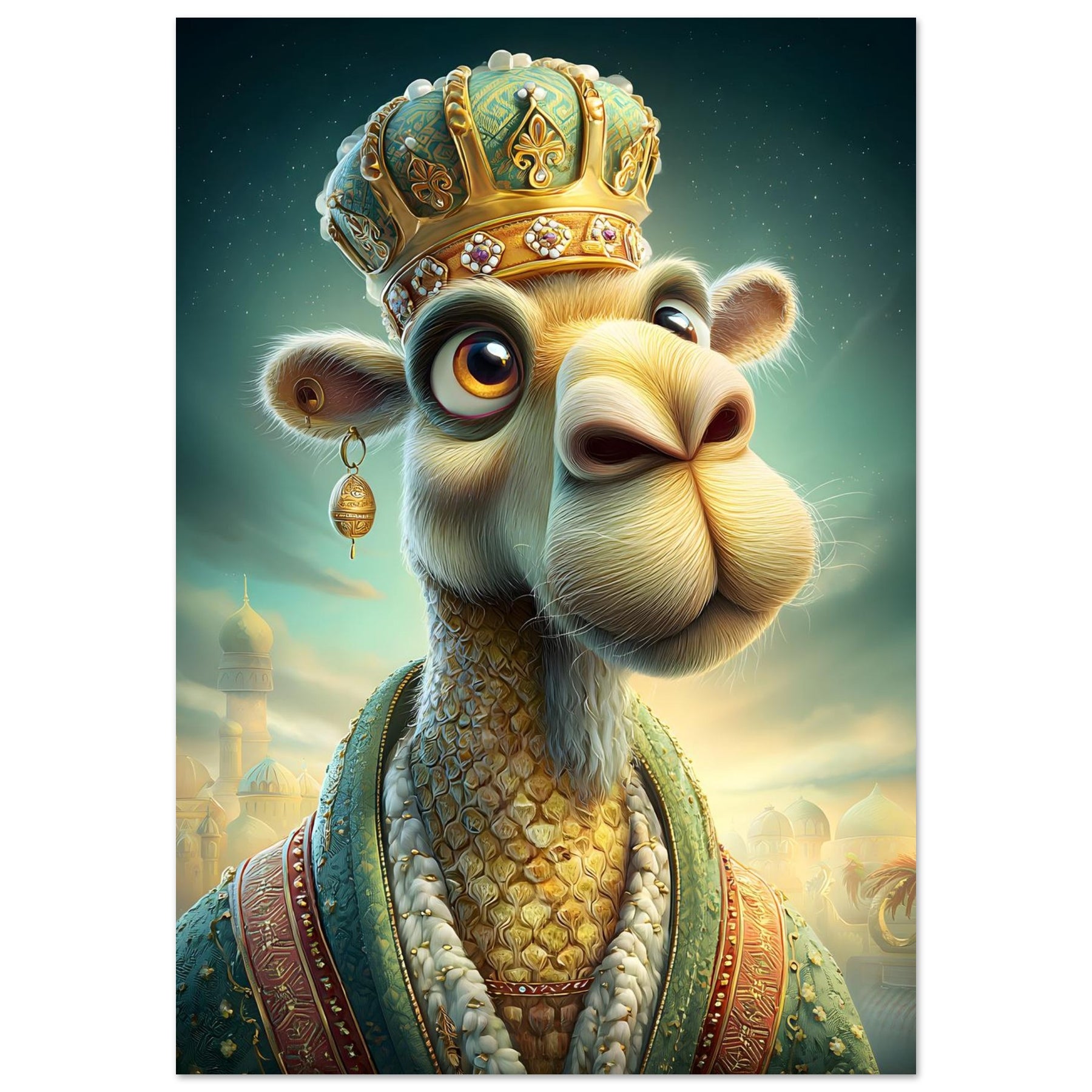 🐪 Whimsical Royalty – A majestic camel dressed in regal attire, full of personality and charm.