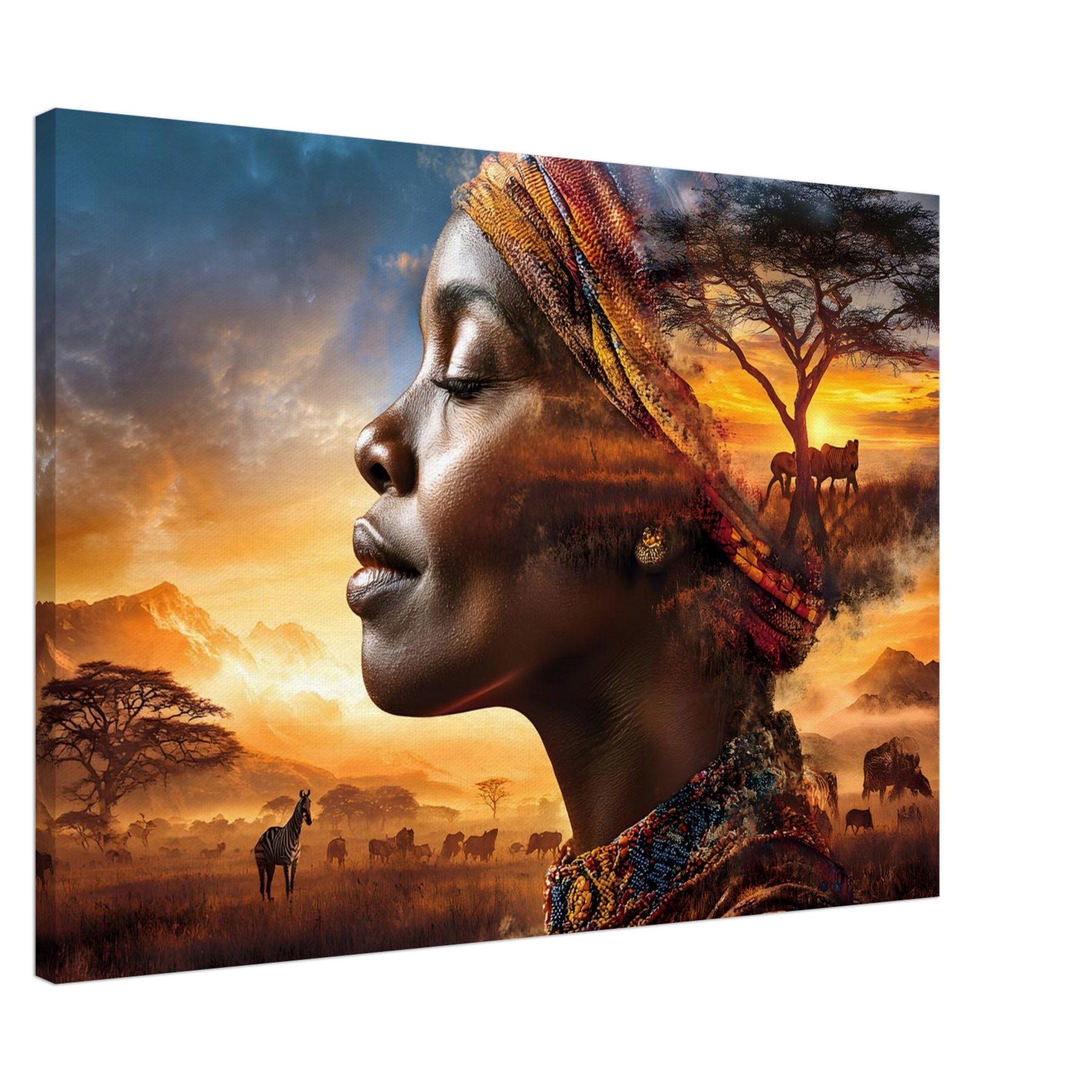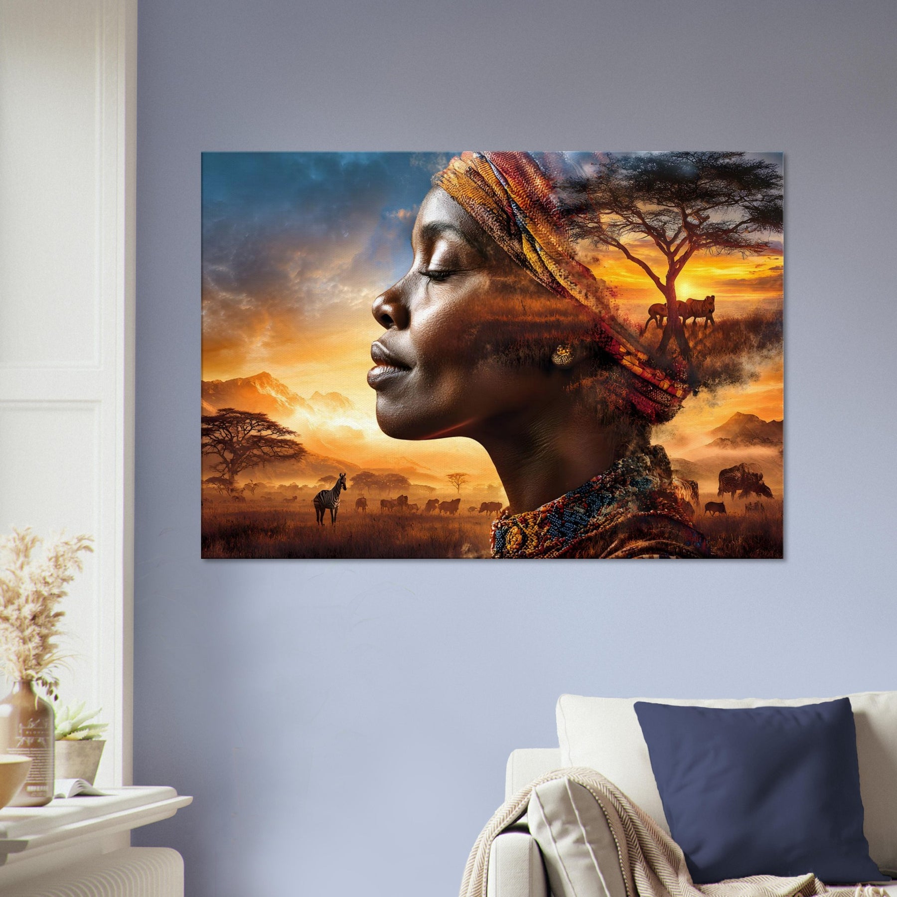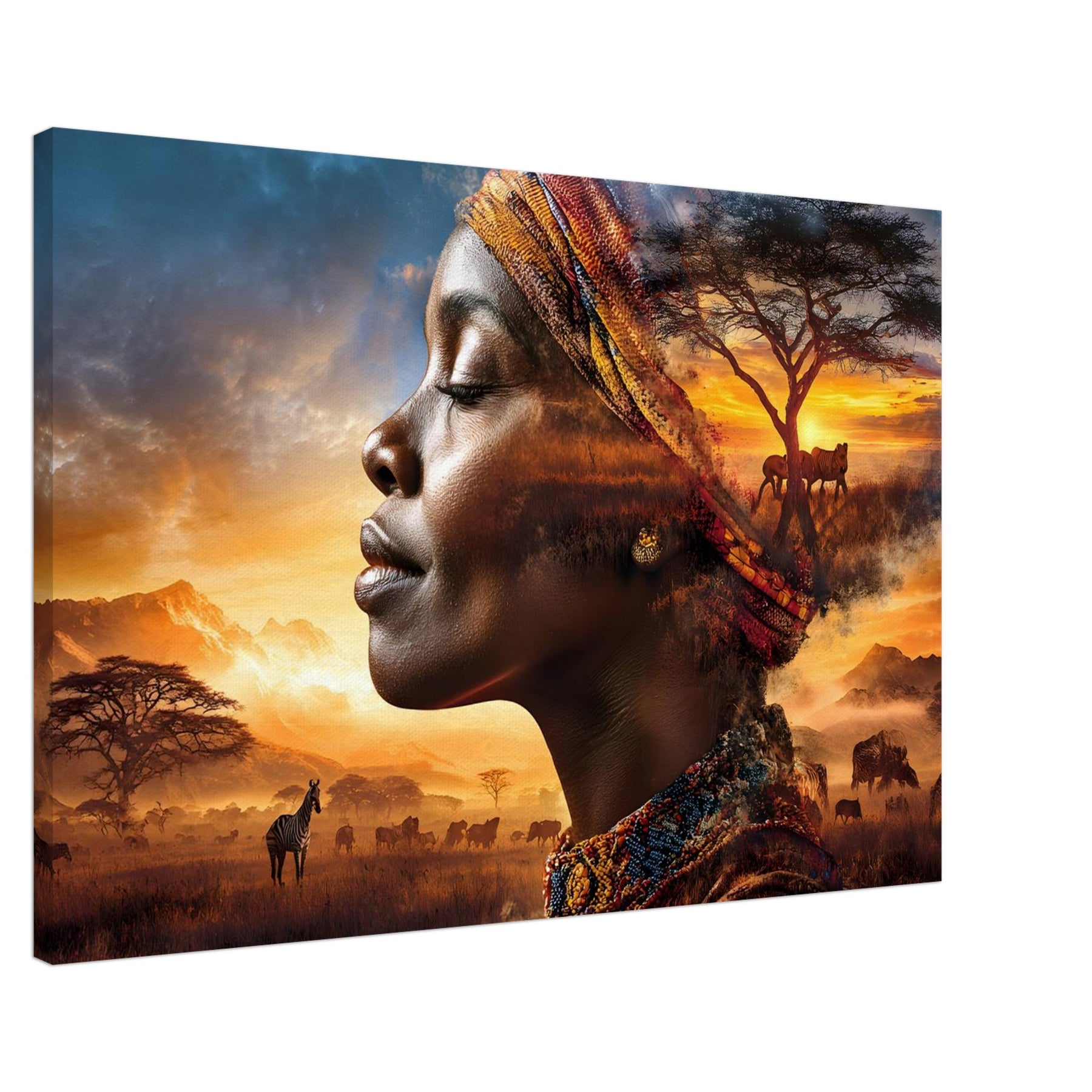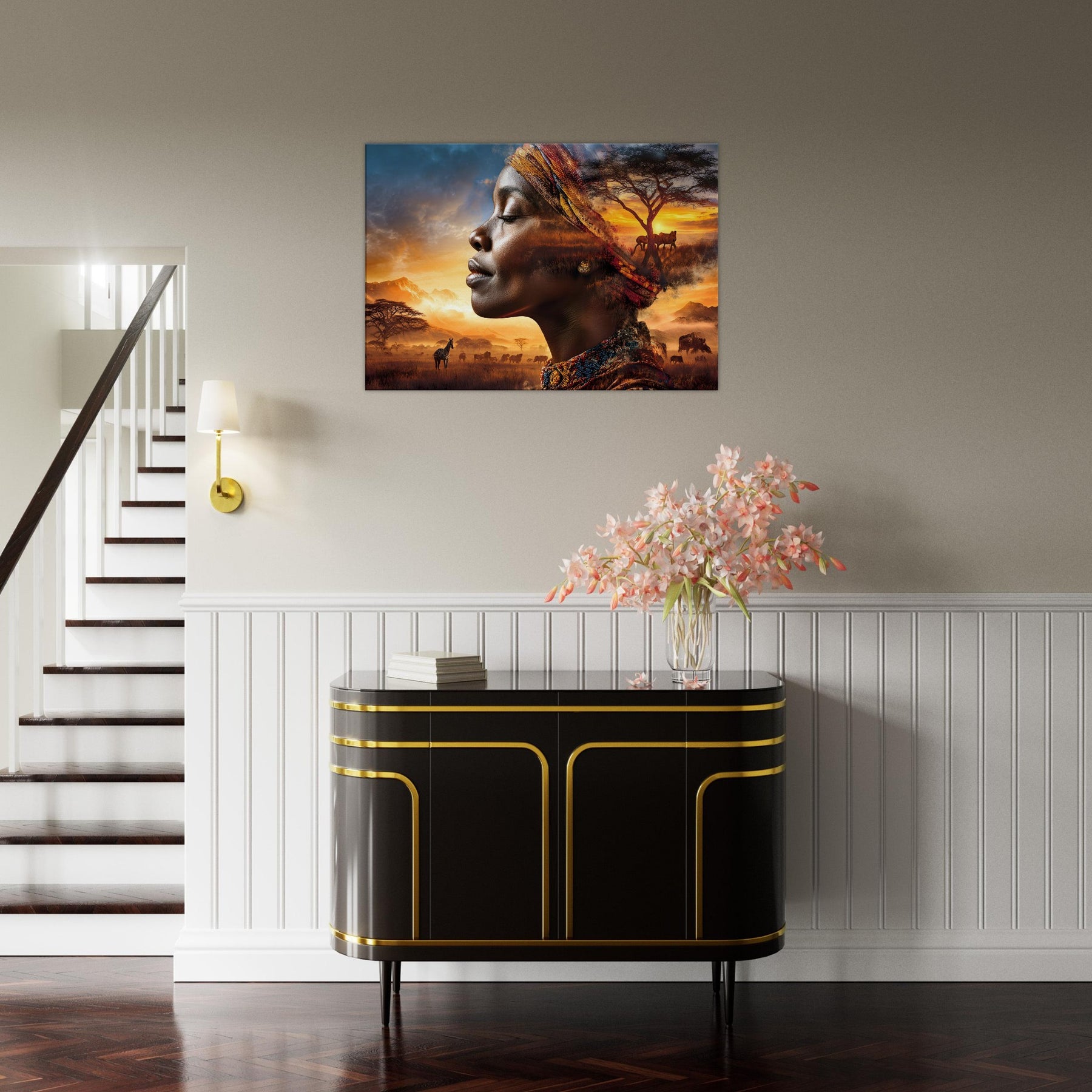 Heritage in Harmony – Canvas Wall Art of Woman and African Landscape