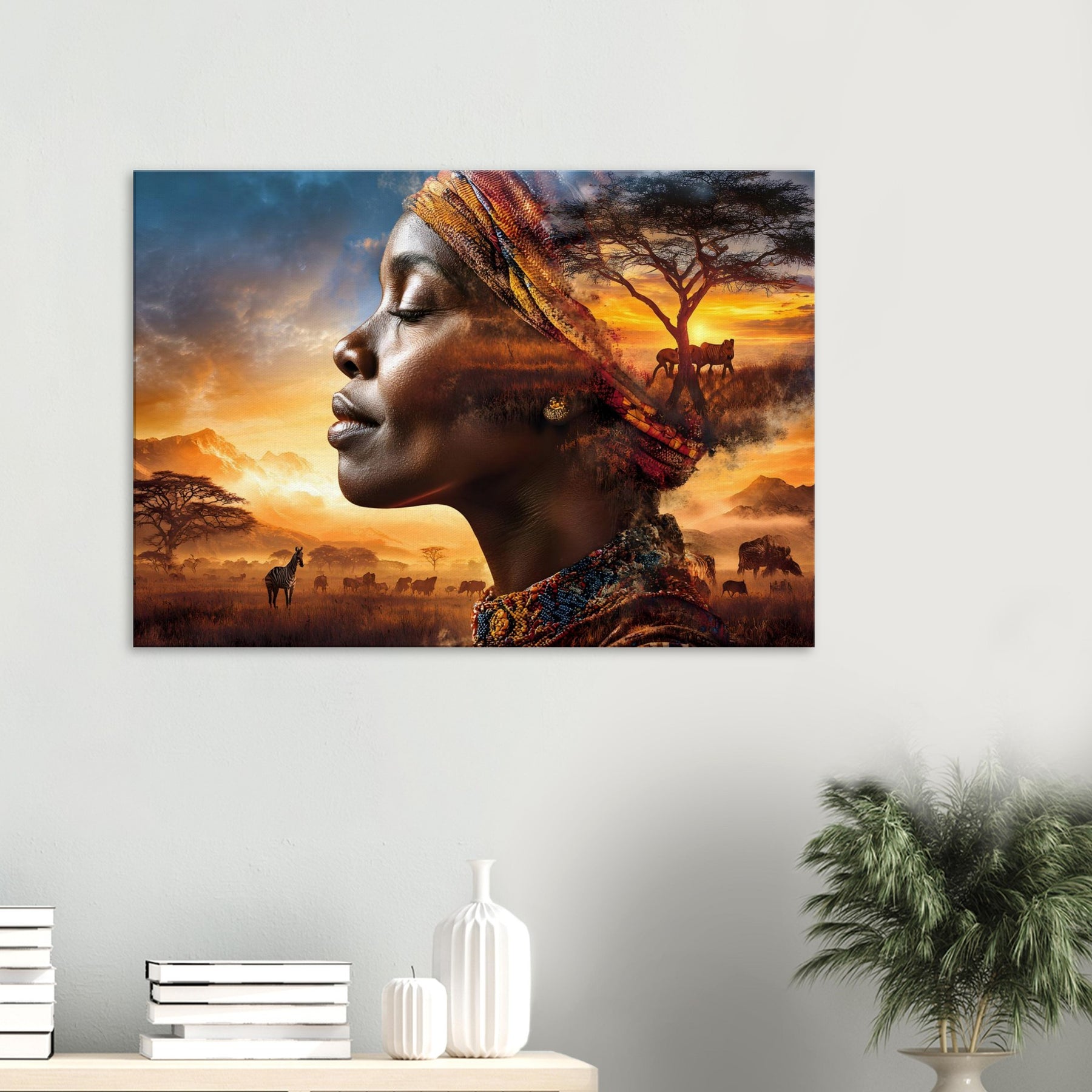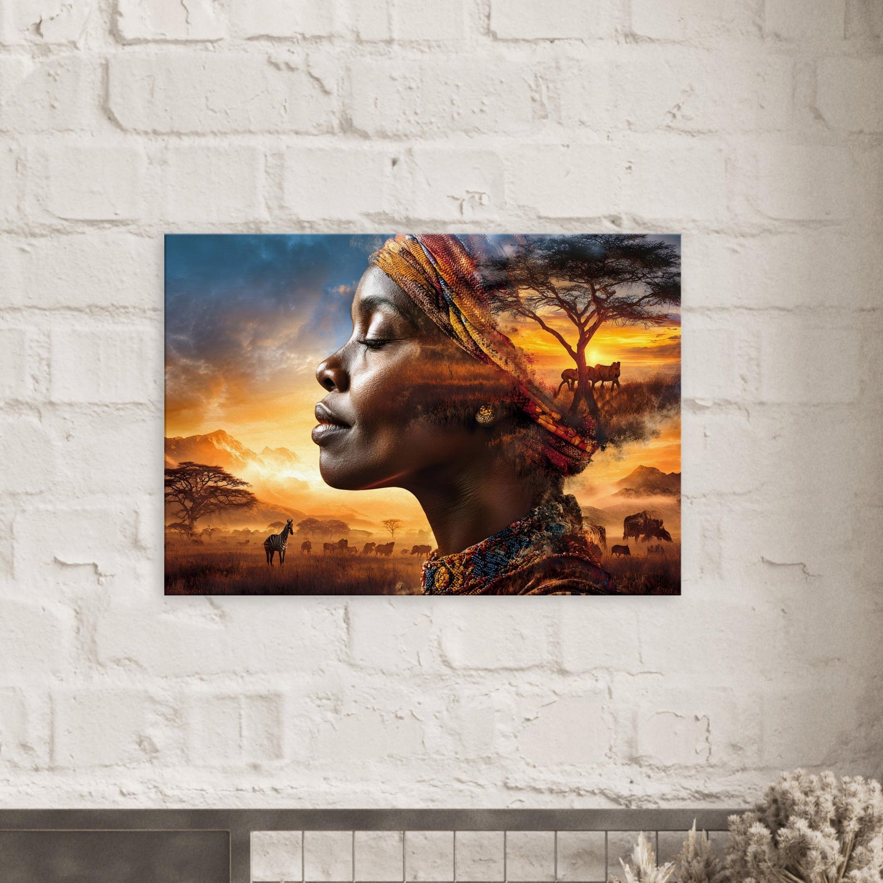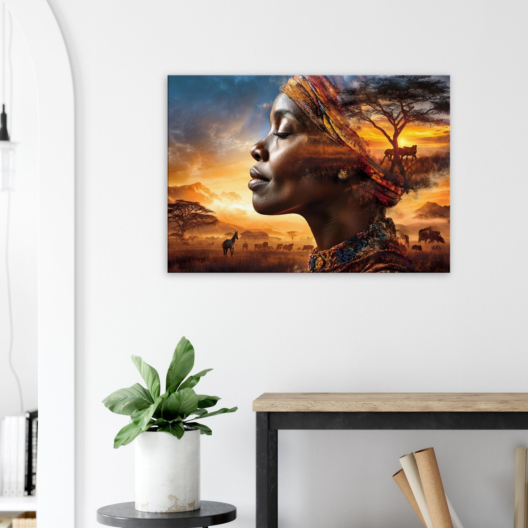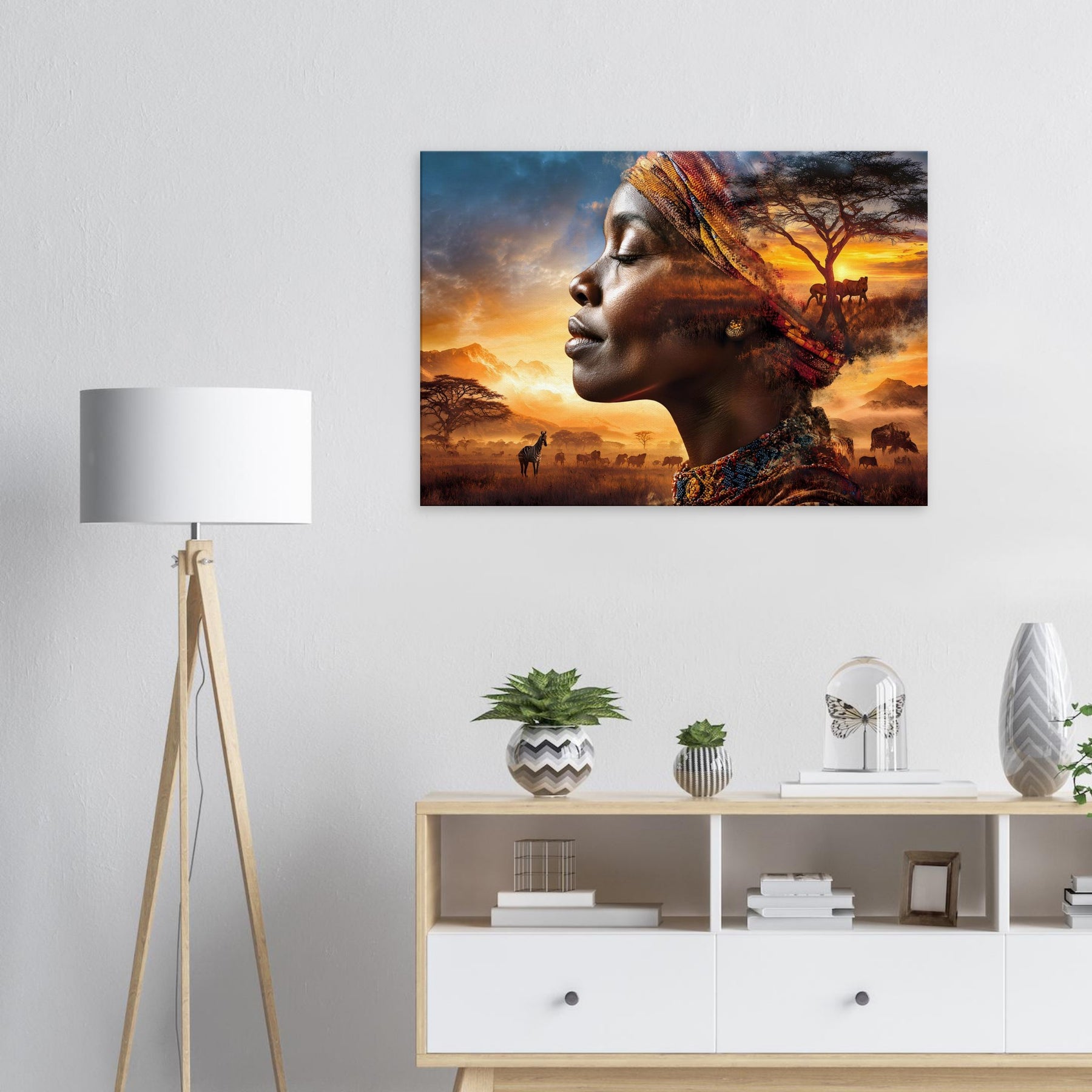 Heritage in Harmony – Canvas Wall Art of Woman and African Landscape