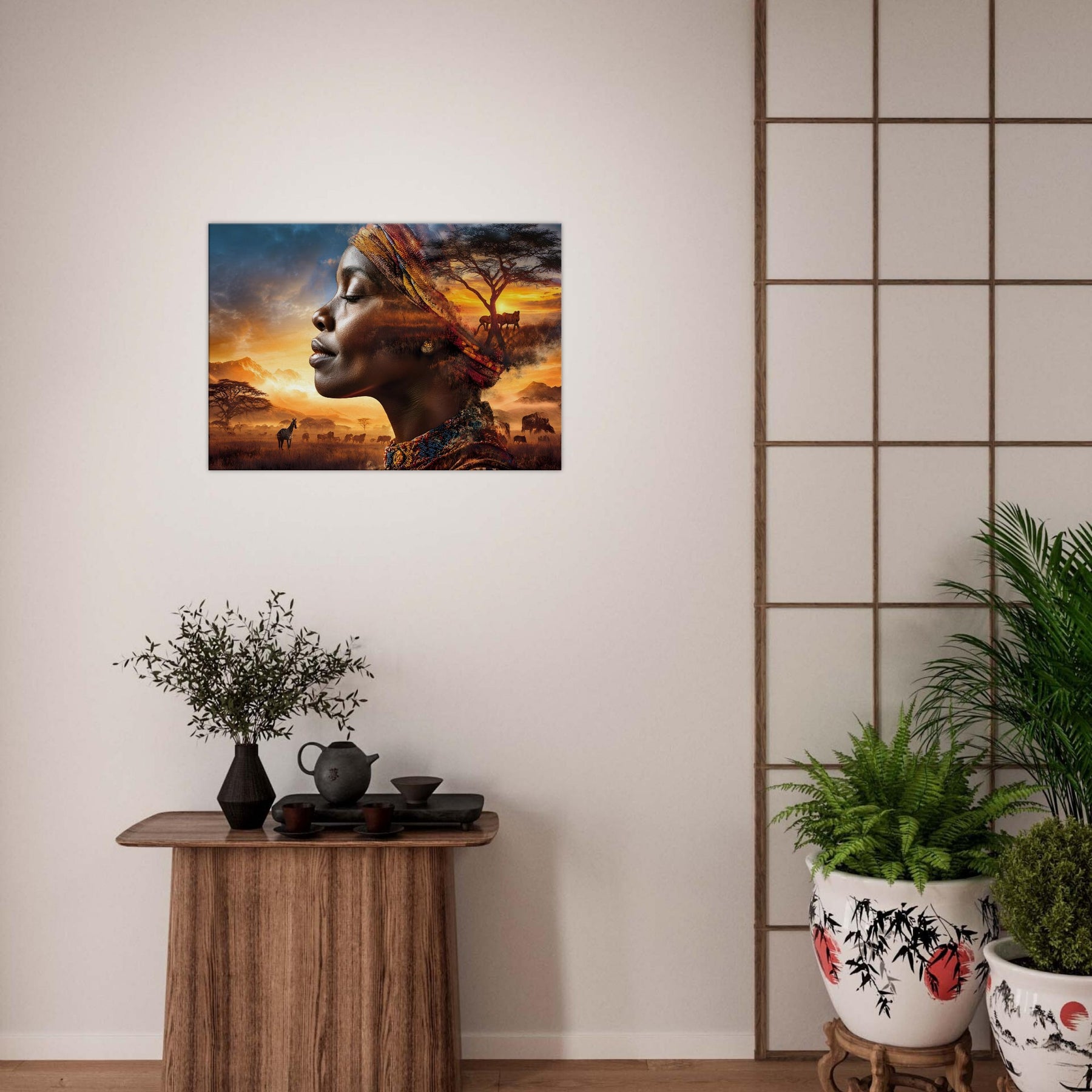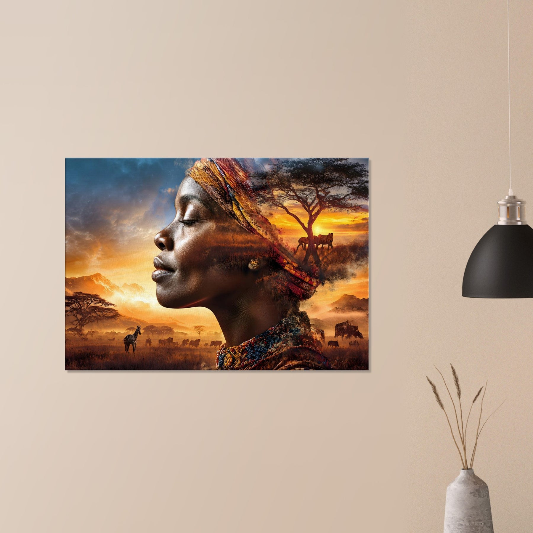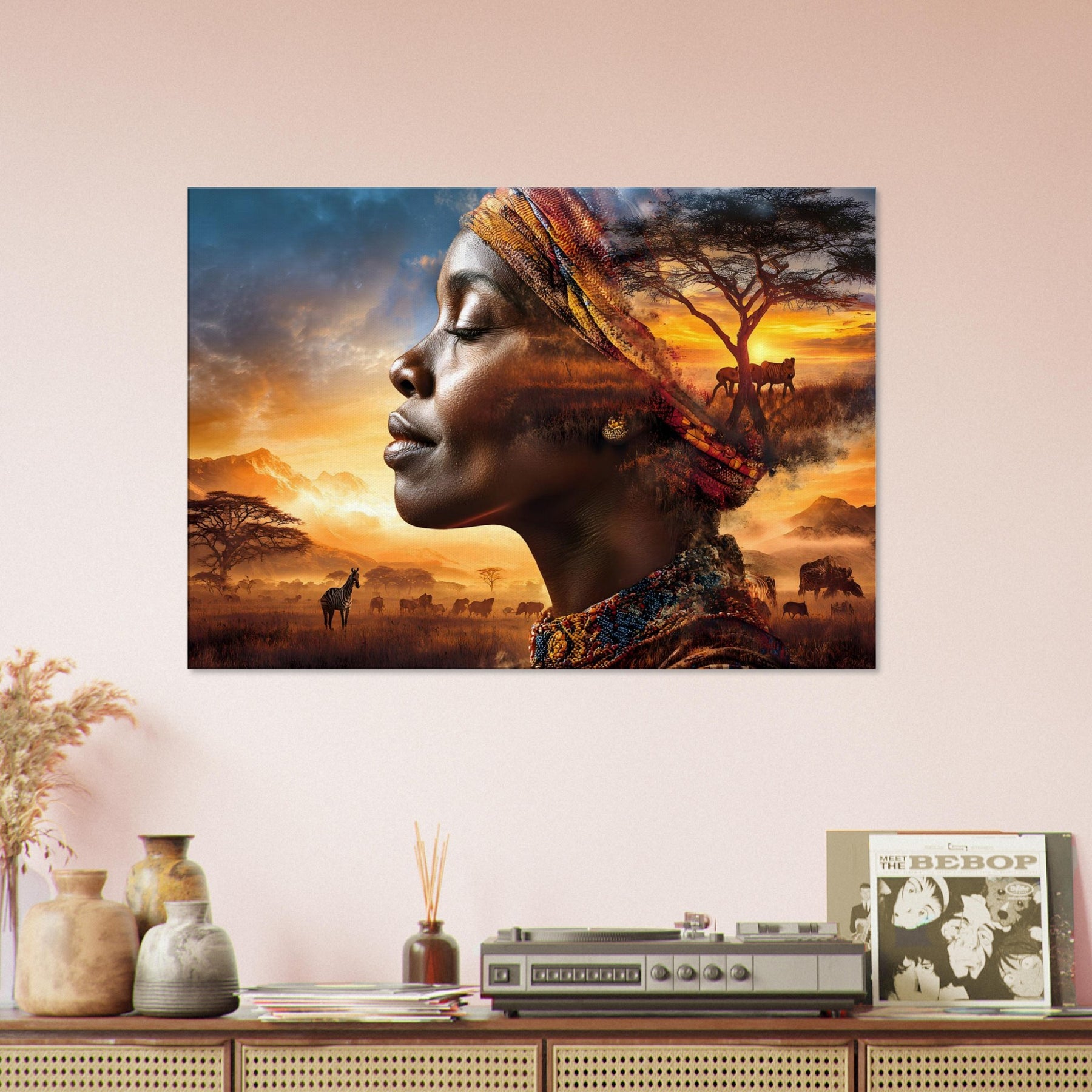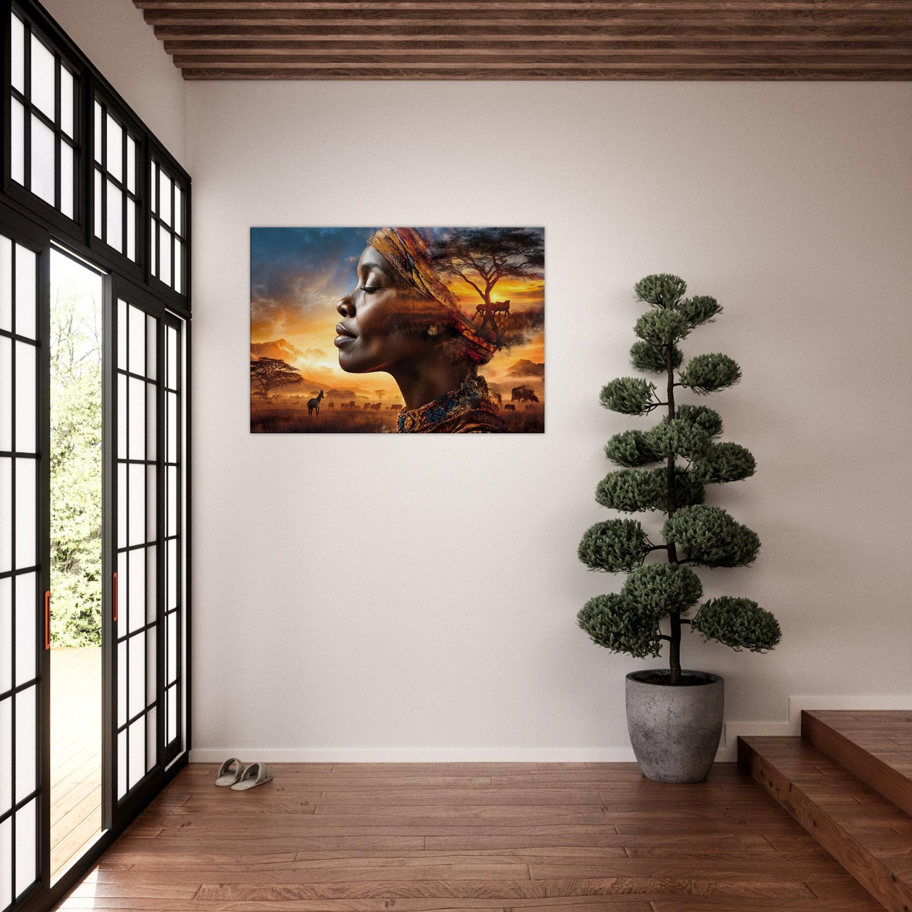 Heritage in Harmony – Canvas Wall Art of Woman and African Landscape