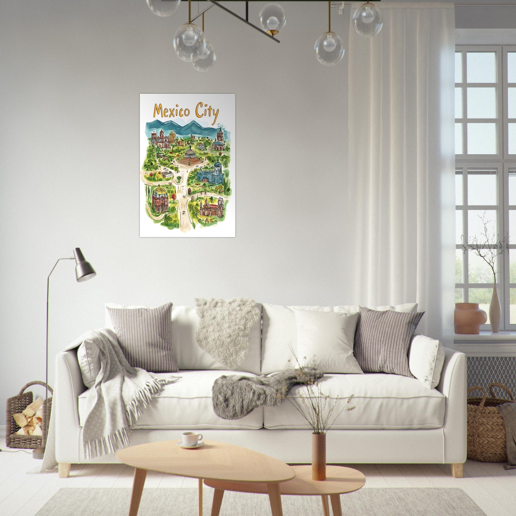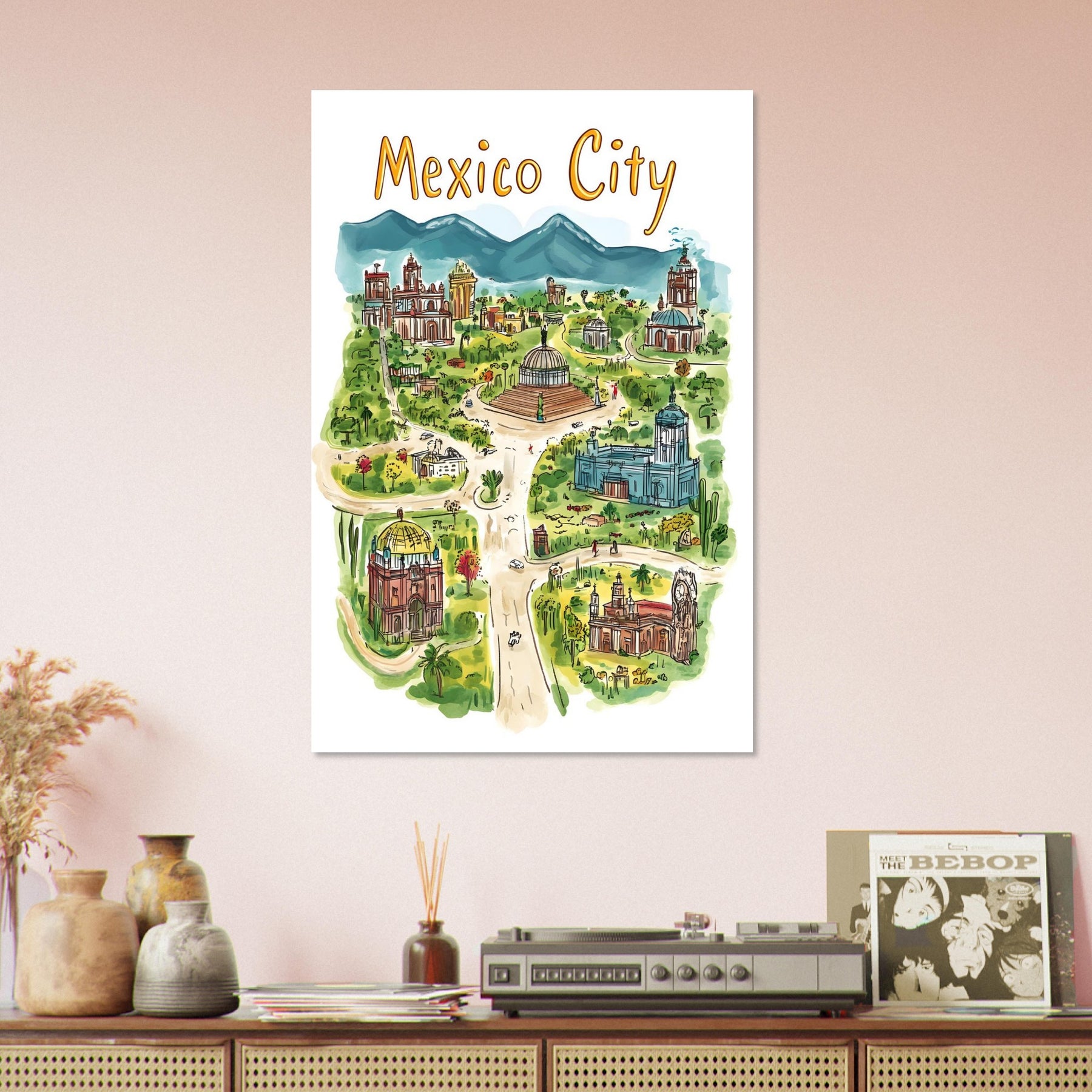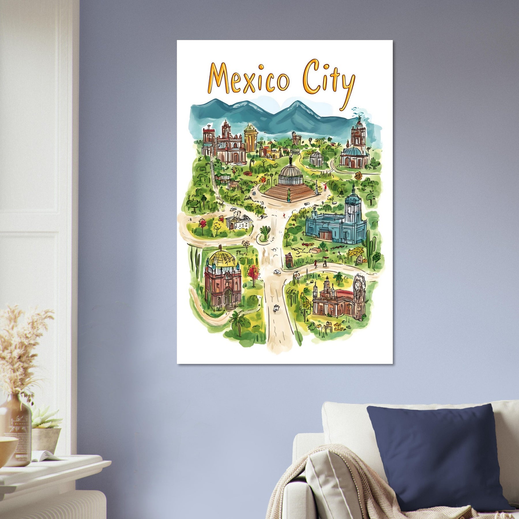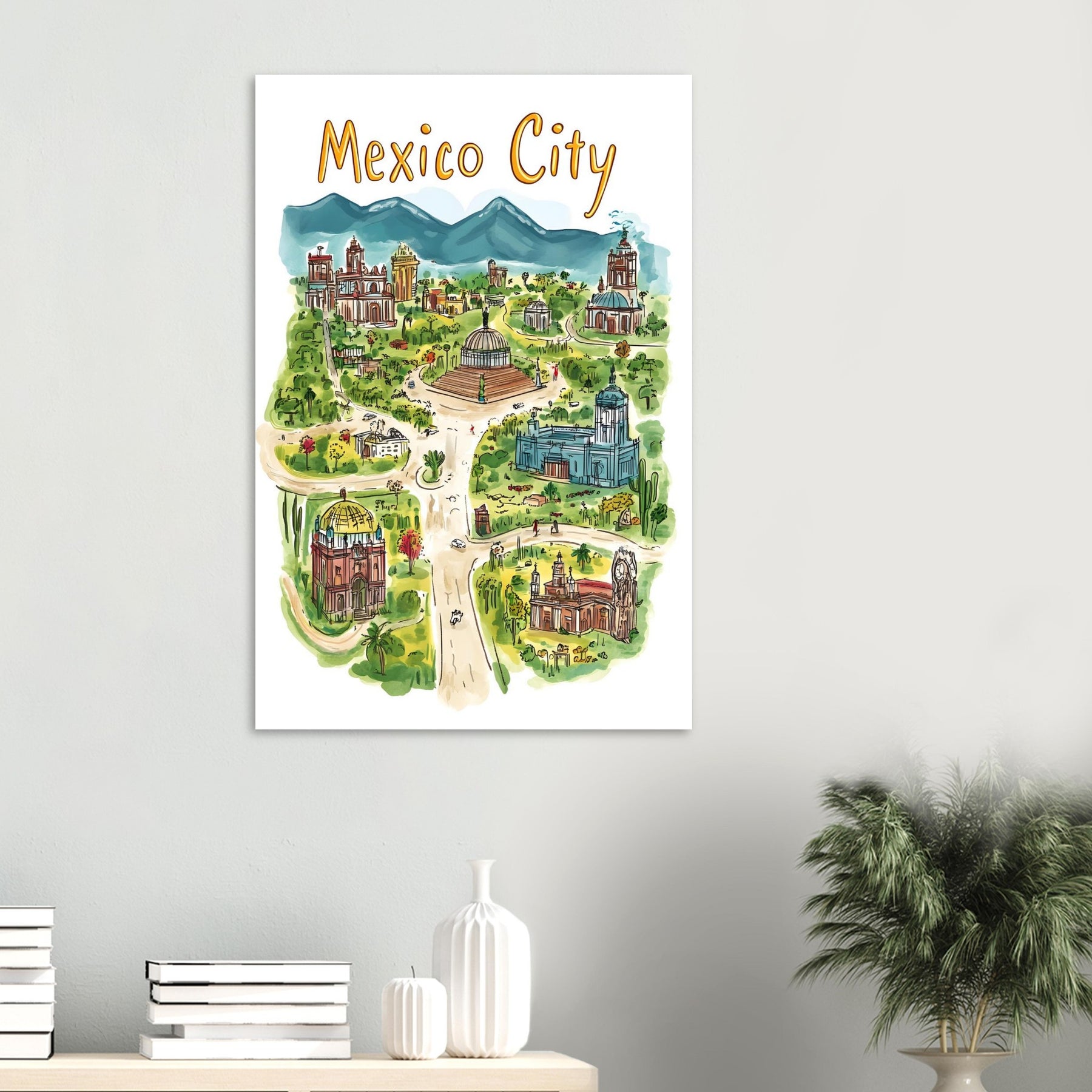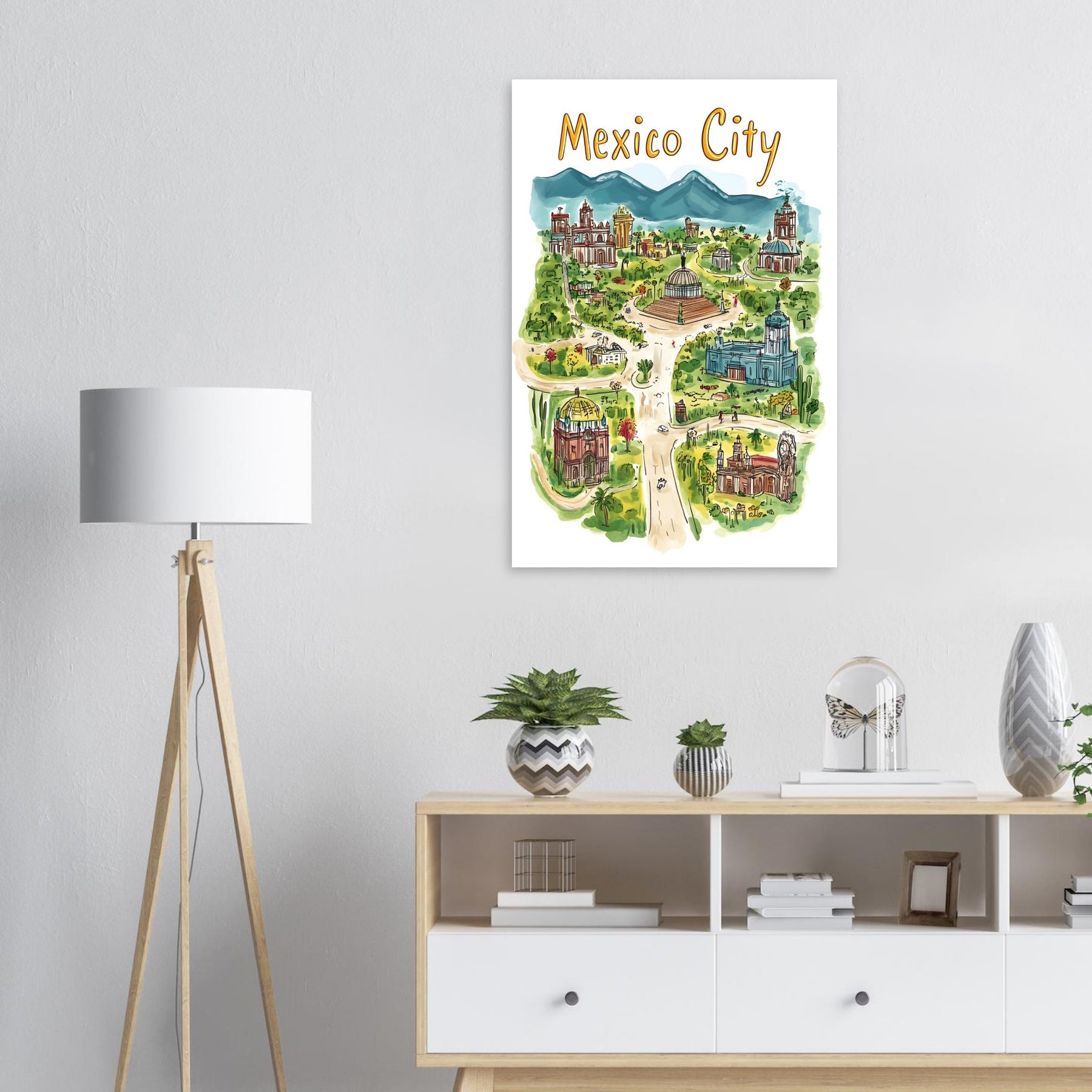 Bring the color, culture, and creative spirit of Mexico City into your home with this striking illustrated map aluminum wall art.