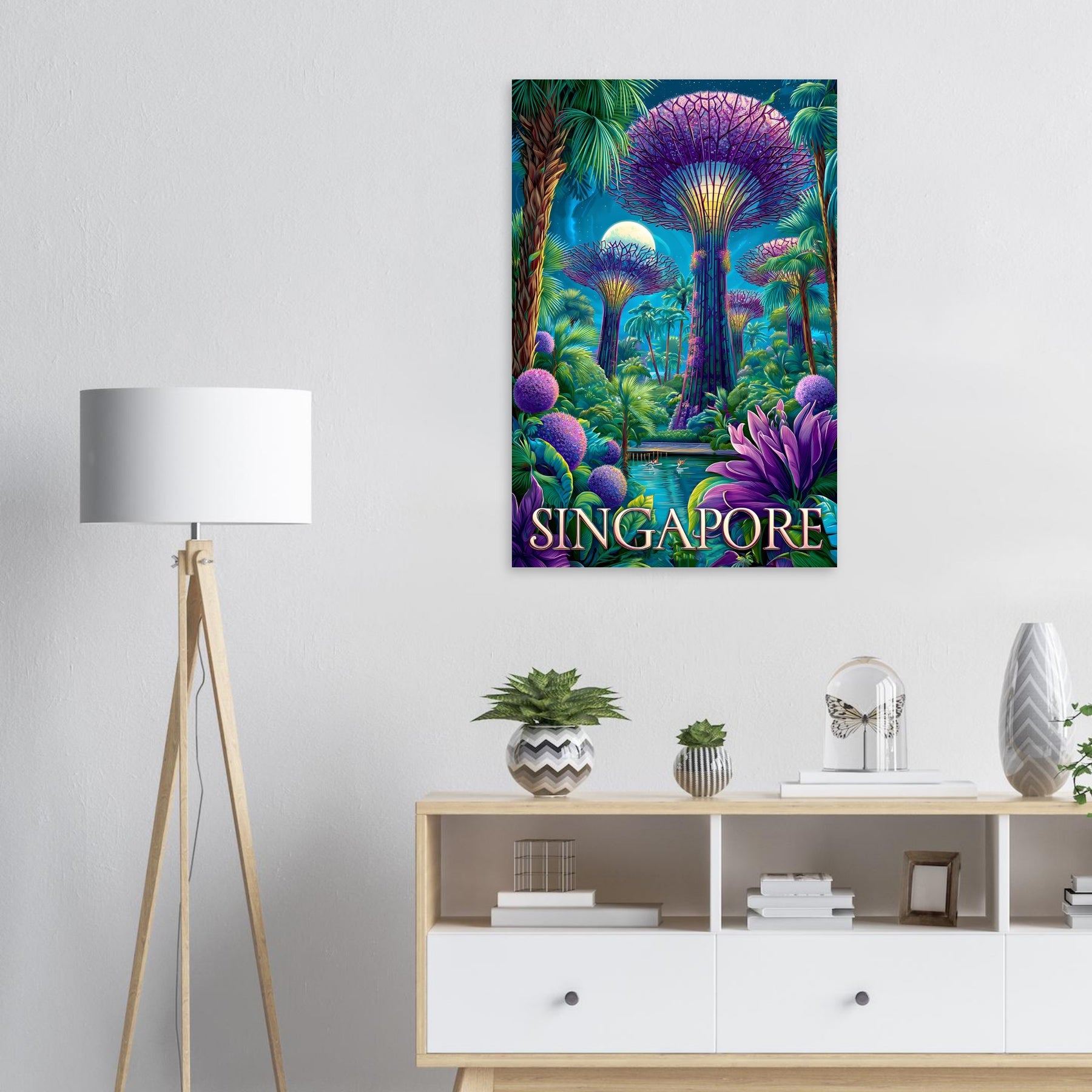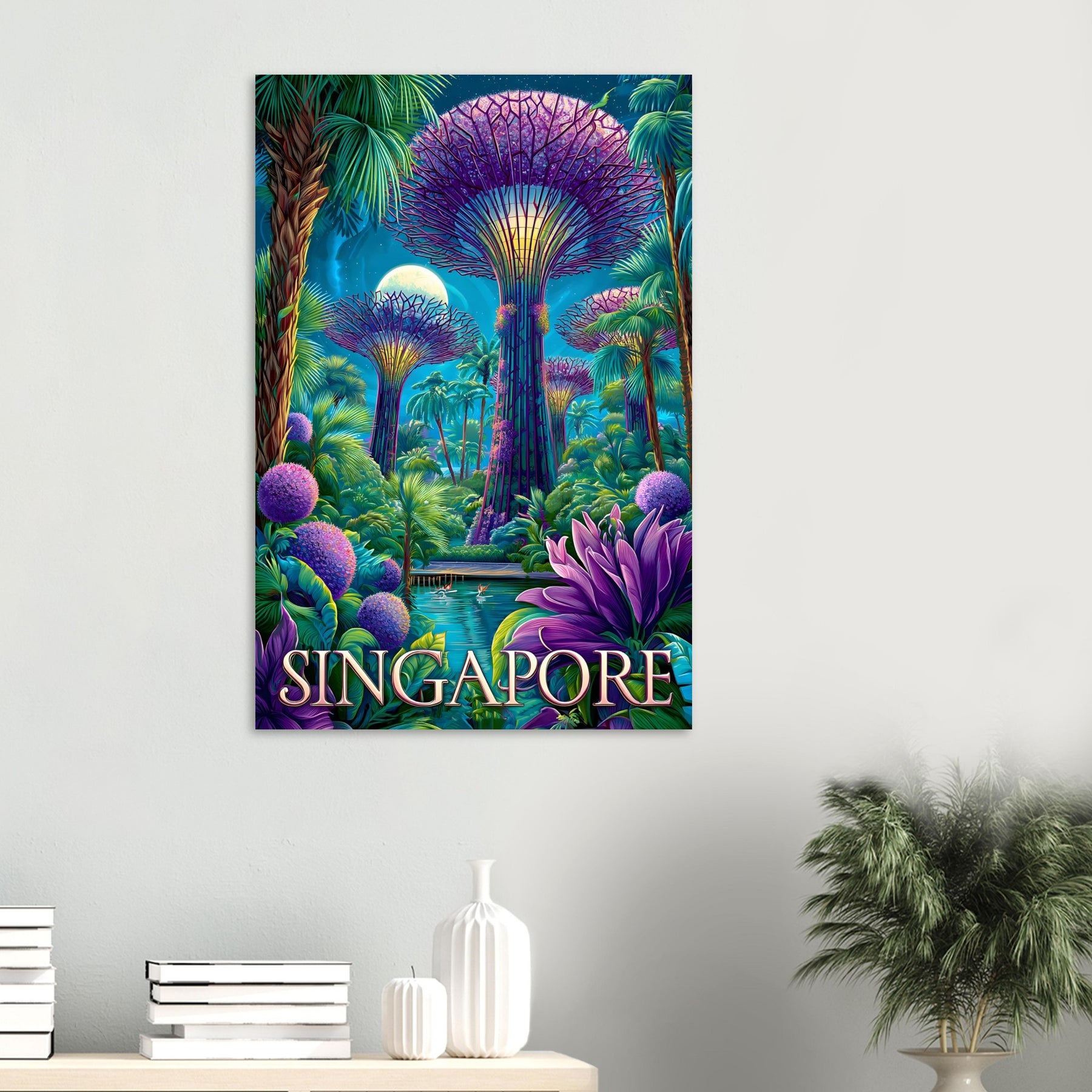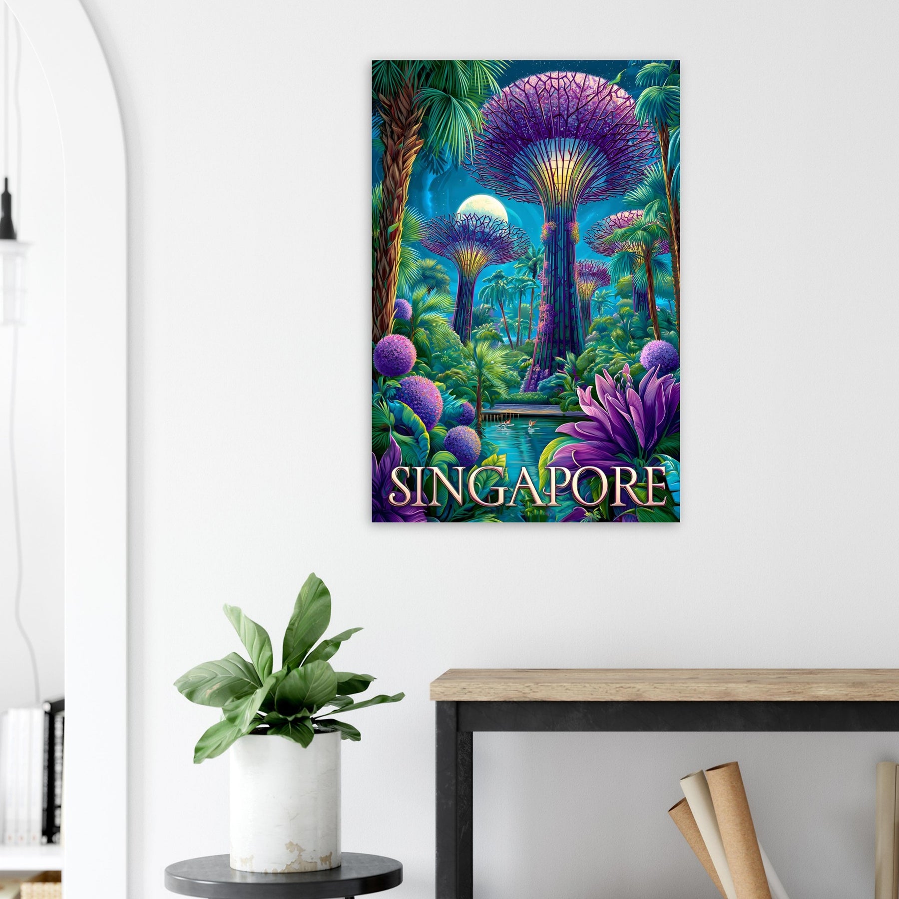 Bring the magic of Singapore’s Gardens by the Bay into your space with this striking aluminum travel artwork.