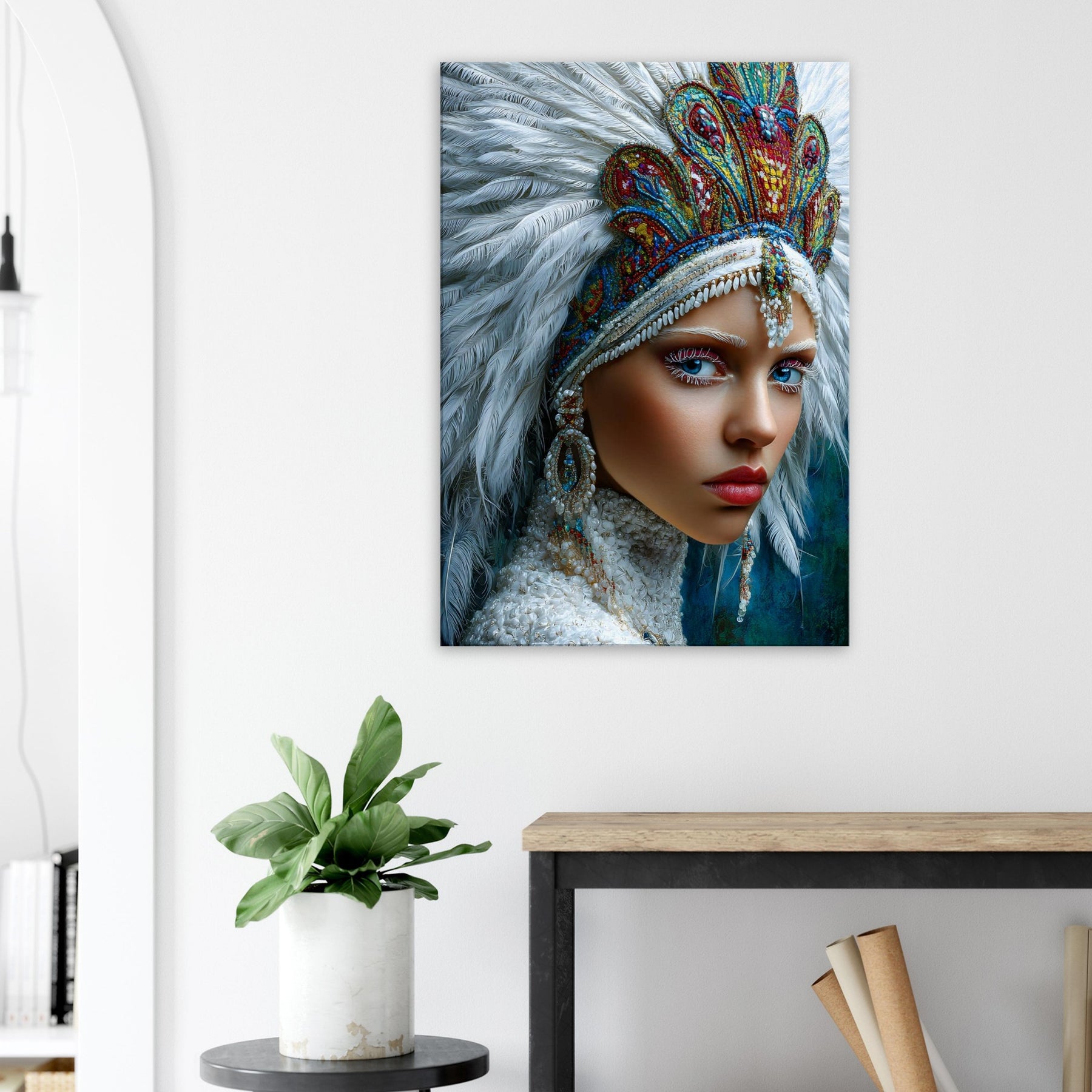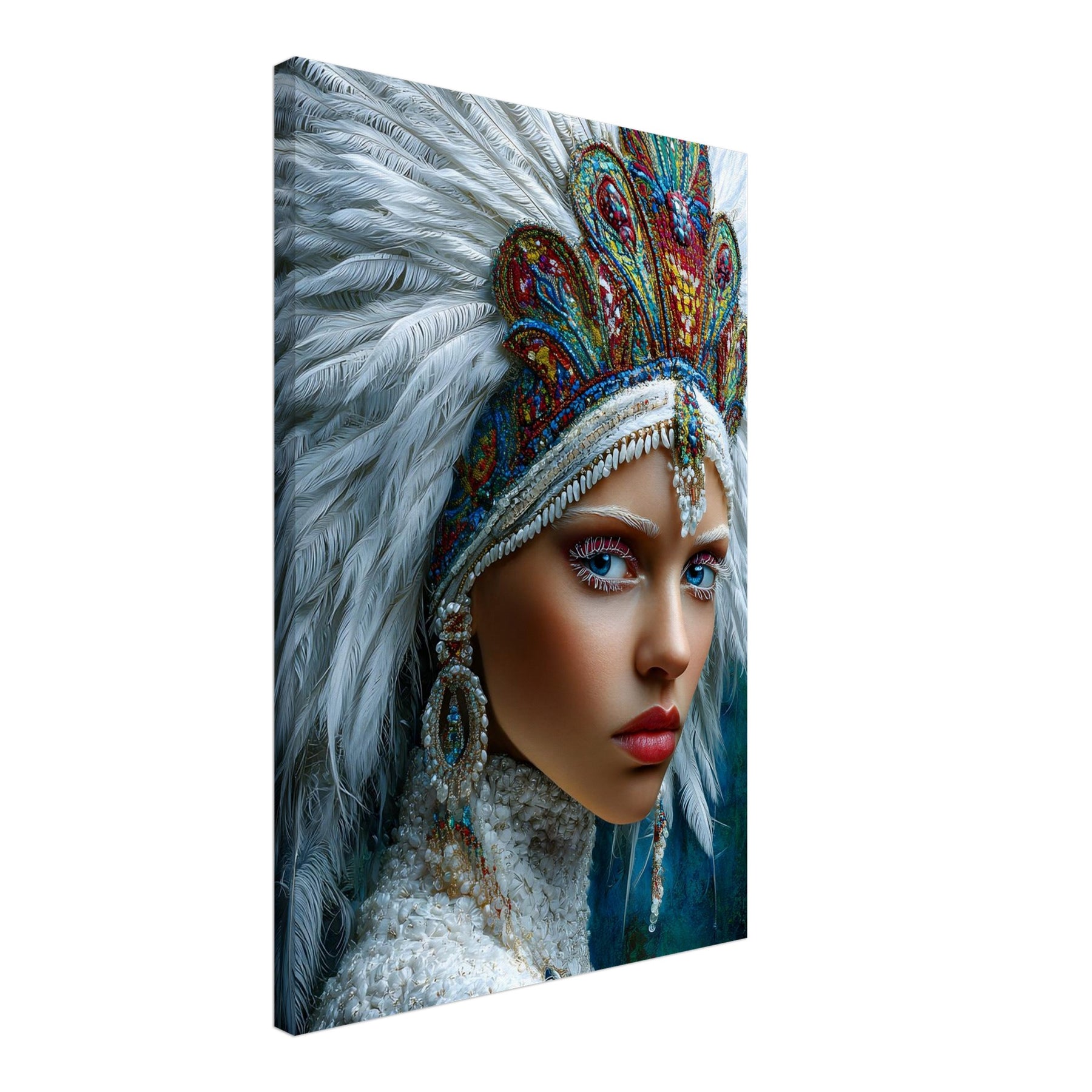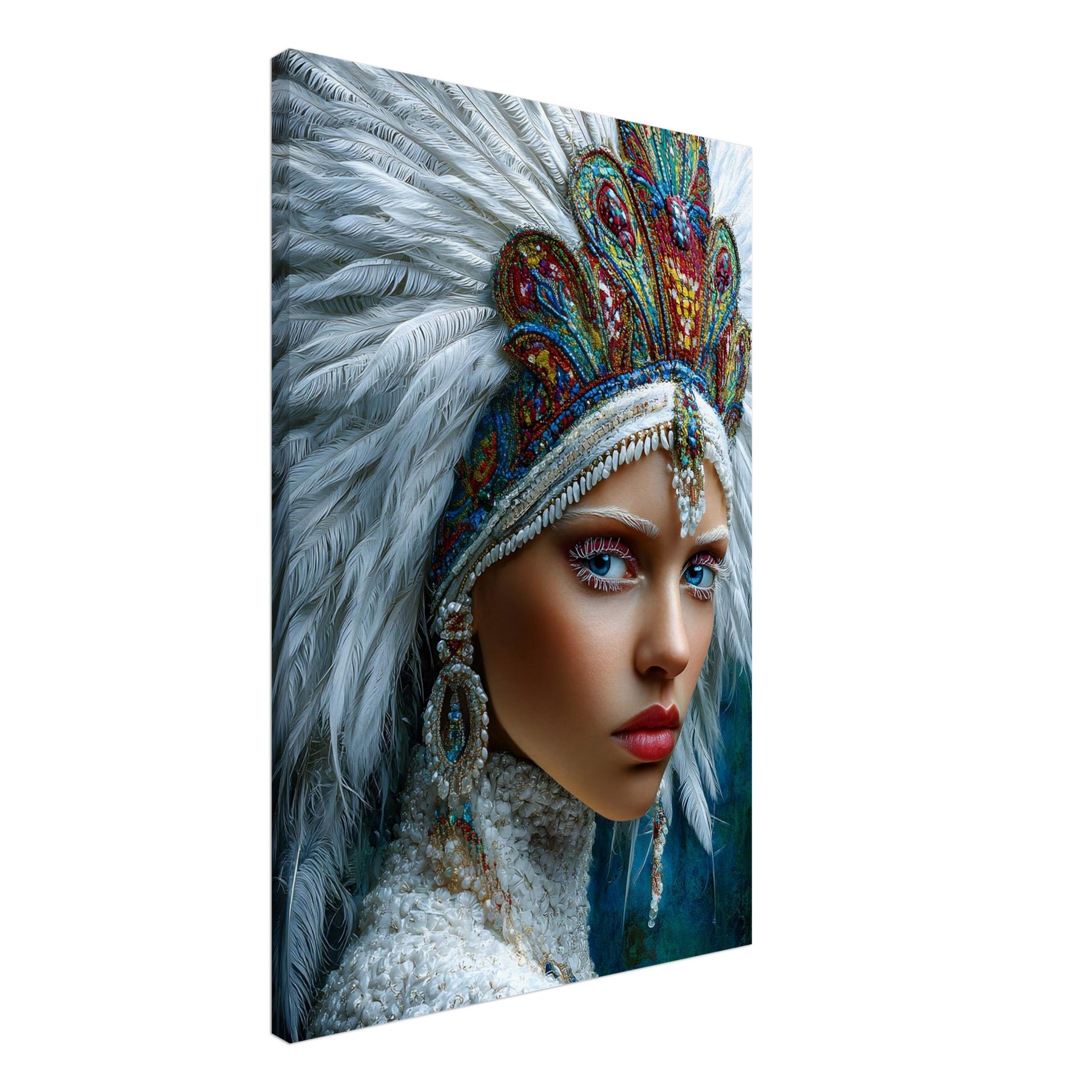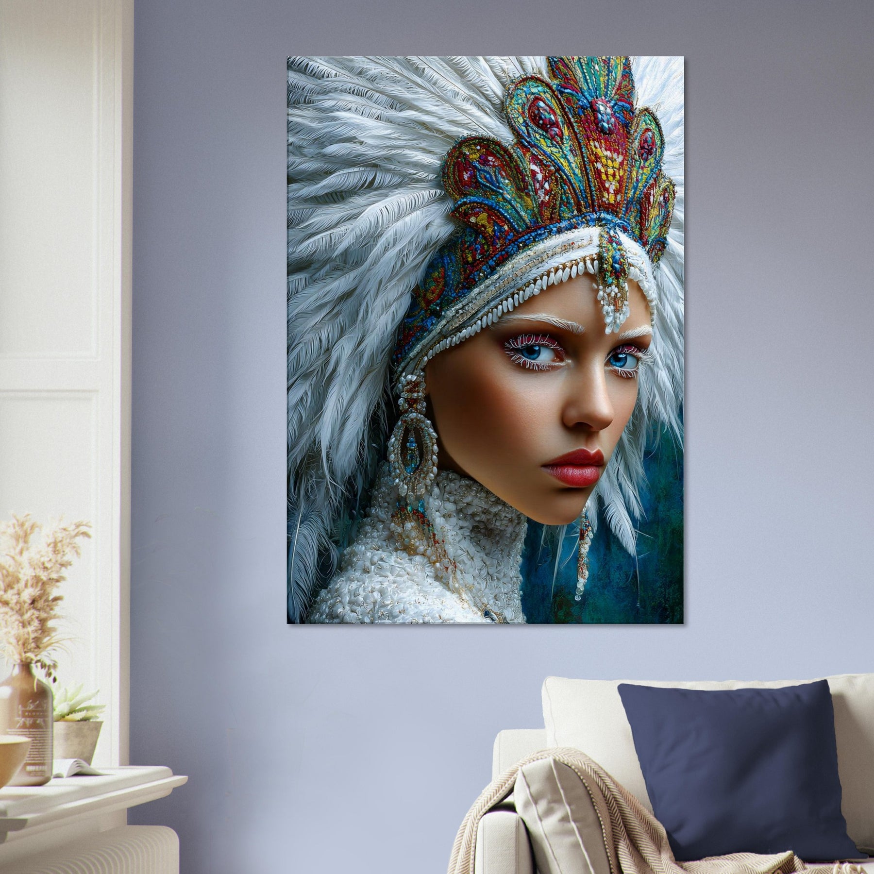 Feathered Majesty – Vibrant Headdress Portrait Canvas Wall Art