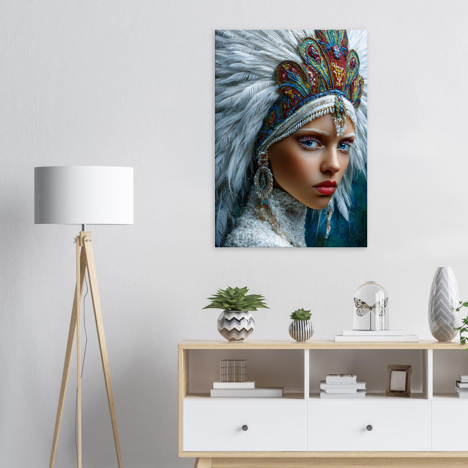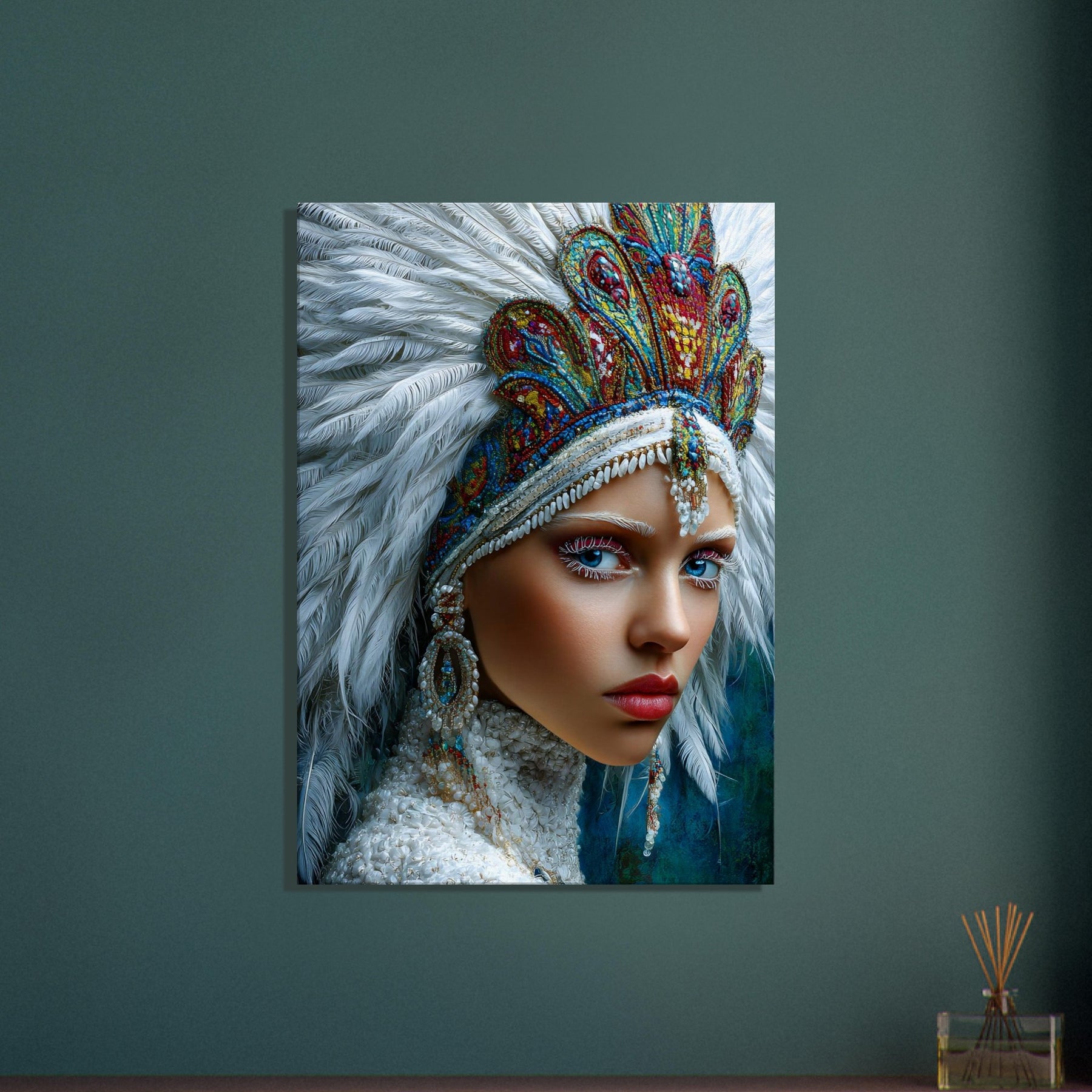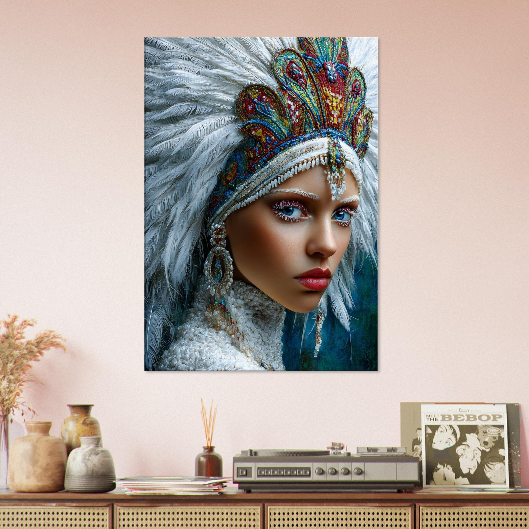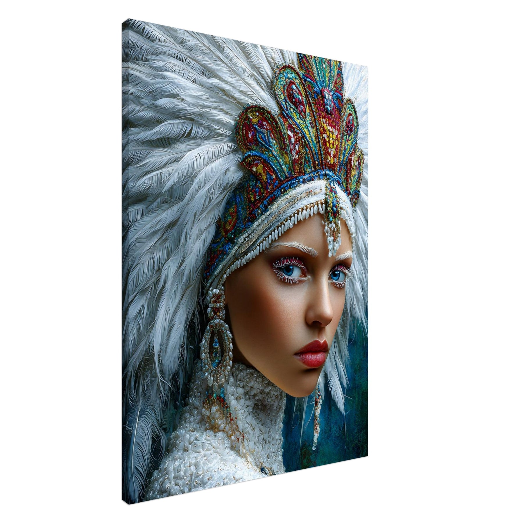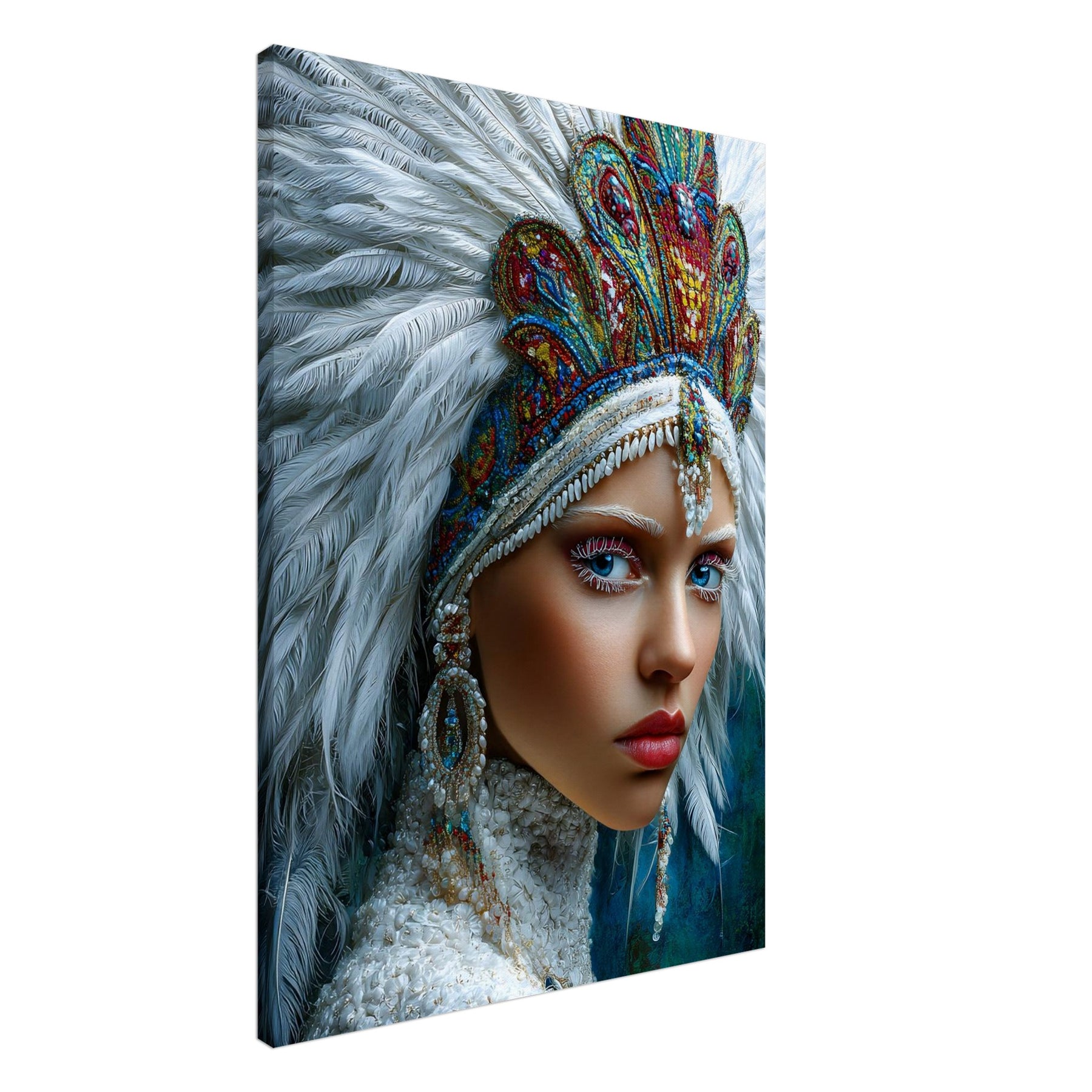 Feathered Majesty – Vibrant Headdress Portrait Canvas Wall Art