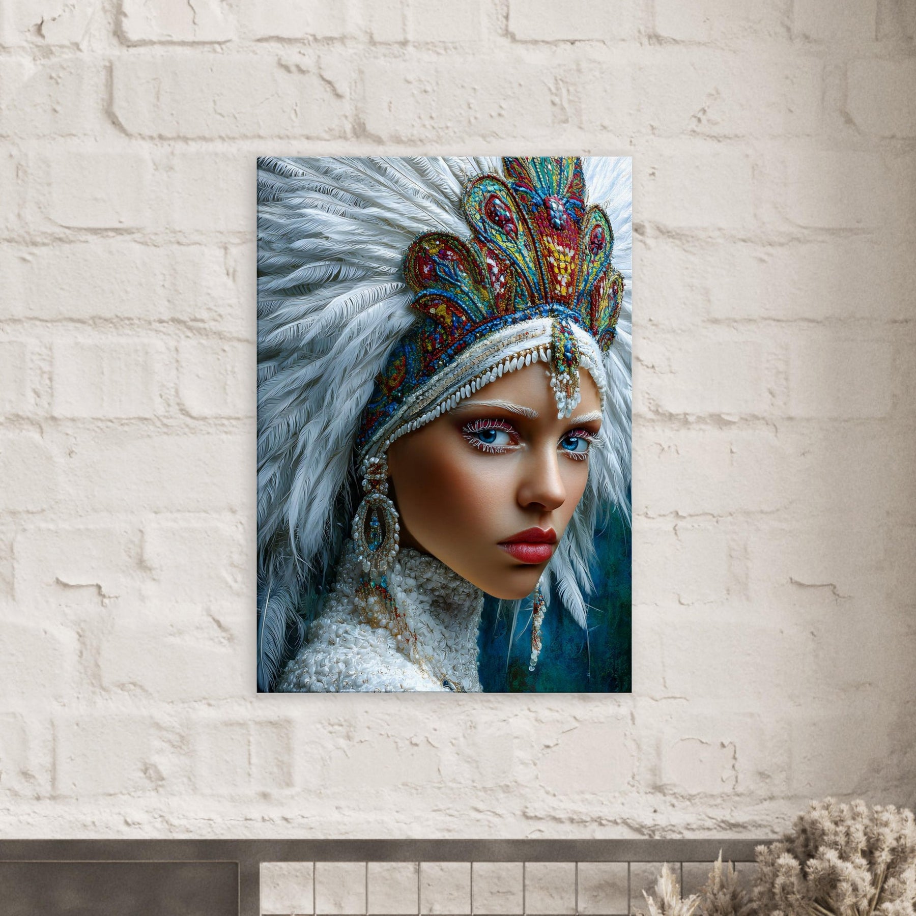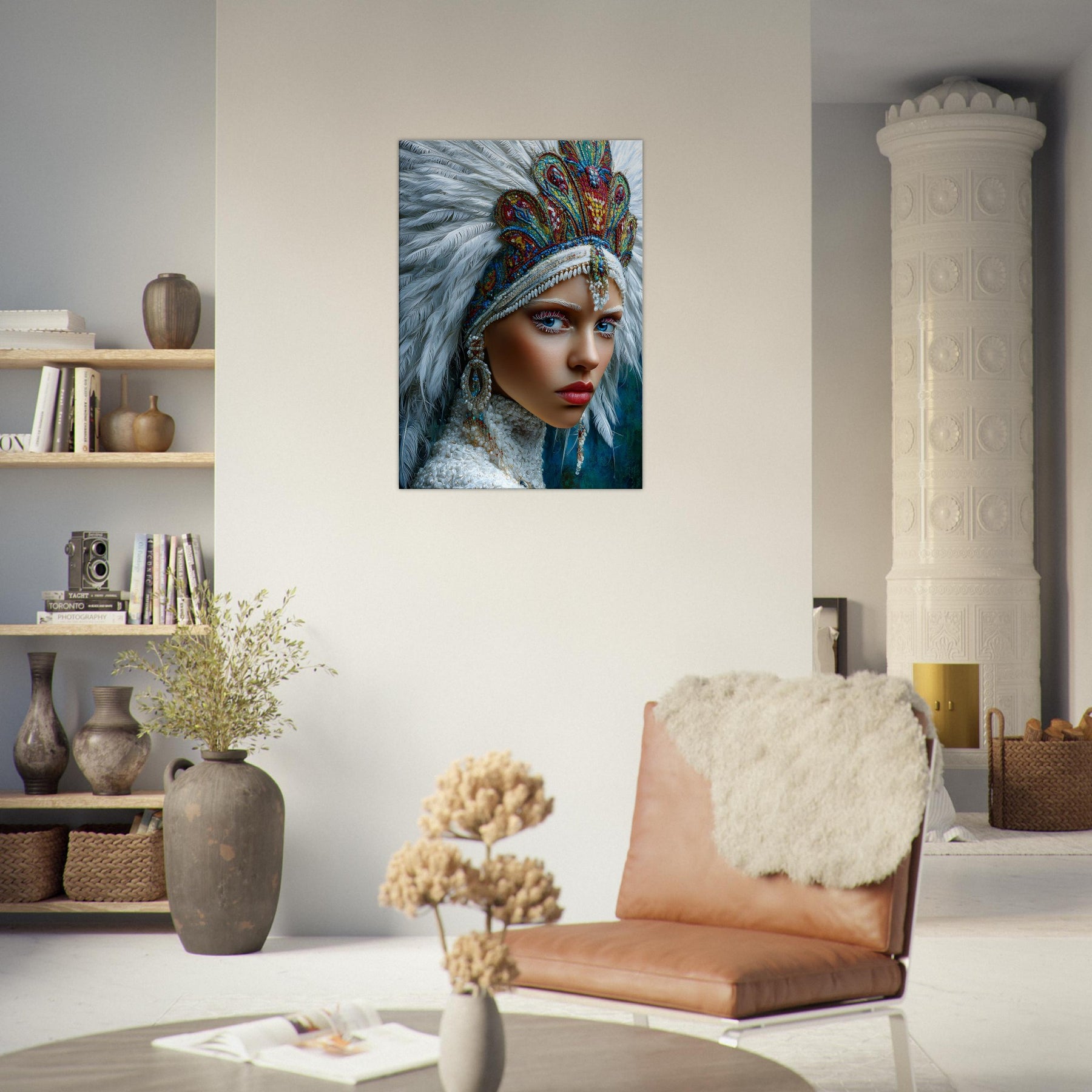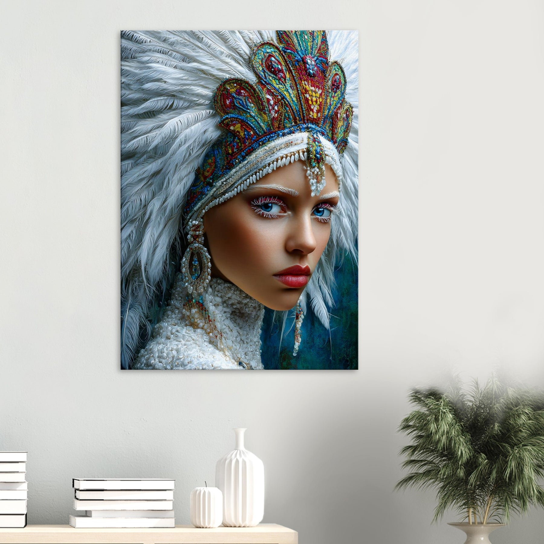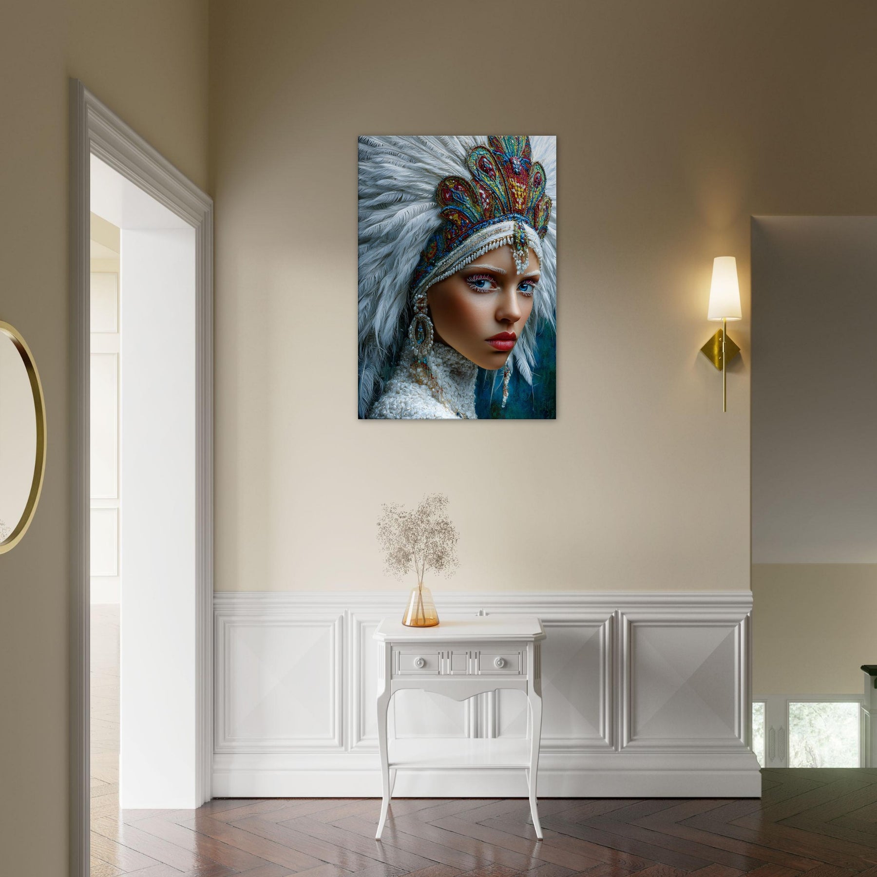 Feathered Majesty – Vibrant Headdress Portrait Canvas Wall Art
